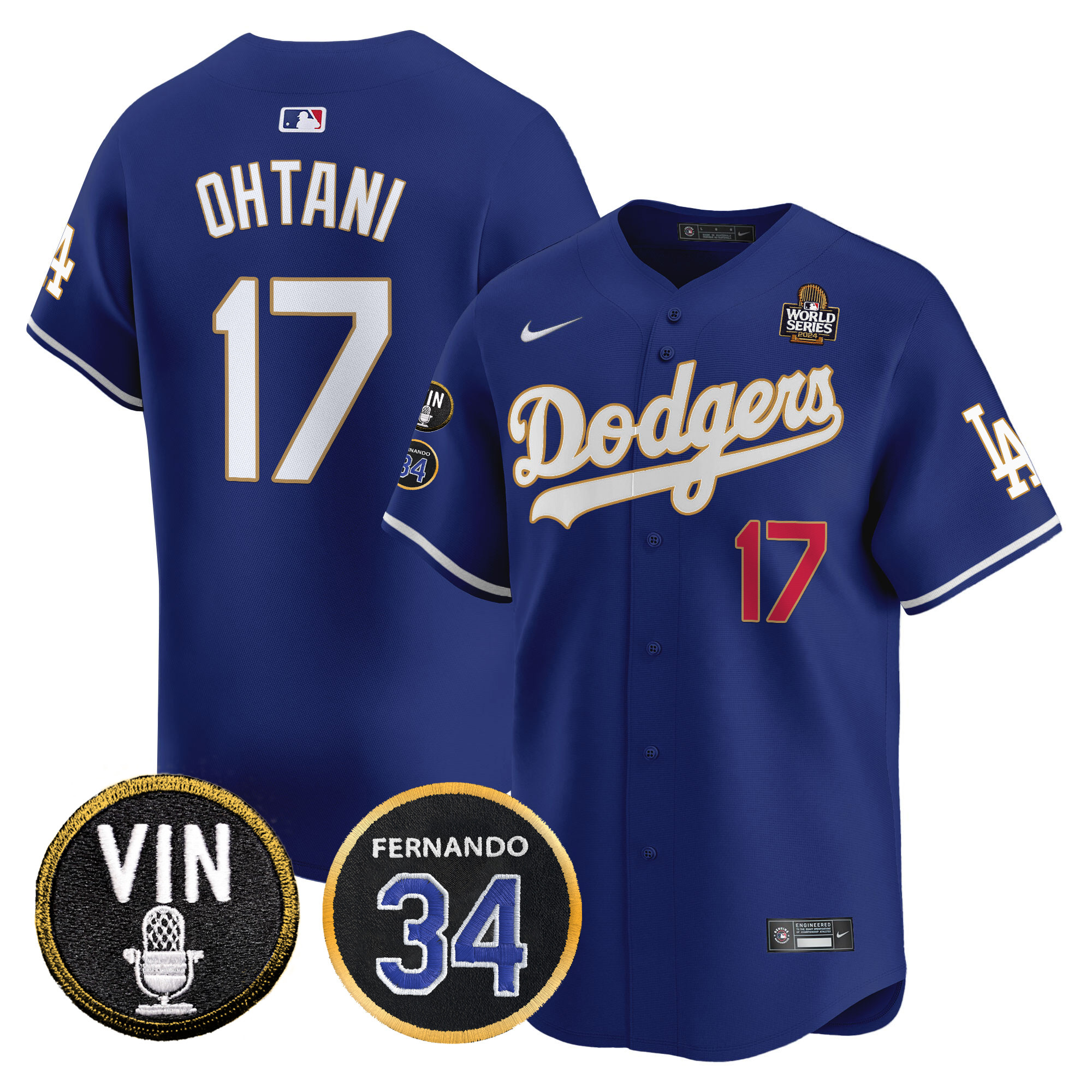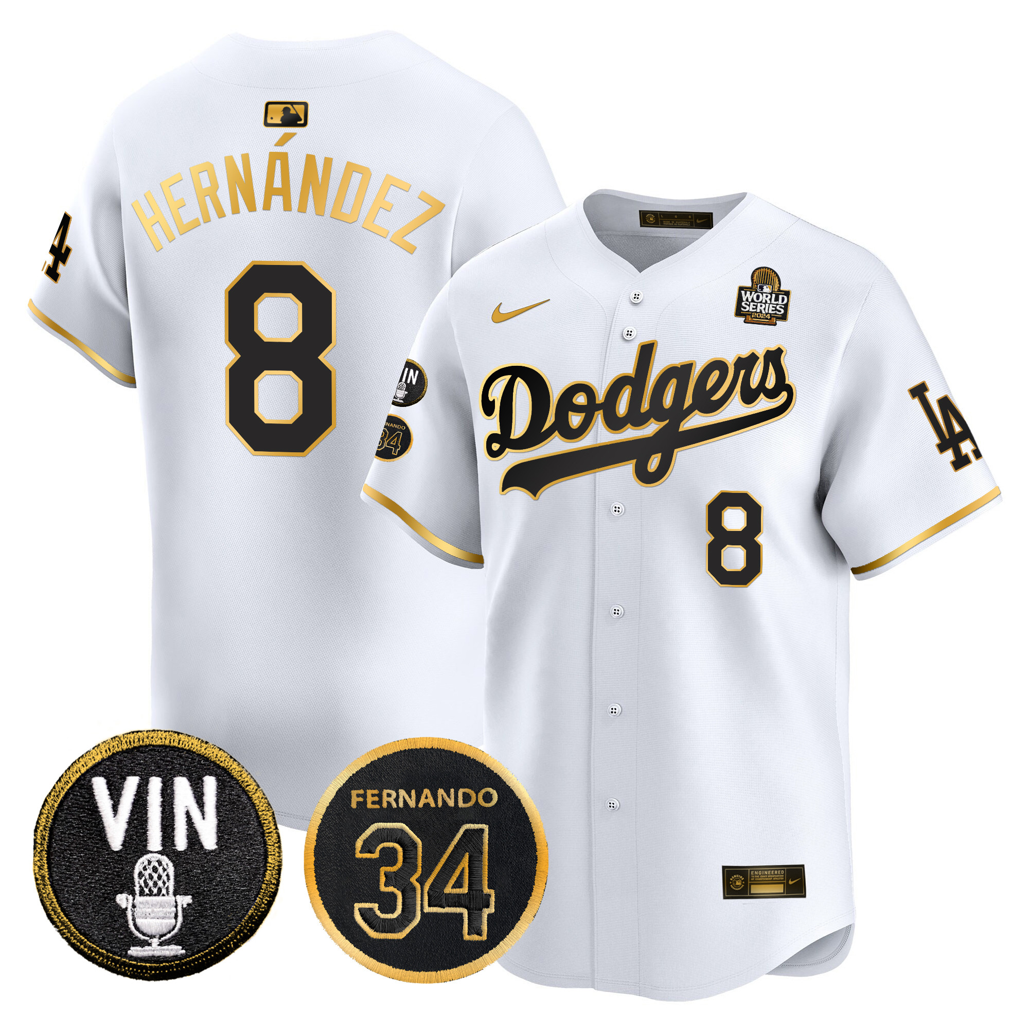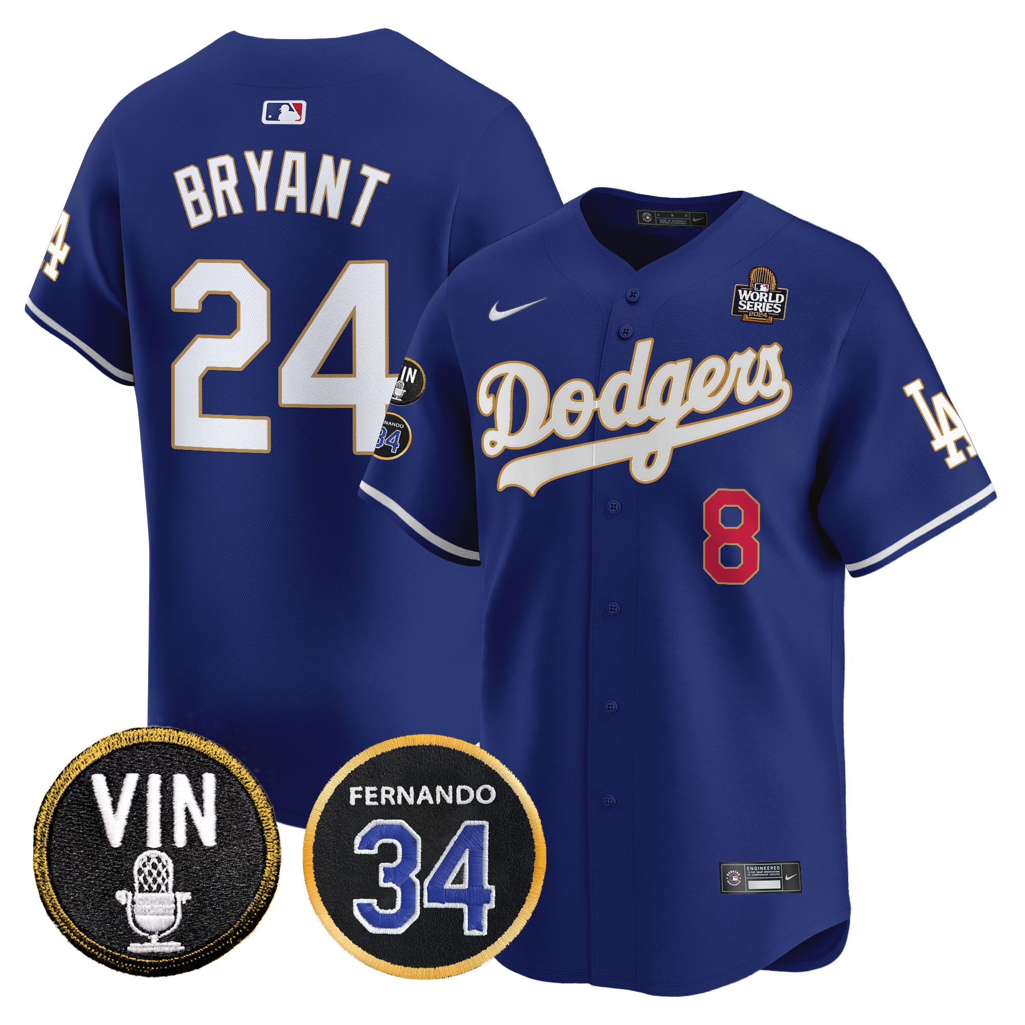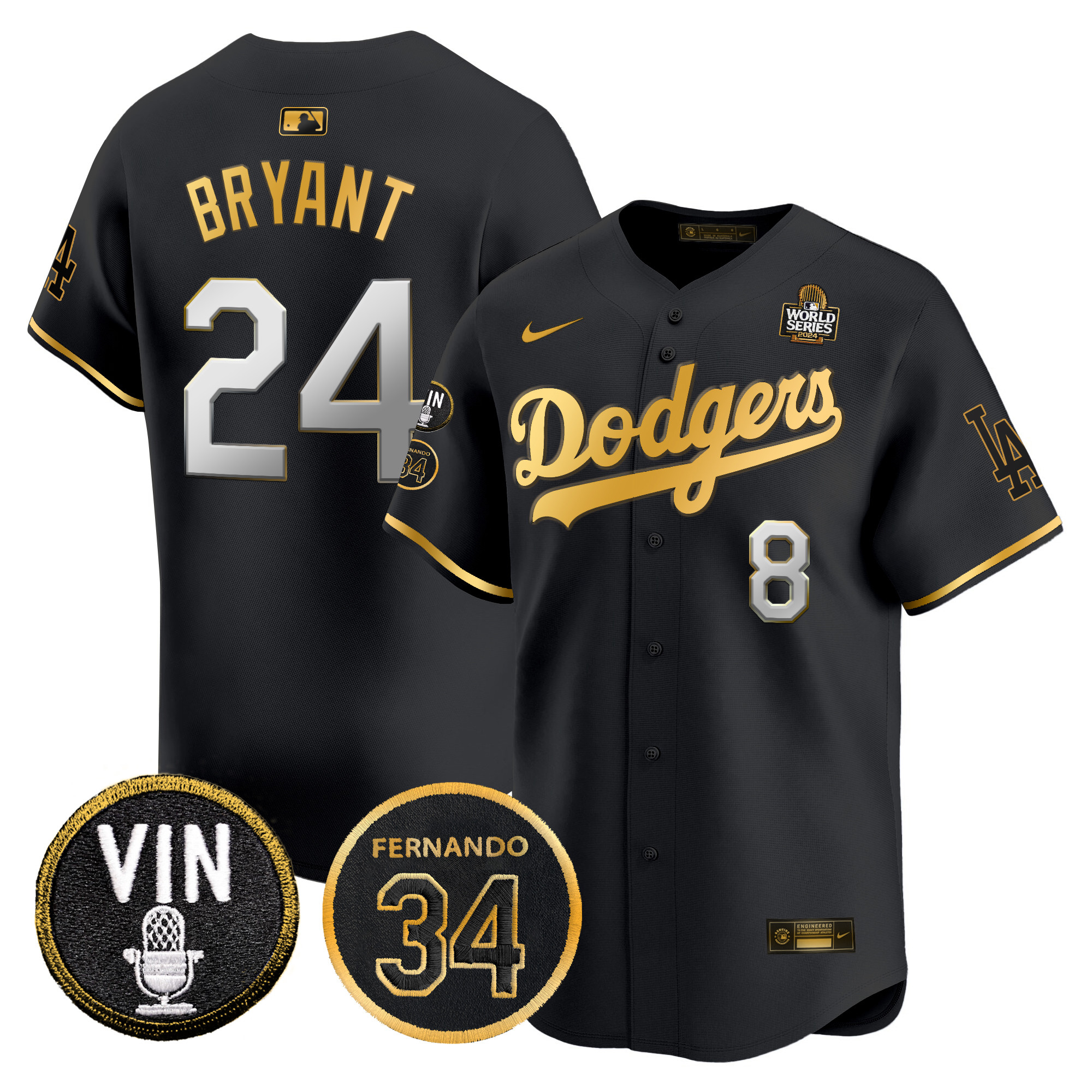 Men’s Dodgers 2024 World Series Gold Trim Vapor Premier Limited Jersey V3 – All Stitched