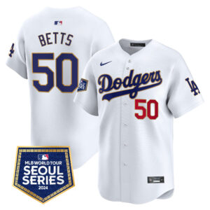 Men’s Dodgers 2024 World Tour Seoul Series Patch Vapor Premier Limited Jersey – All Stitched