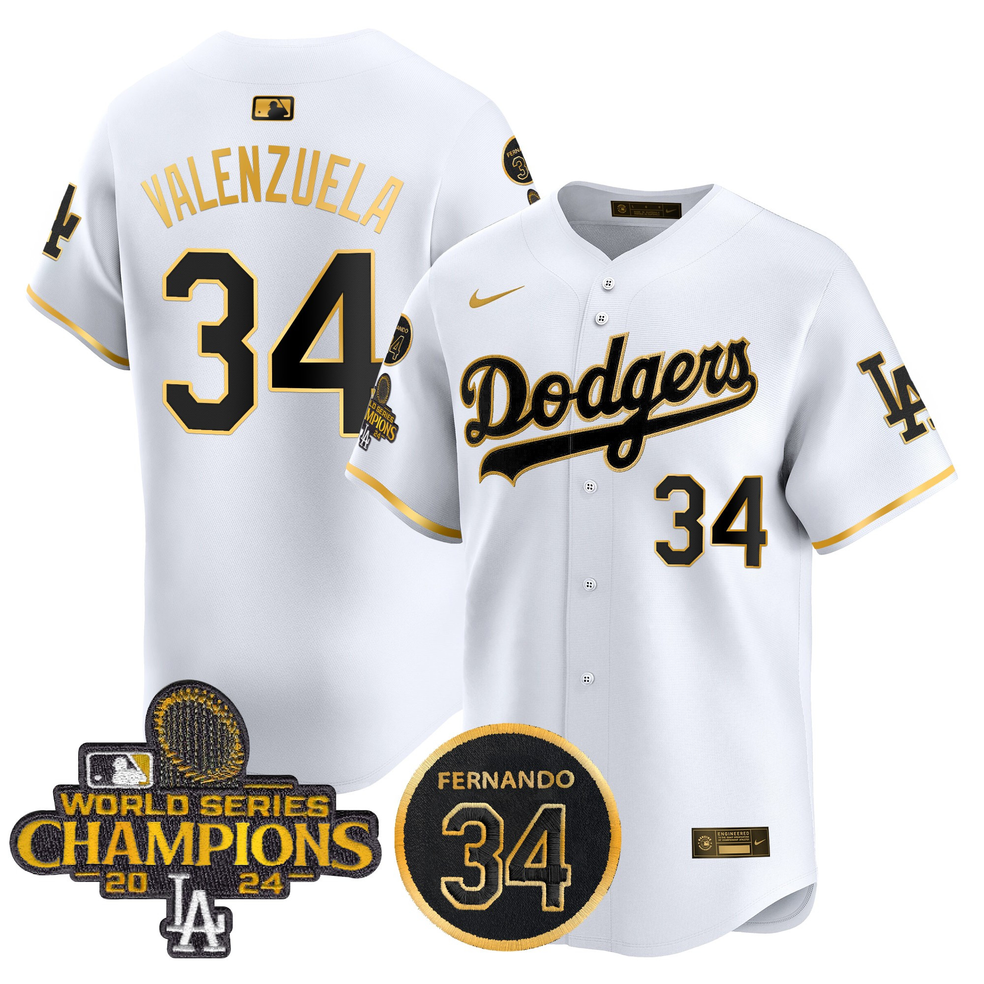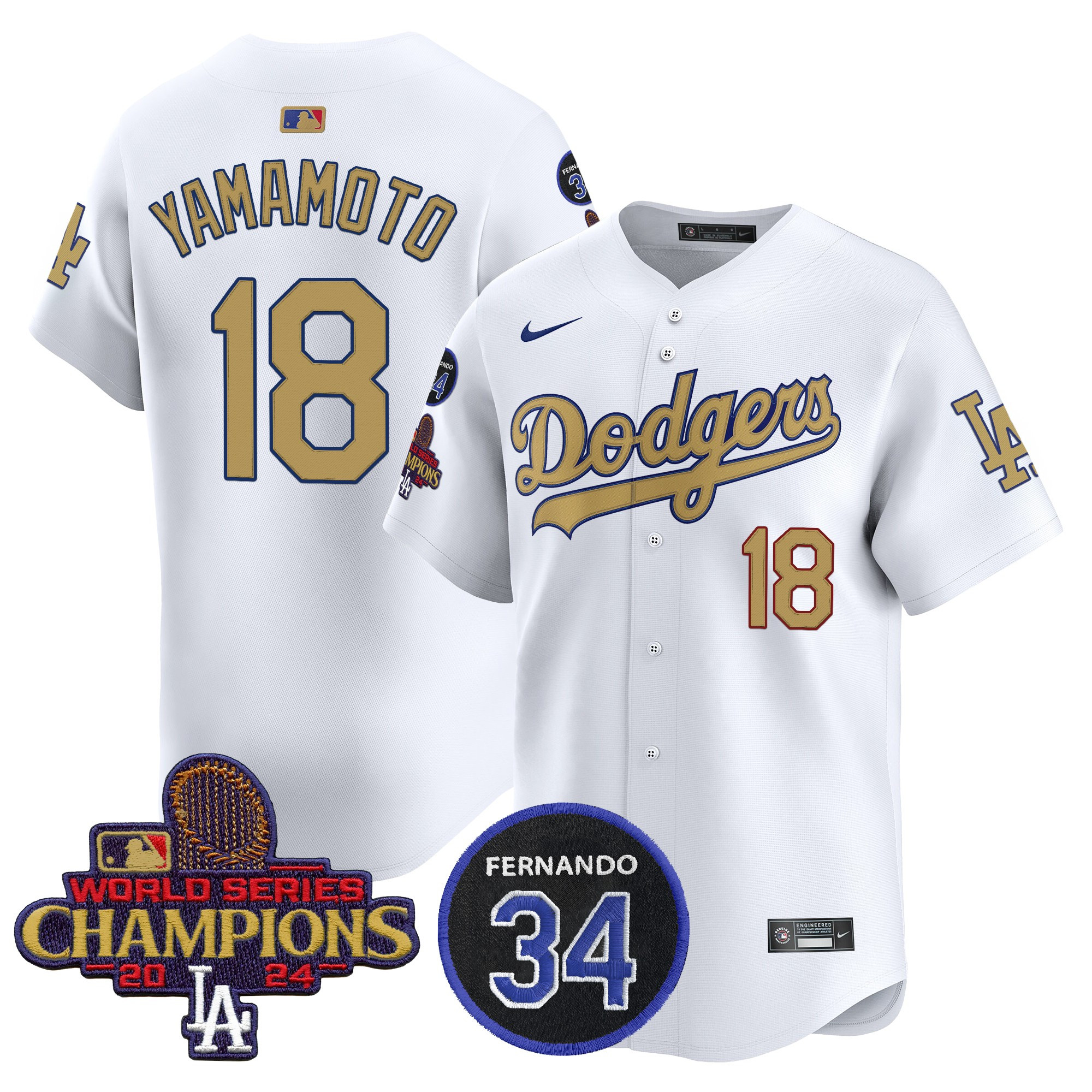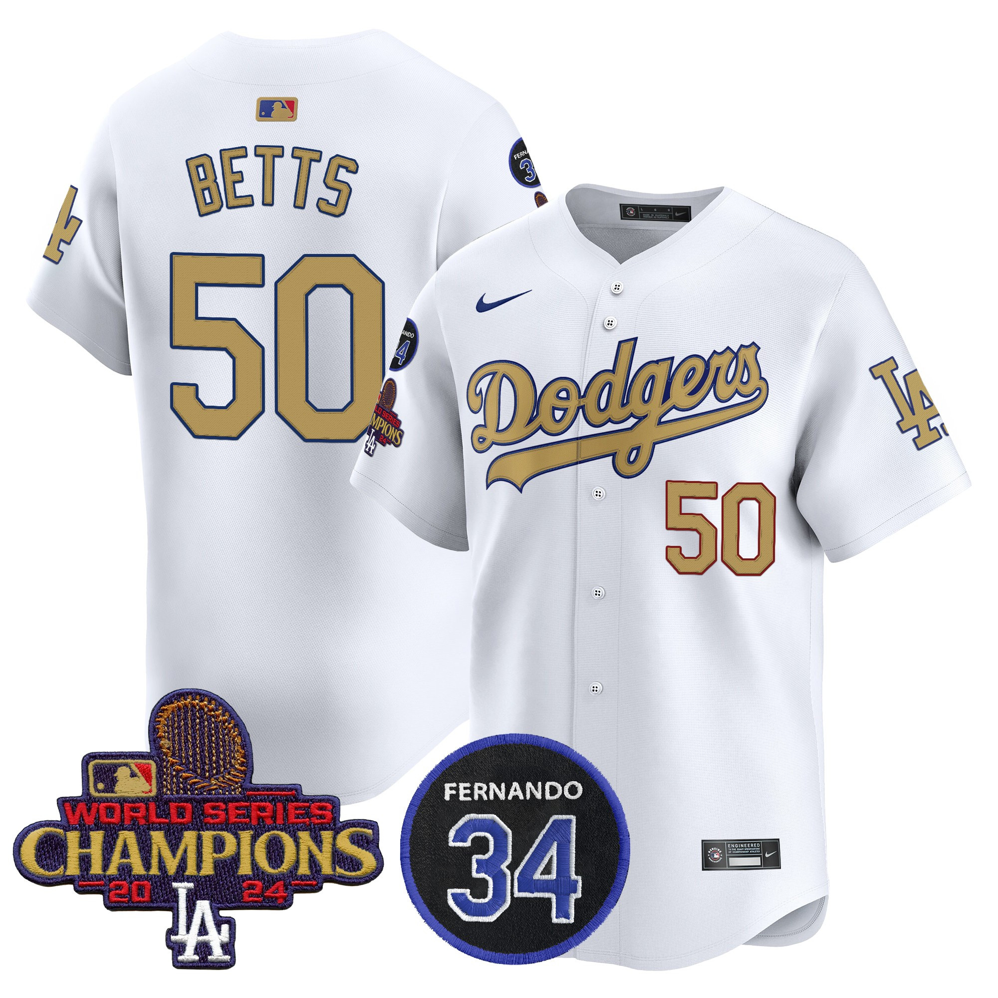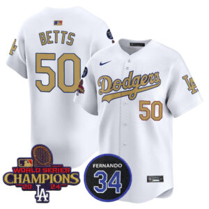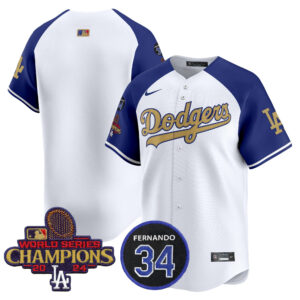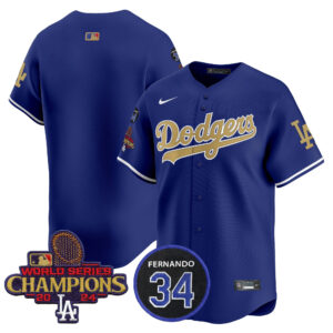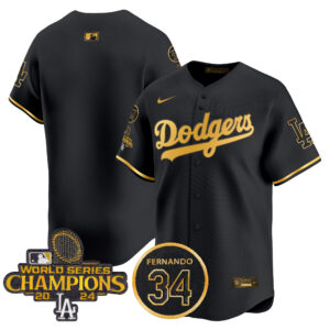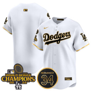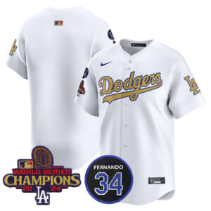 Men’s Dodgers 2025 #34 Fernando Patch Gold Vapor Premier Limited Jersey – All Stitched
