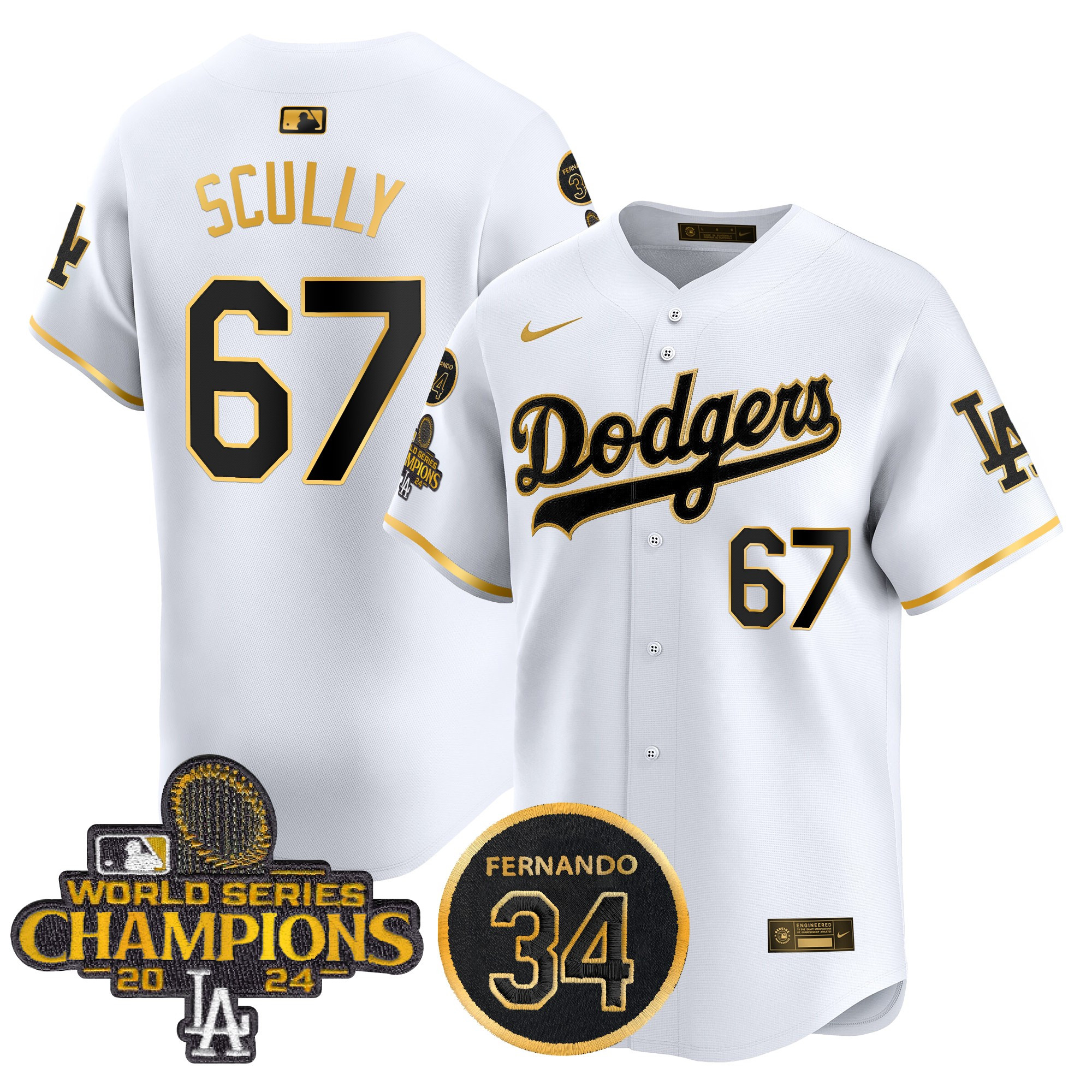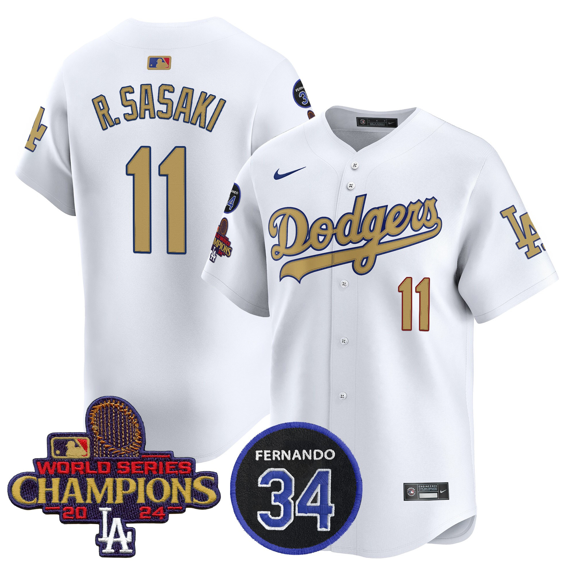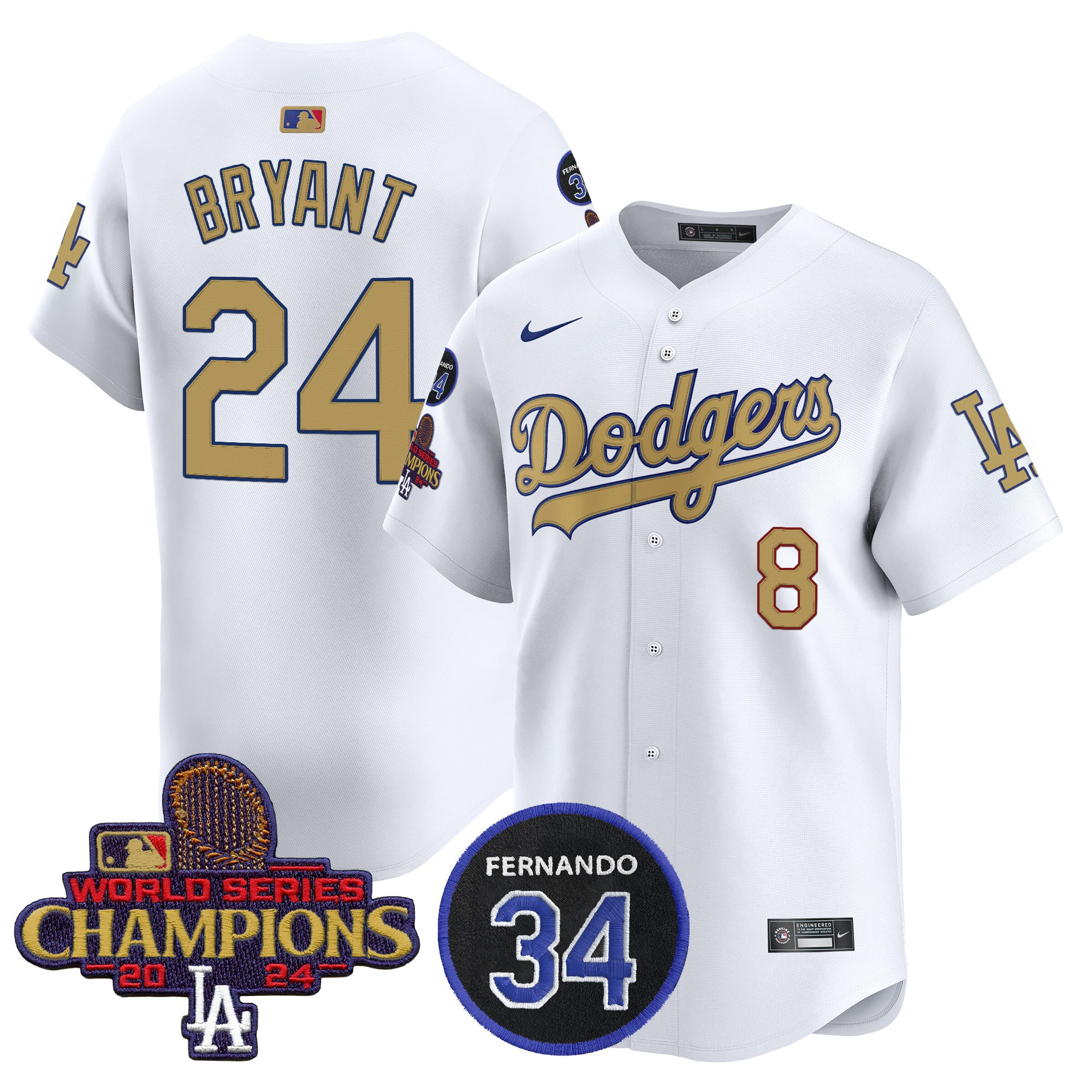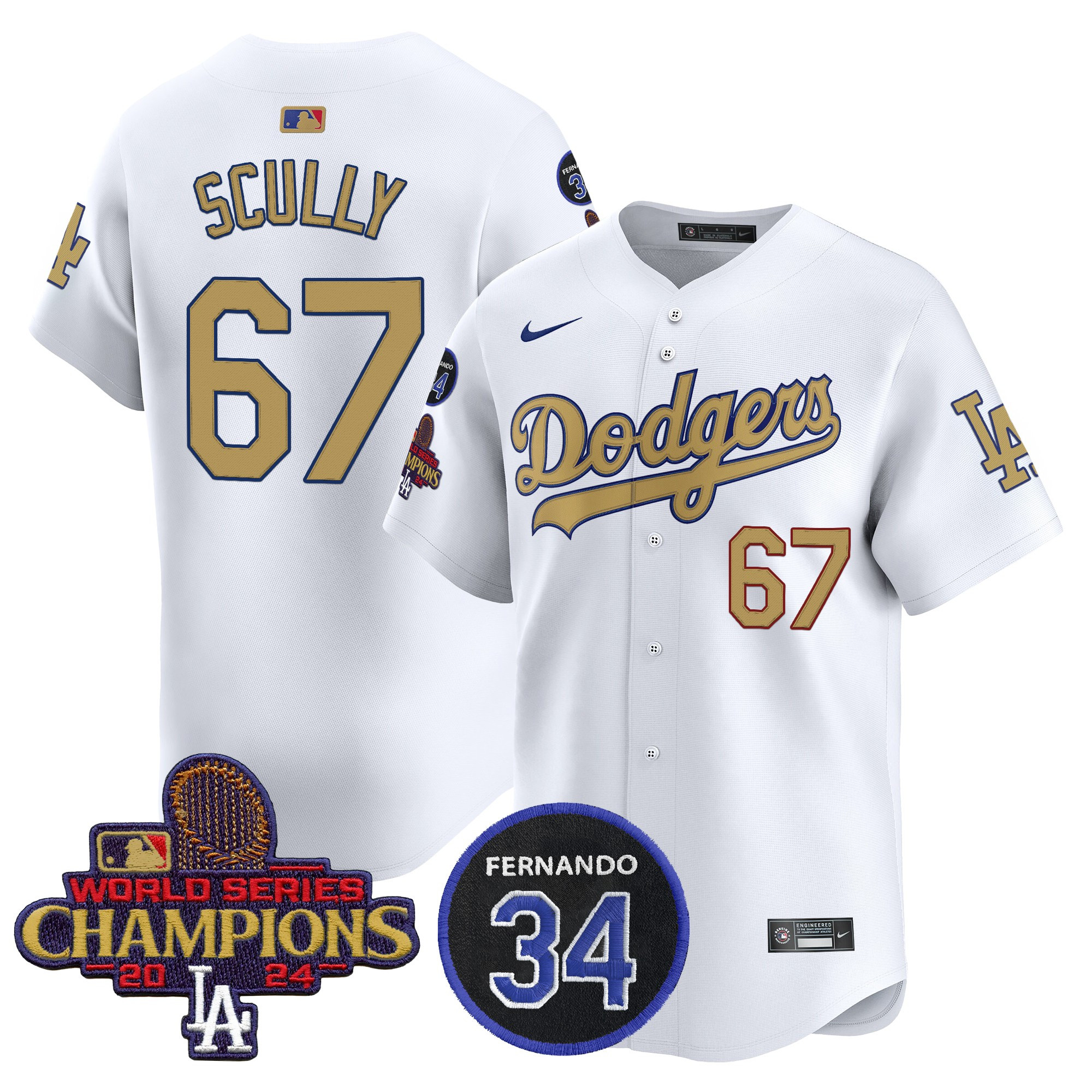 Men’s Dodgers 2025 #34 Fernando Patch Gold Vapor Premier Limited Jersey – All Stitched