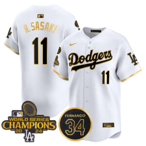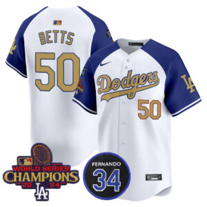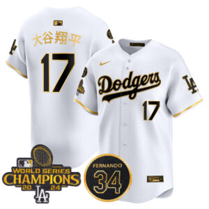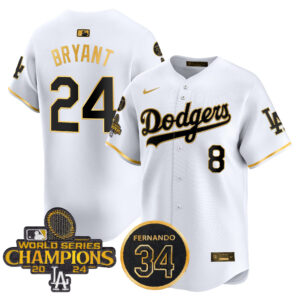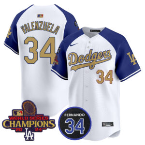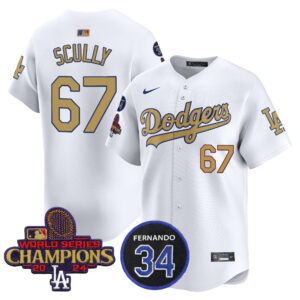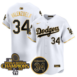 Men’s Dodgers 2025 World Series Gold Trim Vapor Premier Limited Jersey – All Stitched