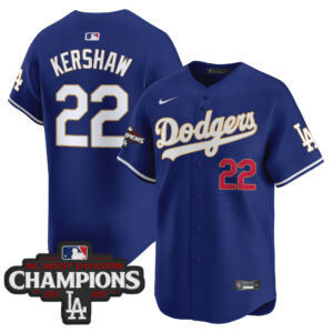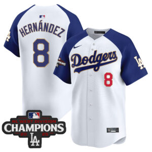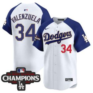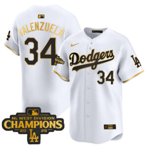 Men’s Dodgers 2025 NL West Division Champions Patch Gold Trim Vapor Premier Limited Jersey – All Stitched