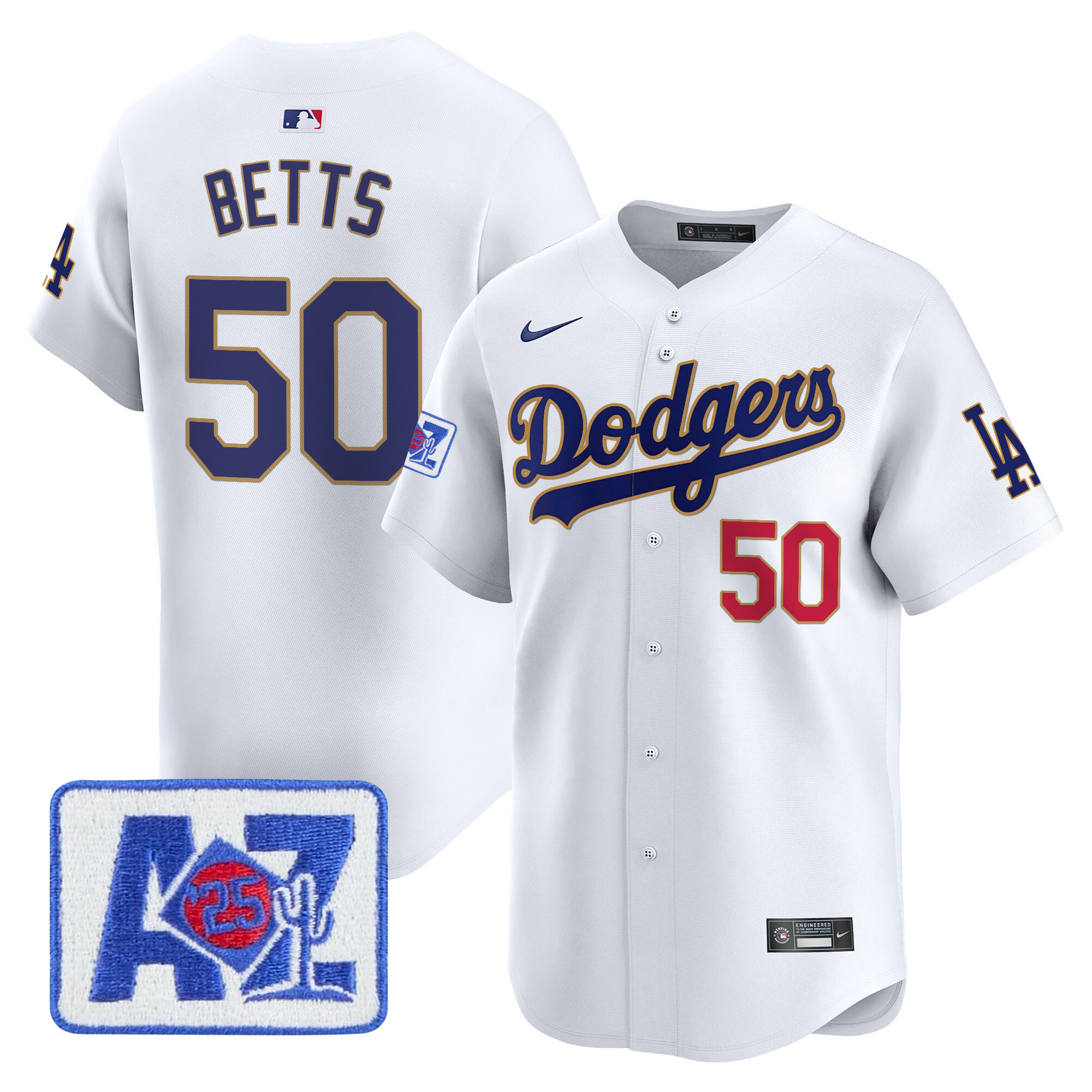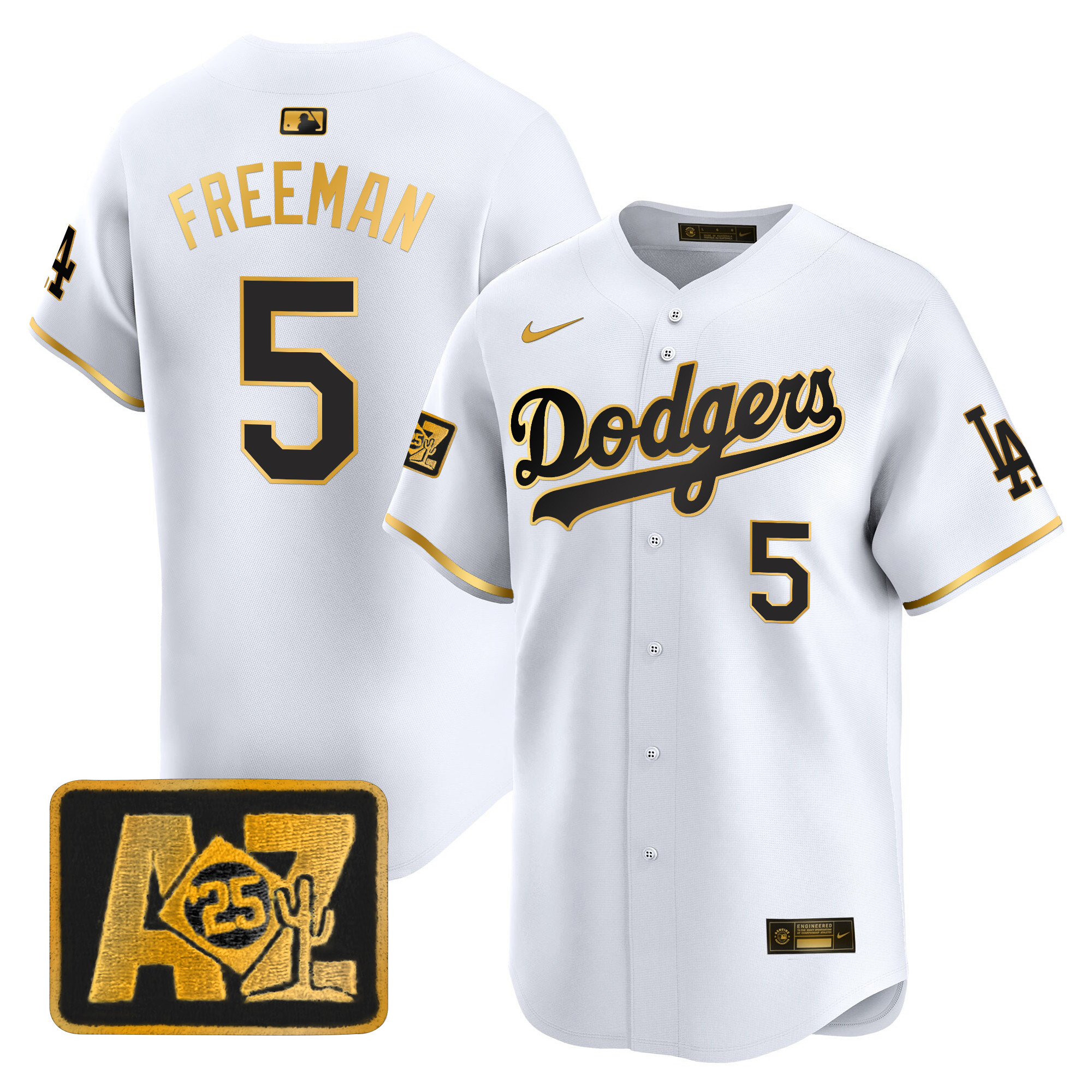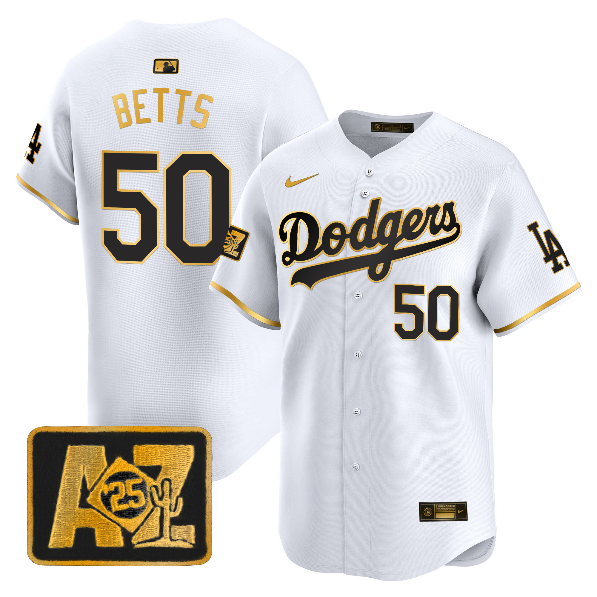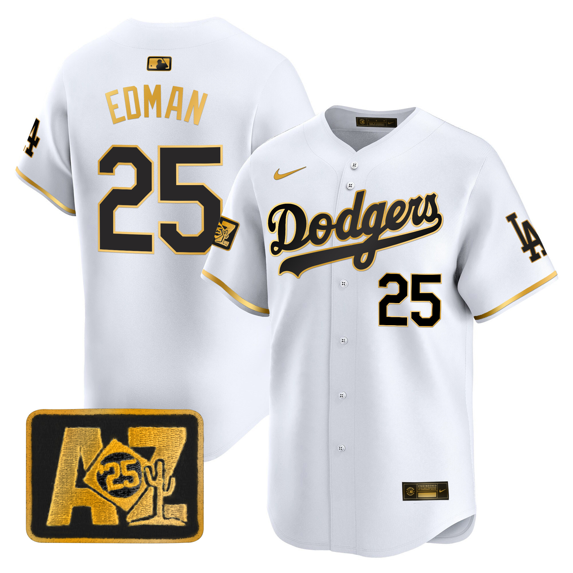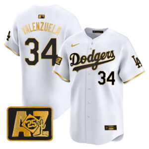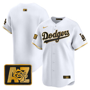 Men’s Dodgers 2025 World Series Gold Trim Vapor Premier Limited Jersey – All Stitched