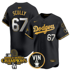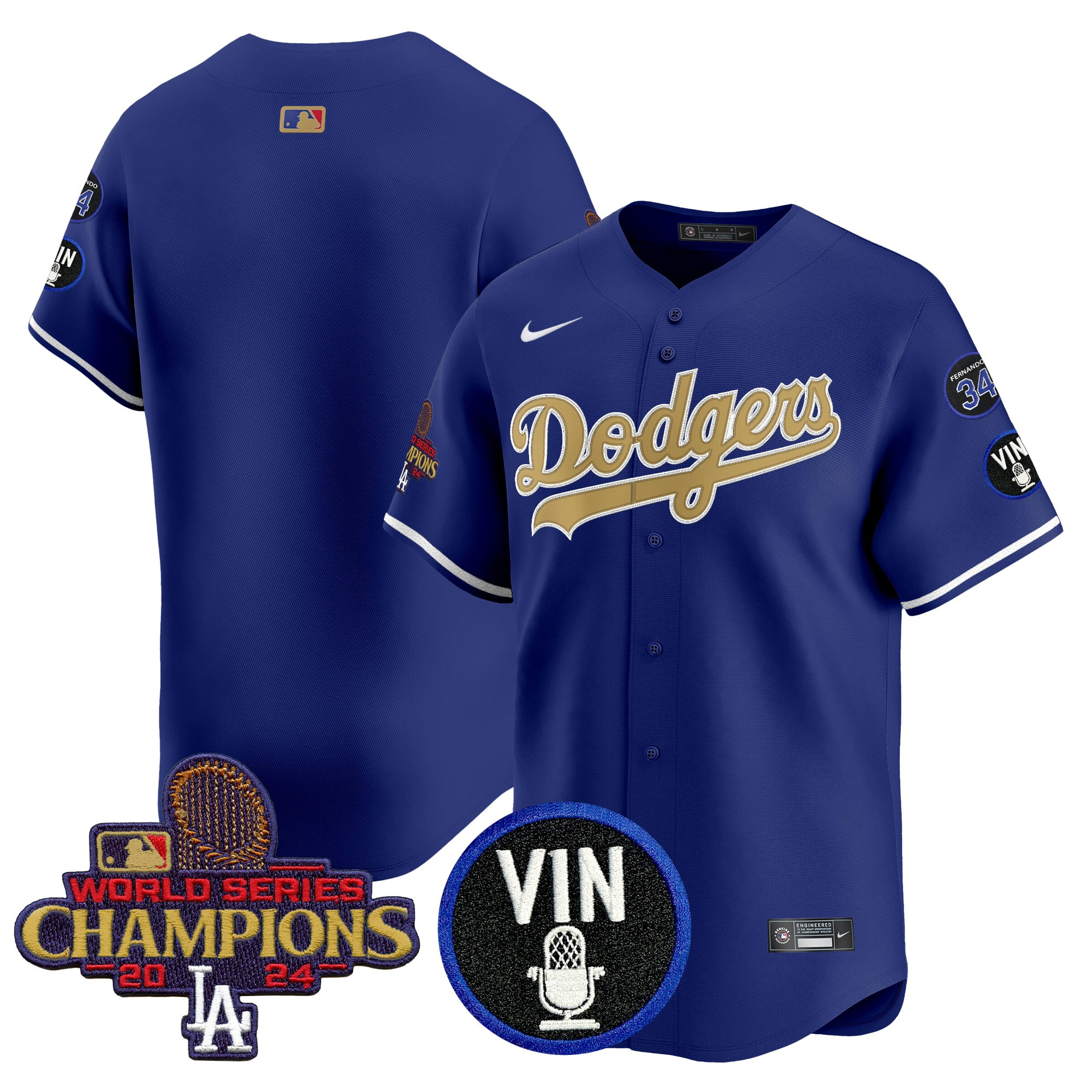 Men’s Dodgers 2025 Vin Scully & #34 Fernando Patch Gold Vapor Premier Limited Jersey – All Stitched
