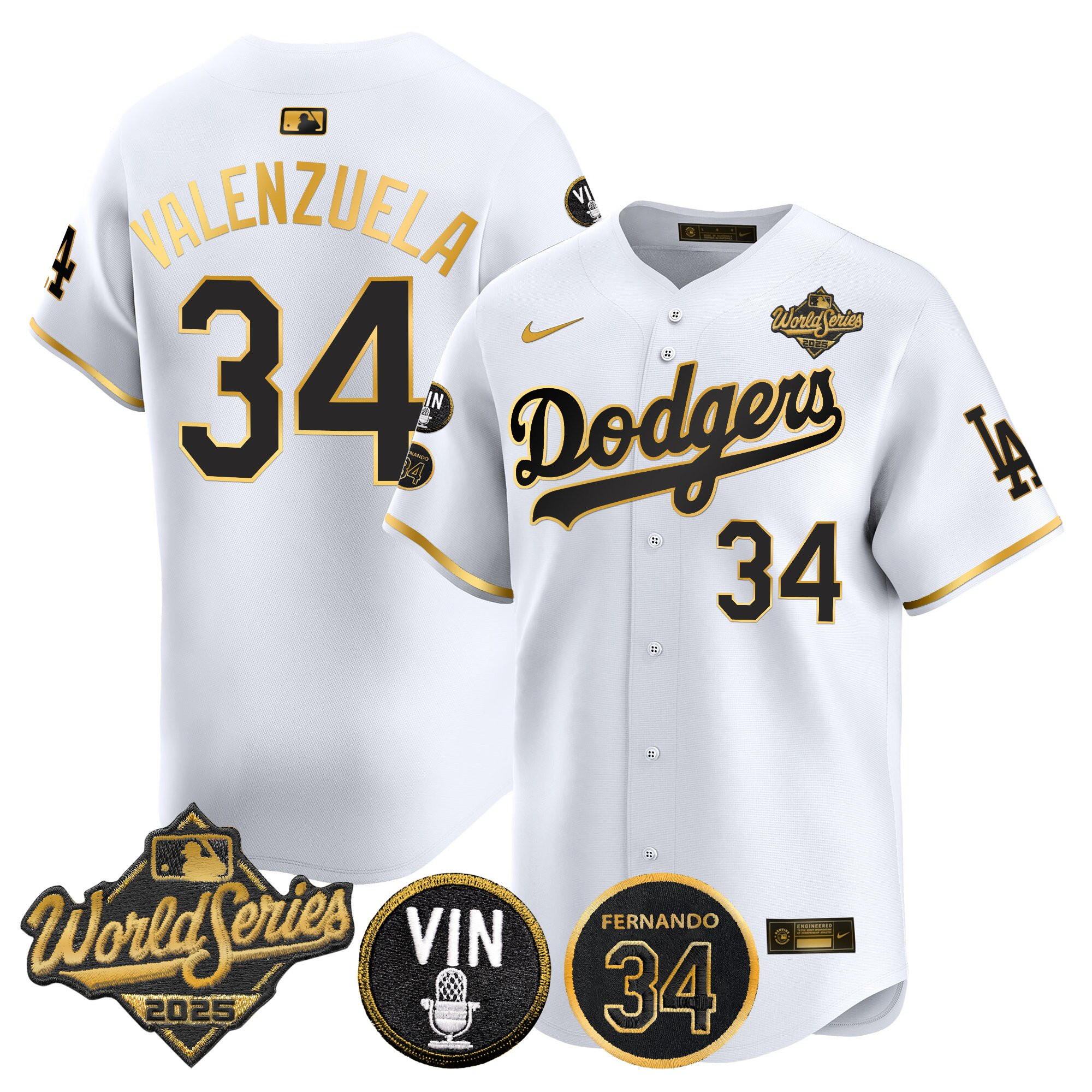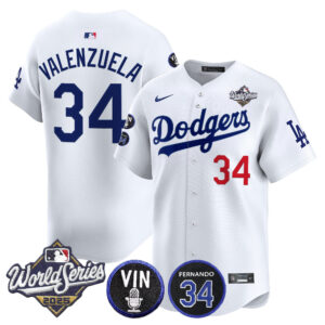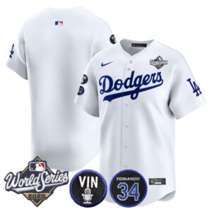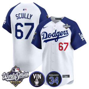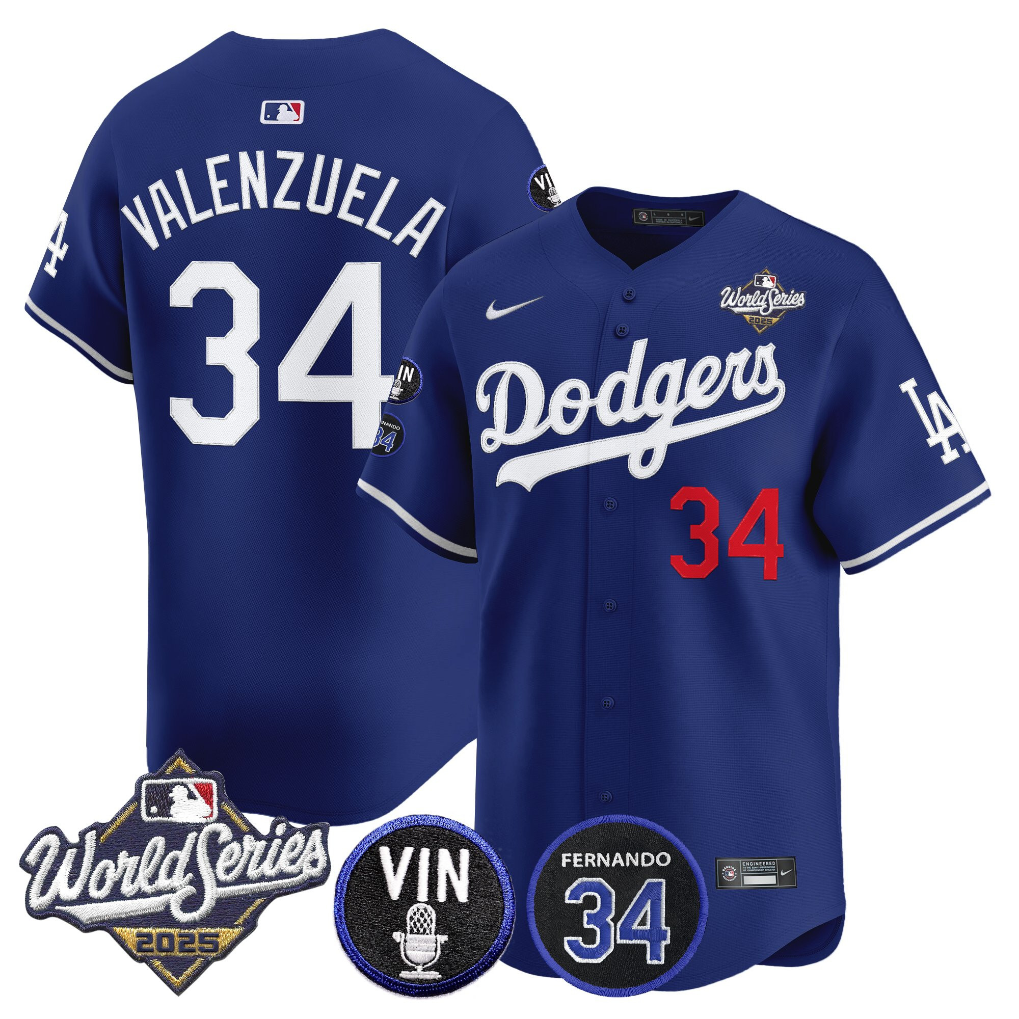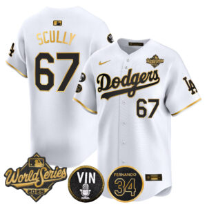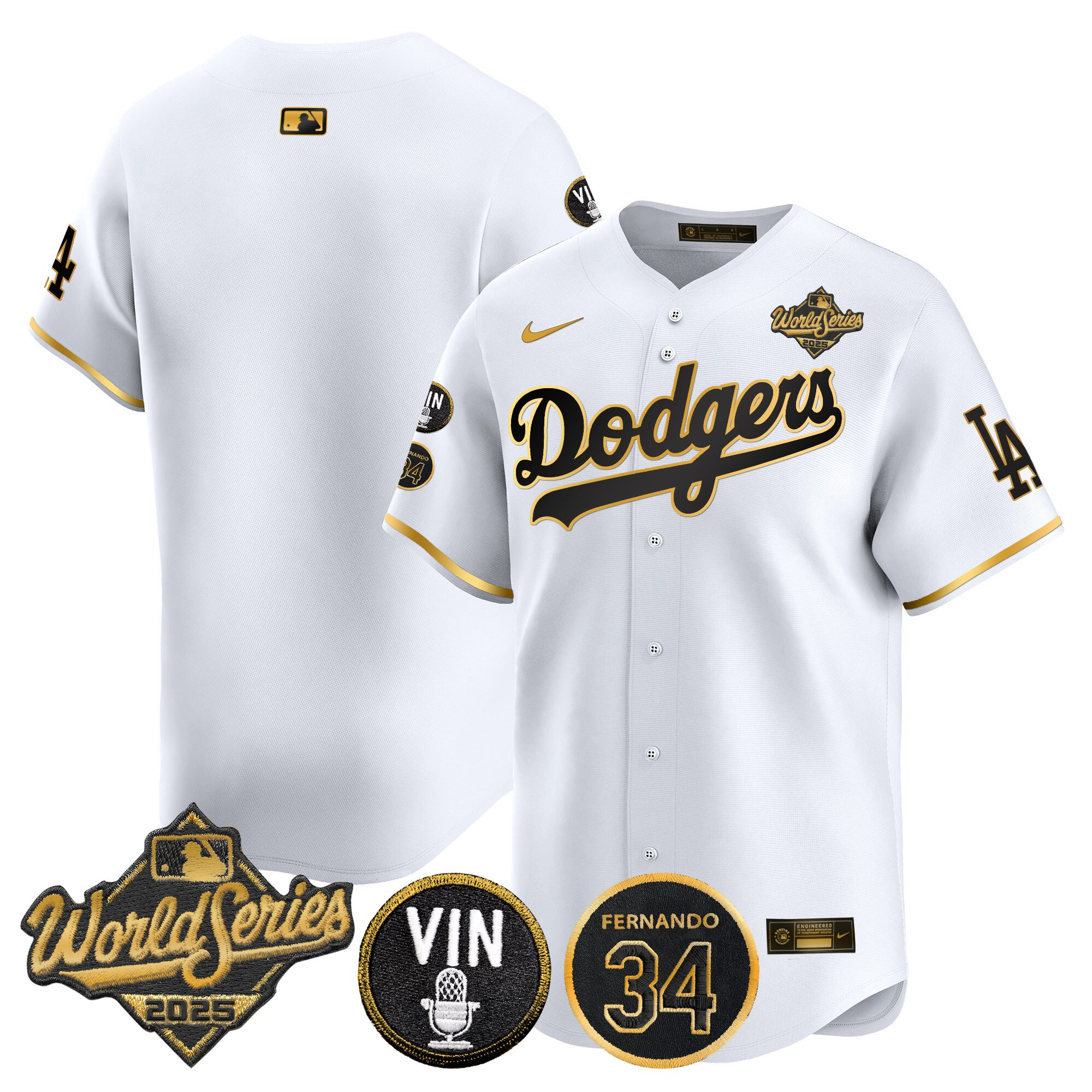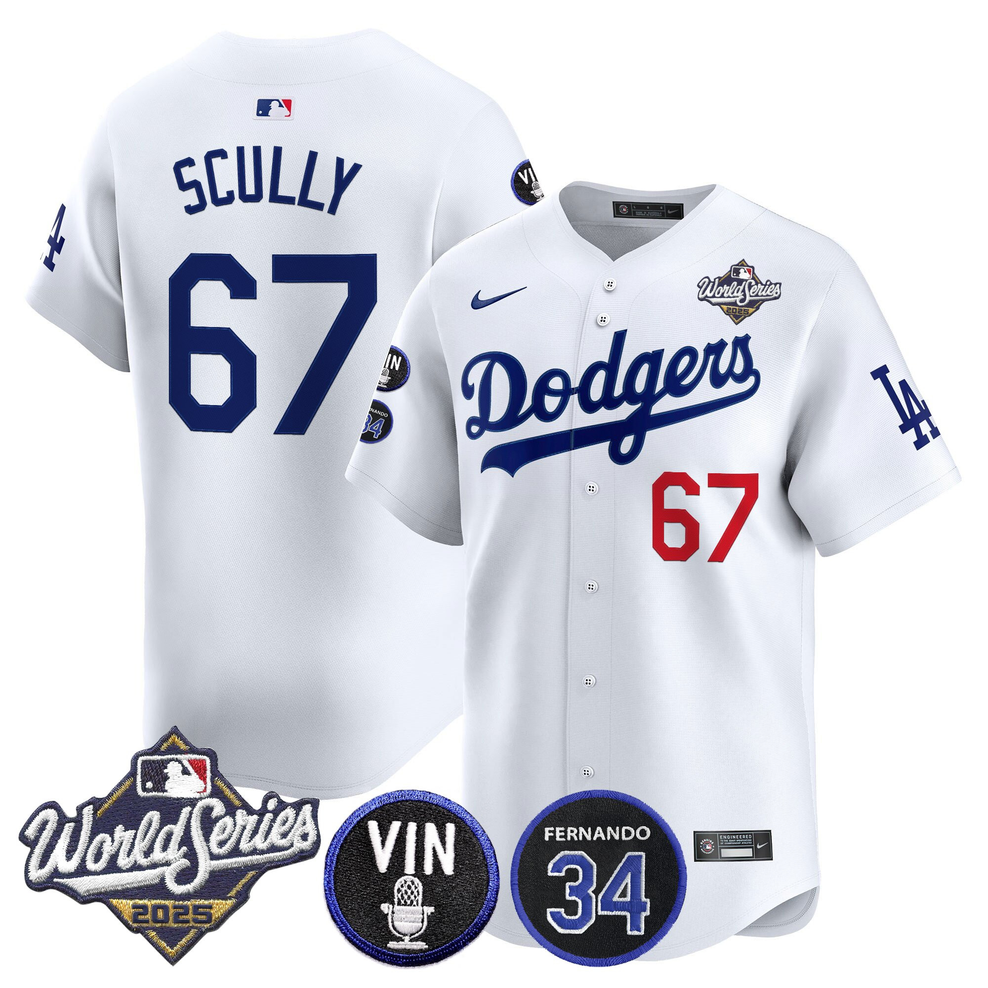 Men’s Dodgers 2025 World Series Vapor Premier Limited Jersey – Vin Scully & Fernando Patch – All Stitched