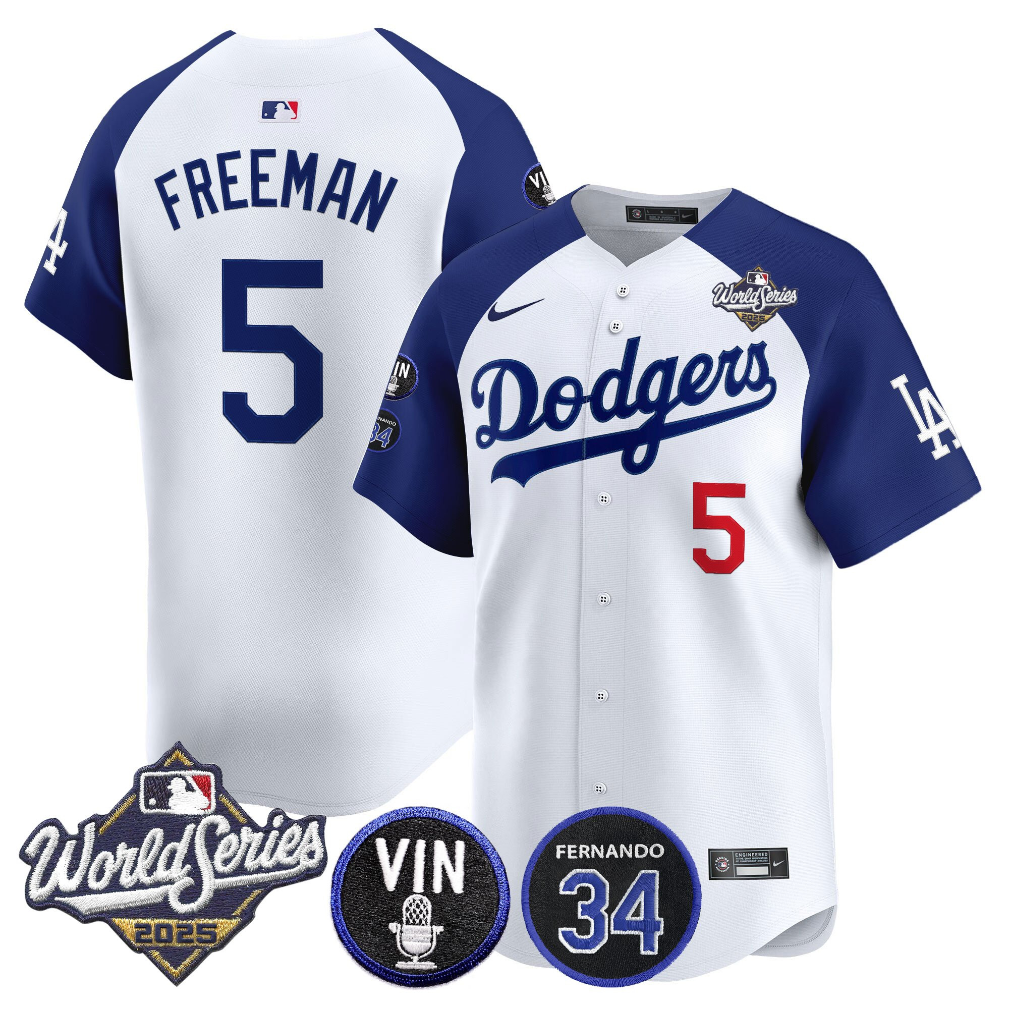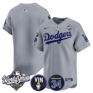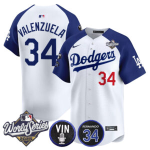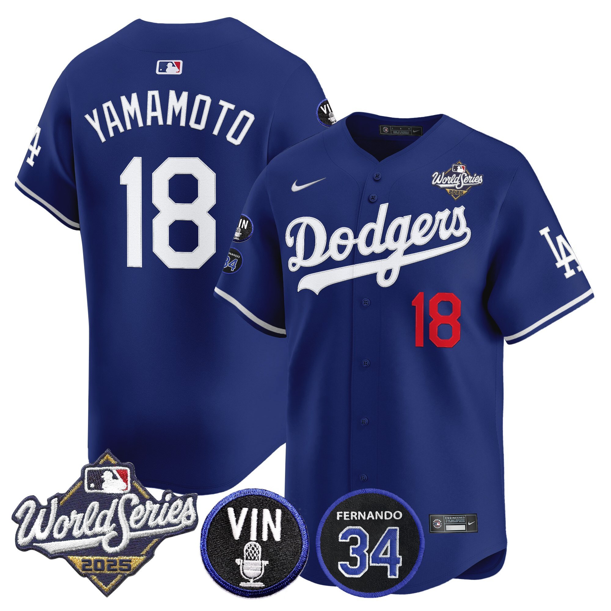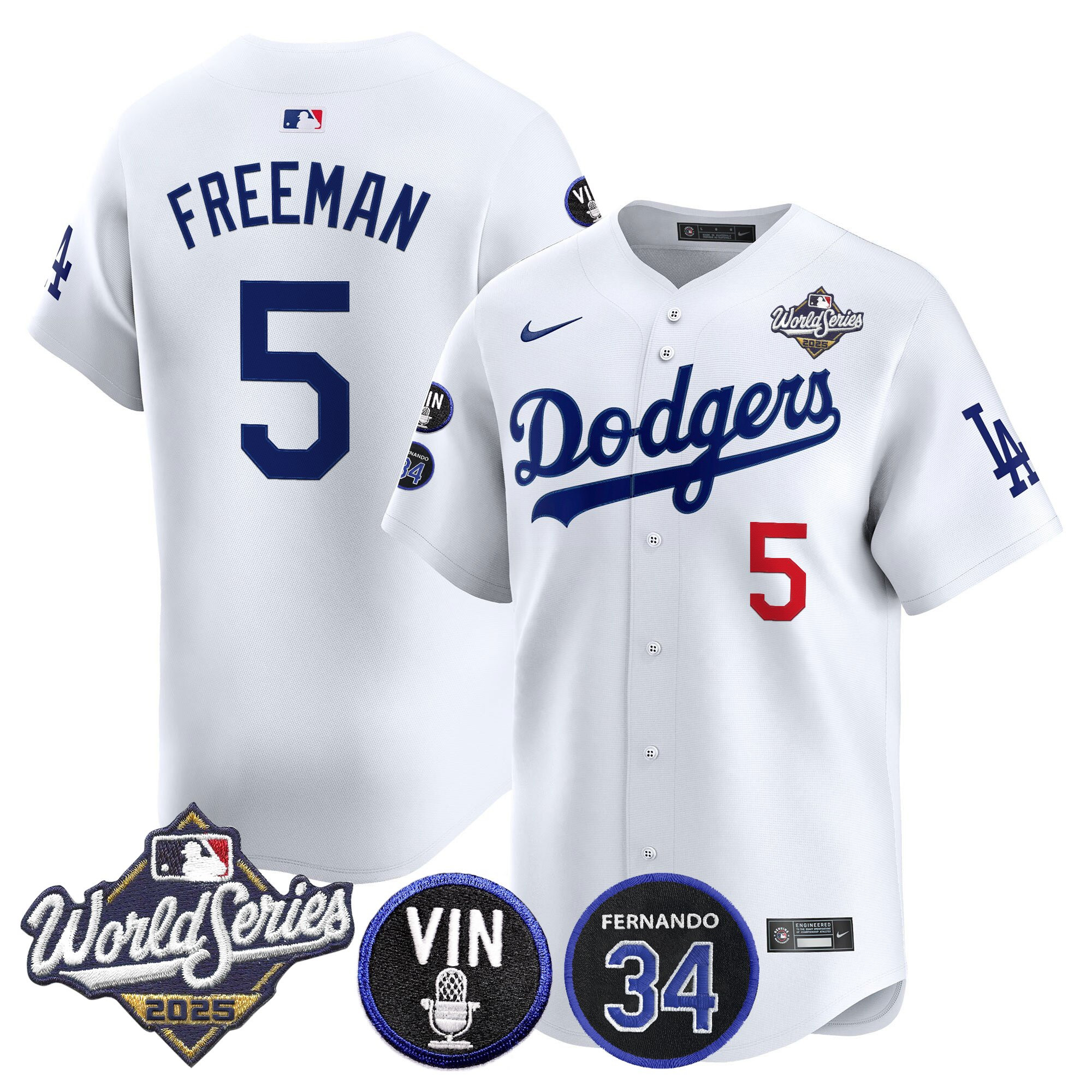 Men’s Dodgers 2025 World Series Vapor Premier Limited Jersey – Vin Scully & Fernando Patch – All Stitched