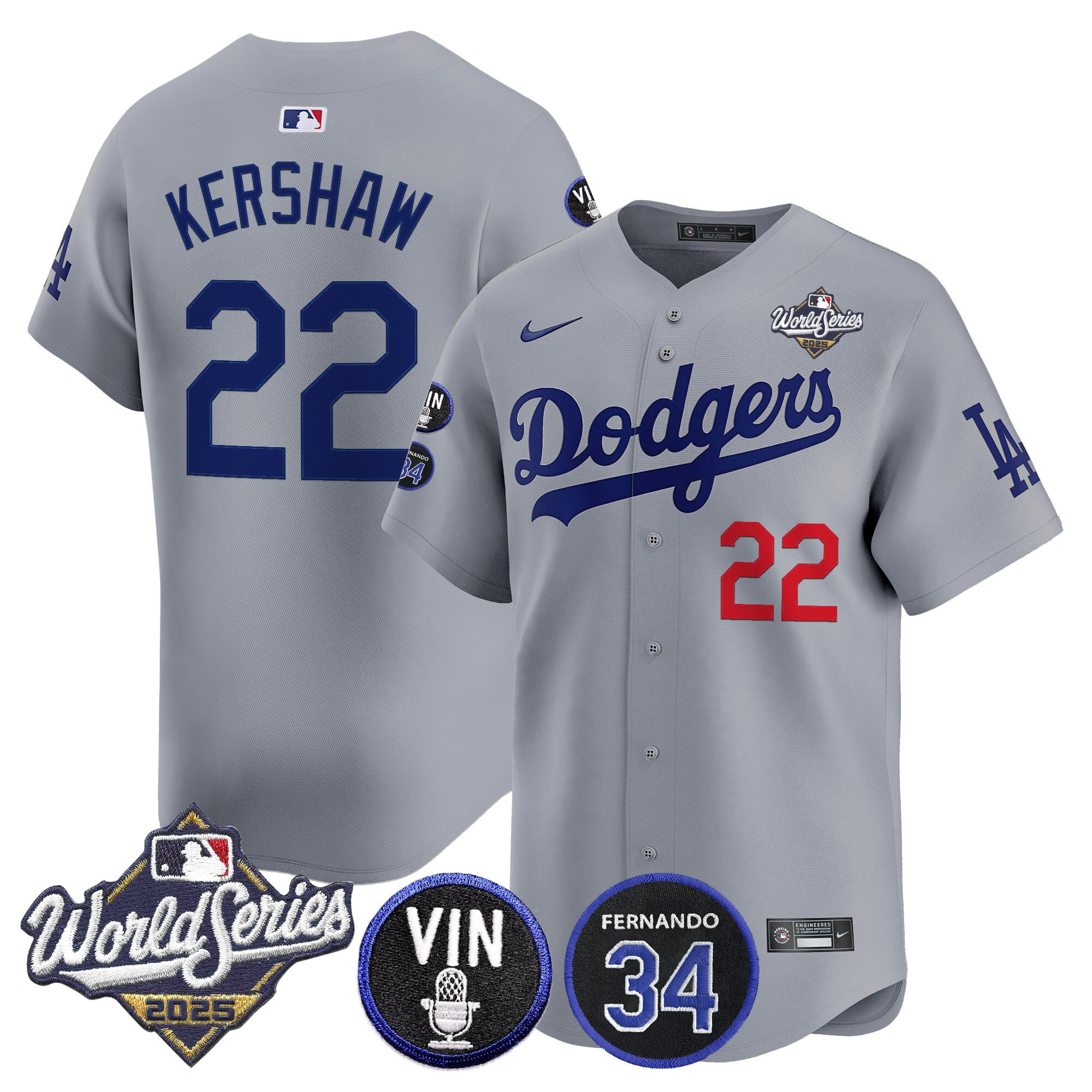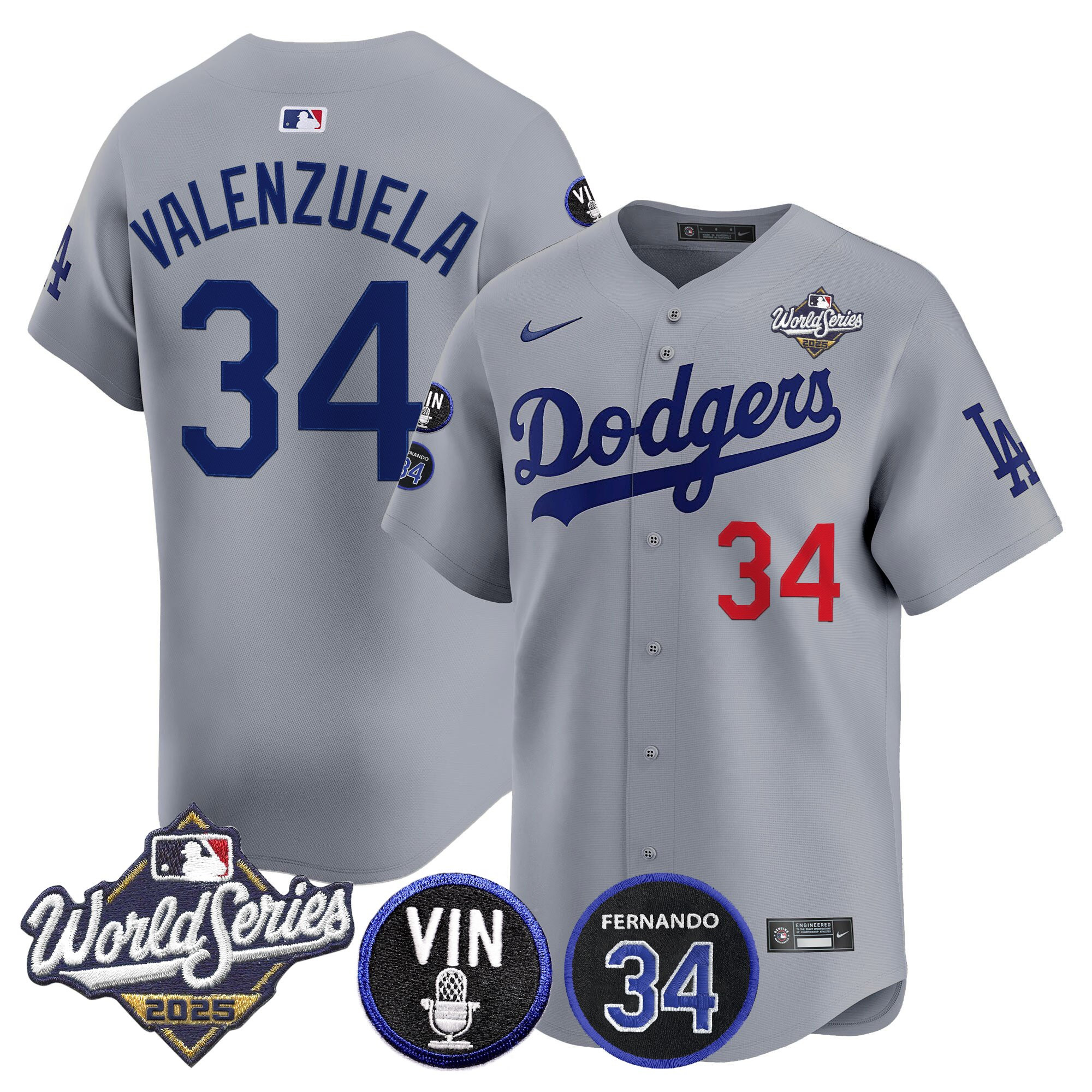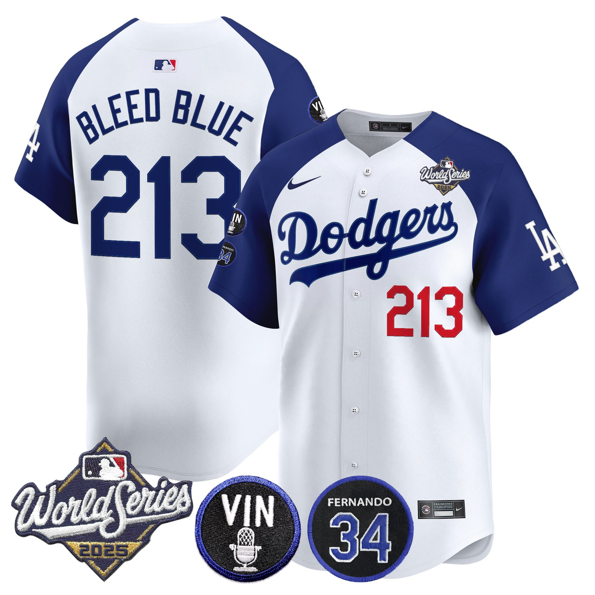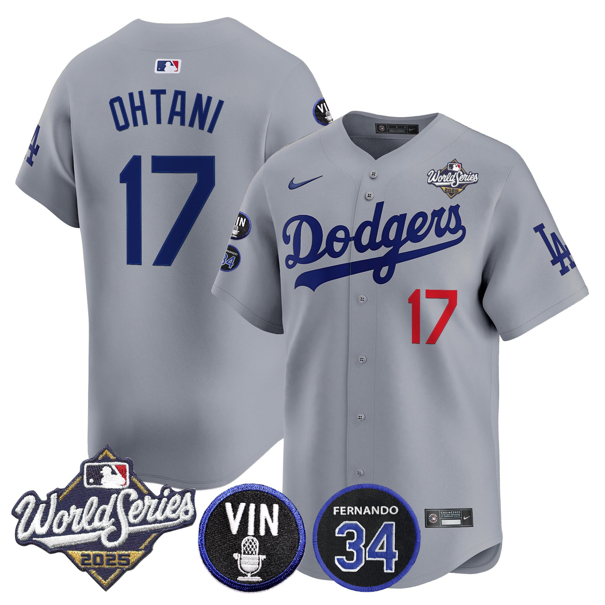 Men’s Dodgers 2025 World Series Vapor Premier Limited Jersey – Vin Scully & Fernando Patch – All Stitched