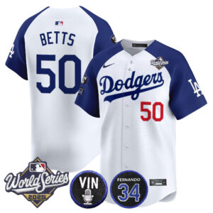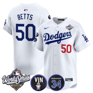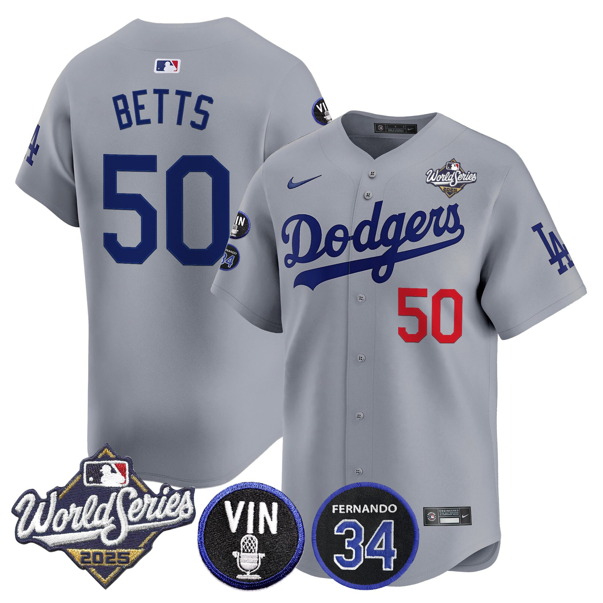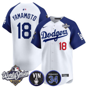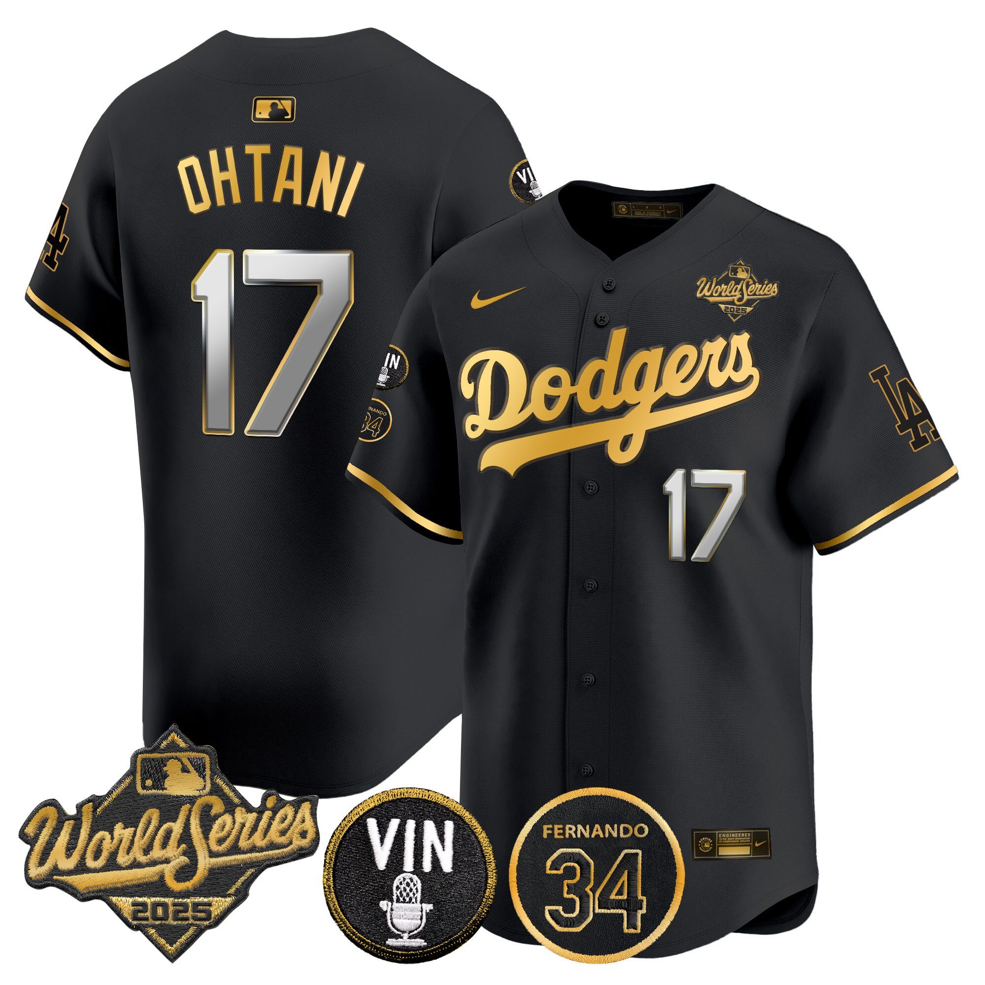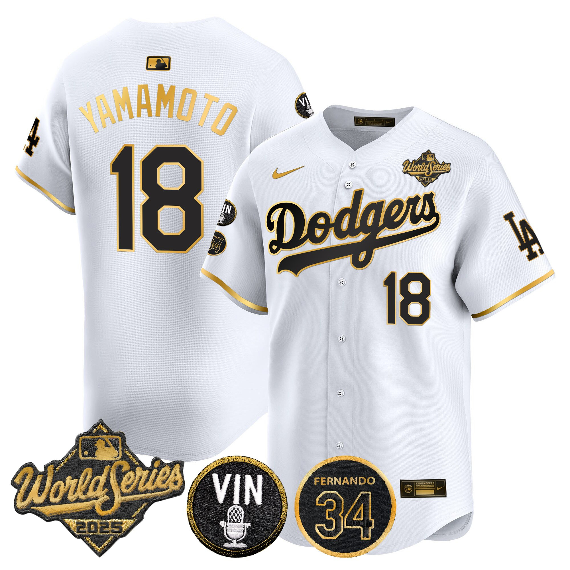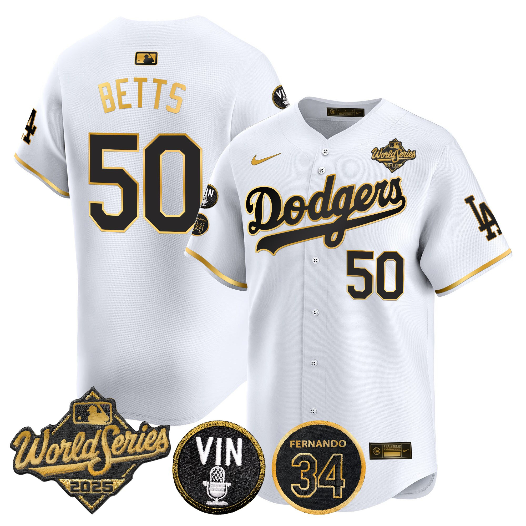 Men’s Dodgers 2025 World Series Vapor Premier Limited Jersey – Vin Scully & Fernando Patch – All Stitched