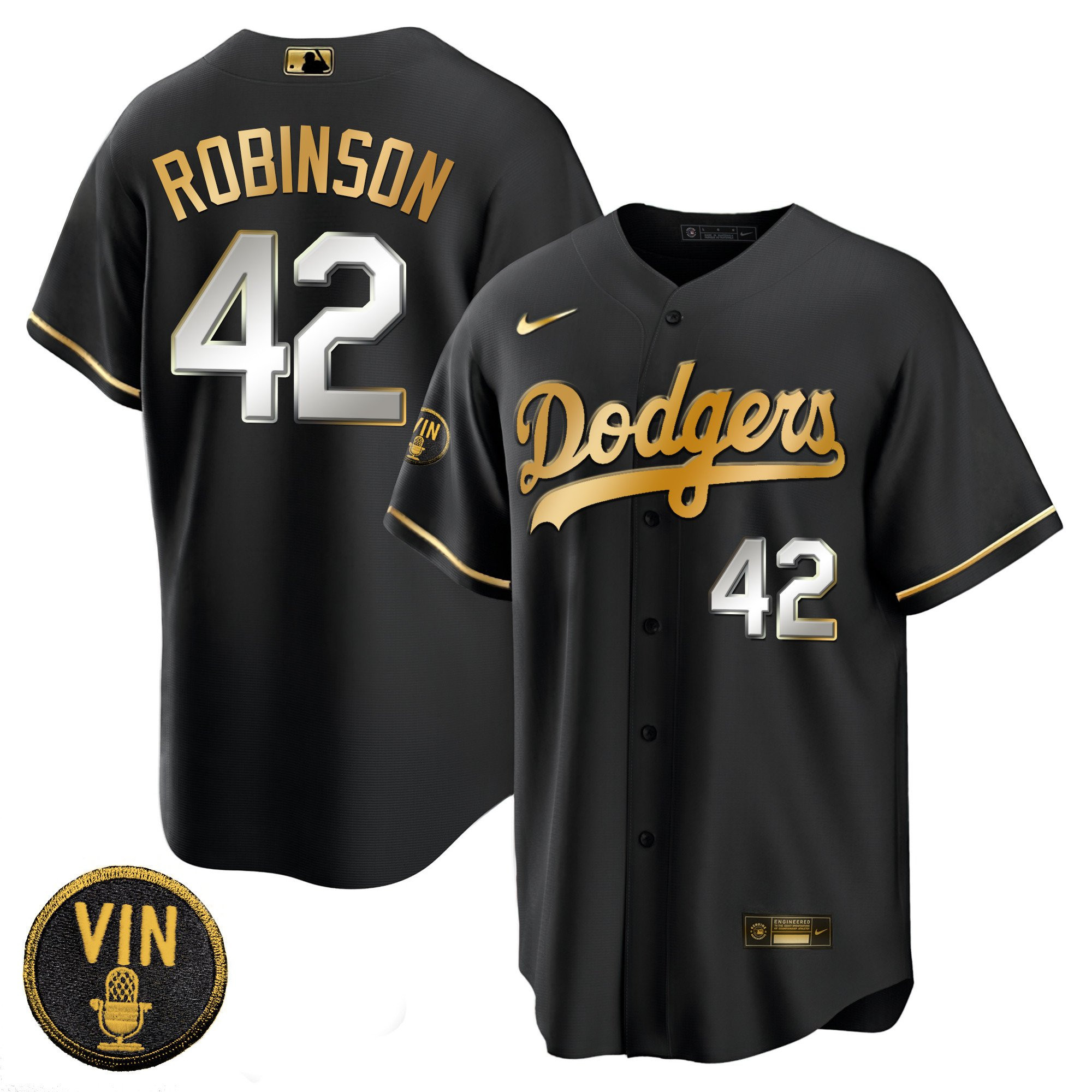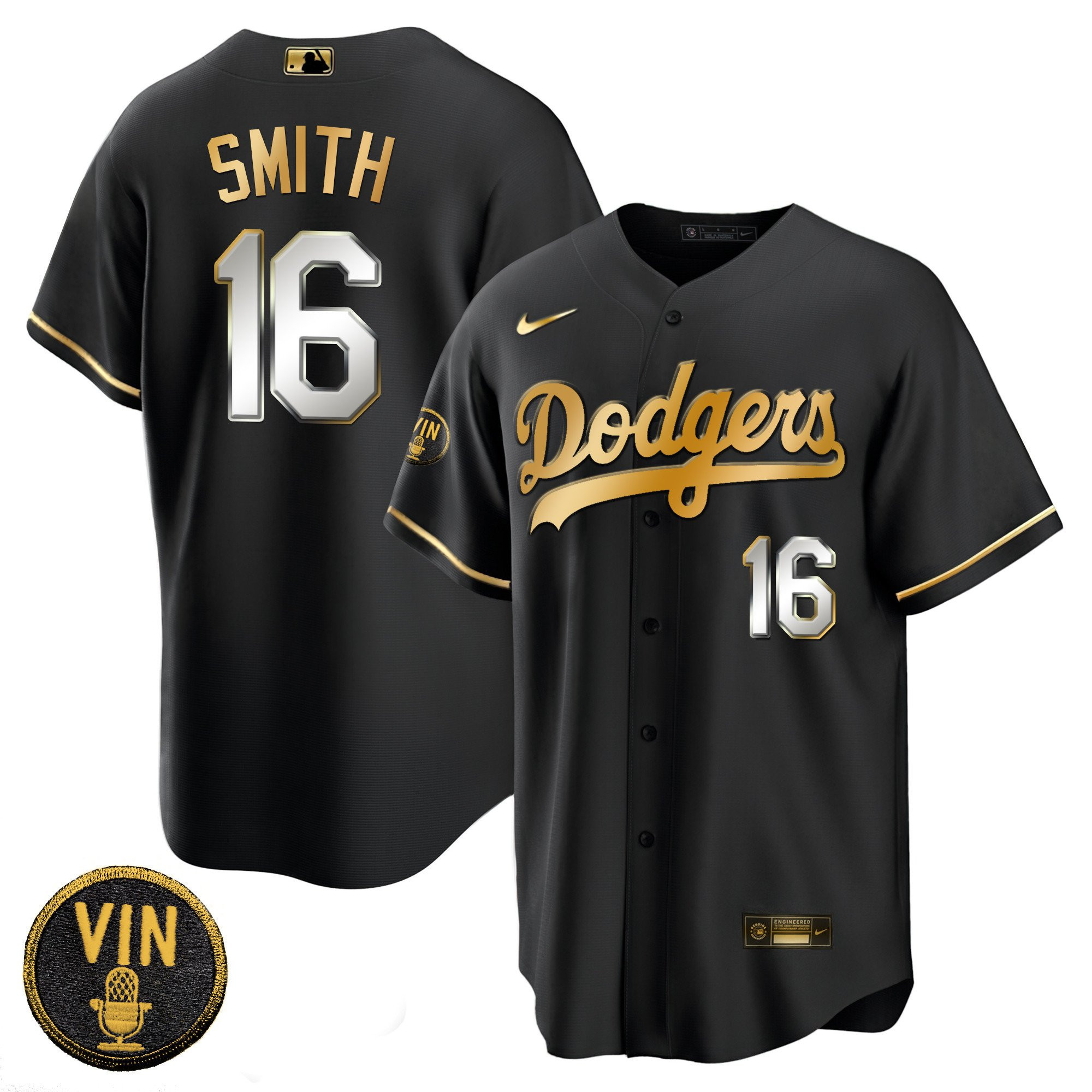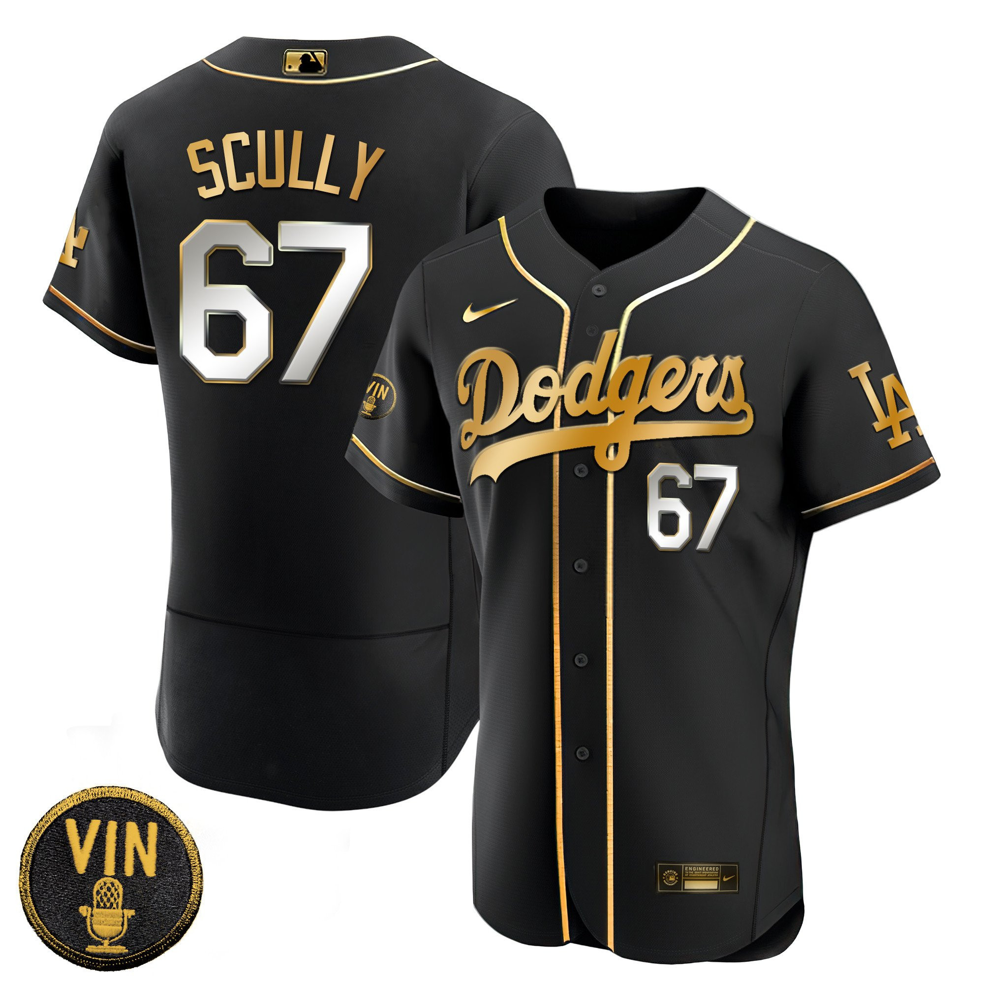 Men’s Dodgers Black Limited Vin Scully Patch Gold Jersey – All Stitched