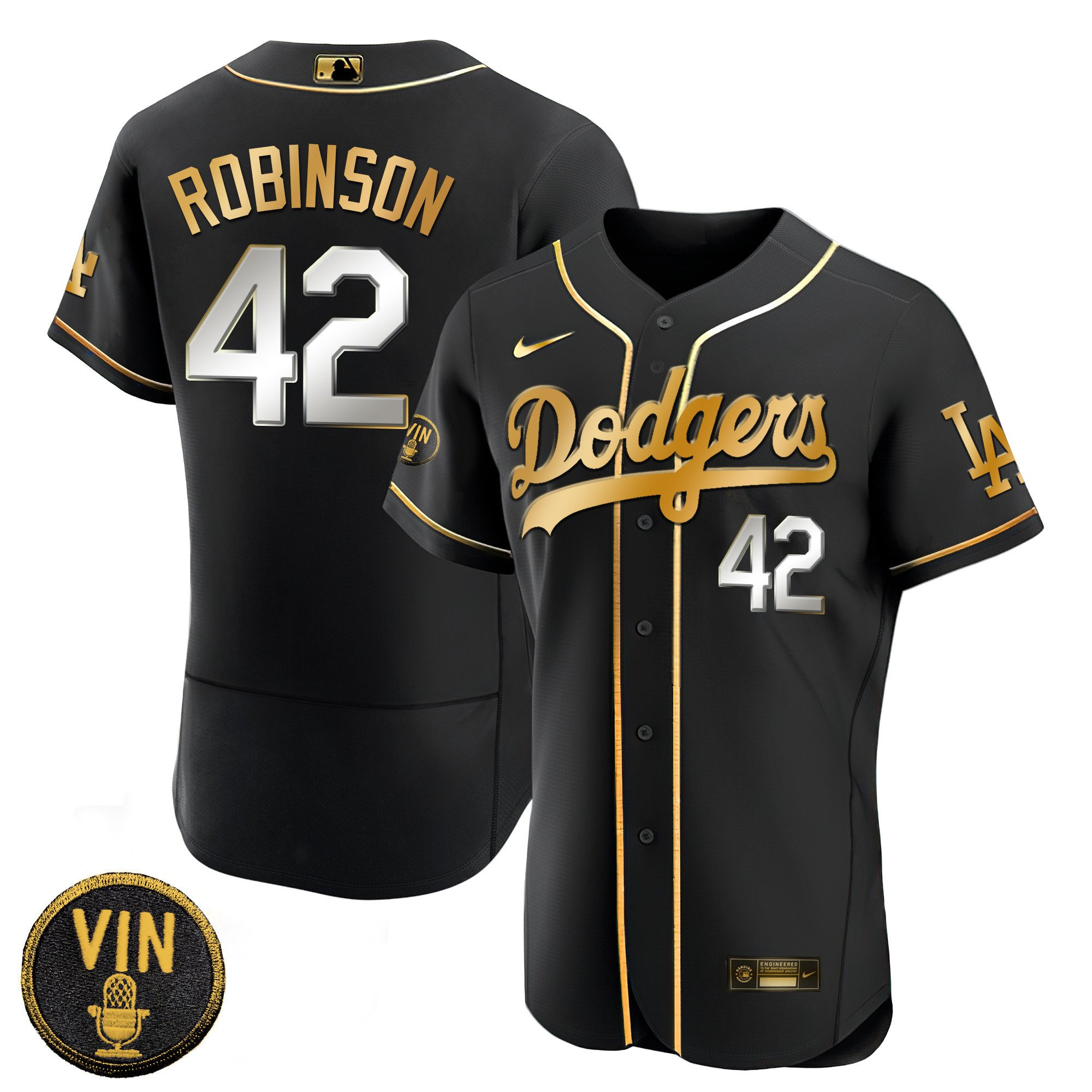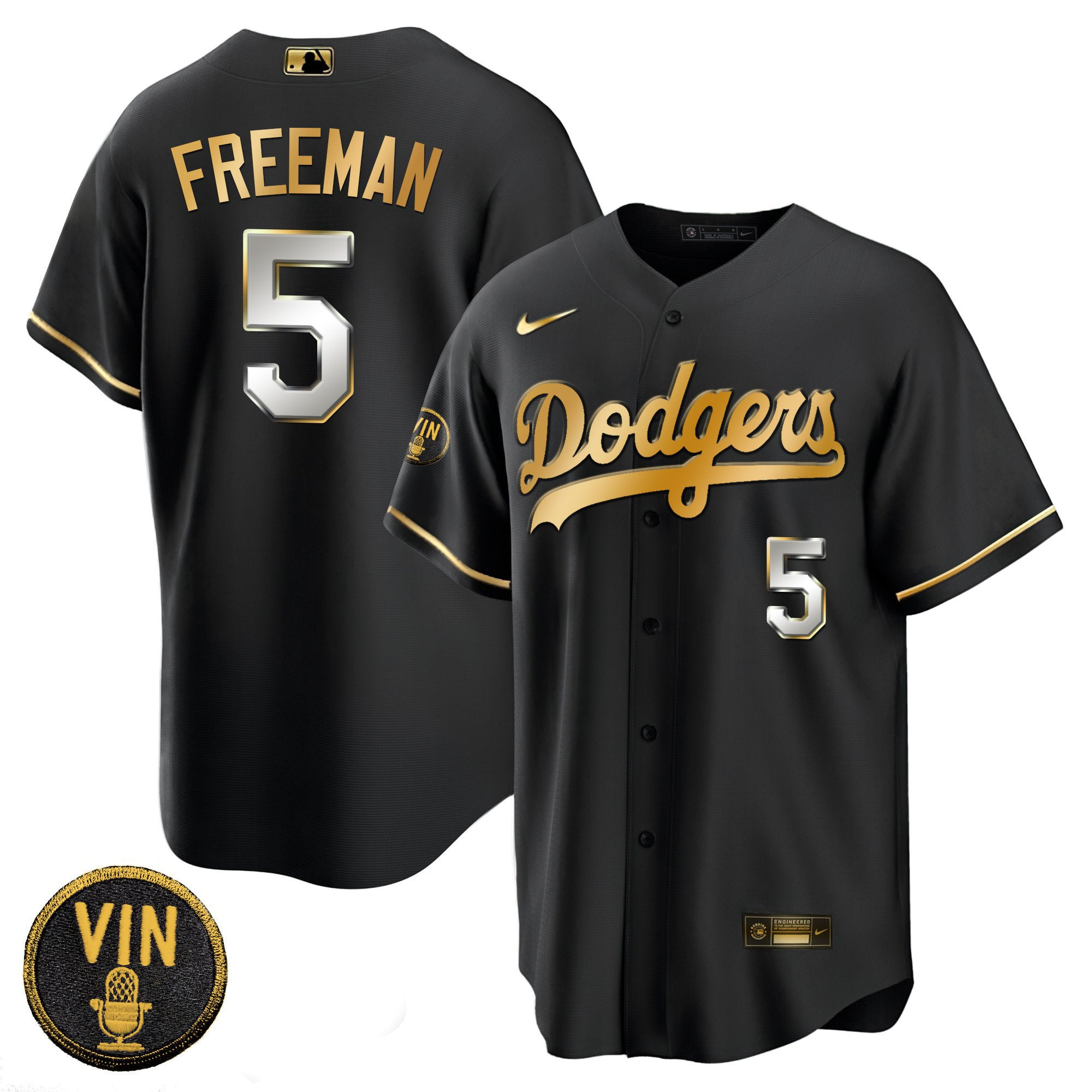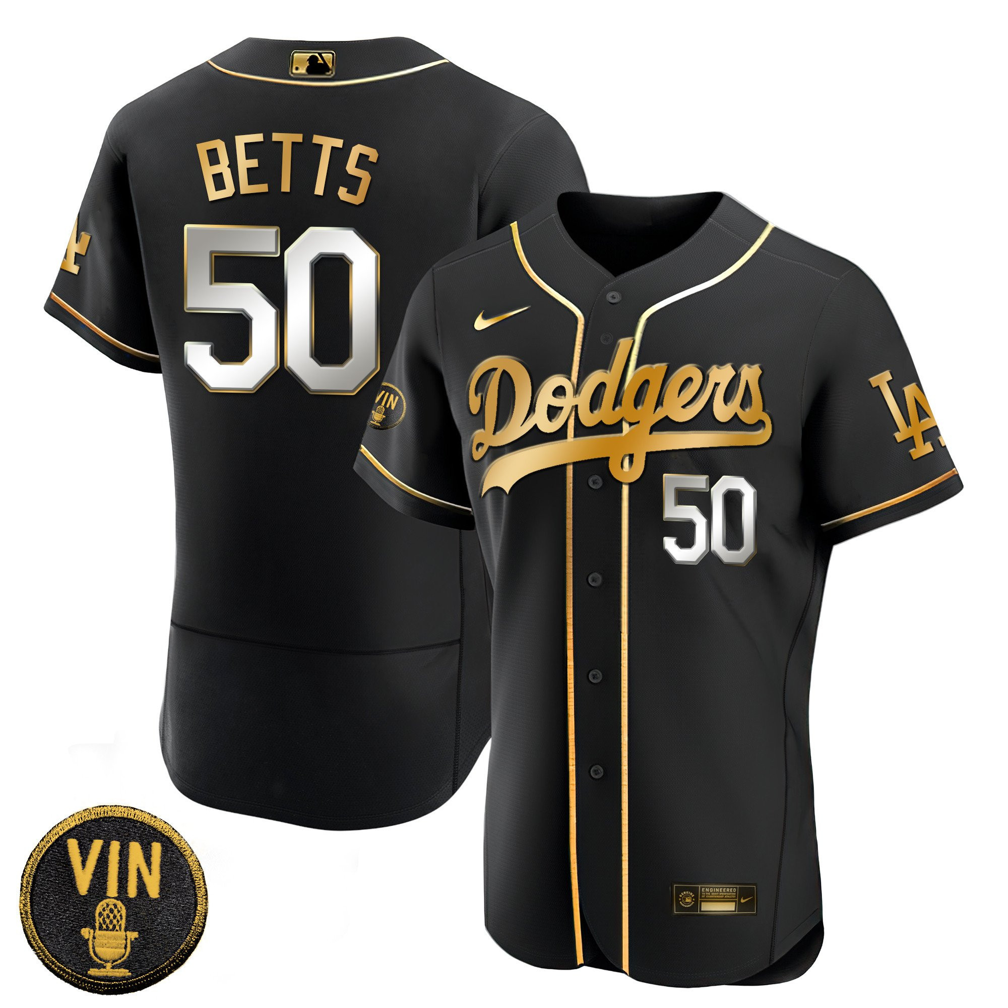 Men’s Dodgers Black Limited Vin Scully Patch Gold Jersey – All Stitched