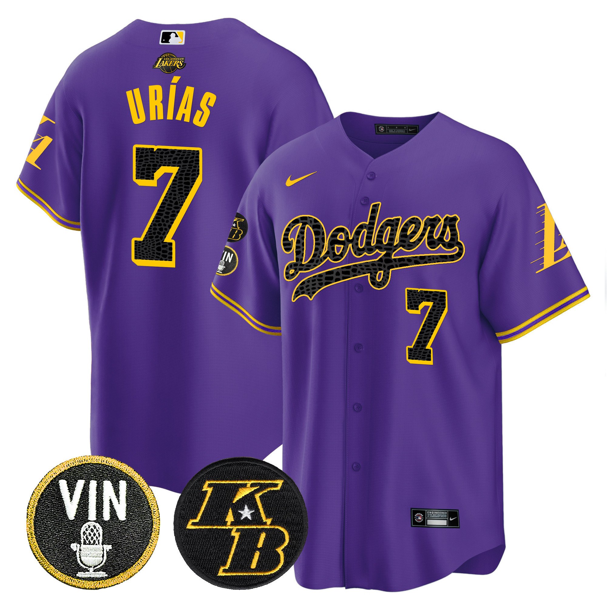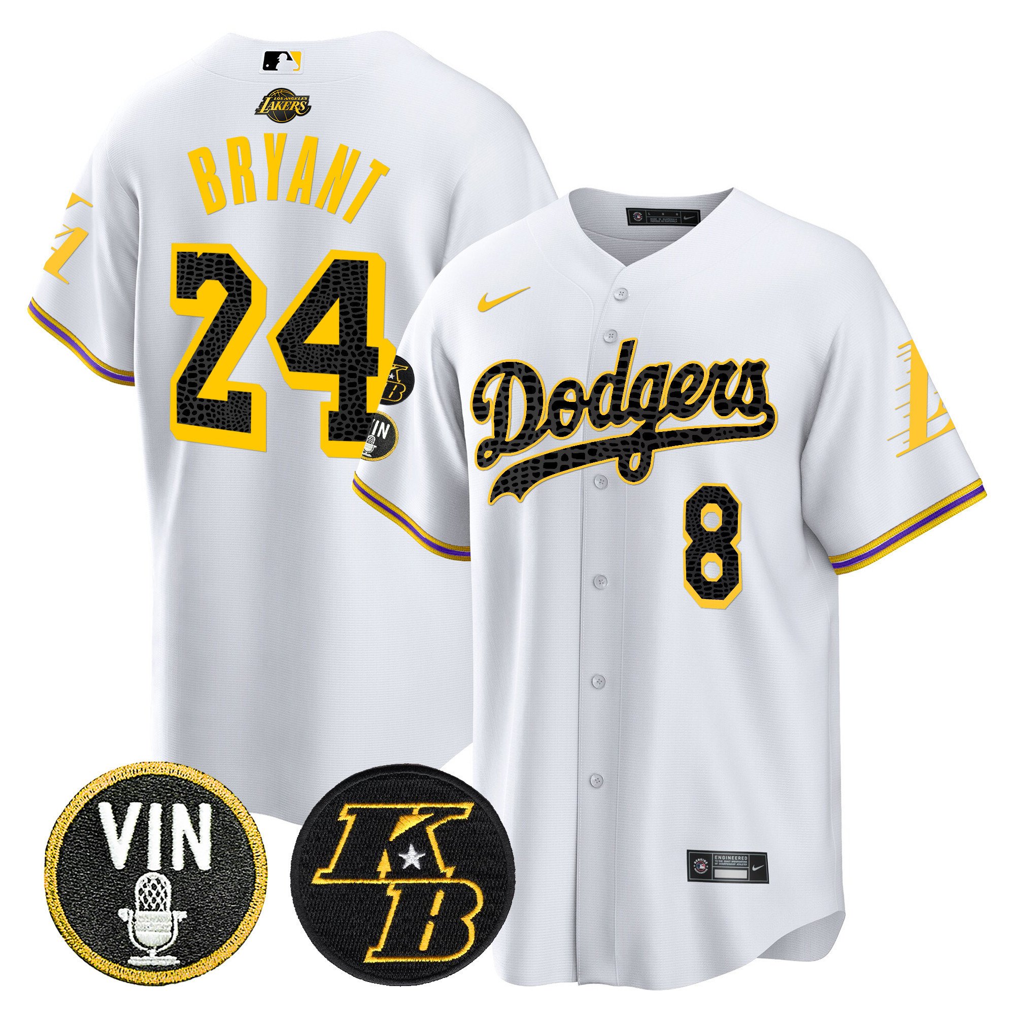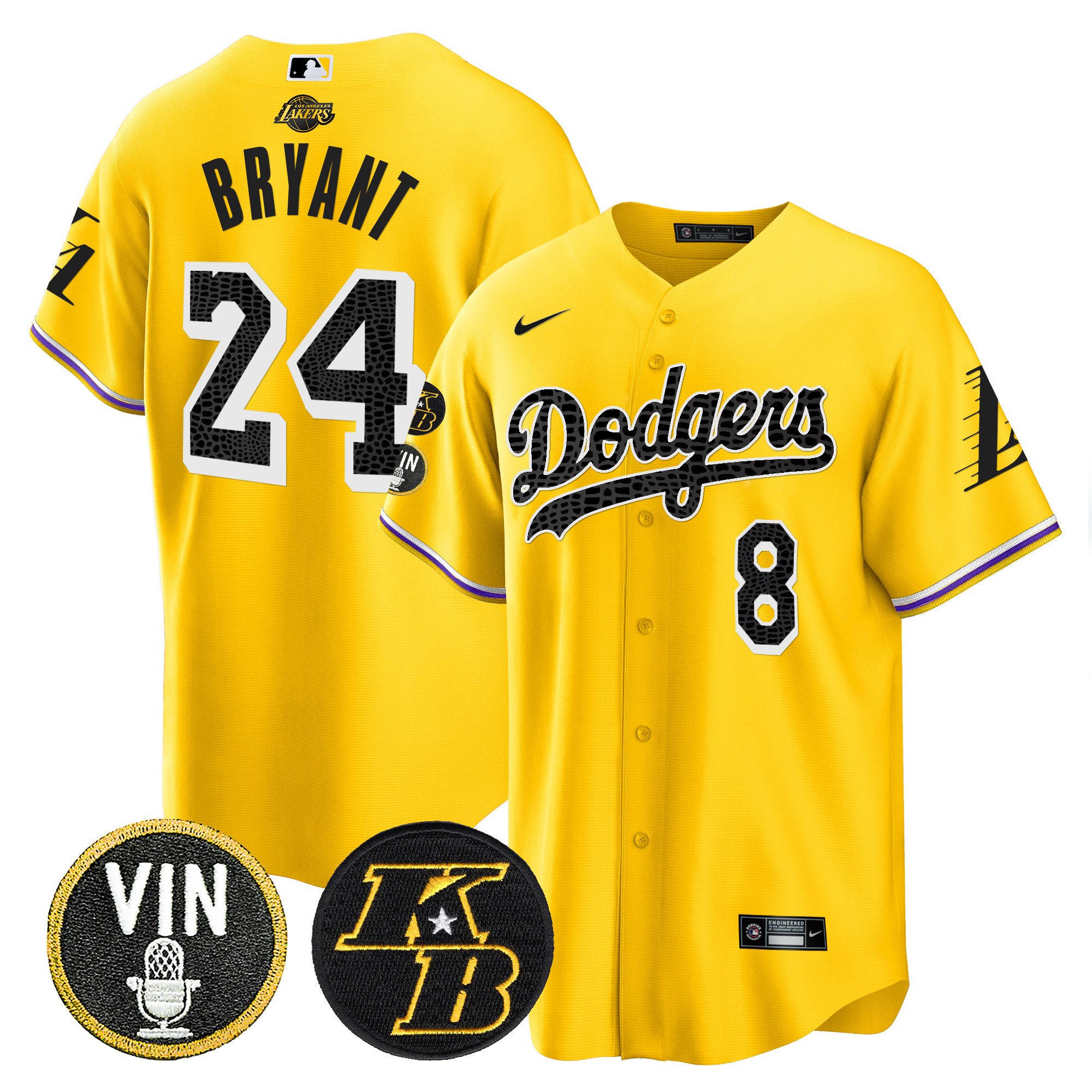Men’s Dodgers Bryant & Vin Patch Cool Base Mamba Jersey – All Stitched