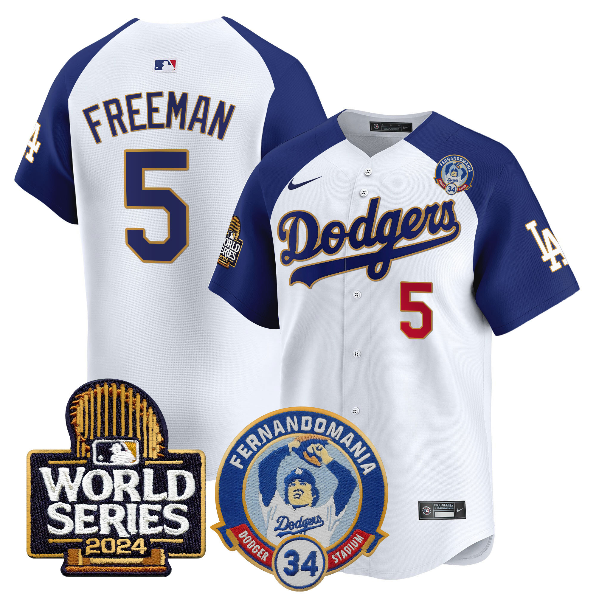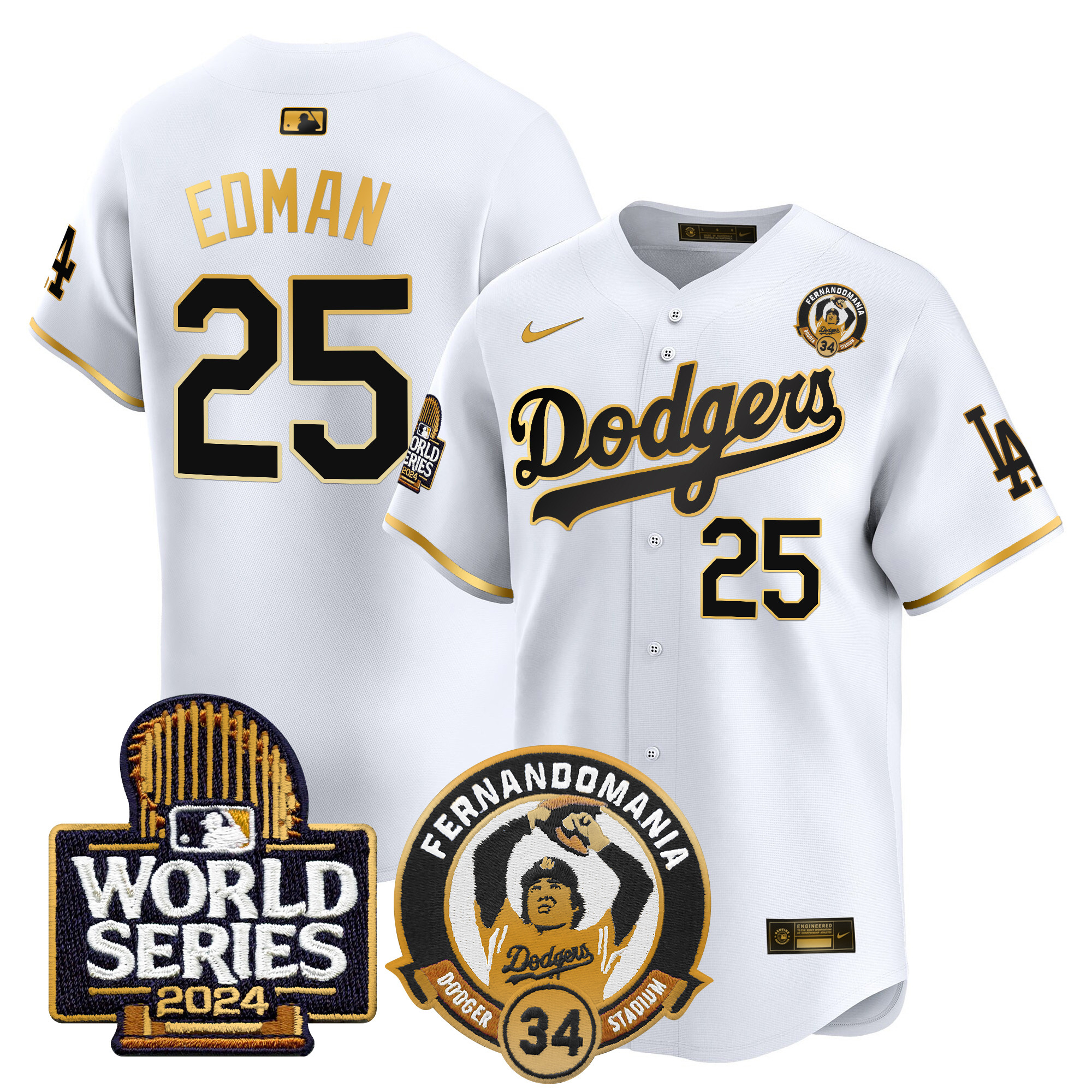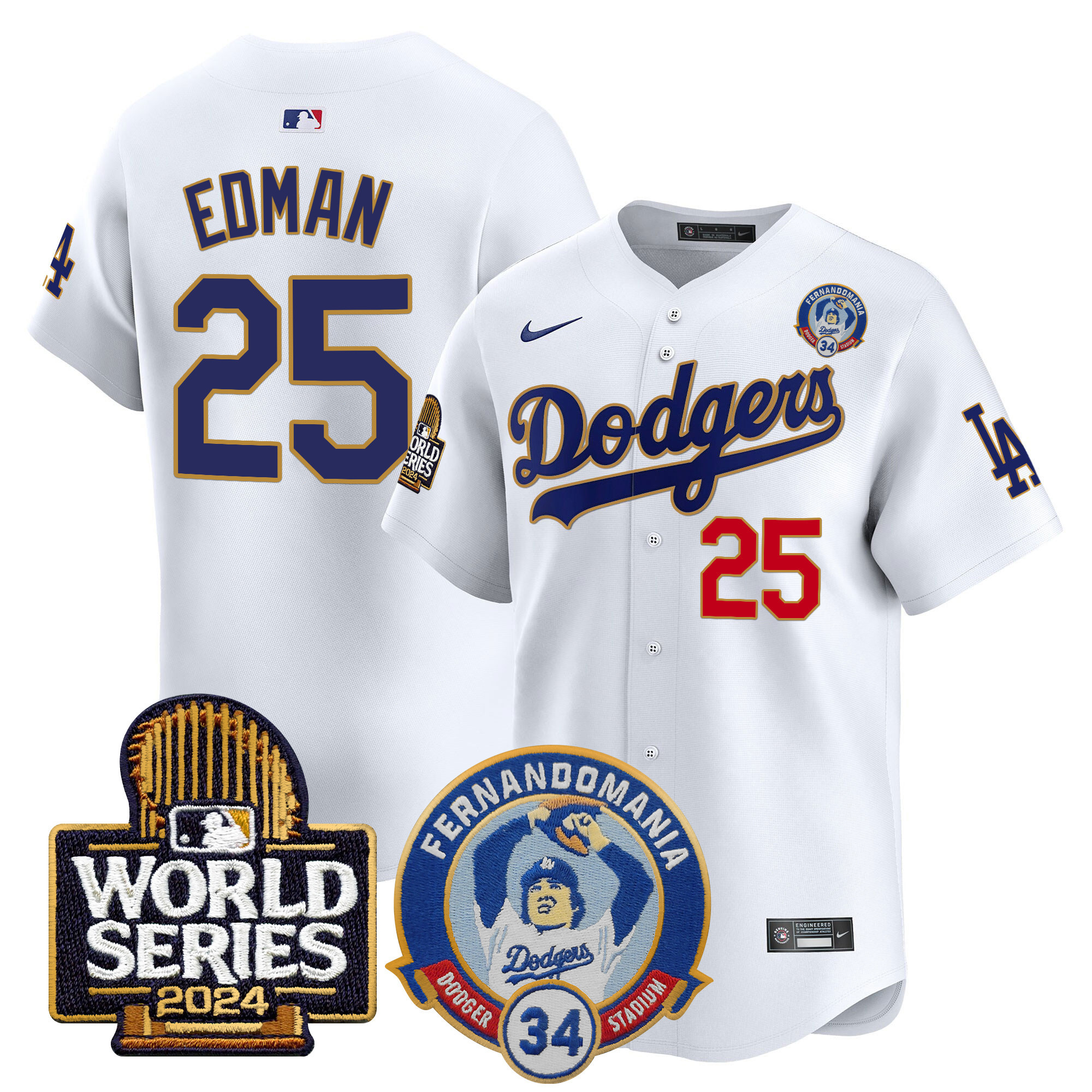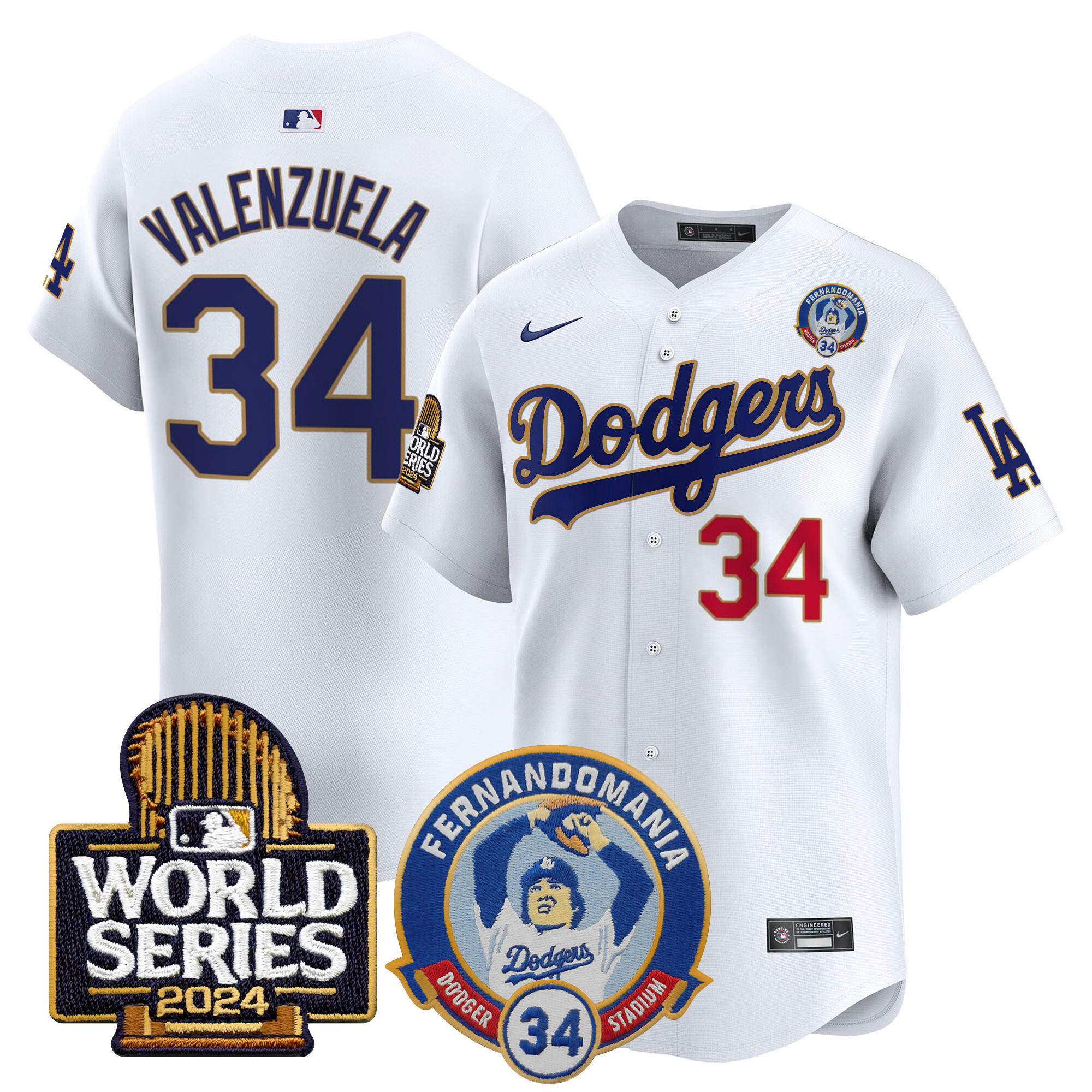 Men’s Dodgers Fernando Valenzuela & 2024 World Series Patch Vapor Premier Limited Jersey – All Stitched