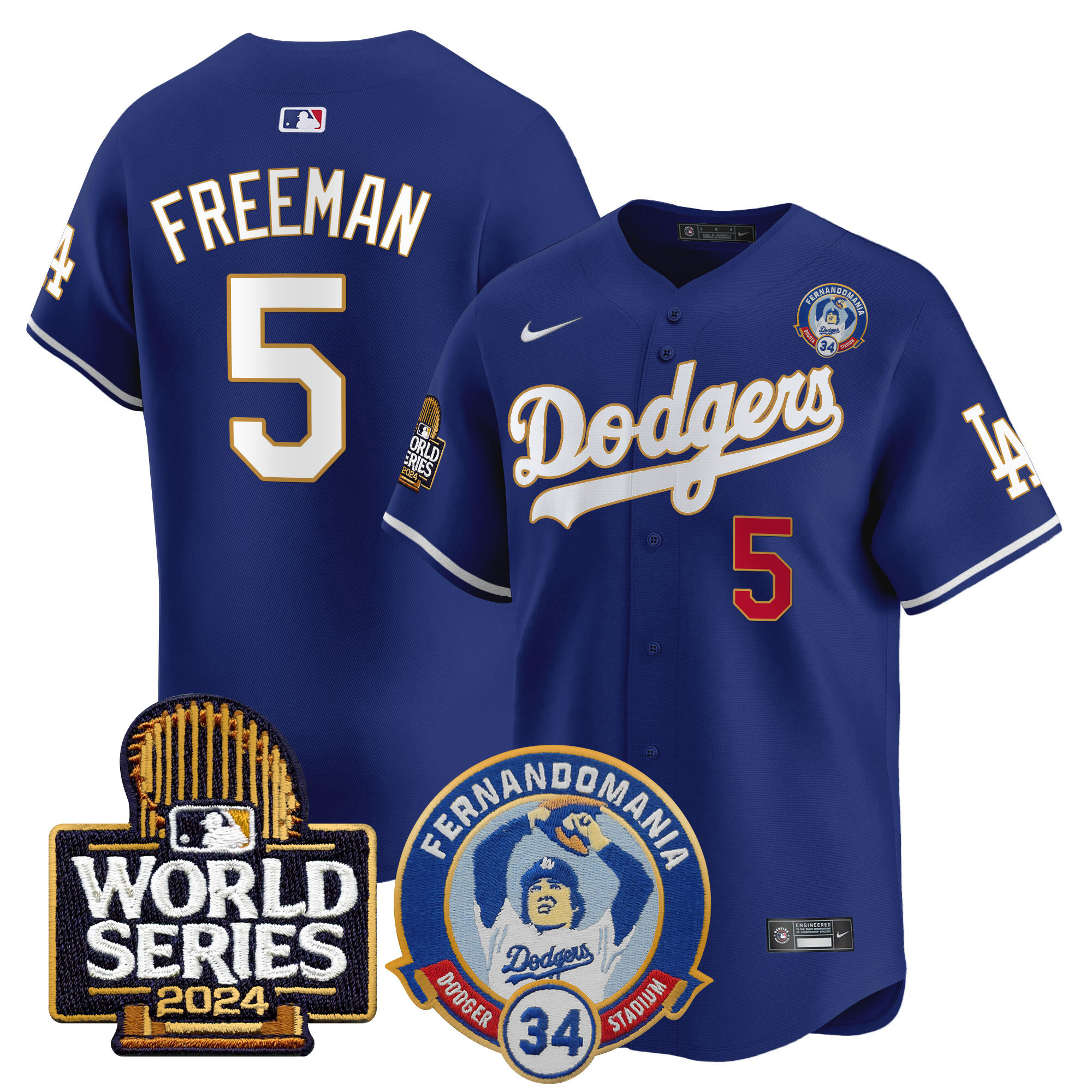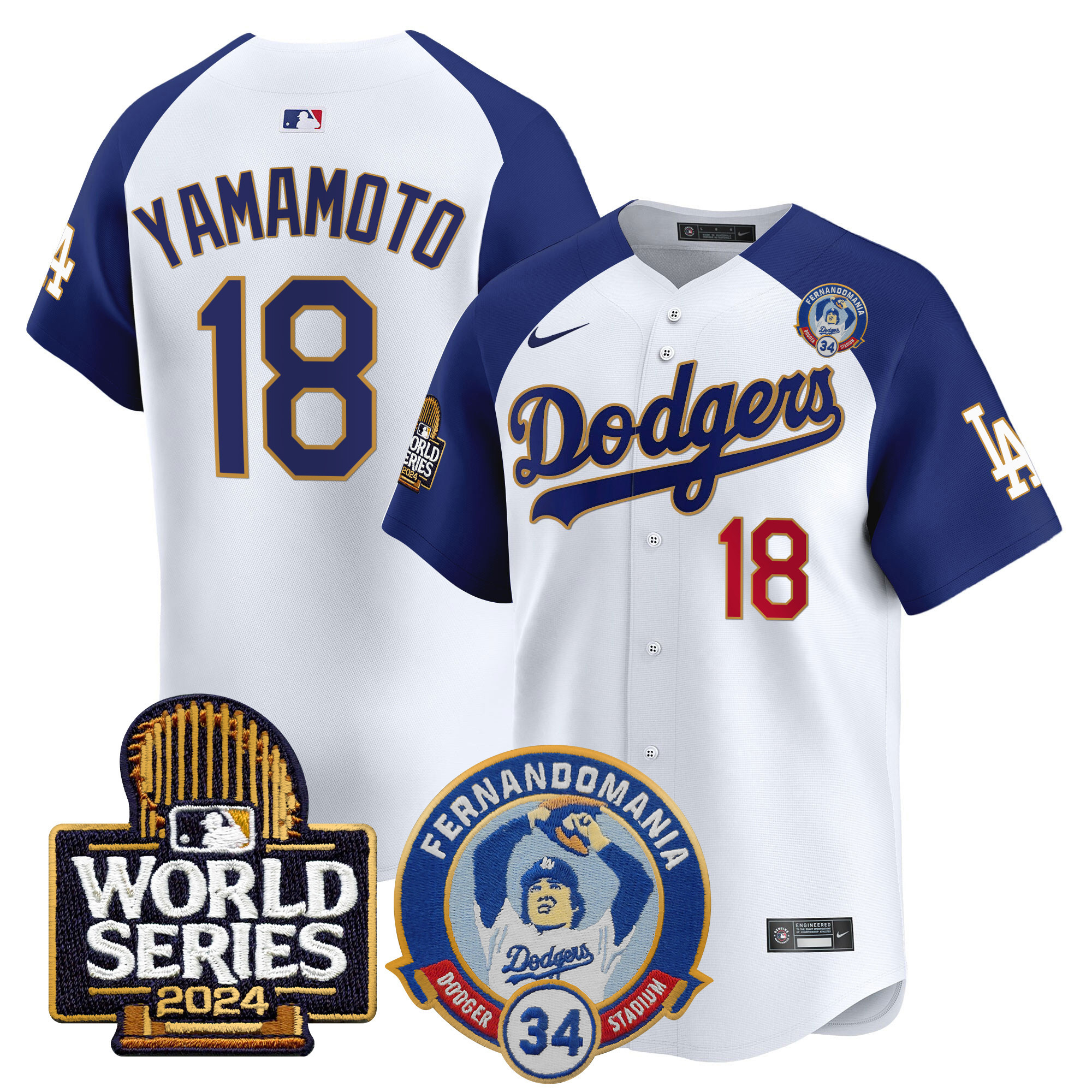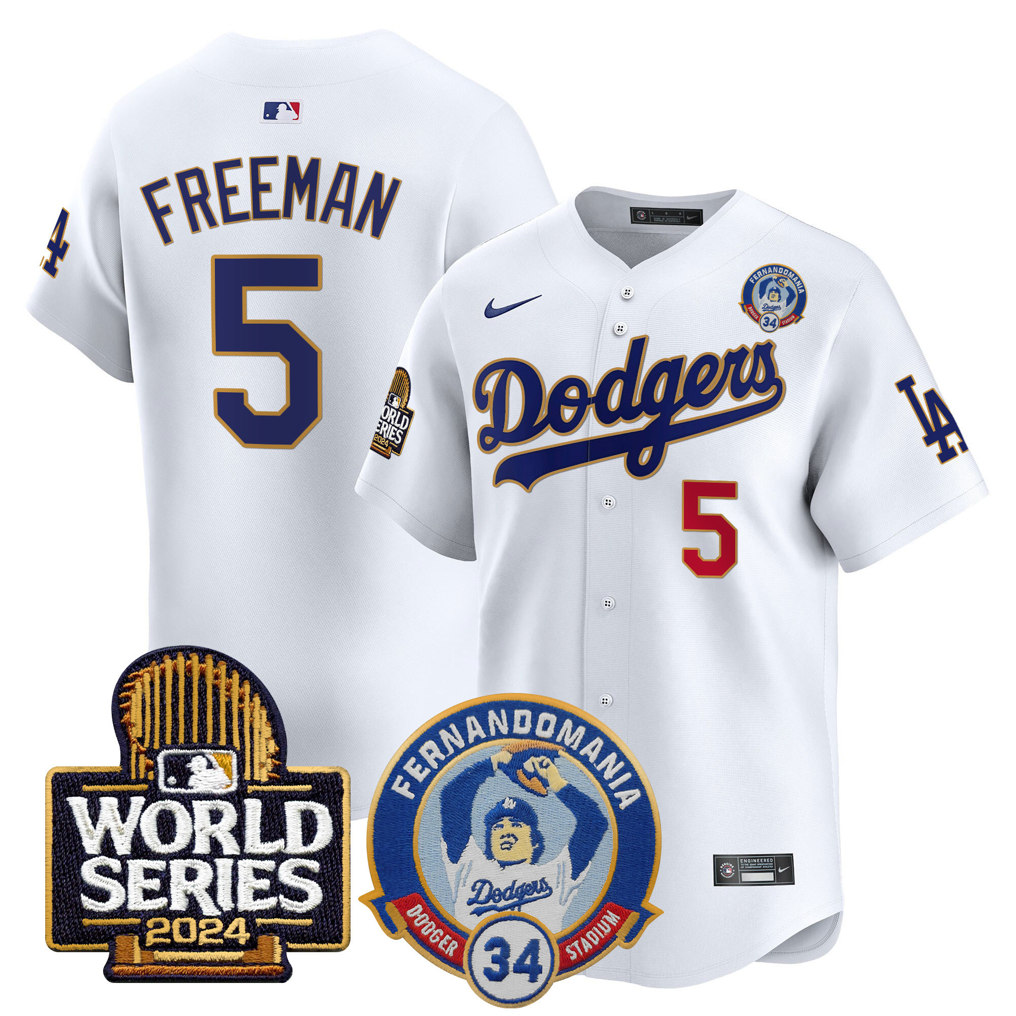 Men’s Dodgers Fernando Valenzuela & 2024 World Series Patch Vapor Premier Limited Jersey – All Stitched