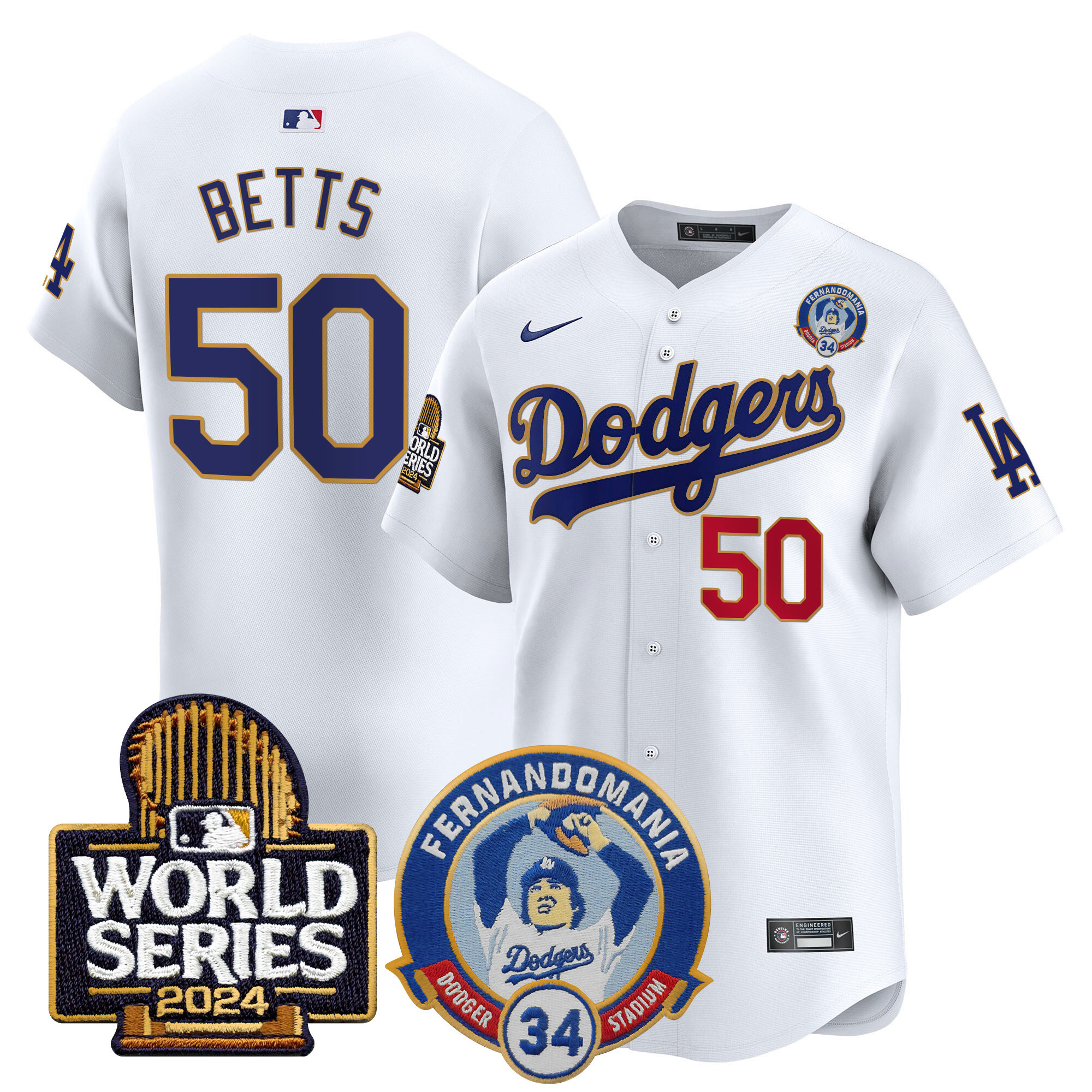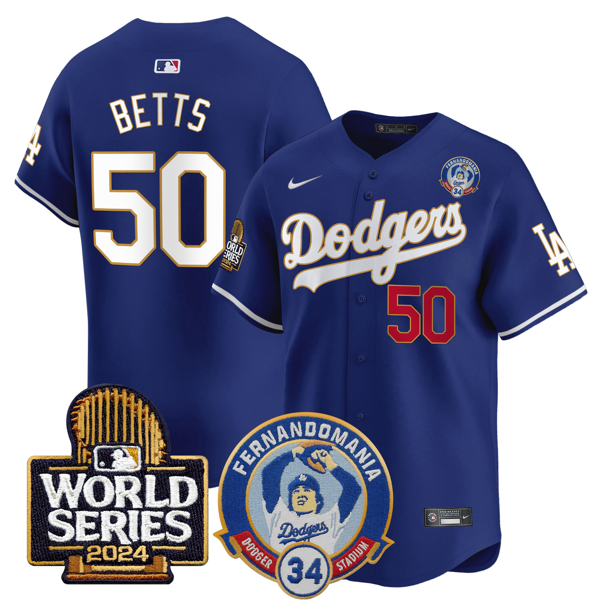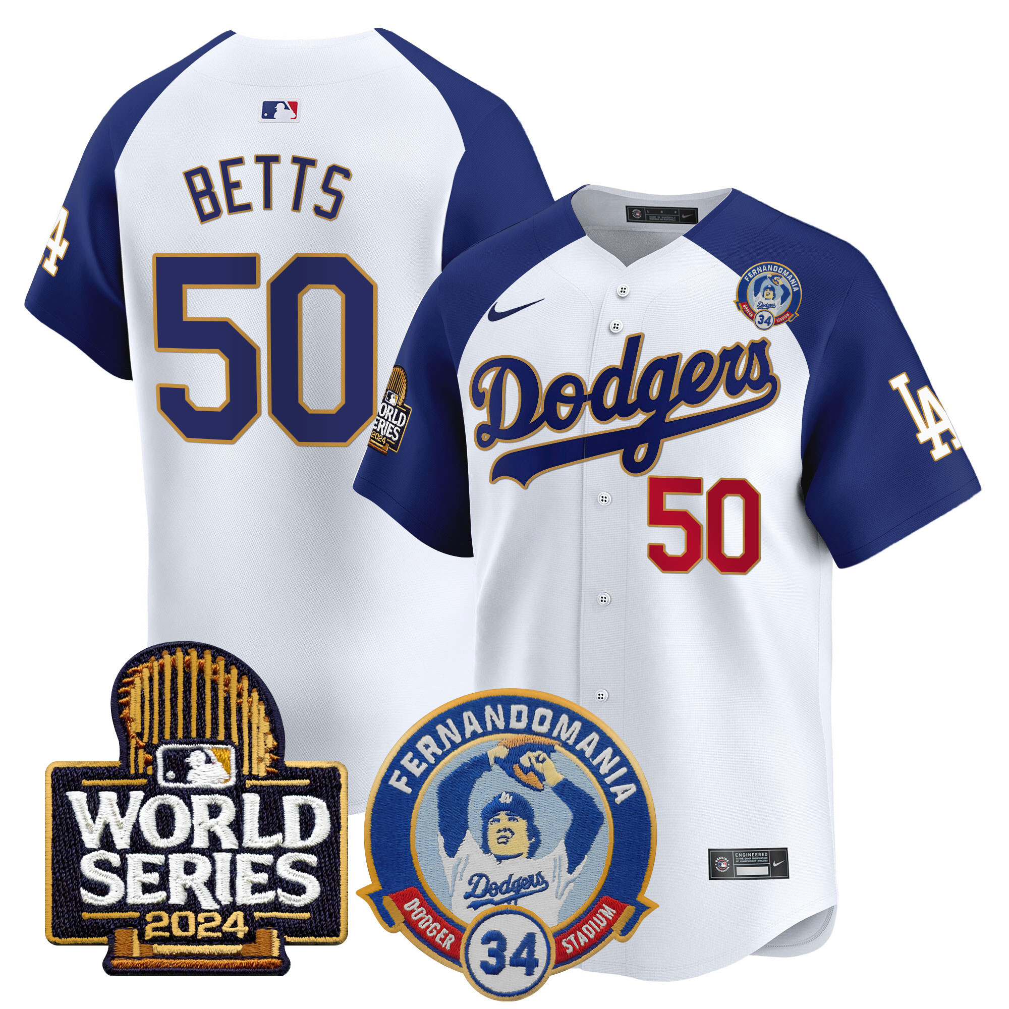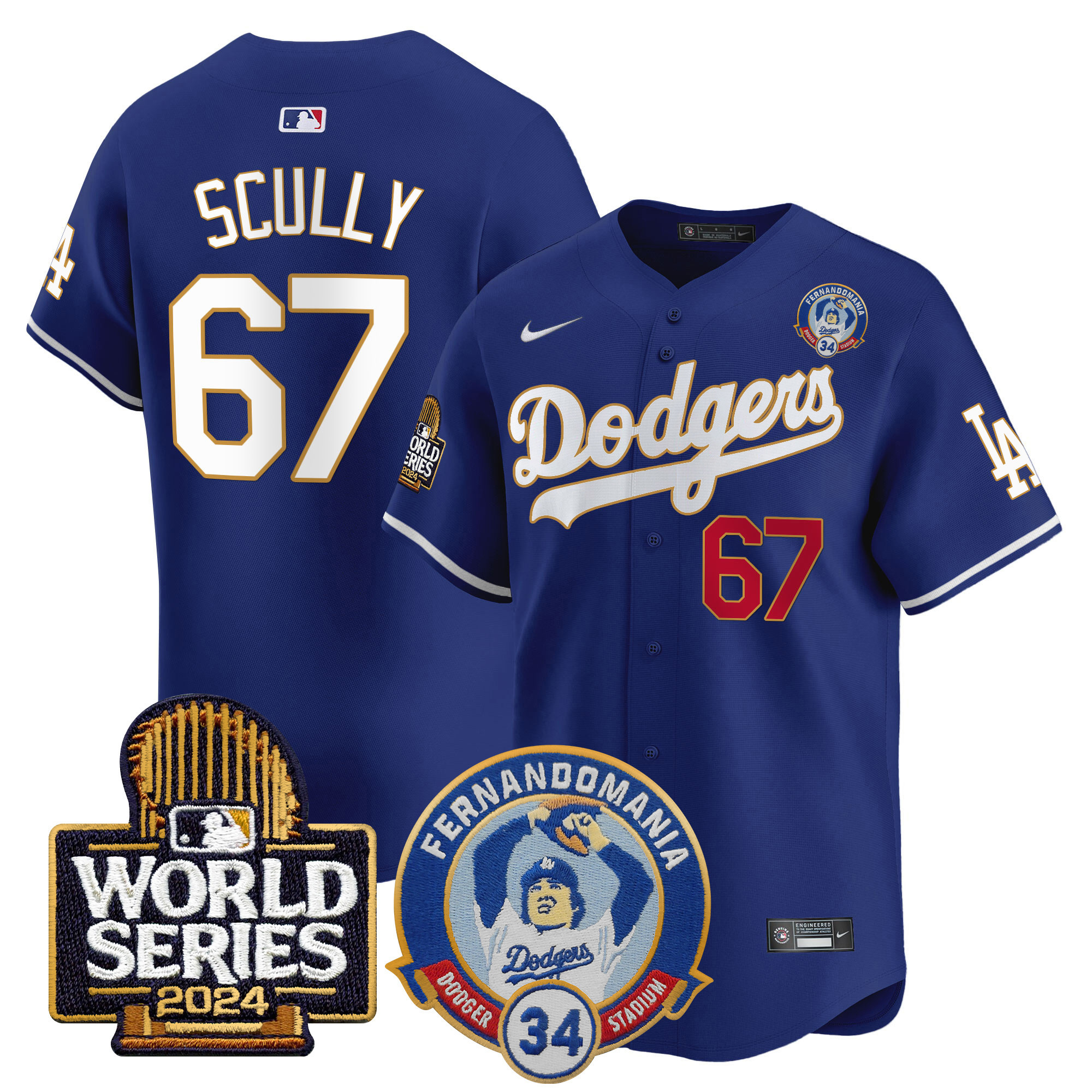 Men’s Dodgers Fernando Valenzuela & 2024 World Series Patch Vapor Premier Limited Jersey – All Stitched