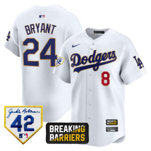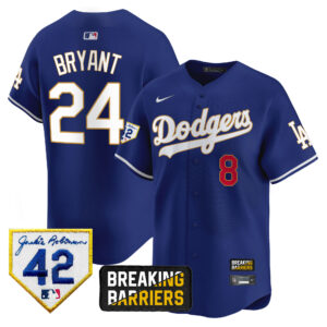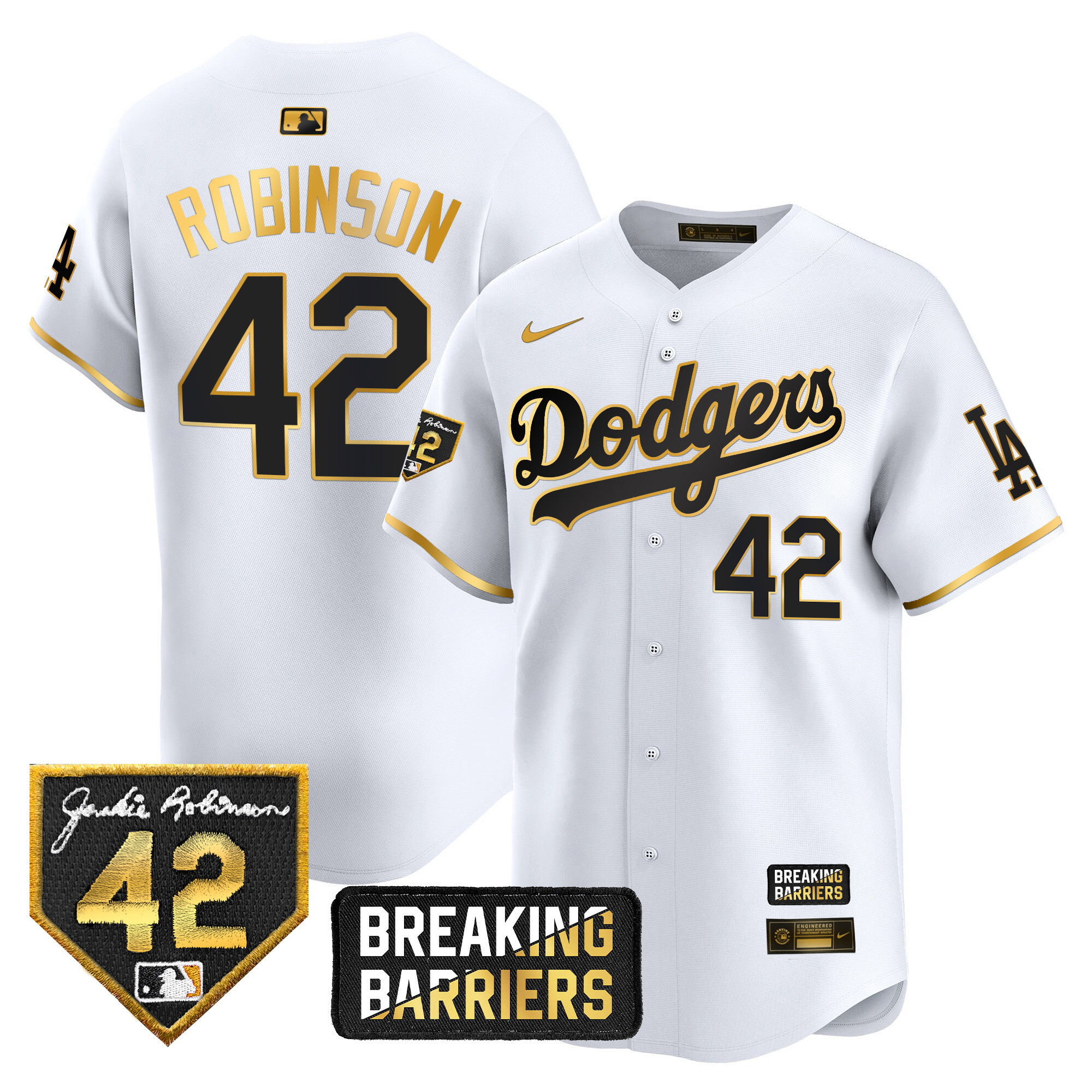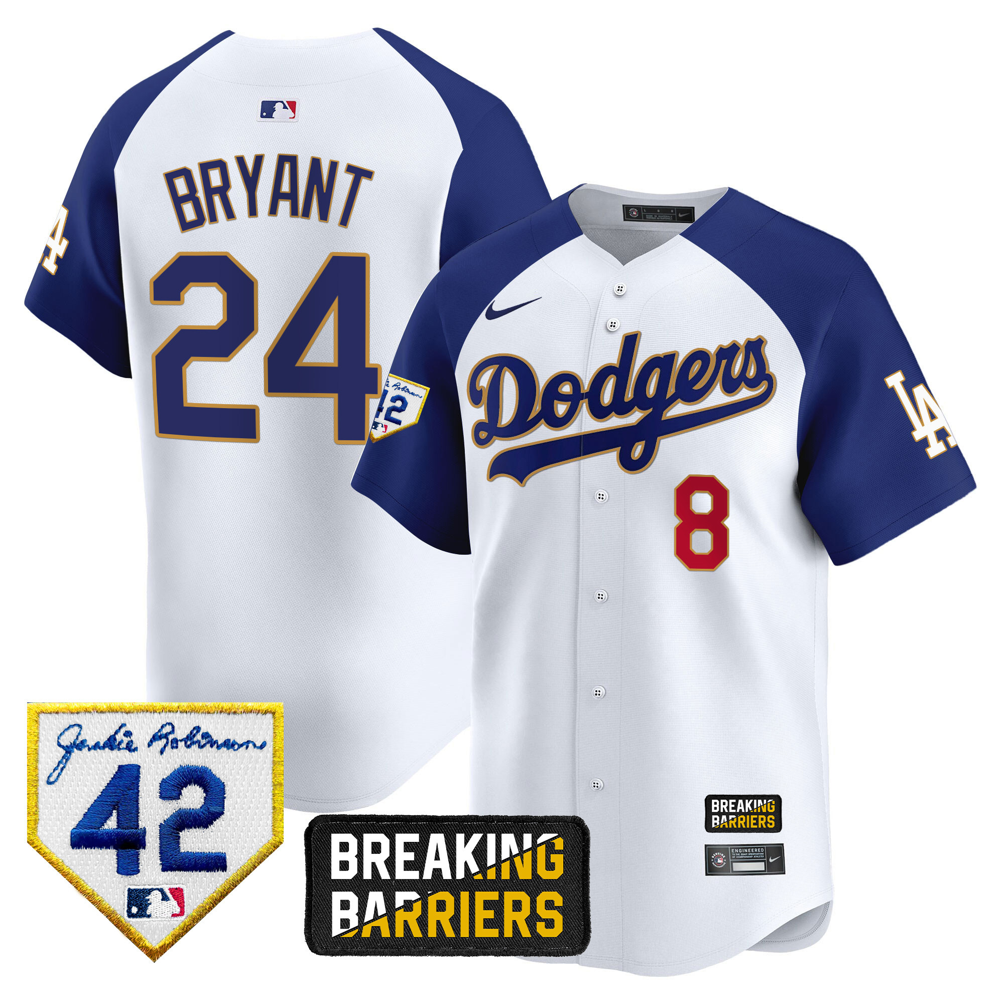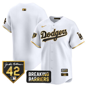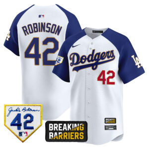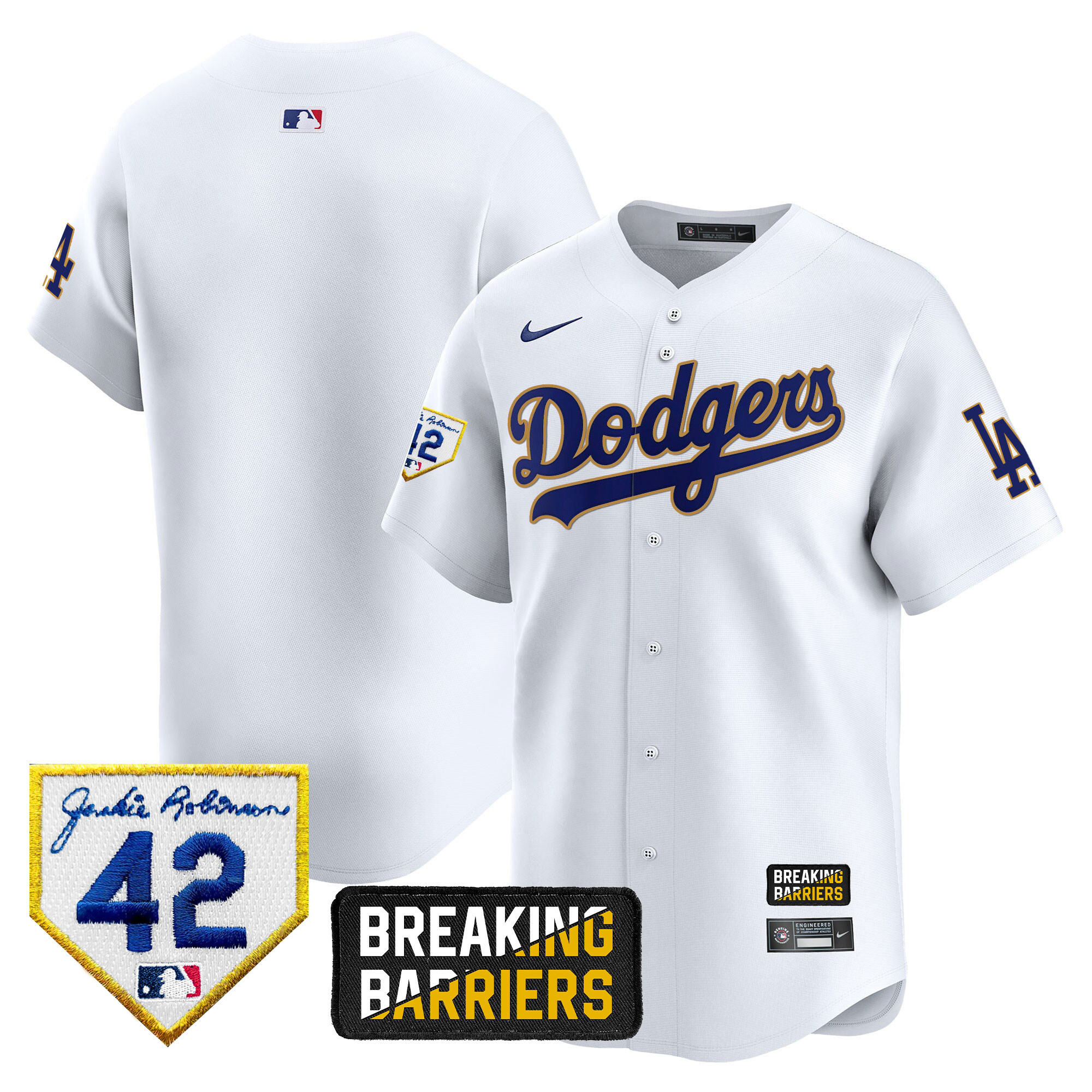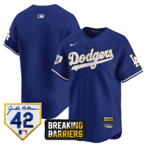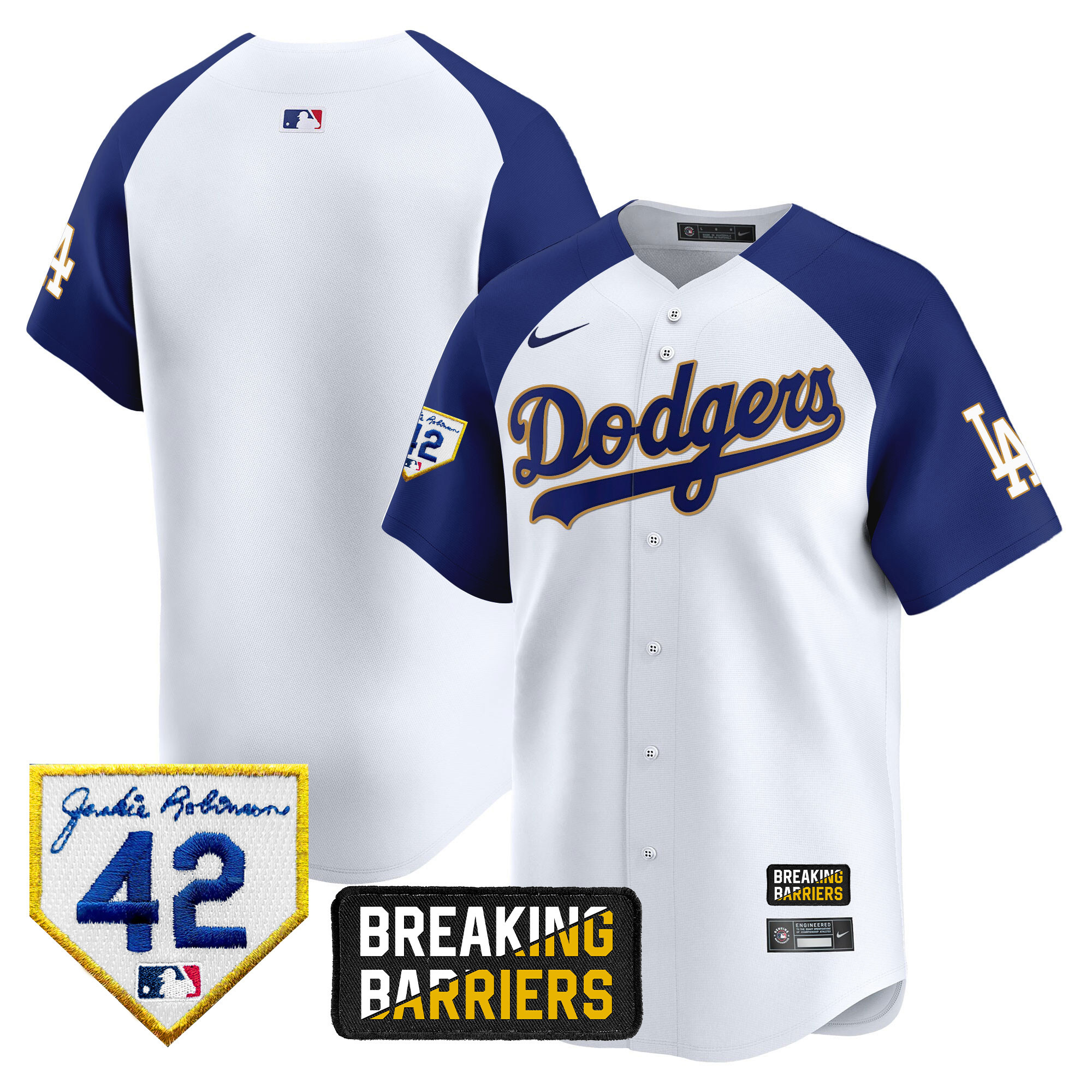 Men’s Dodgers Jackie Robinson Breaking Barriers Patch Vapor Premier Limited Jersey – All Stitched