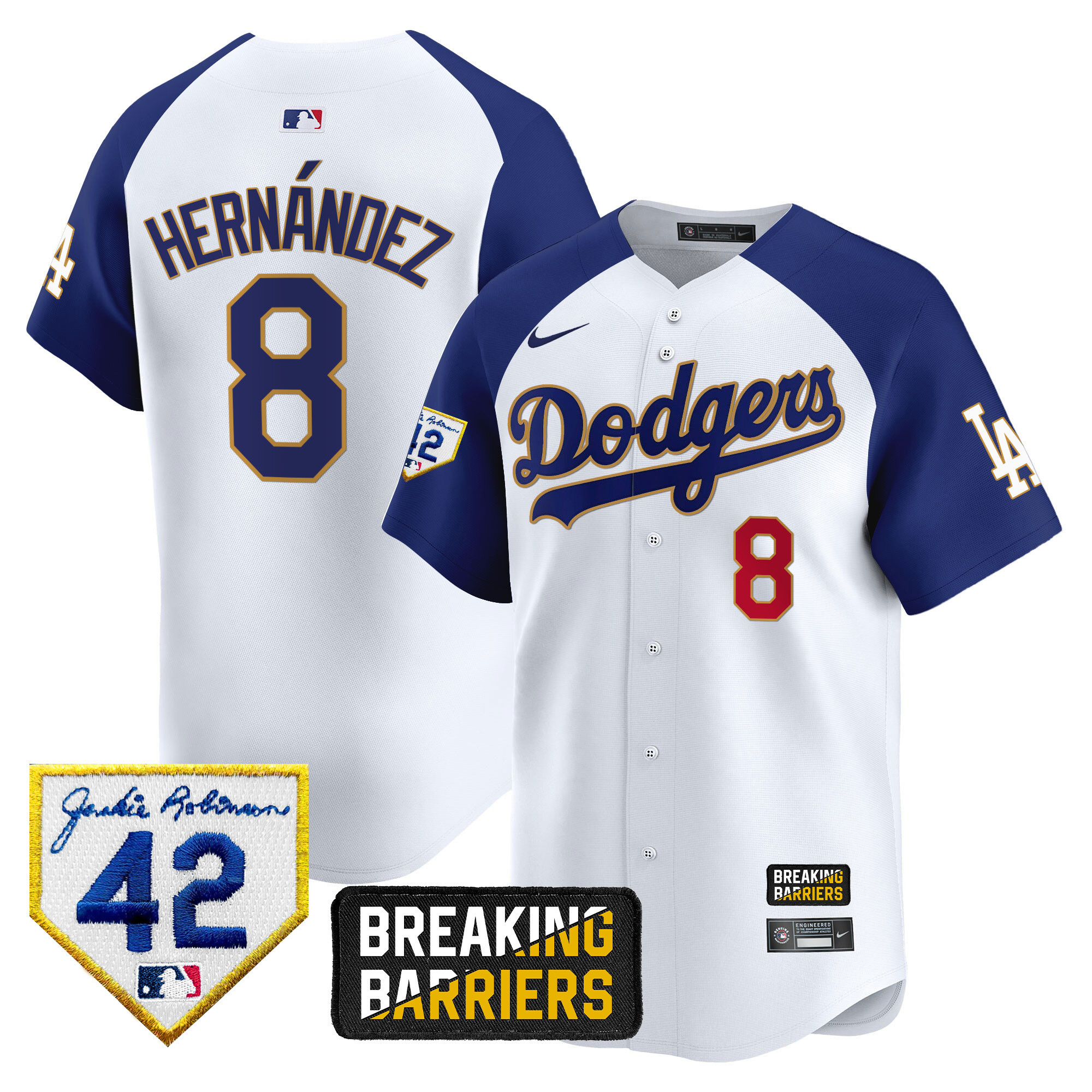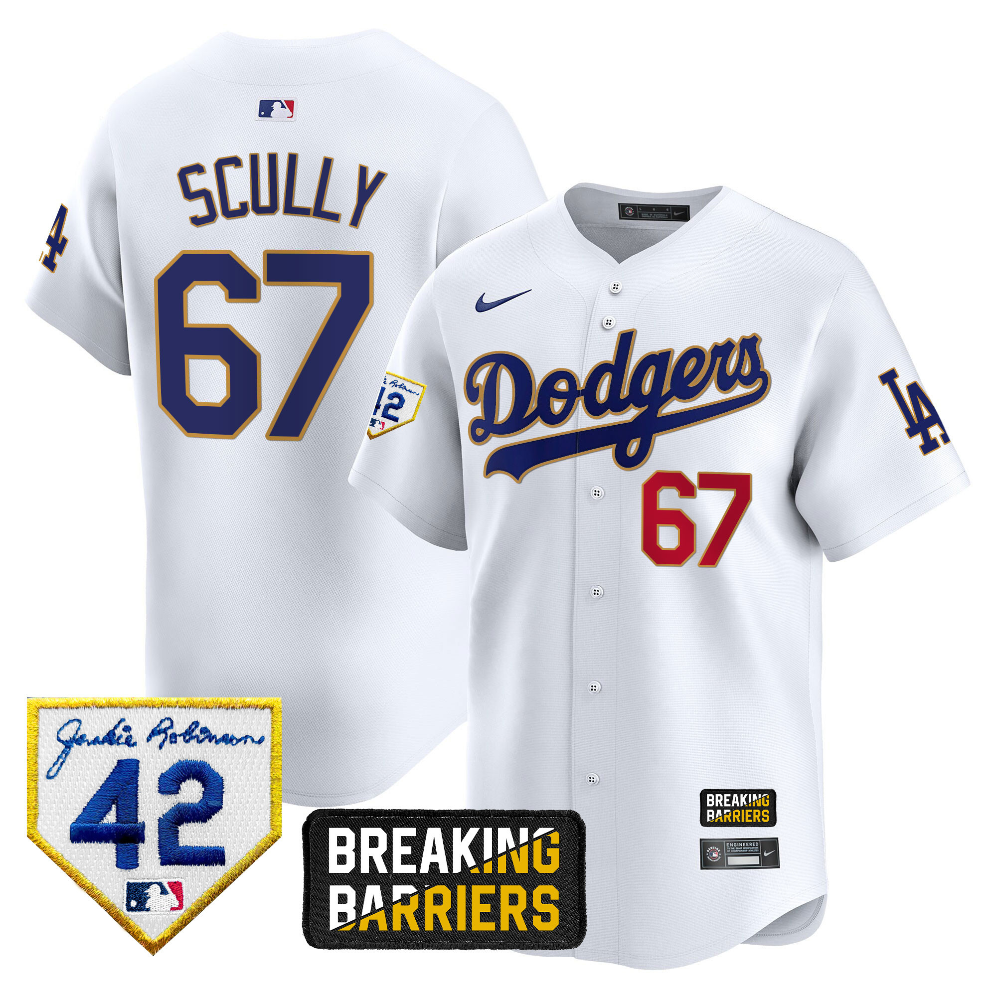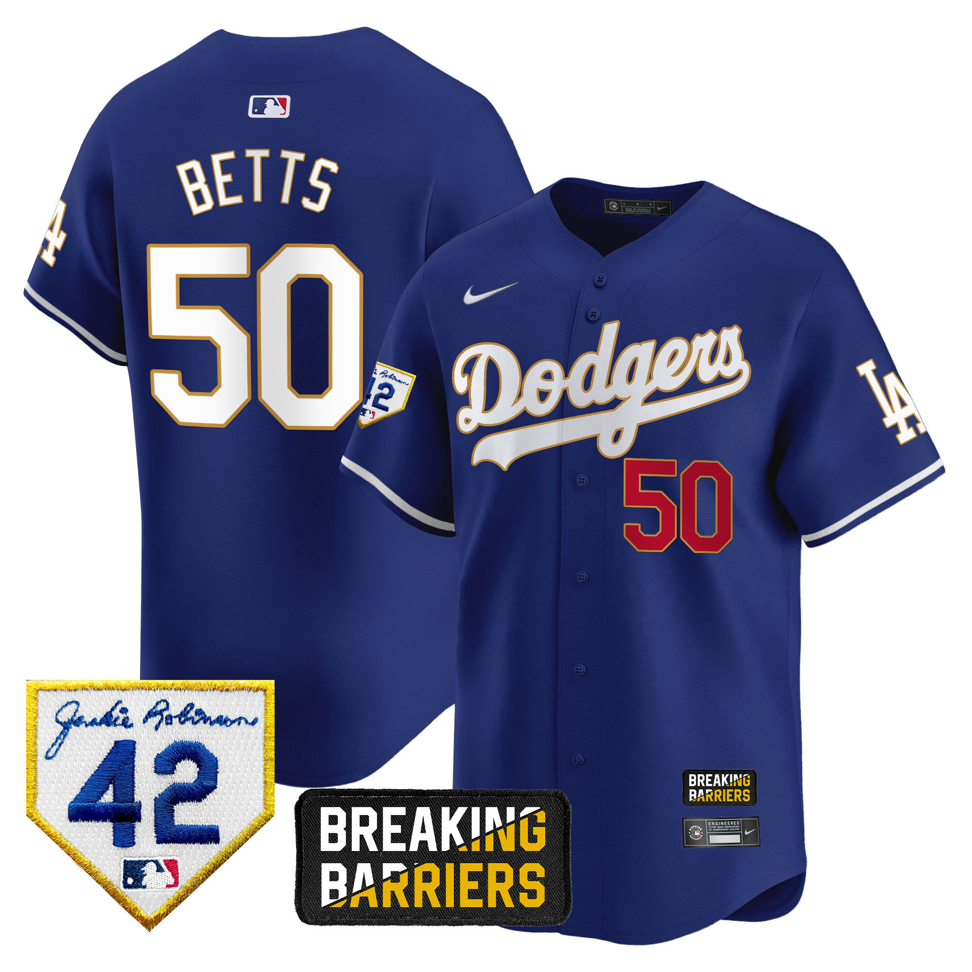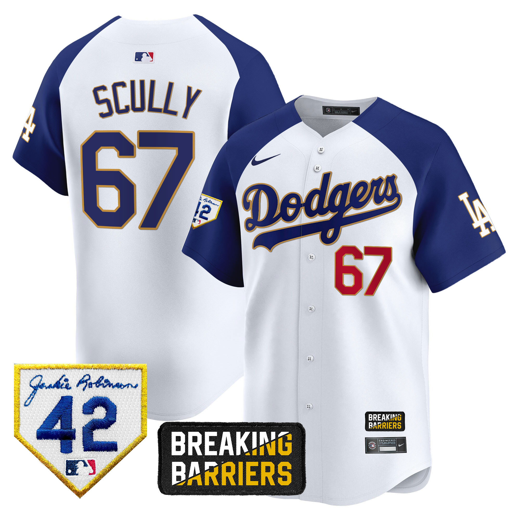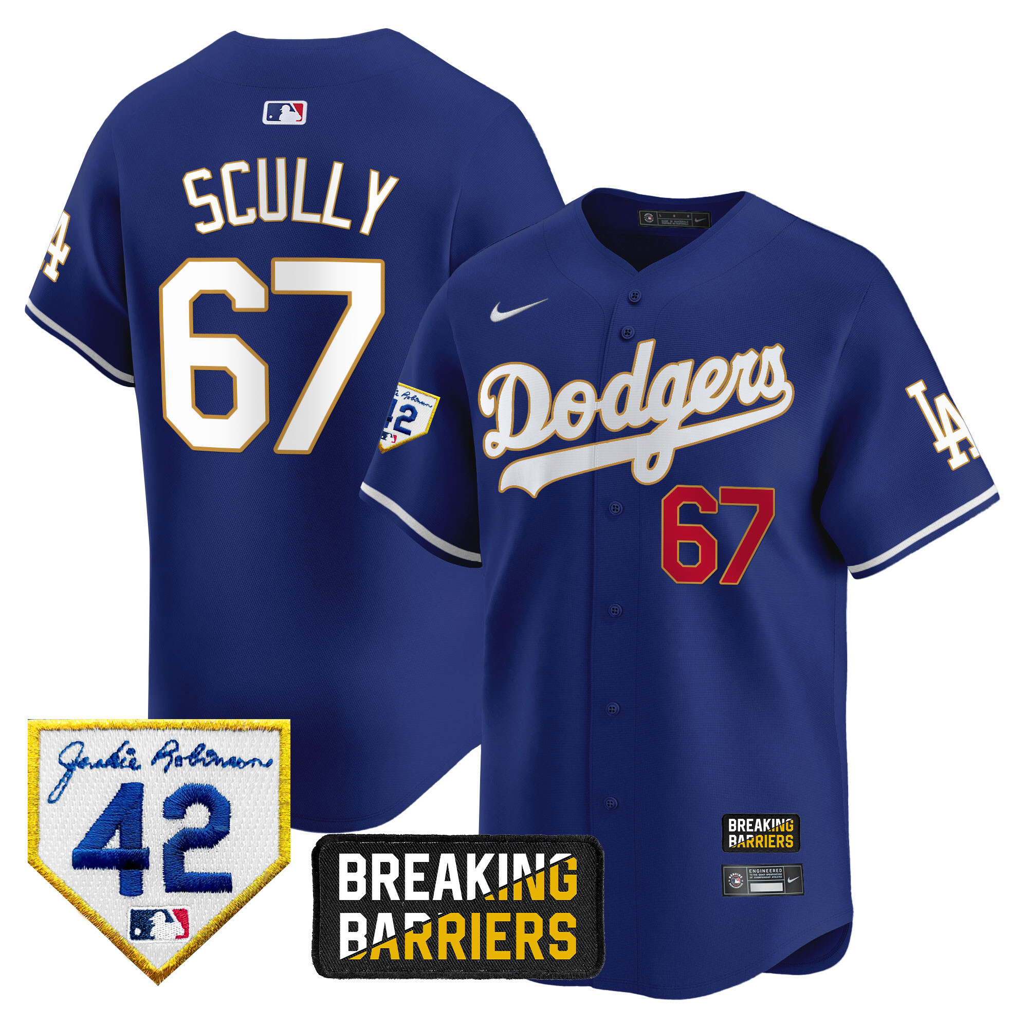 Men’s Dodgers Jackie Robinson Breaking Barriers Patch Vapor Premier Limited Jersey – All Stitched