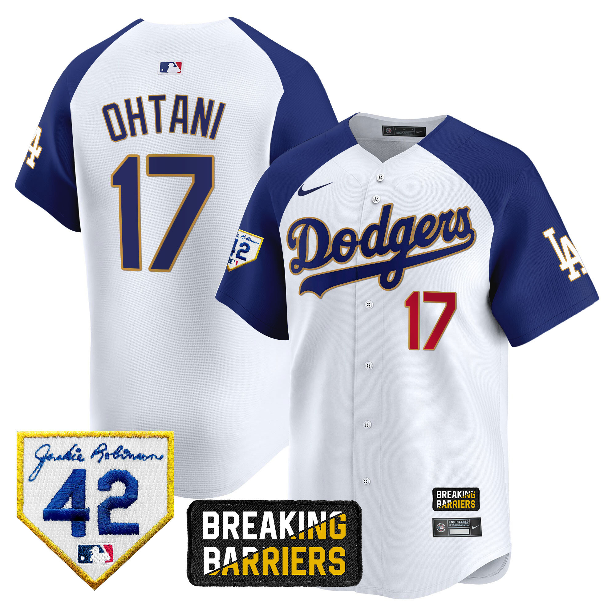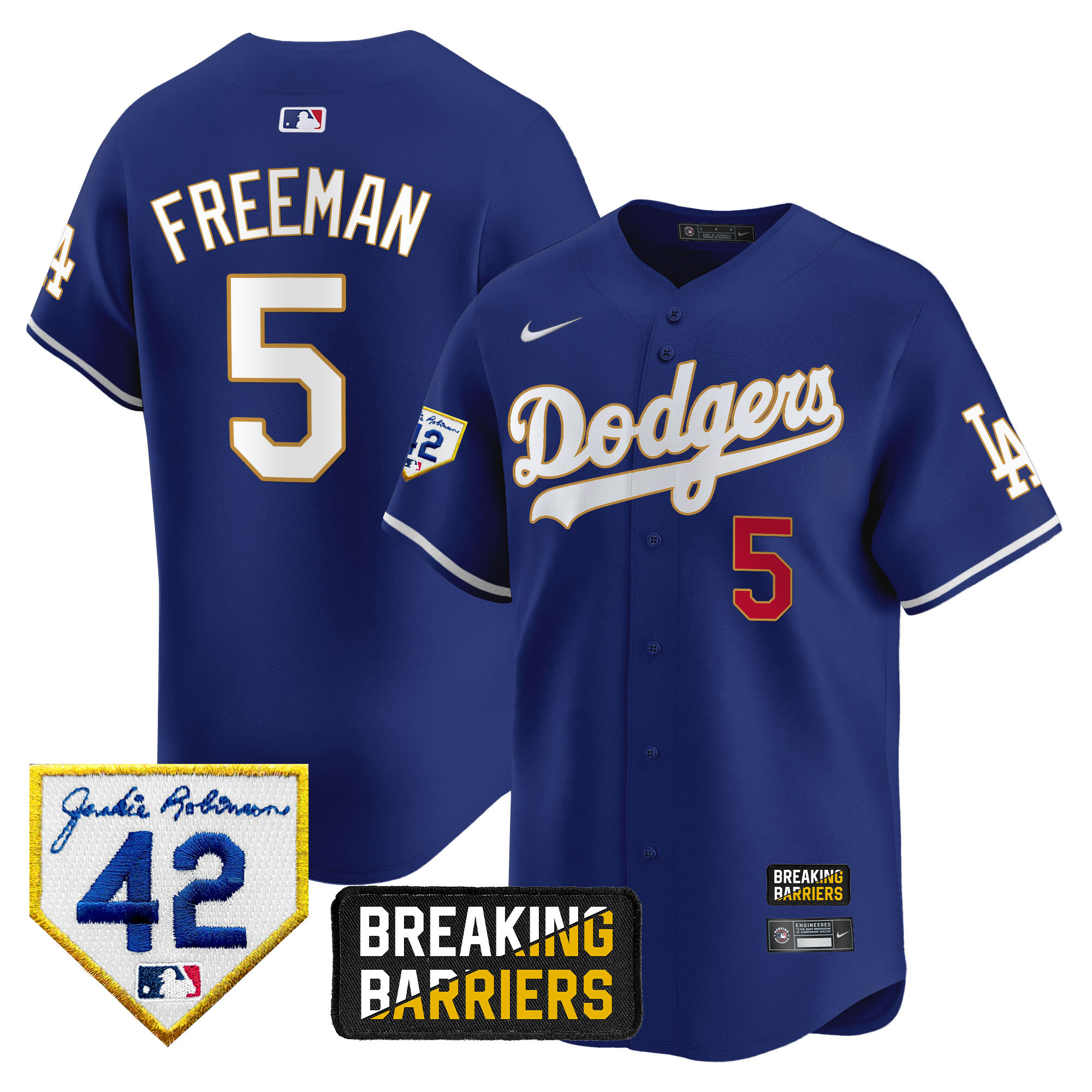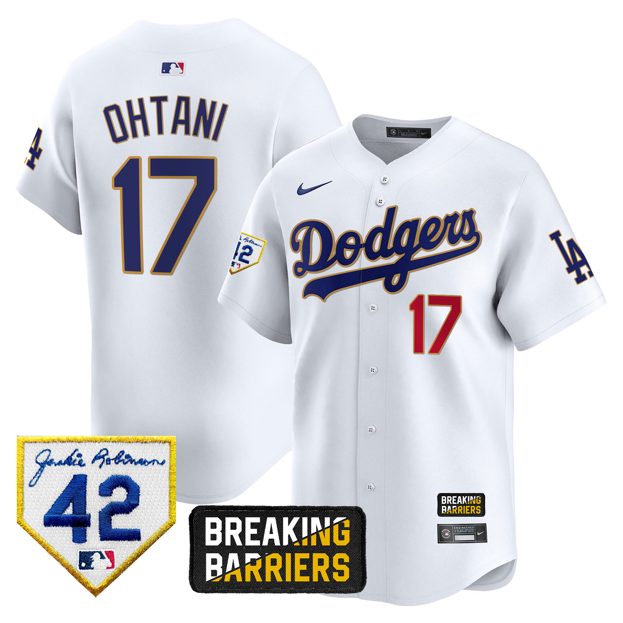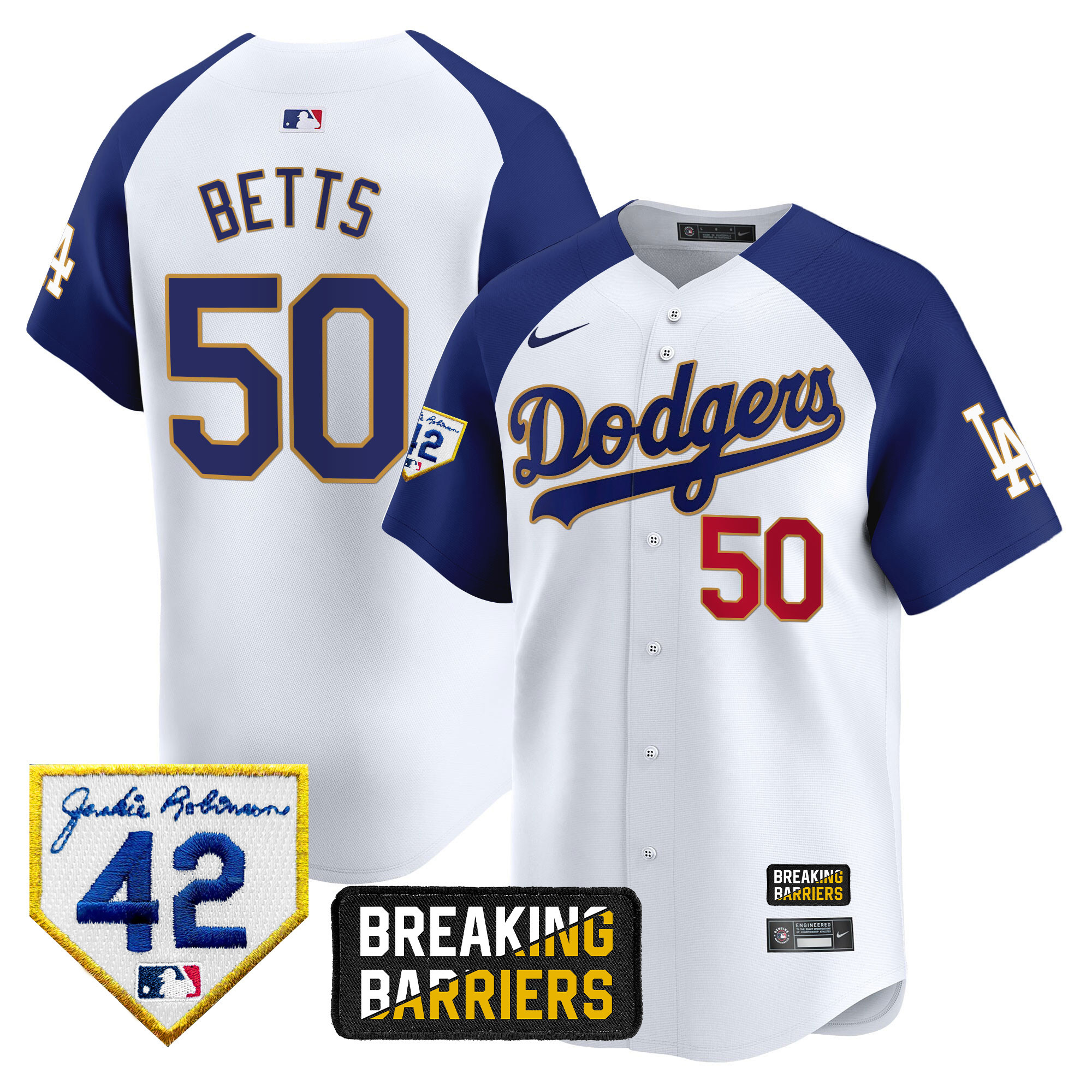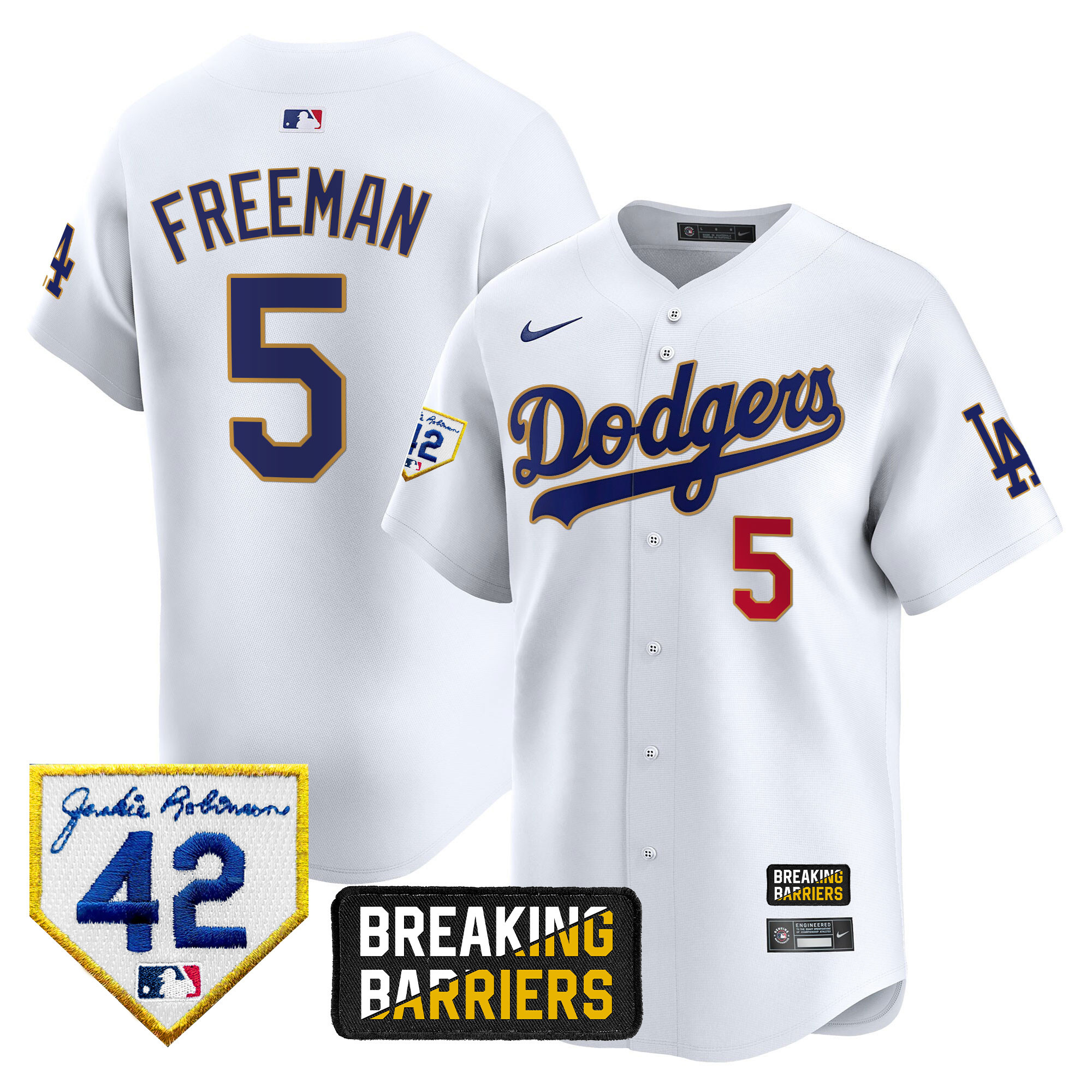 Men’s Dodgers Jackie Robinson Breaking Barriers Patch Vapor Premier Limited Jersey – All Stitched