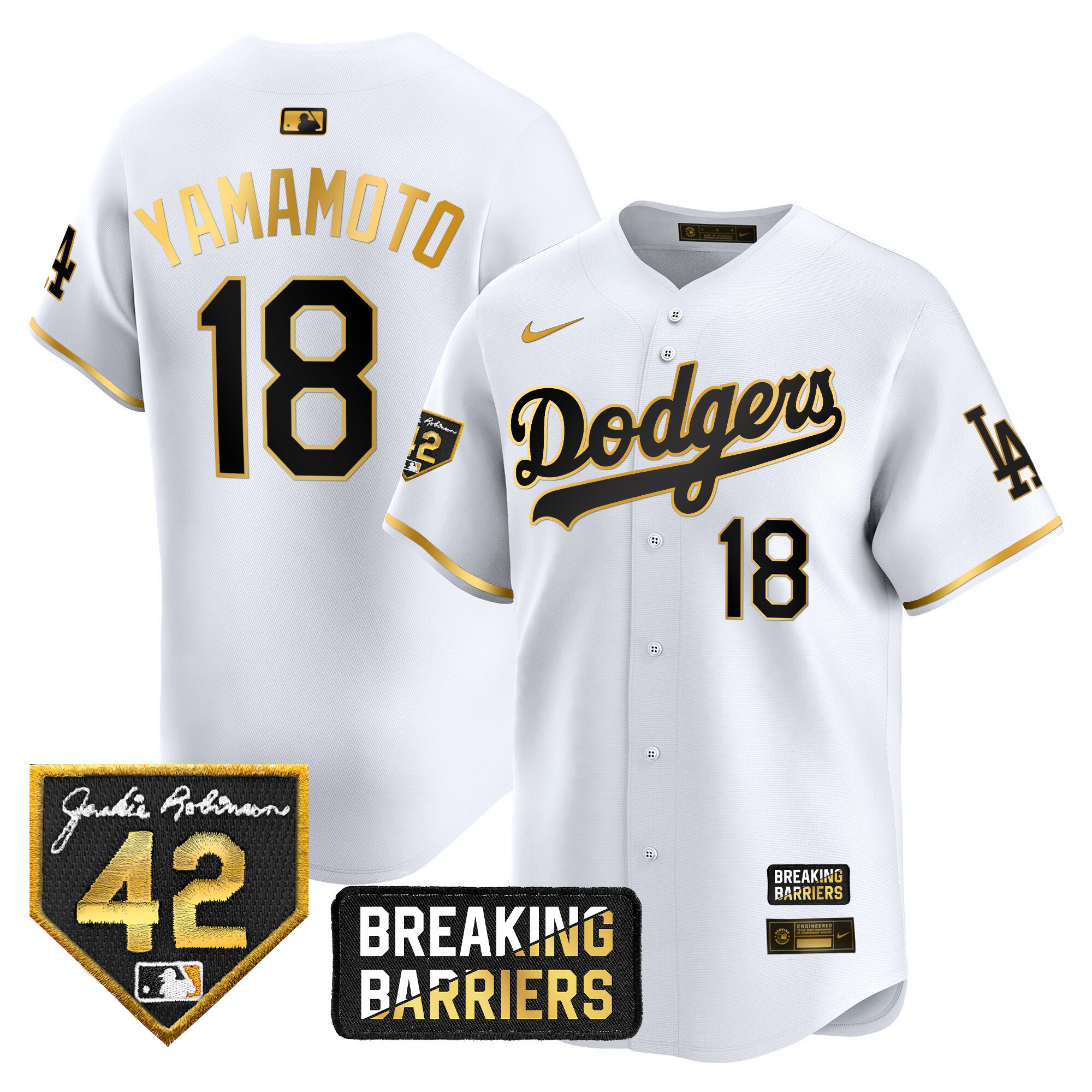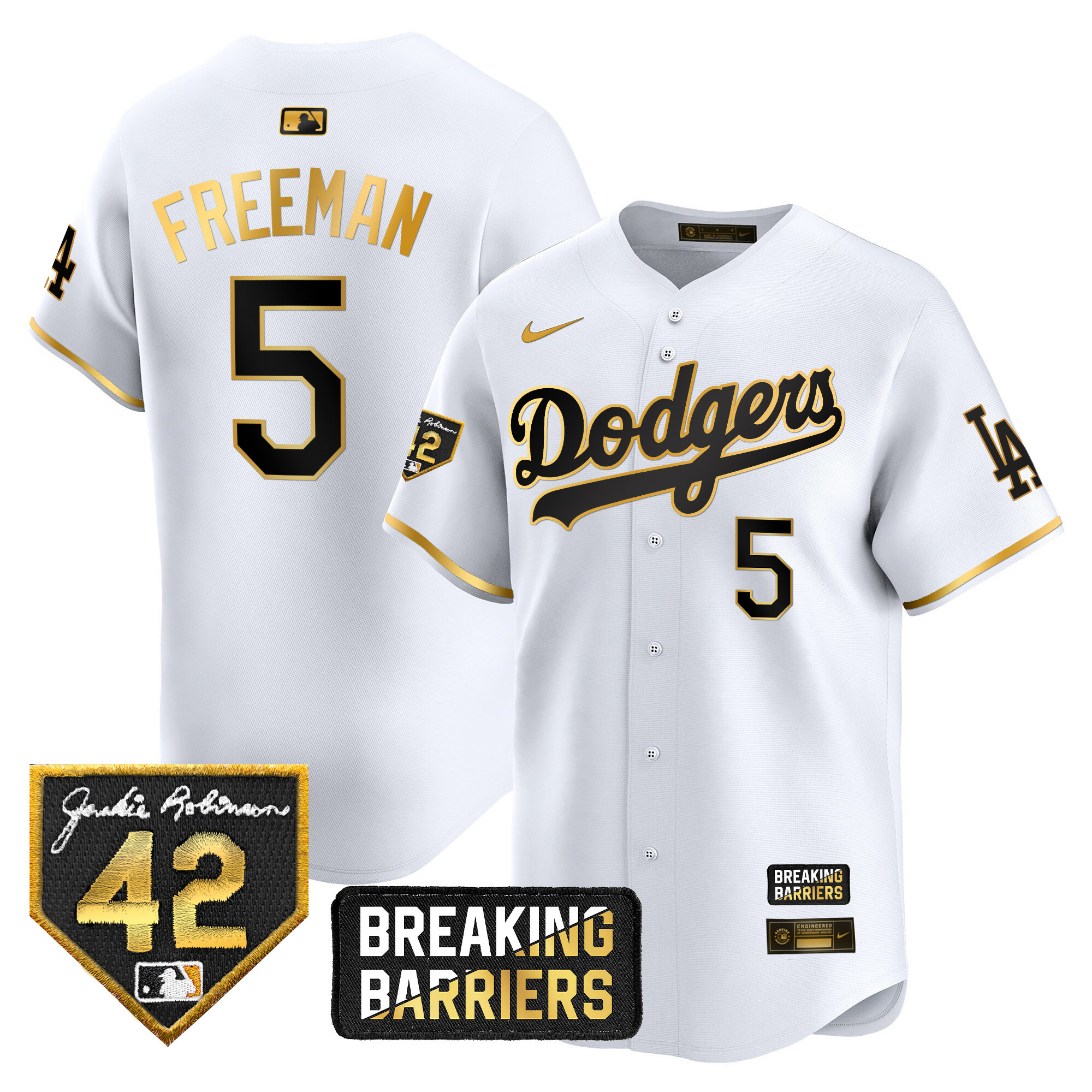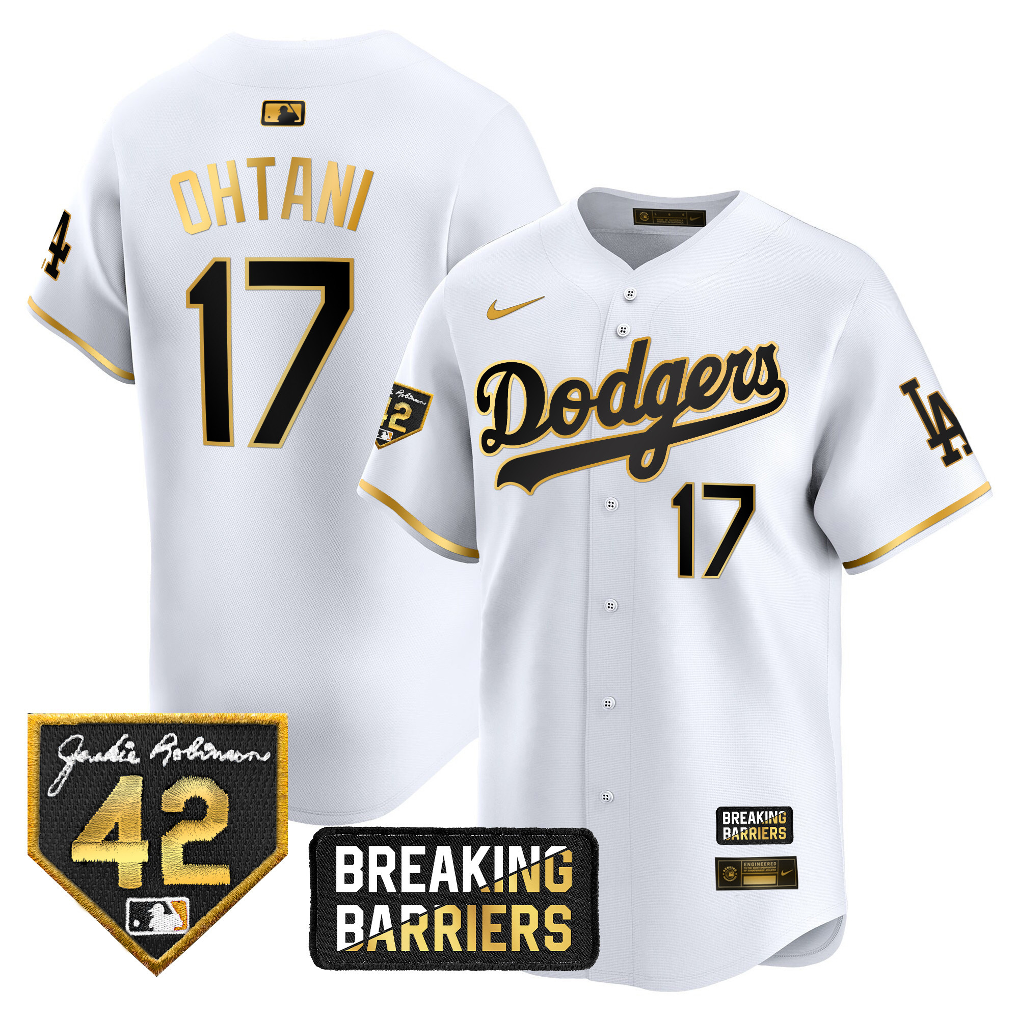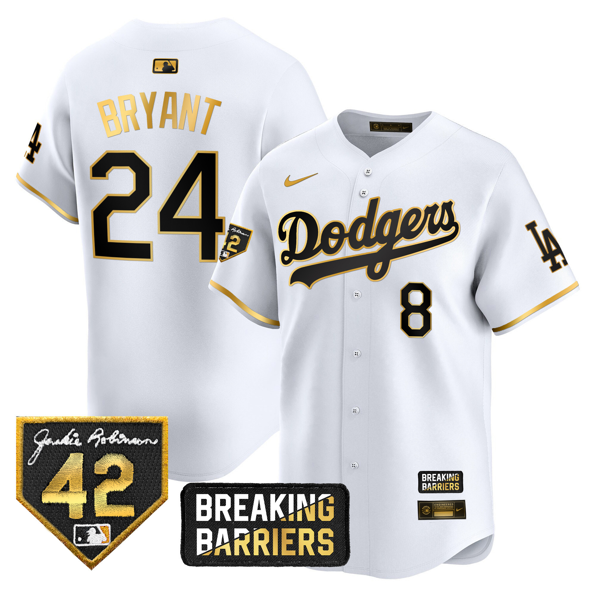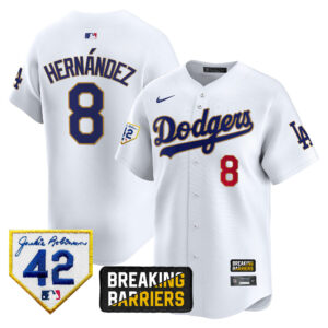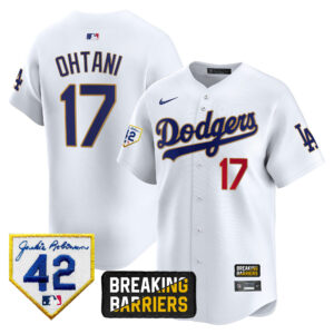 Men’s Dodgers Jackie Robinson Breaking Barriers Patch Vapor Premier Limited Jersey – All Stitched