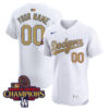Men’s Dodgers 2025 World Series Gold Trim Vapor Premier Limited Jersey – All Stitched