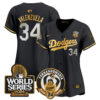 Women’s Dodgers 2025 World Series Gold Trim Vapor Premier Limited Jersey – All Stitched