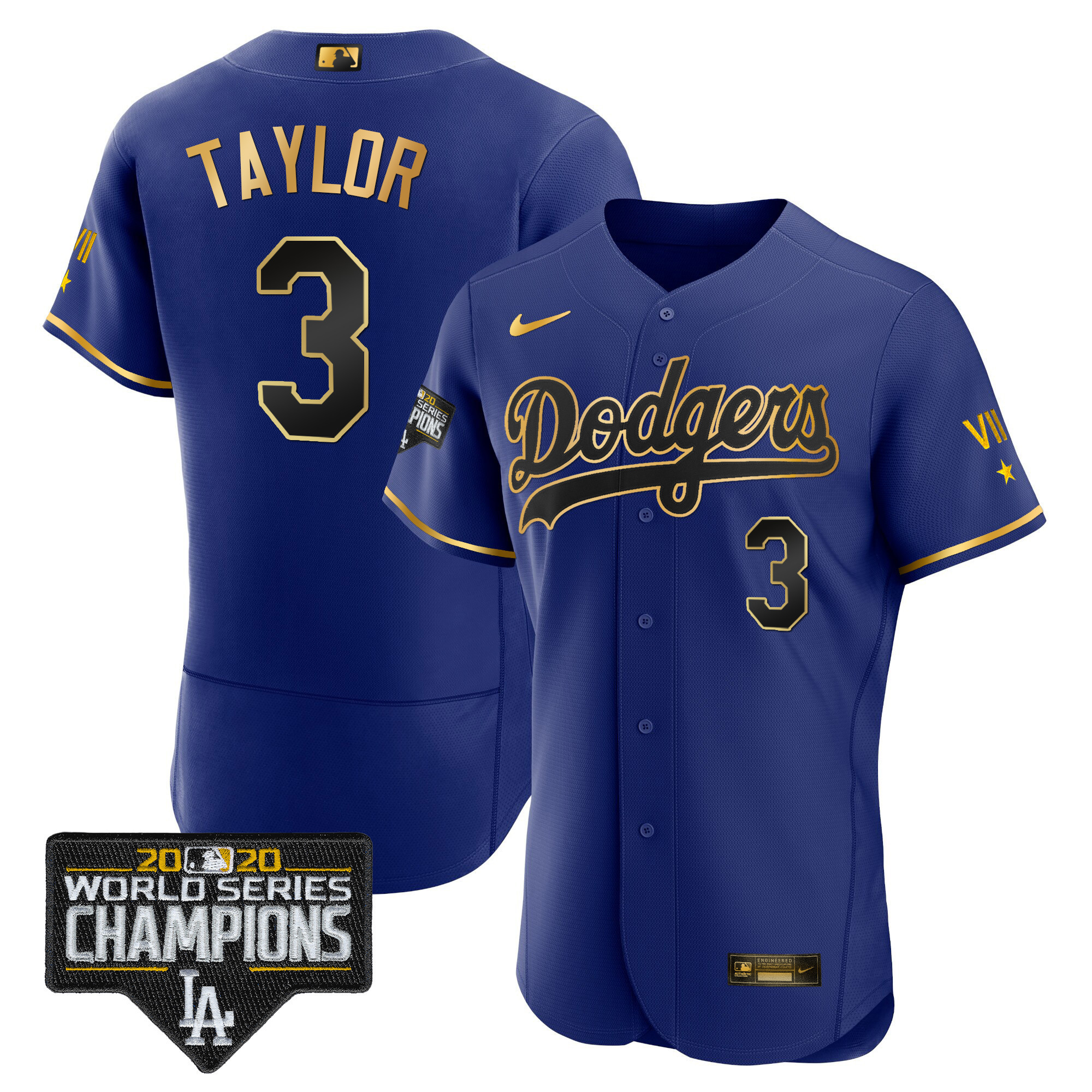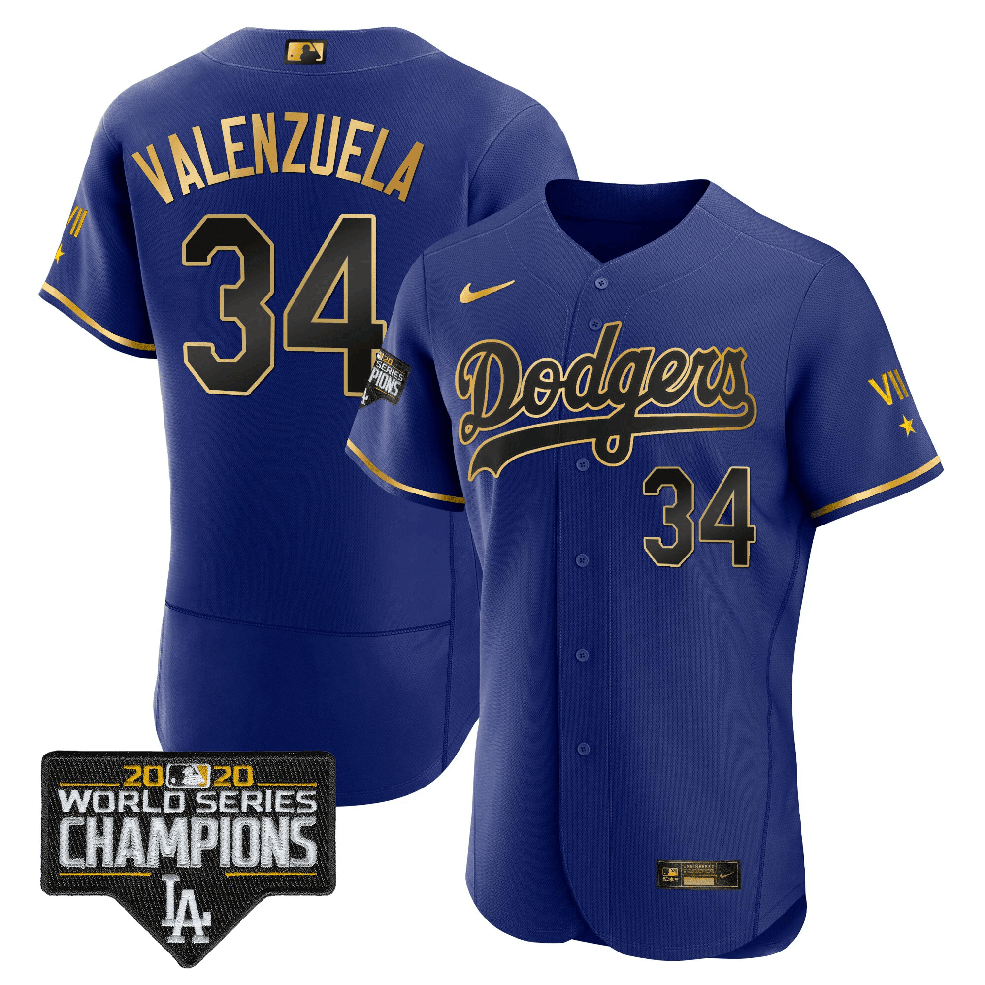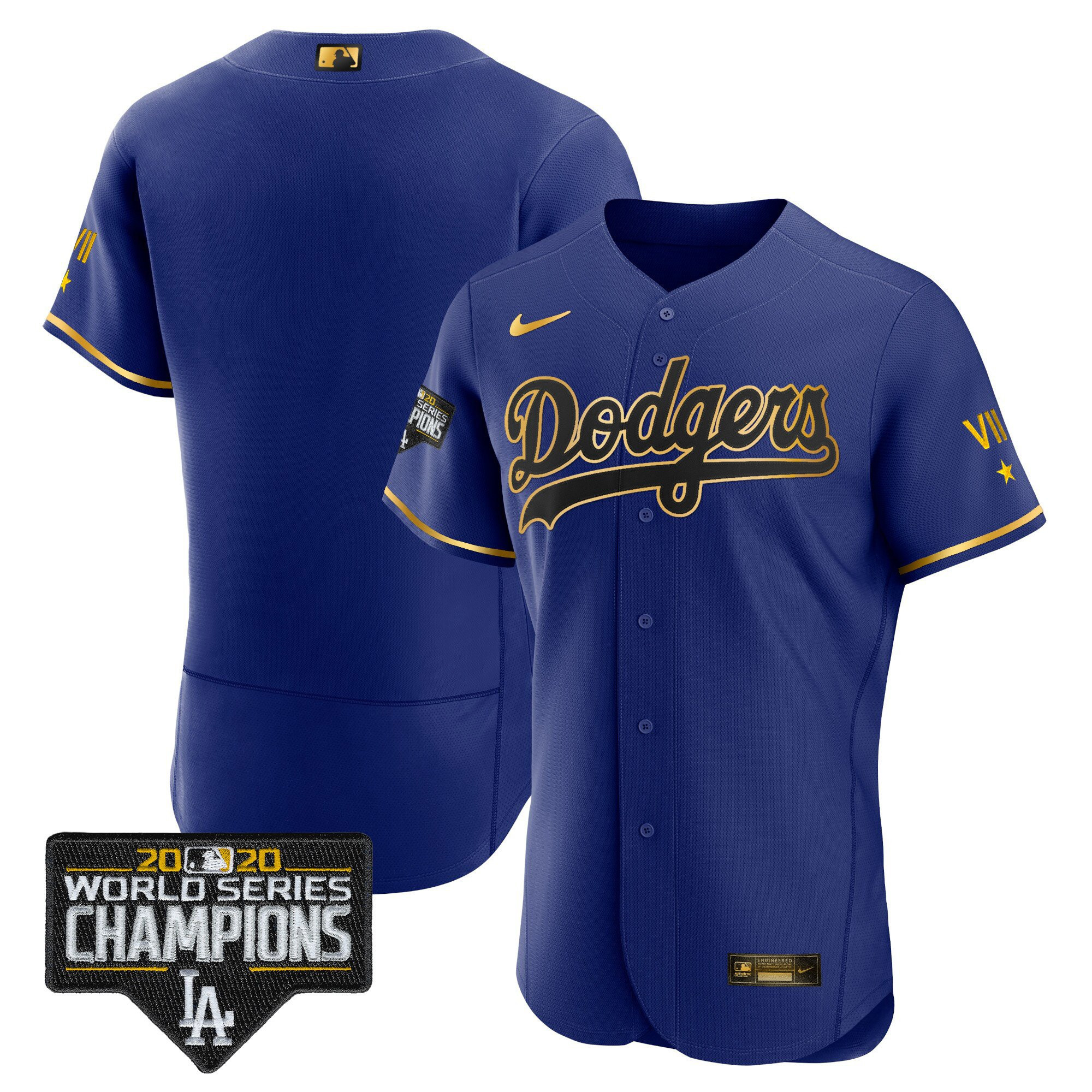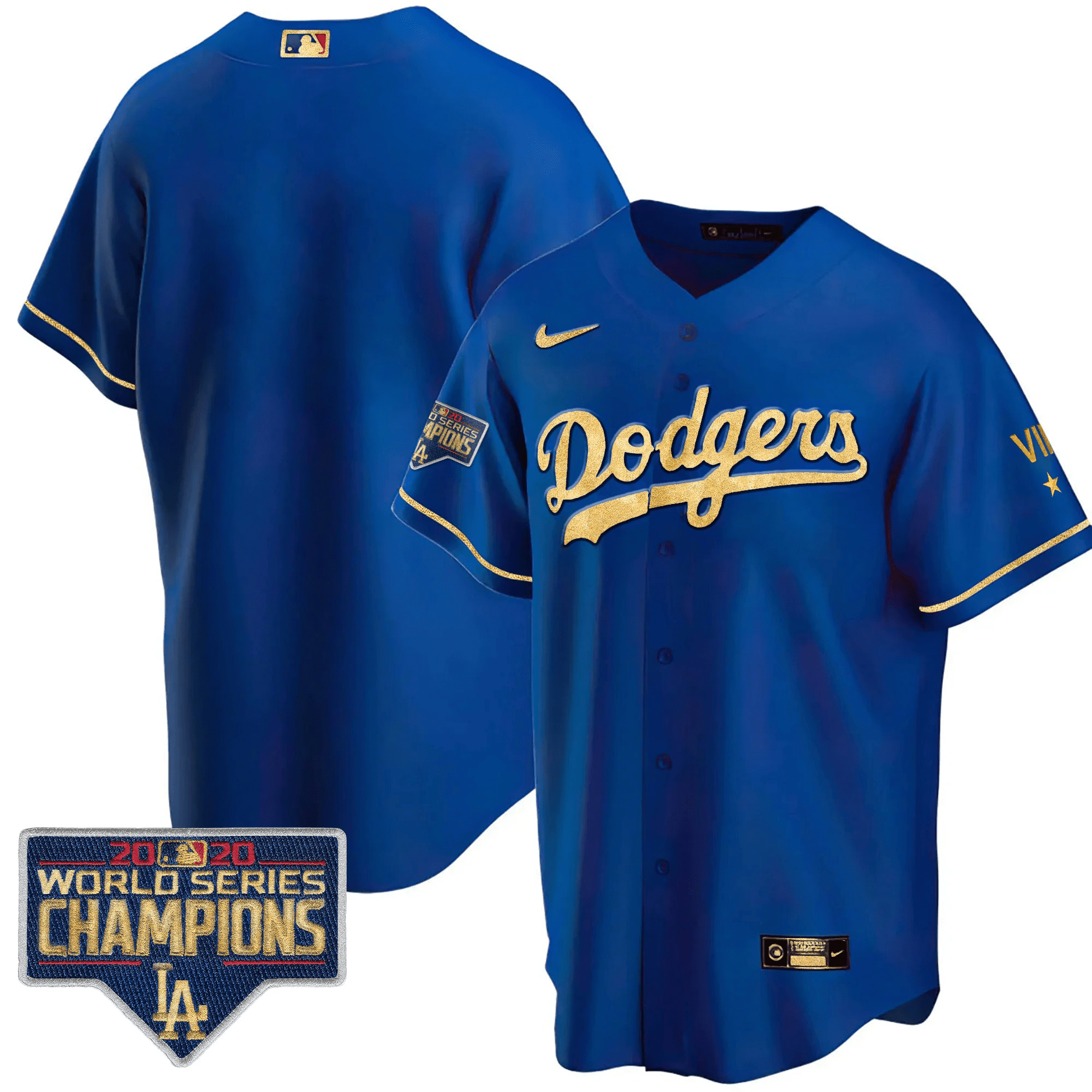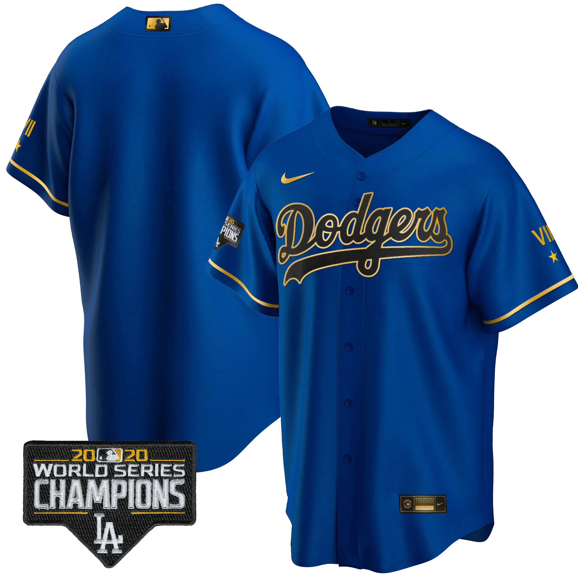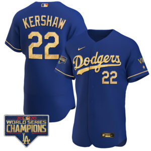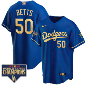 Men’s Dodgers Royal Gold World Series 2020 Patch Jersey – All Stitched