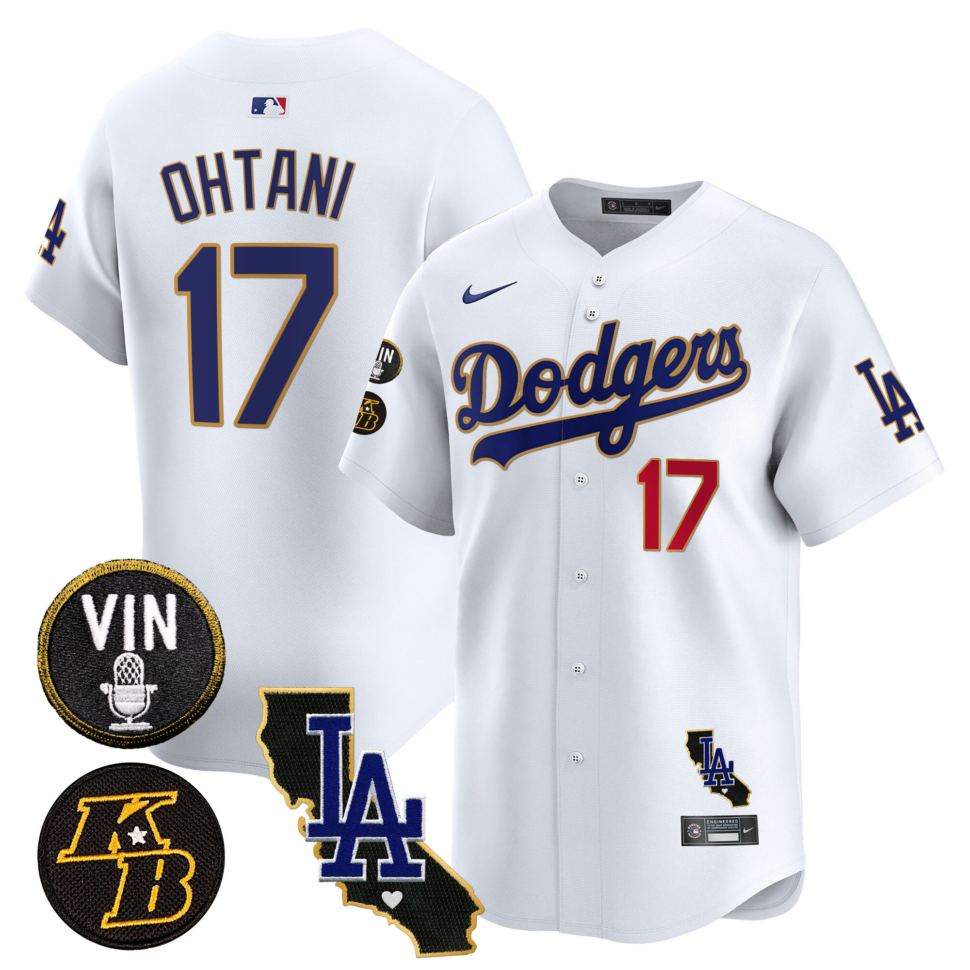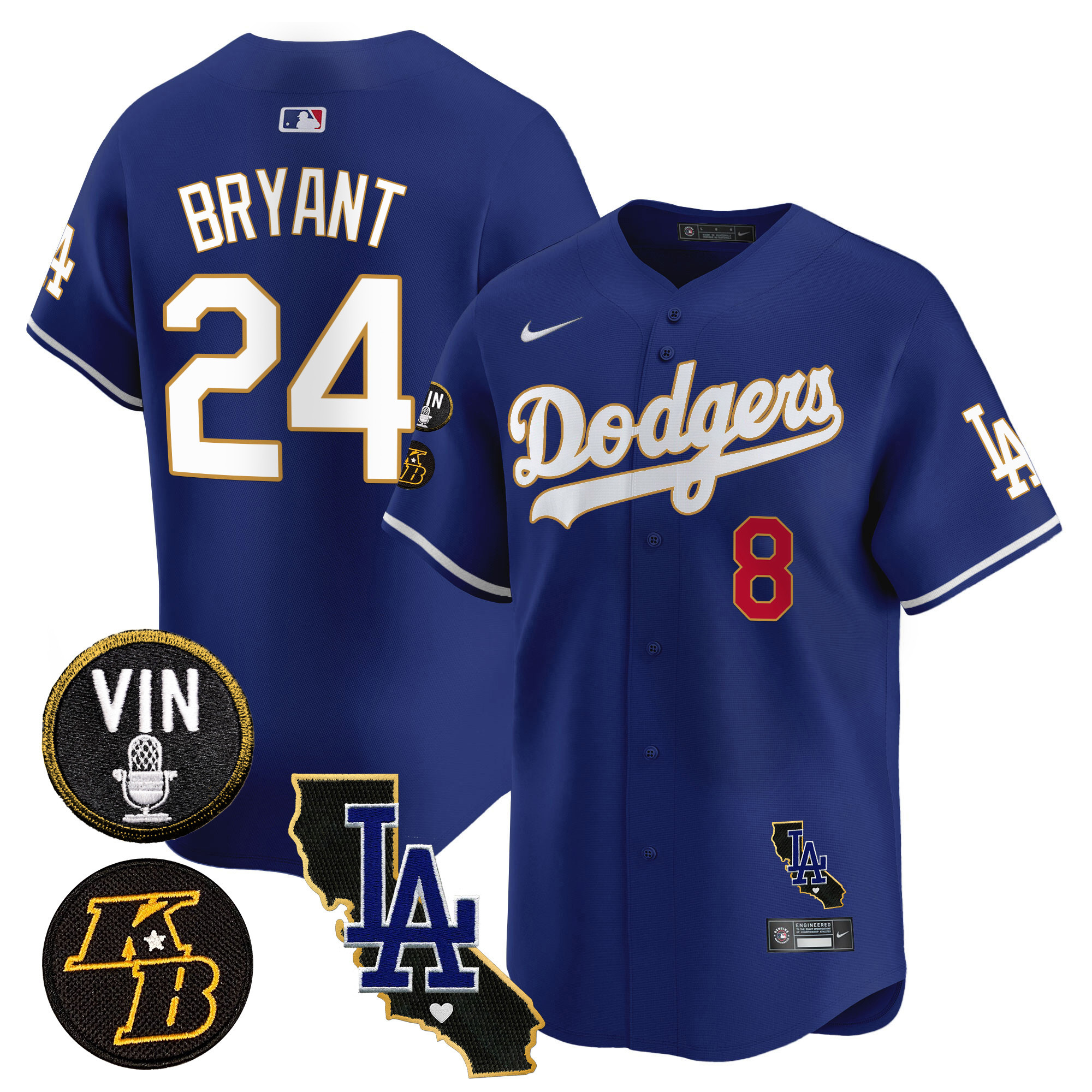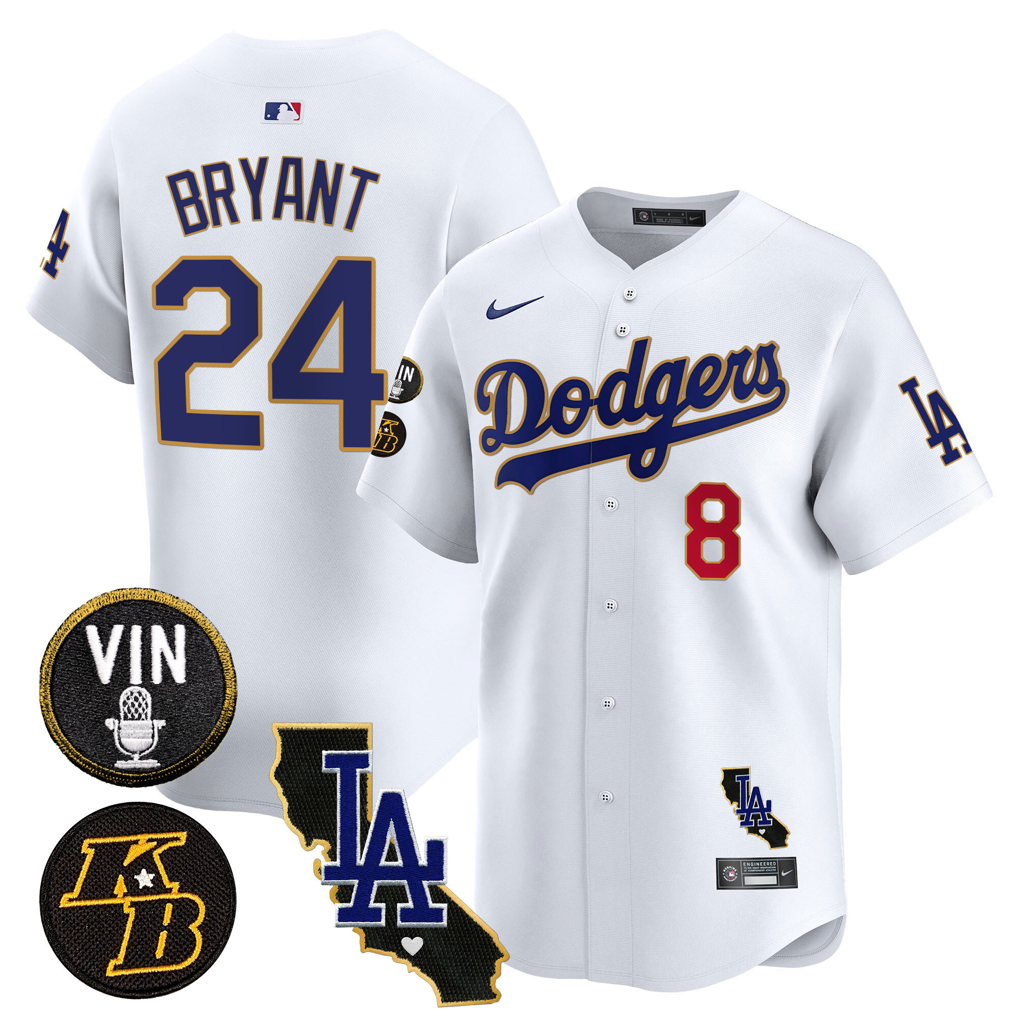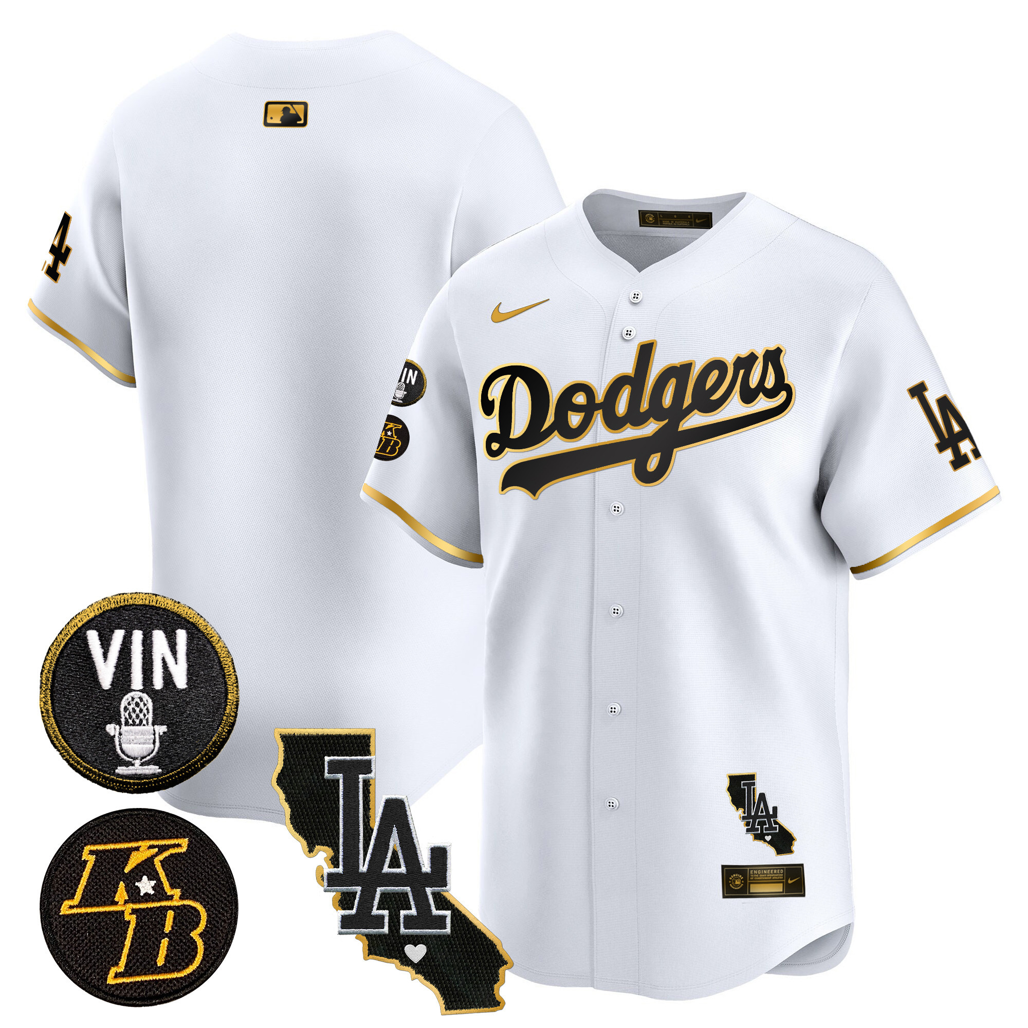 Men’s Dodgers Vin & Kobe Patch Gold Trim Vapor Premier Limited Jersey V2 – All Stitched