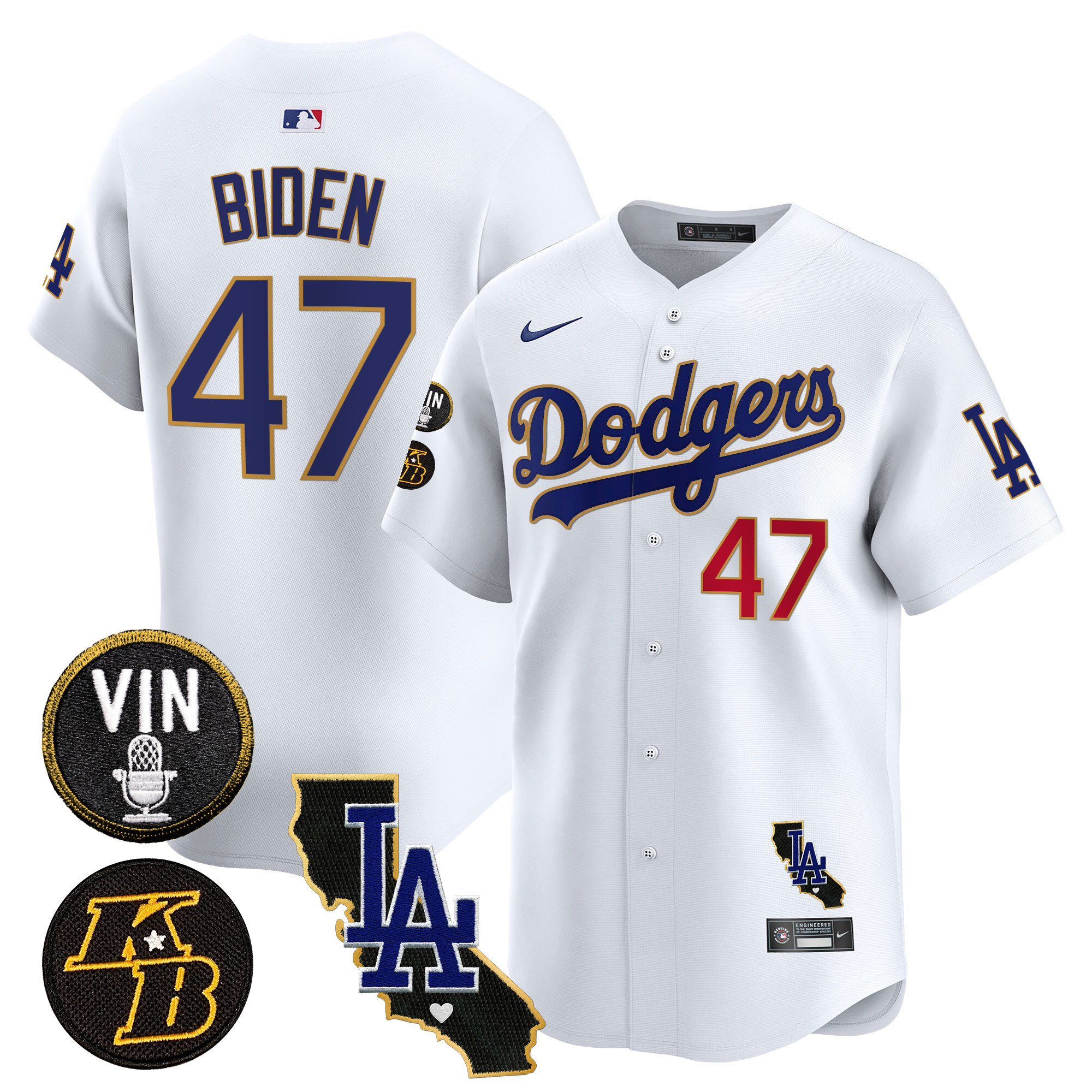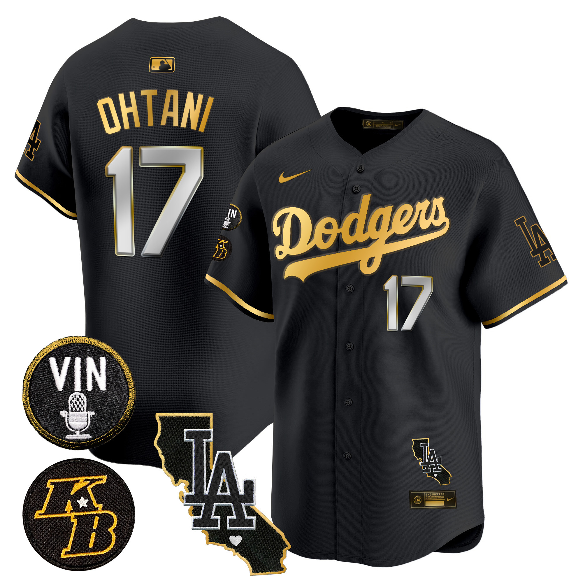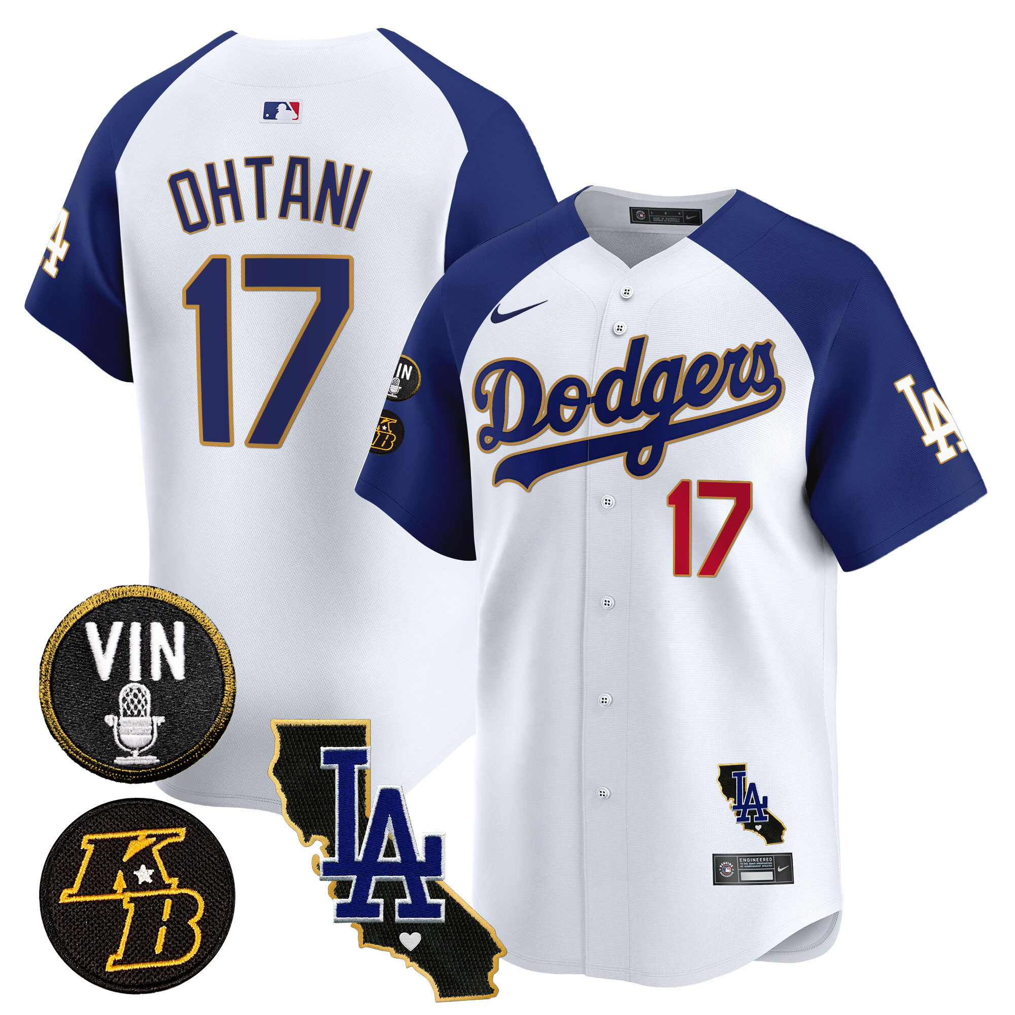 Men’s Dodgers Vin & Kobe Patch Gold Trim Vapor Premier Limited Jersey V2 – All Stitched