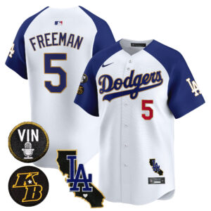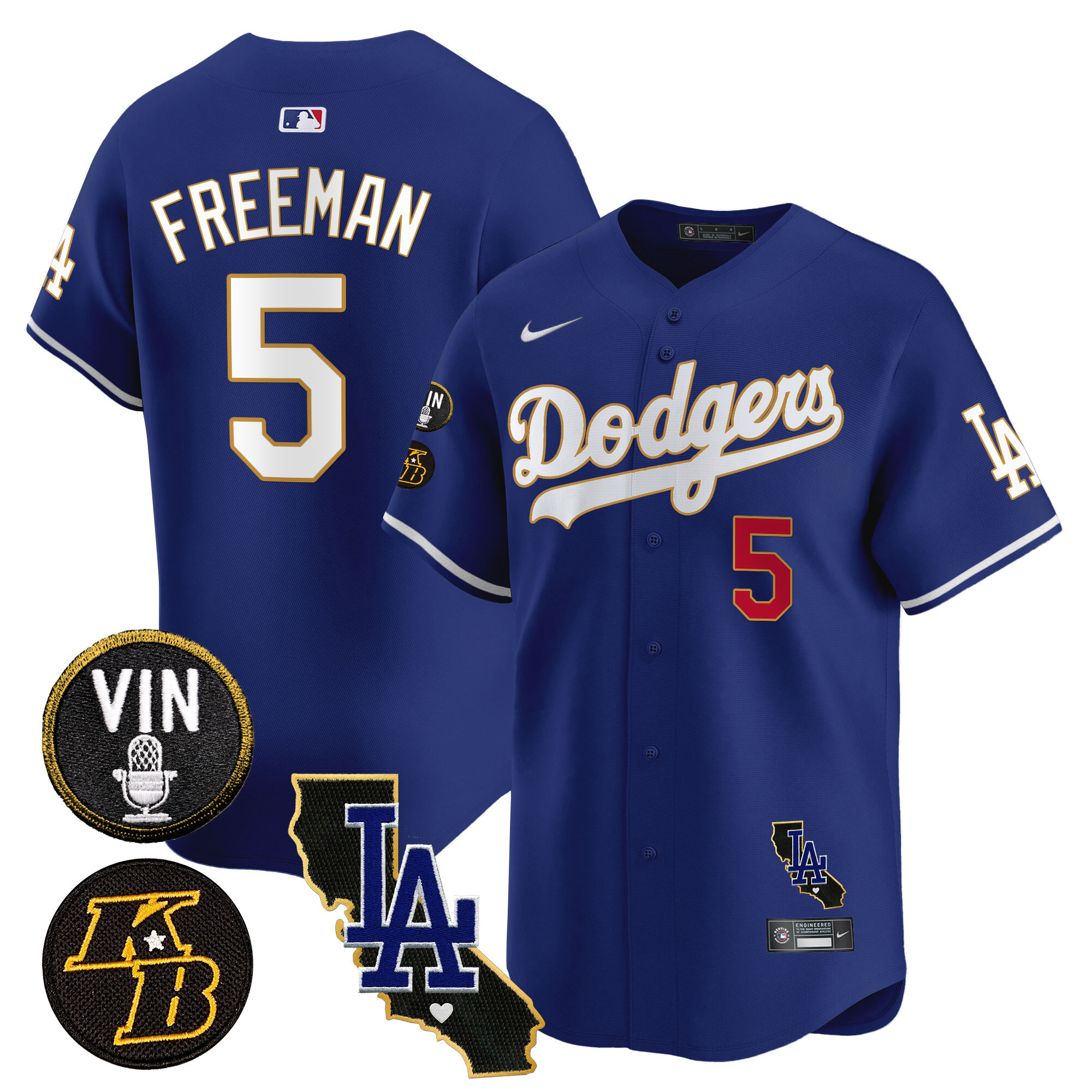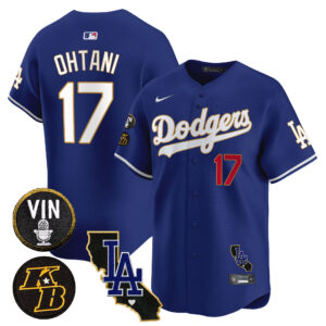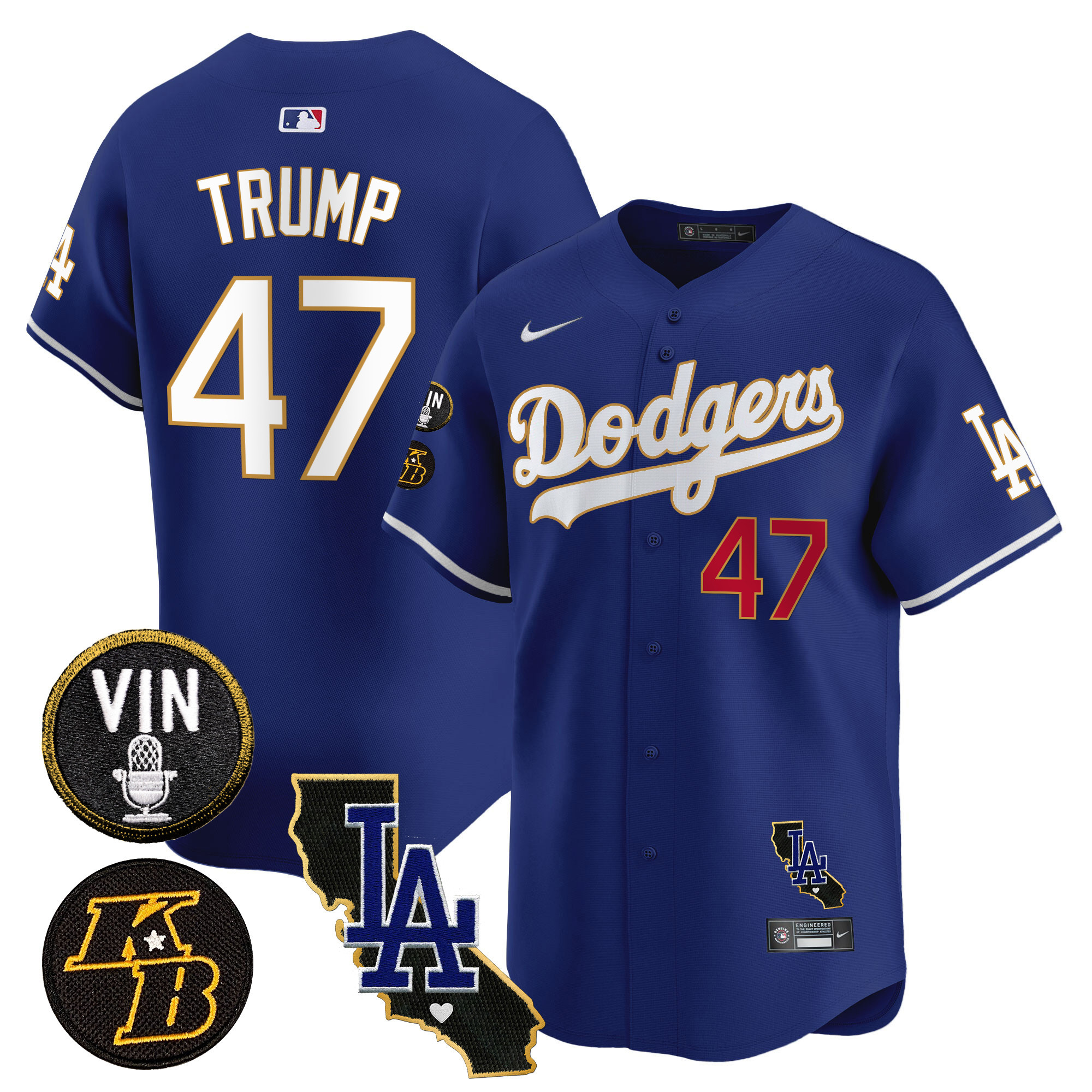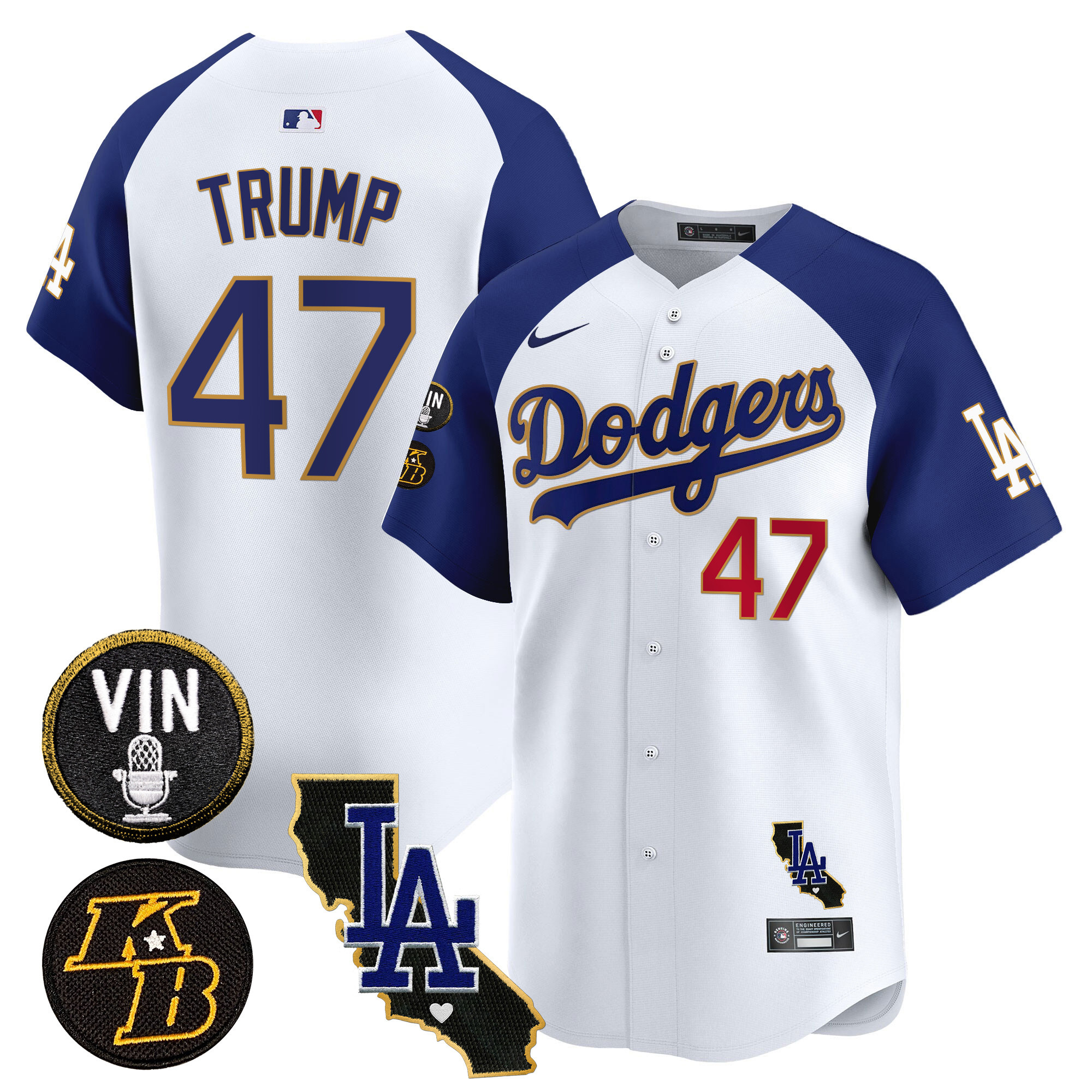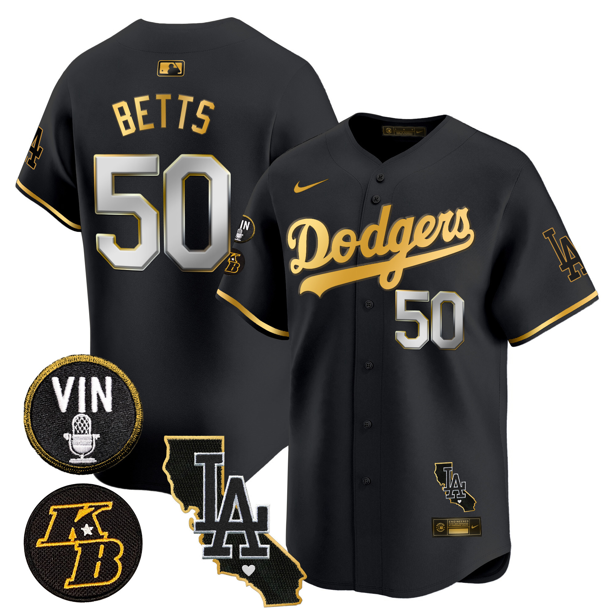 Men’s Dodgers Vin & Kobe Patch Gold Trim Vapor Premier Limited Jersey V2 – All Stitched