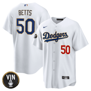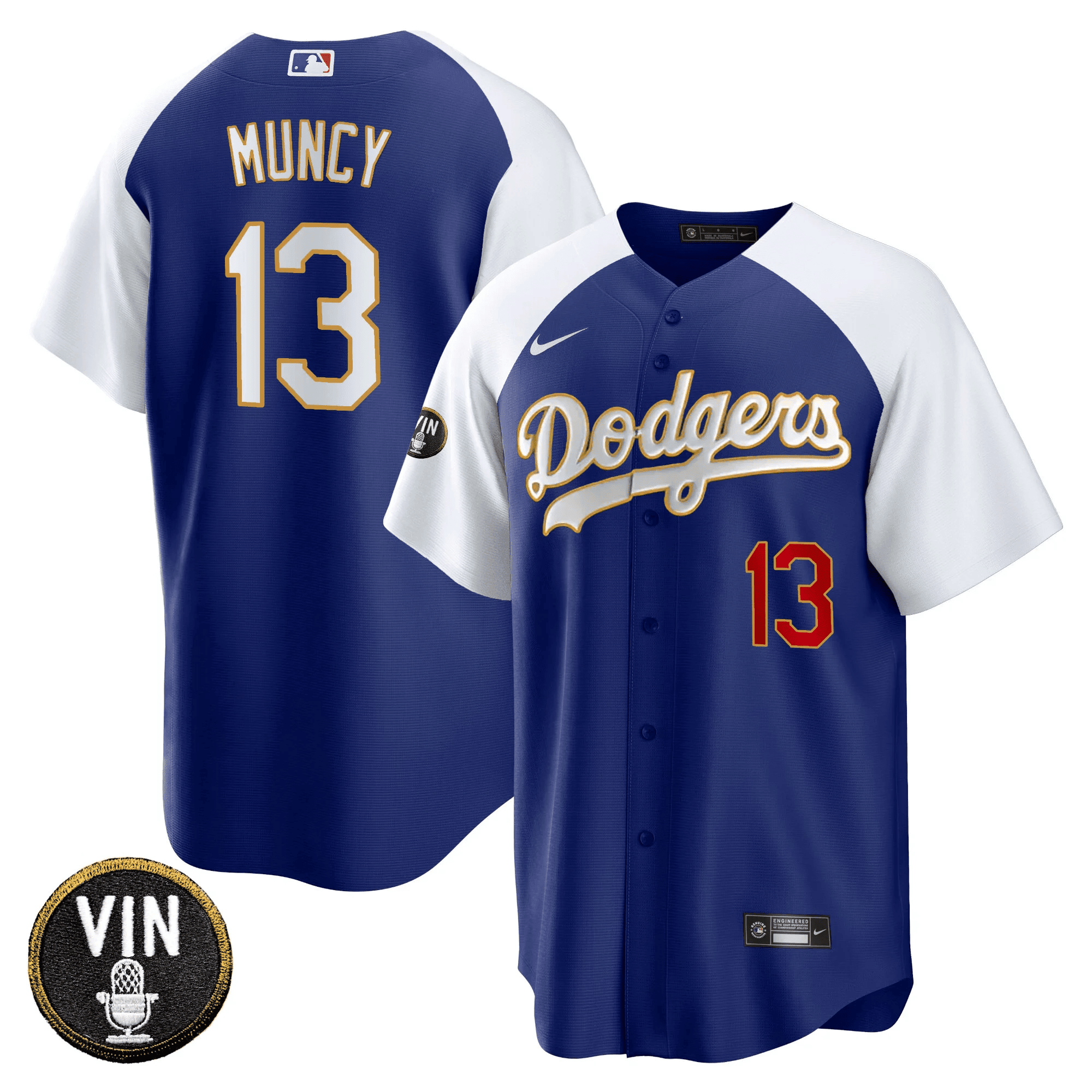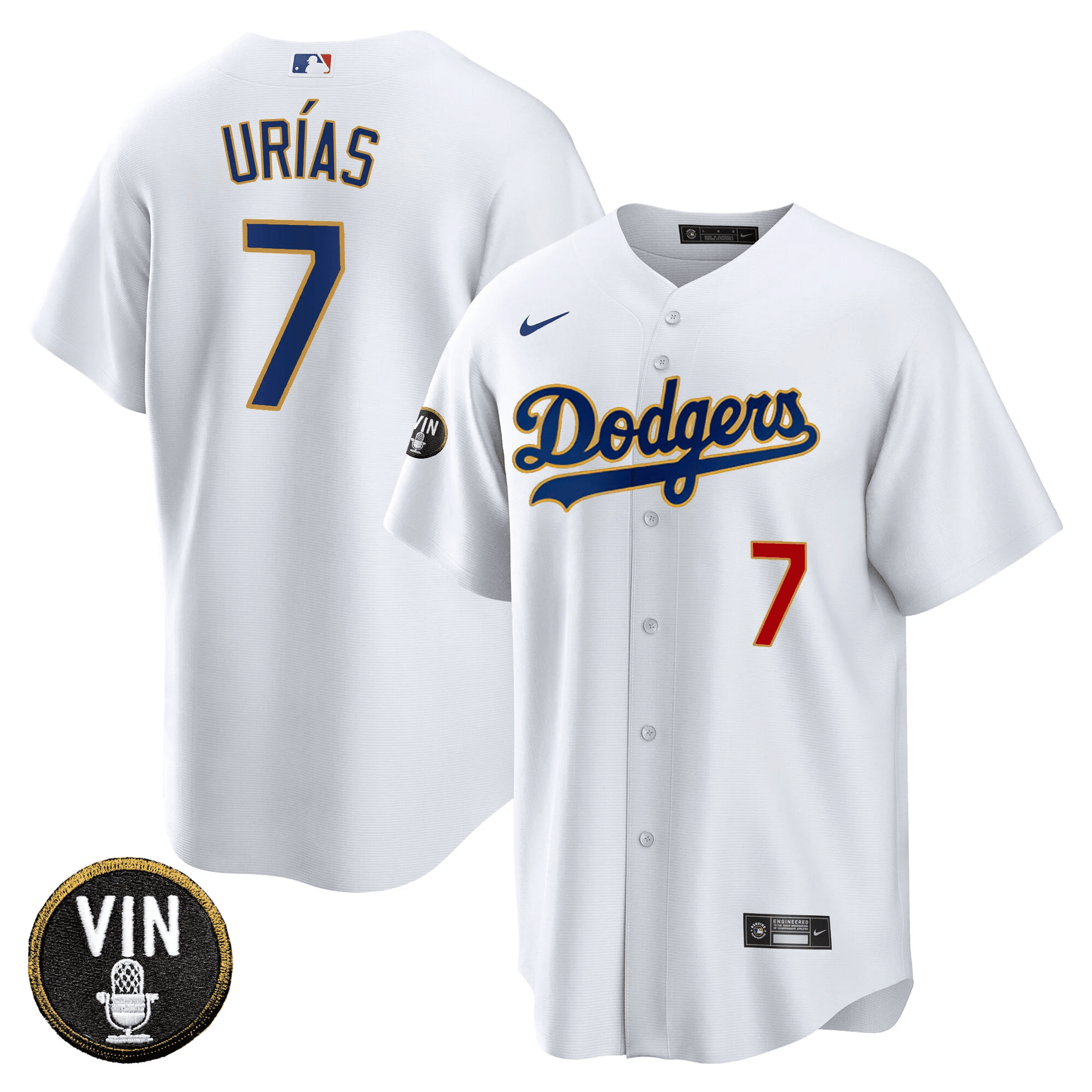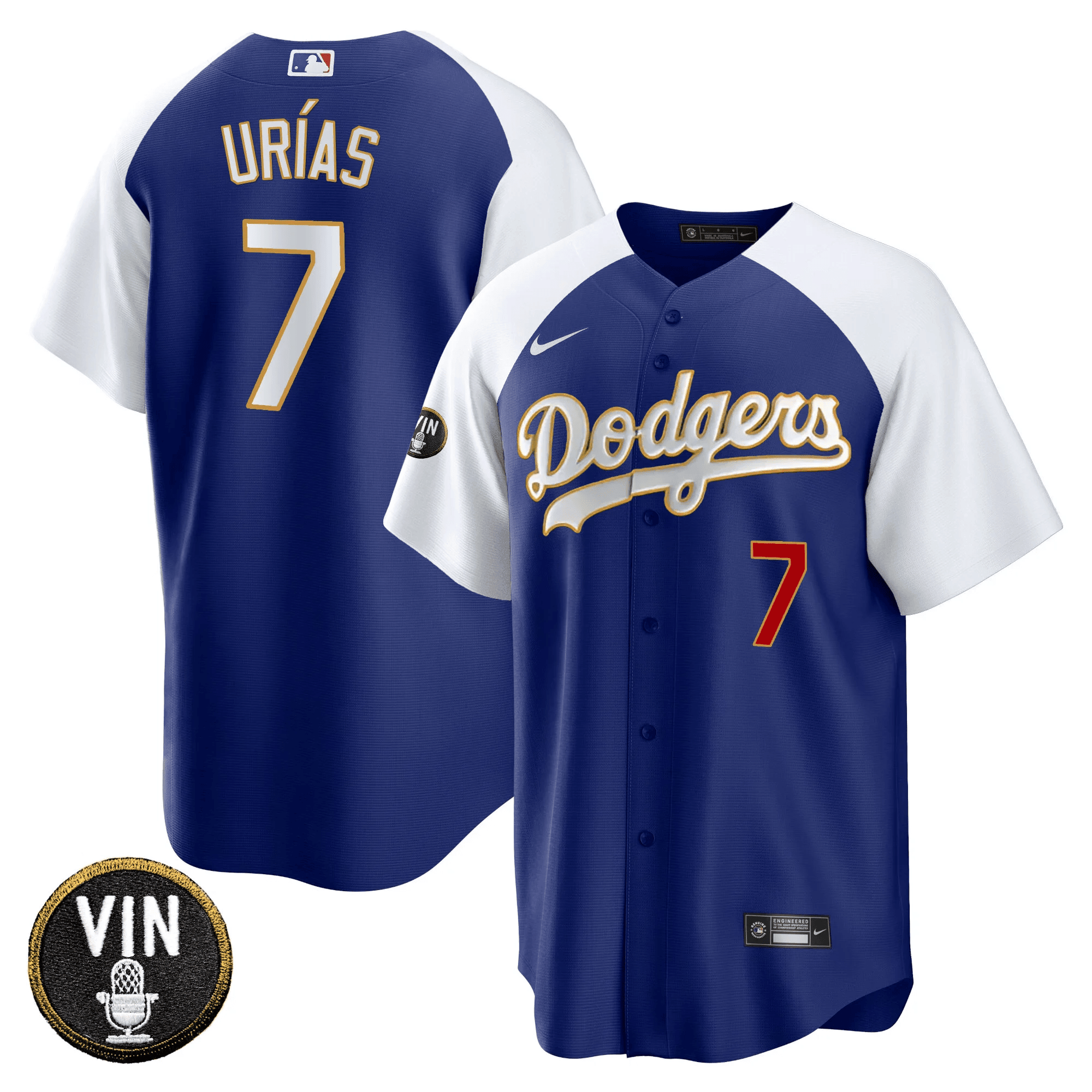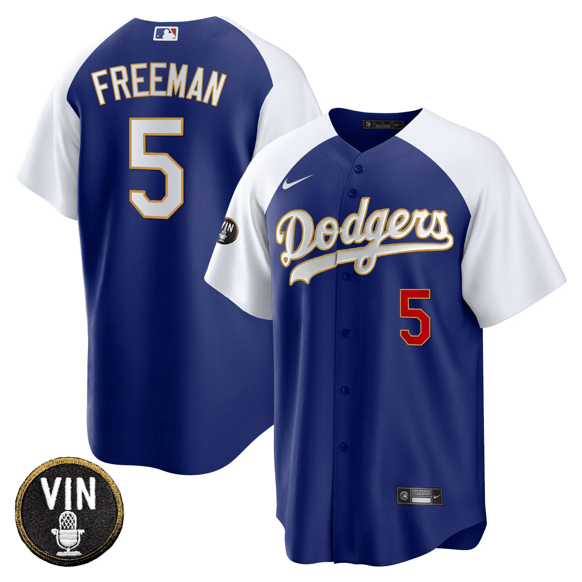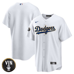 Men’s Dodgers Vin Scully Patch Cool Base Gold Trim Jersey – All Stitched