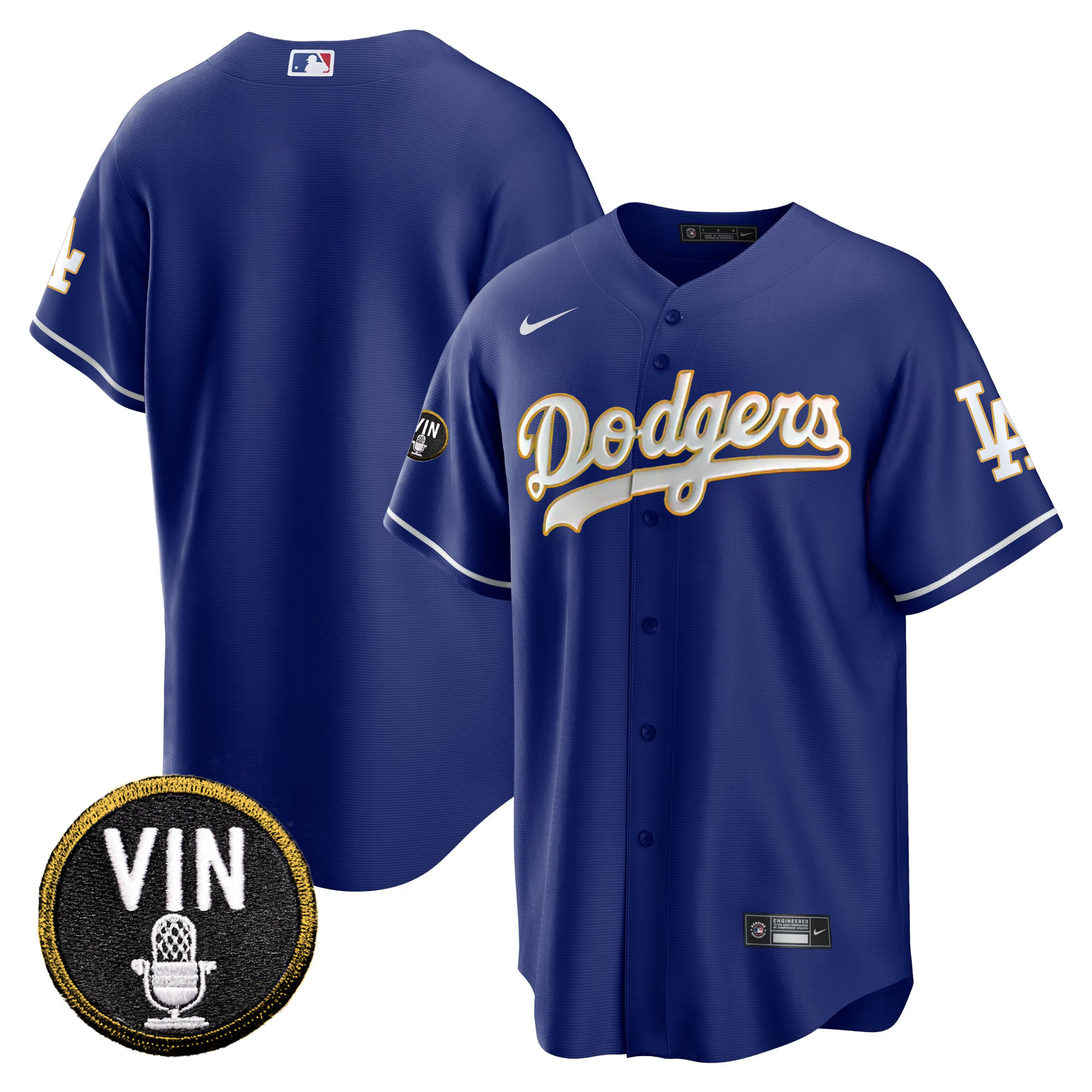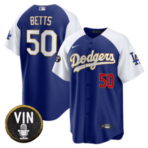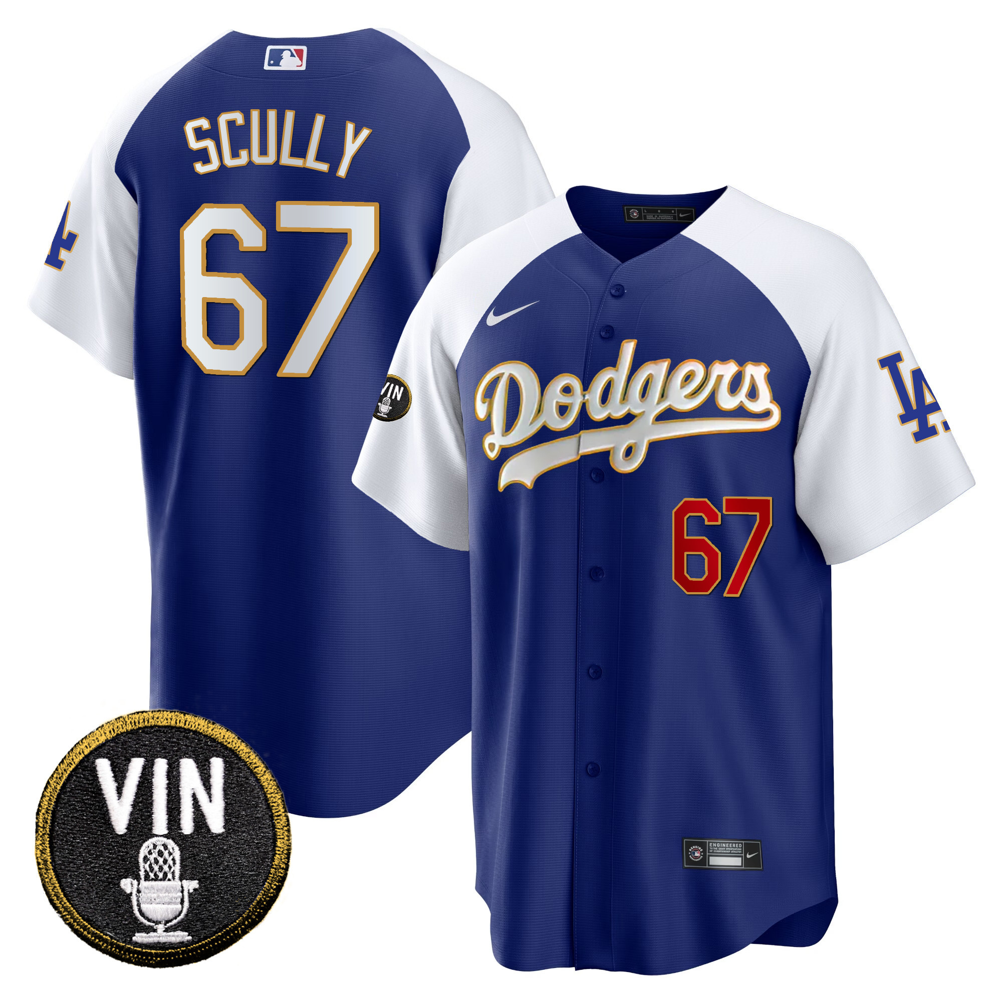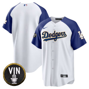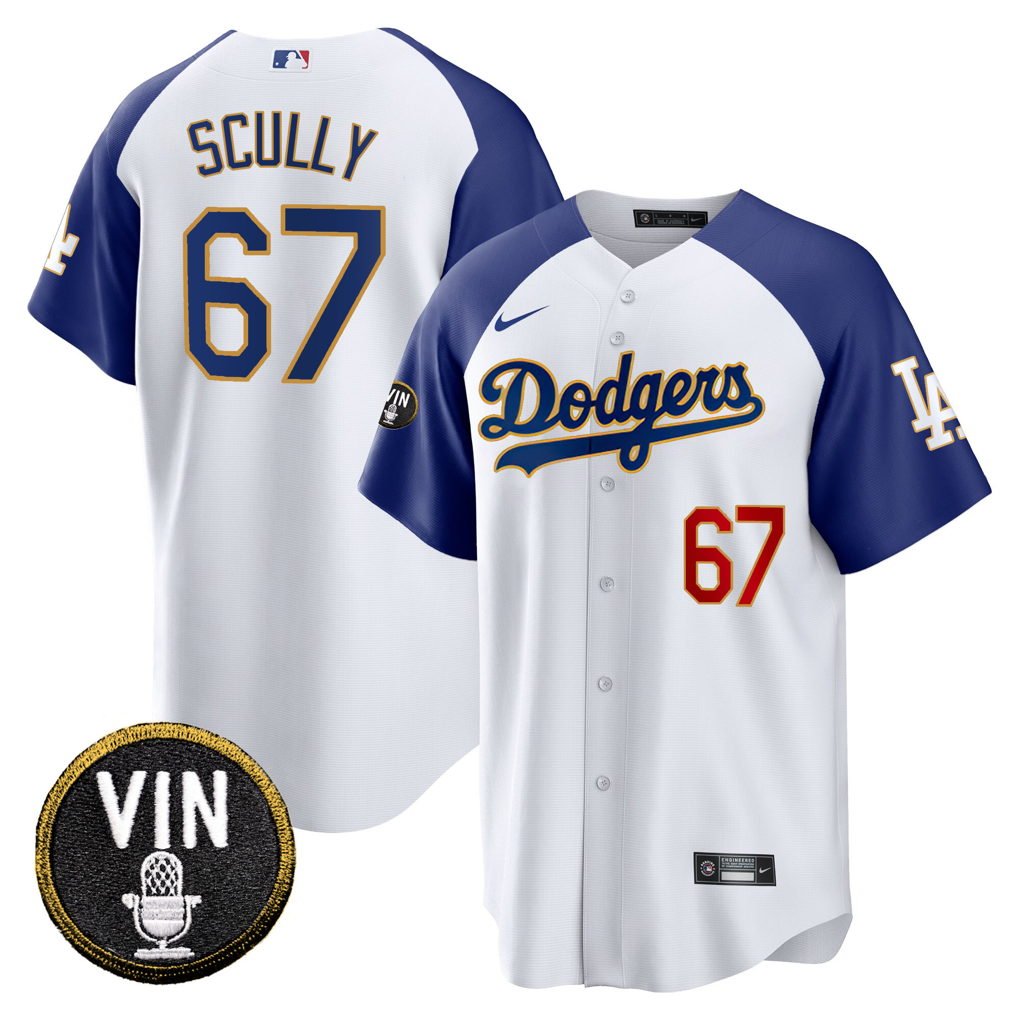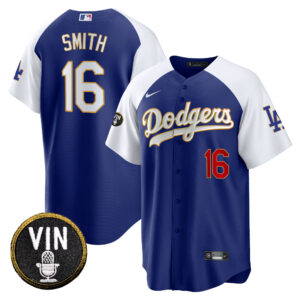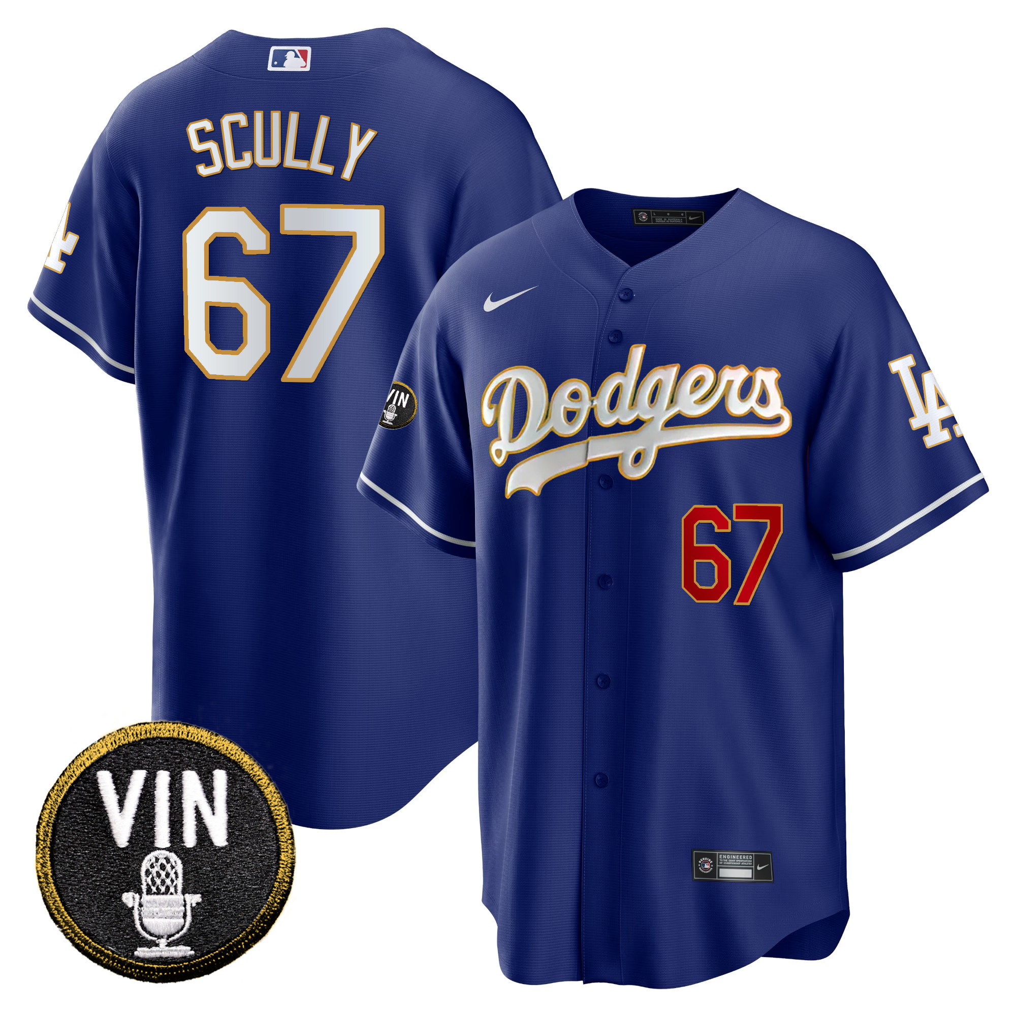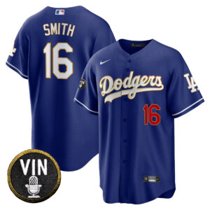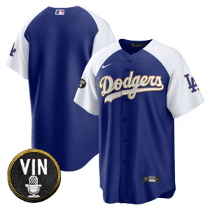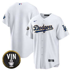 Men’s Dodgers Vin Scully Patch Cool Base Gold Trim Jersey V2 – All Stitched