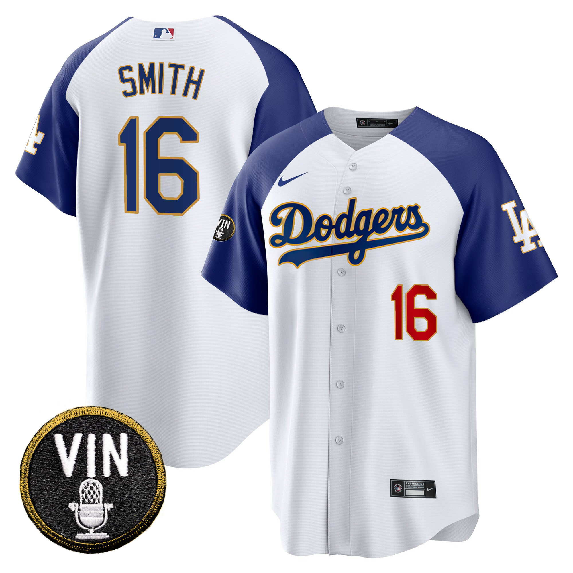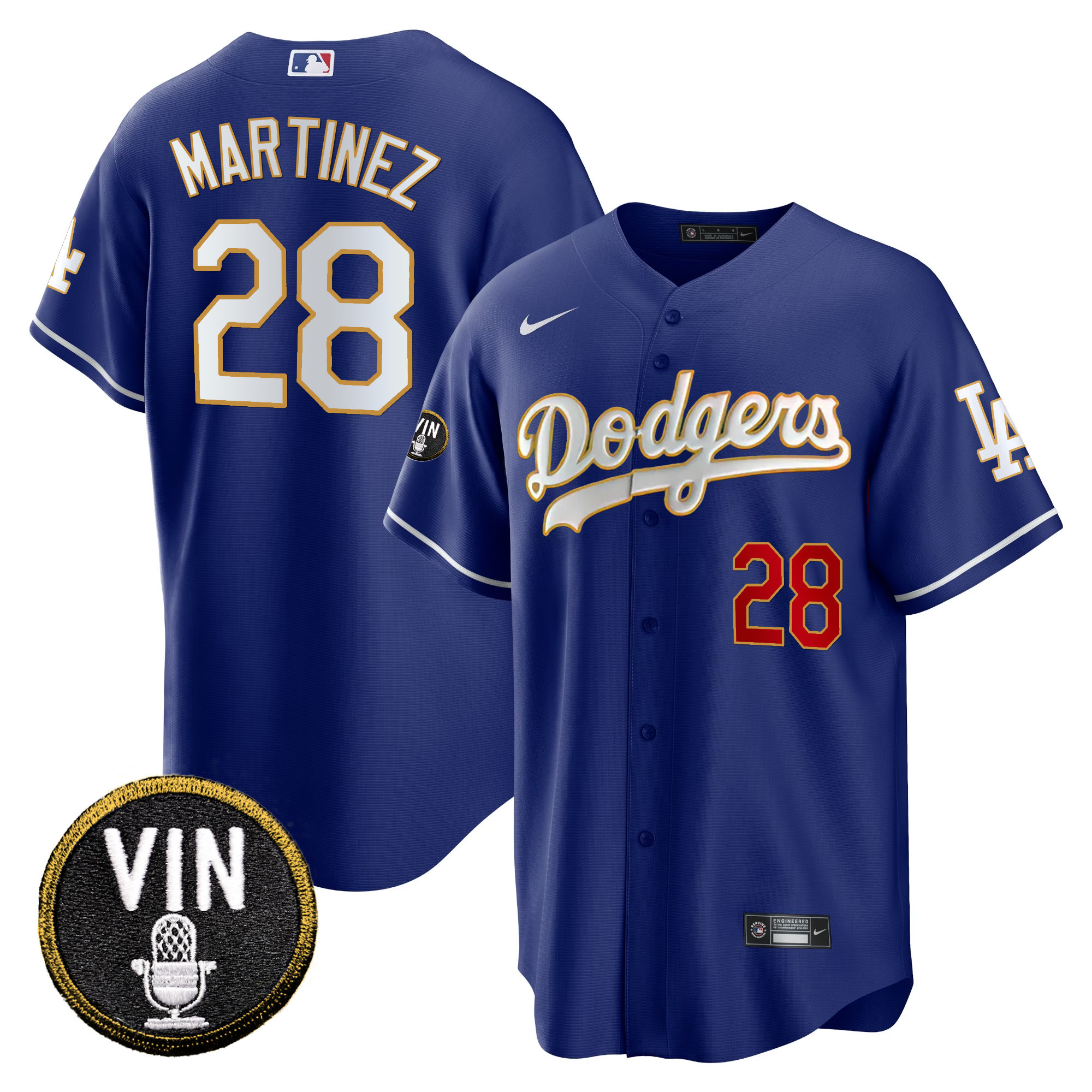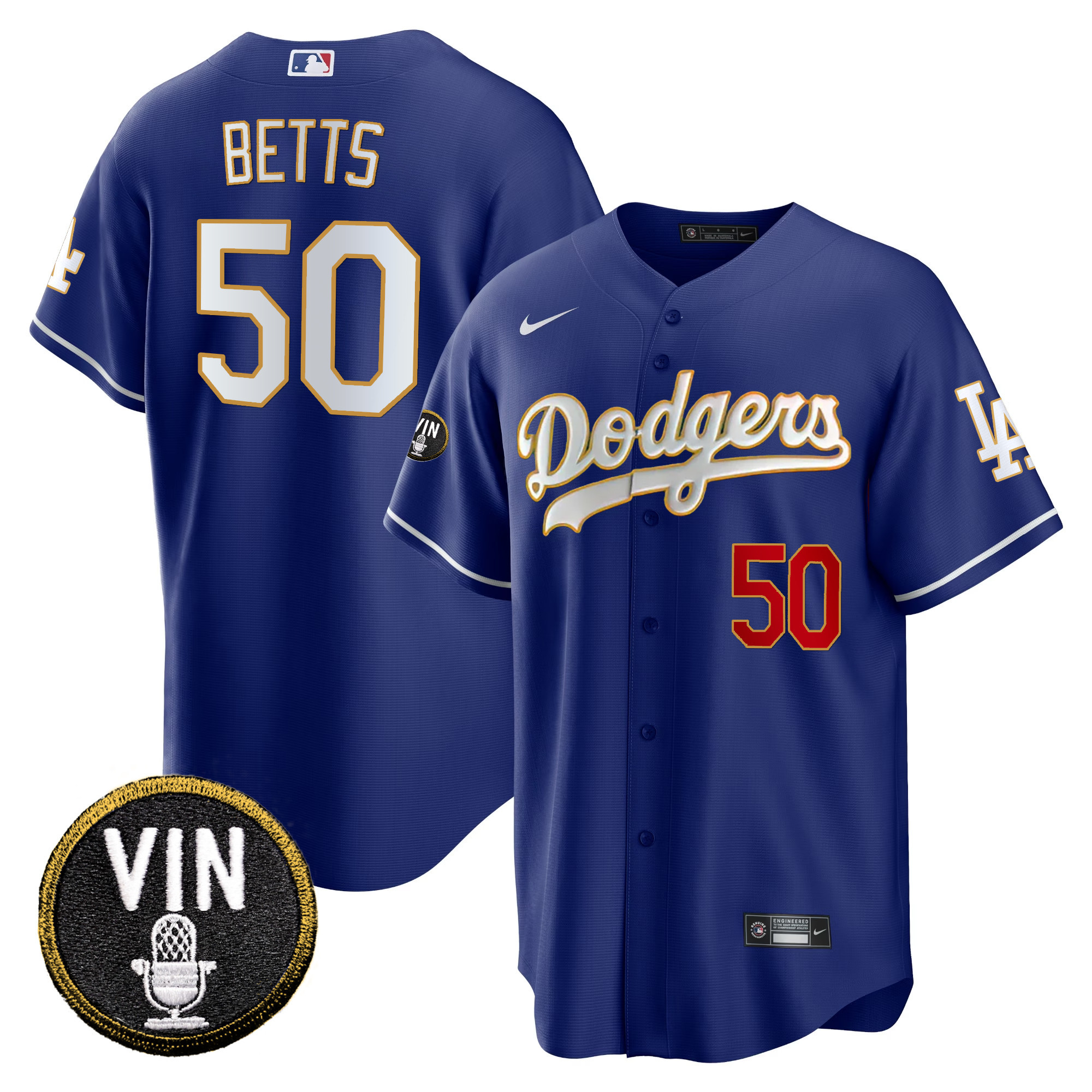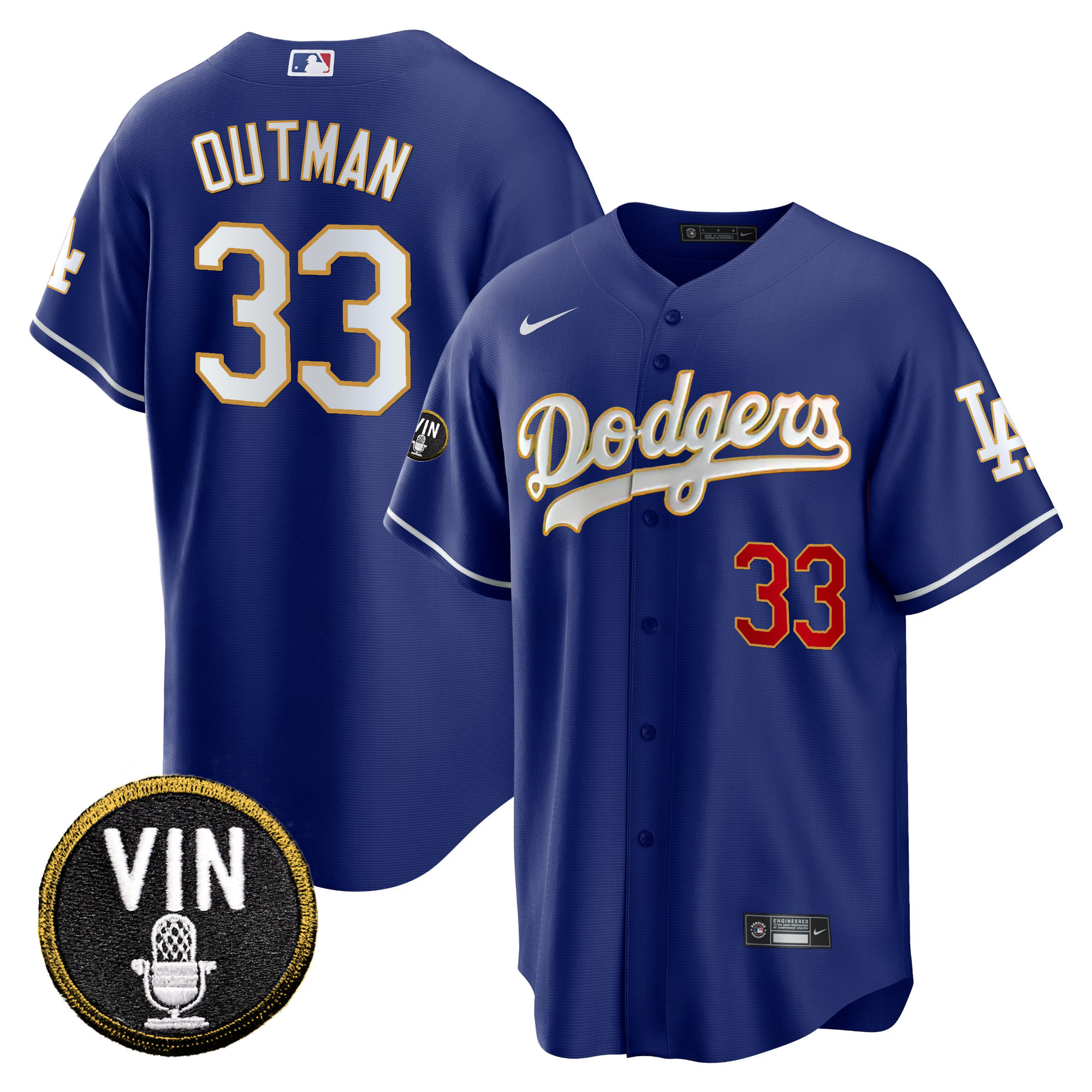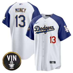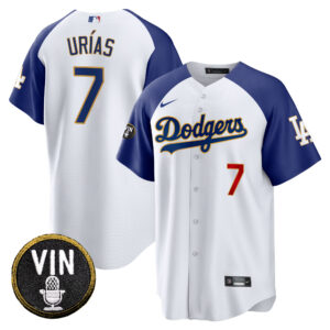 Men’s Dodgers Vin Scully Patch Cool Base Gold Trim Jersey V2 – All Stitched