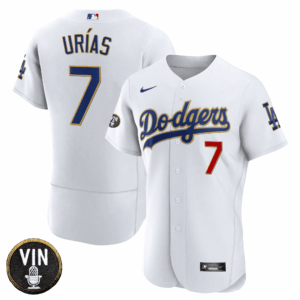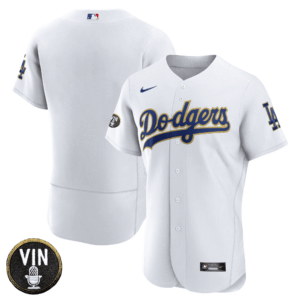 Men’s Dodgers 2025 World Series Gold Trim Vapor Premier Limited Jersey – All Stitched