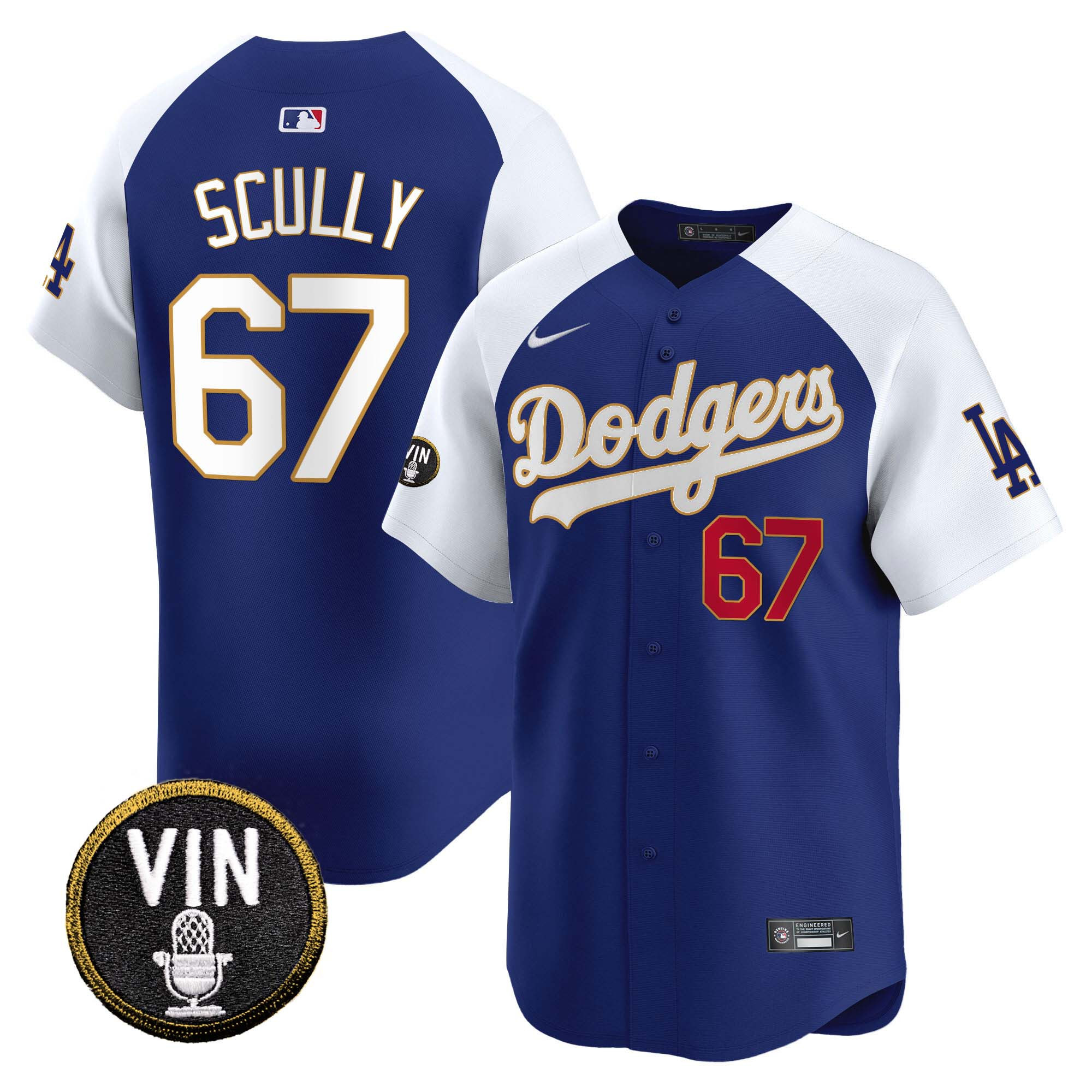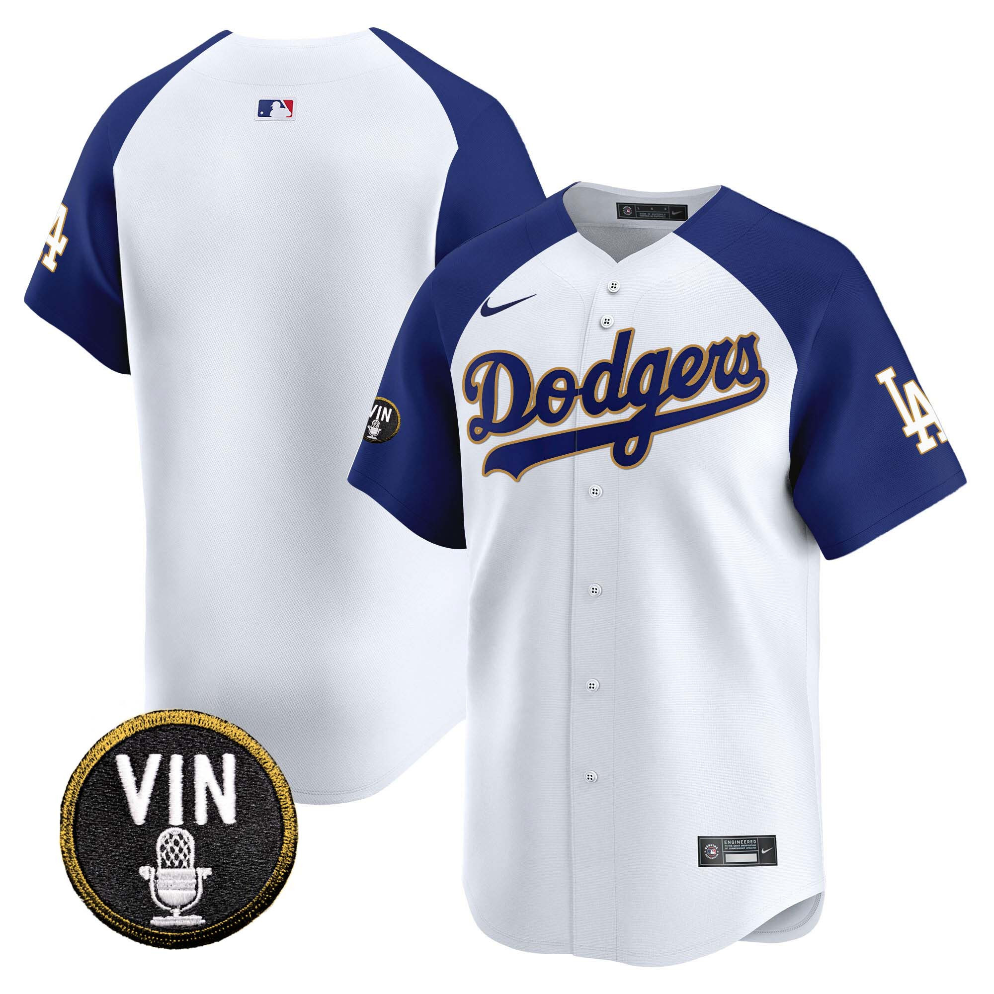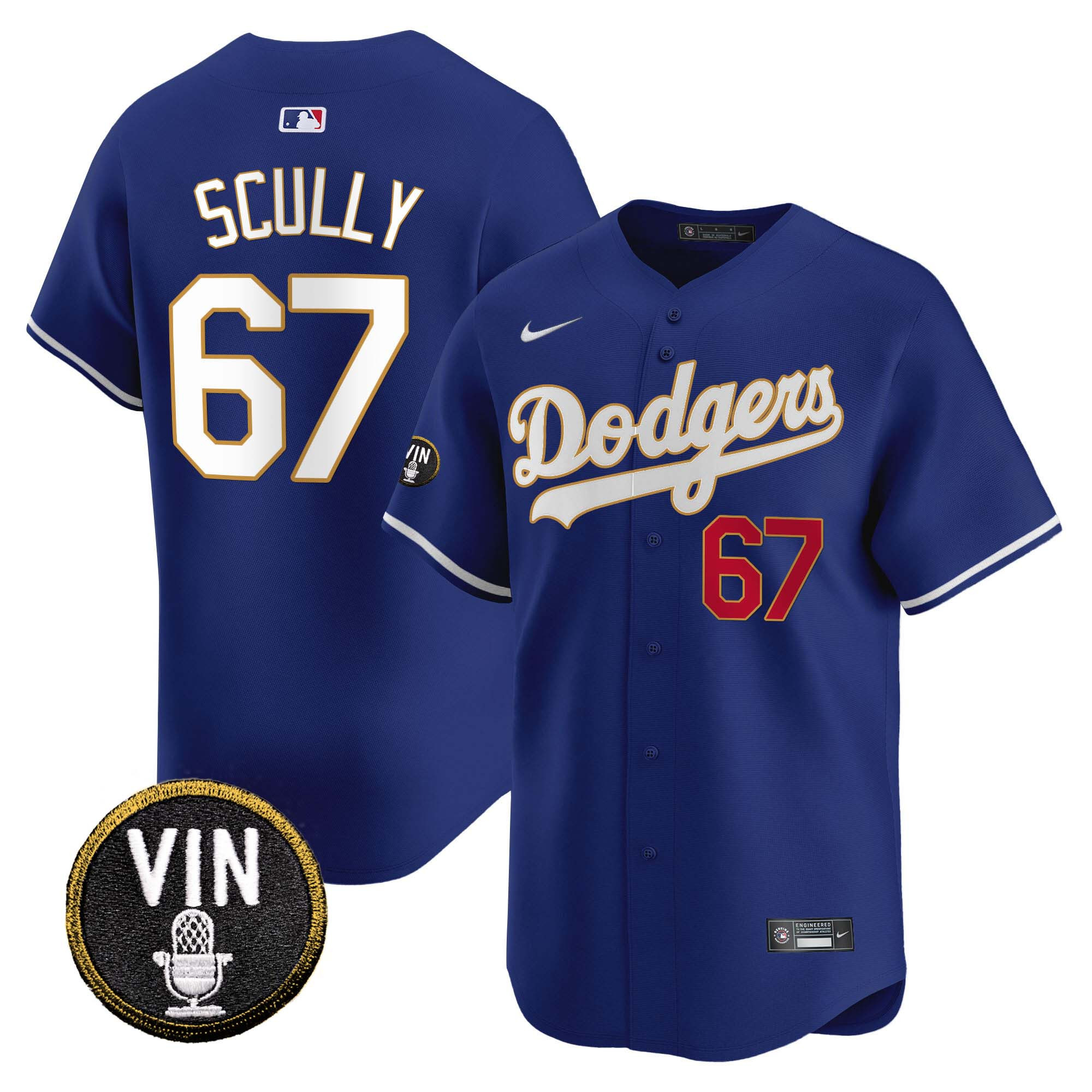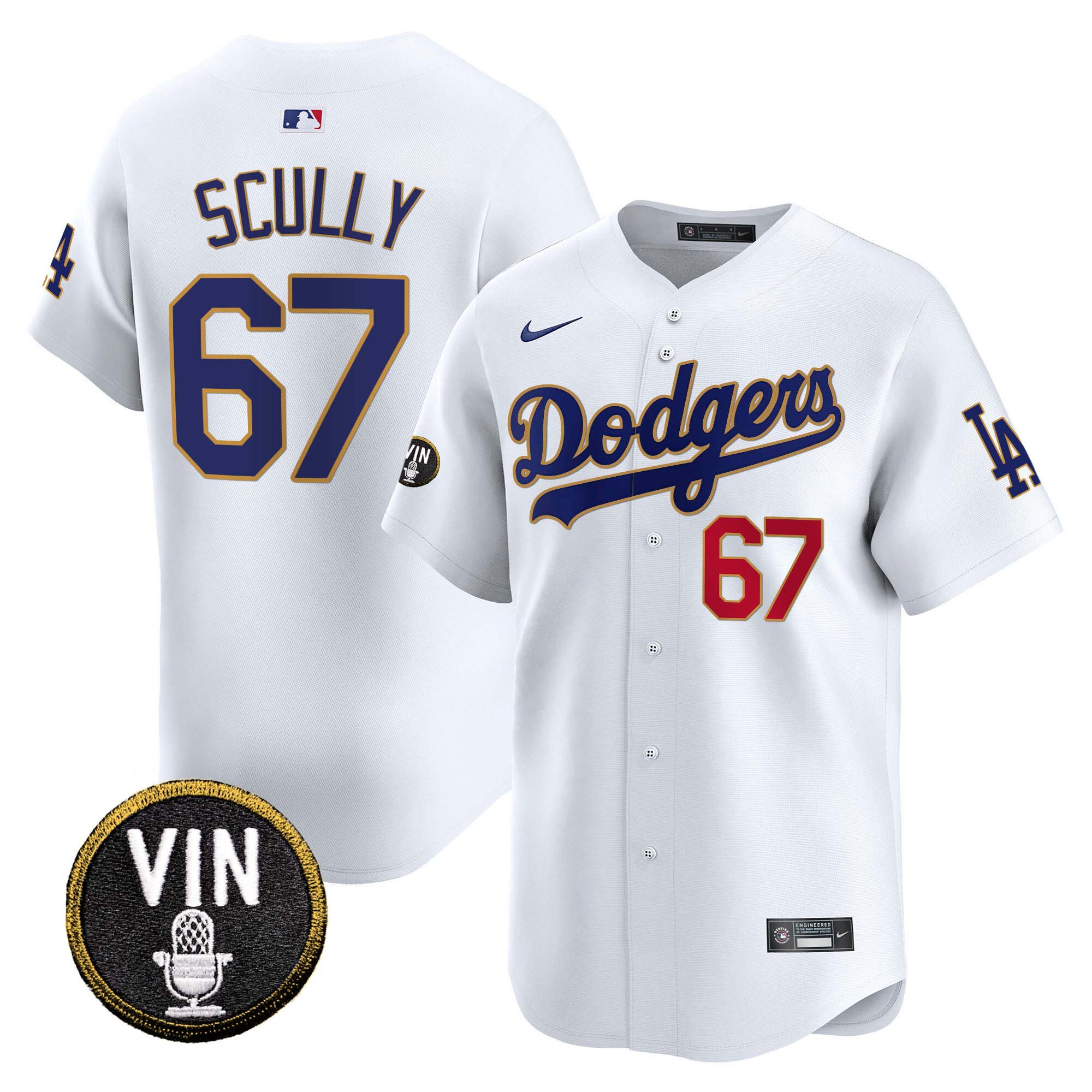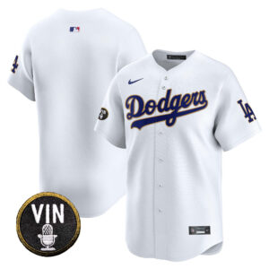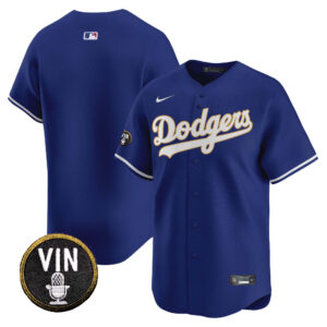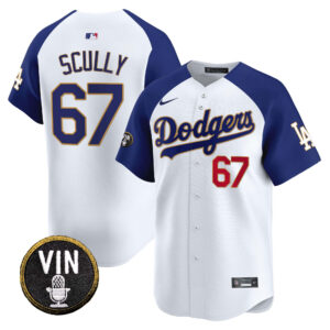 Men’s Dodgers Vin Scully Patch Gold Trim Vapor Premier Limited Jersey – All Stitched