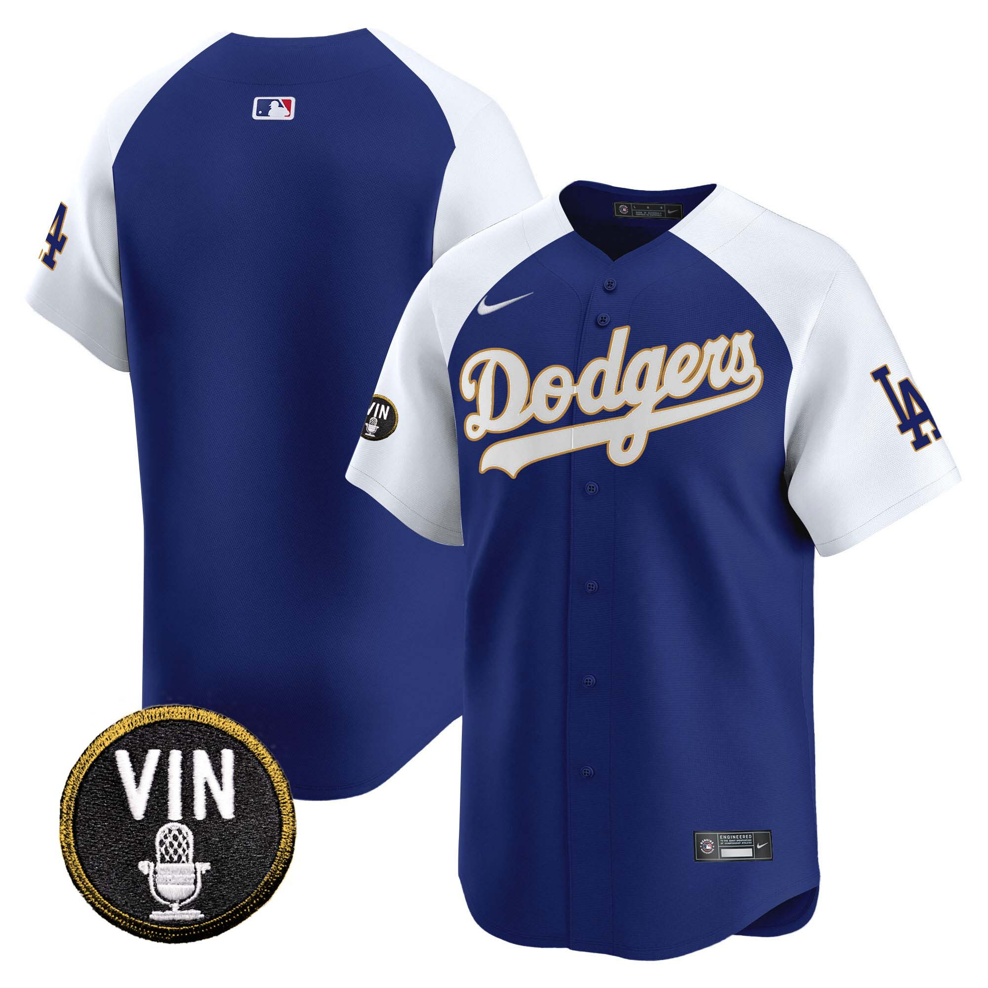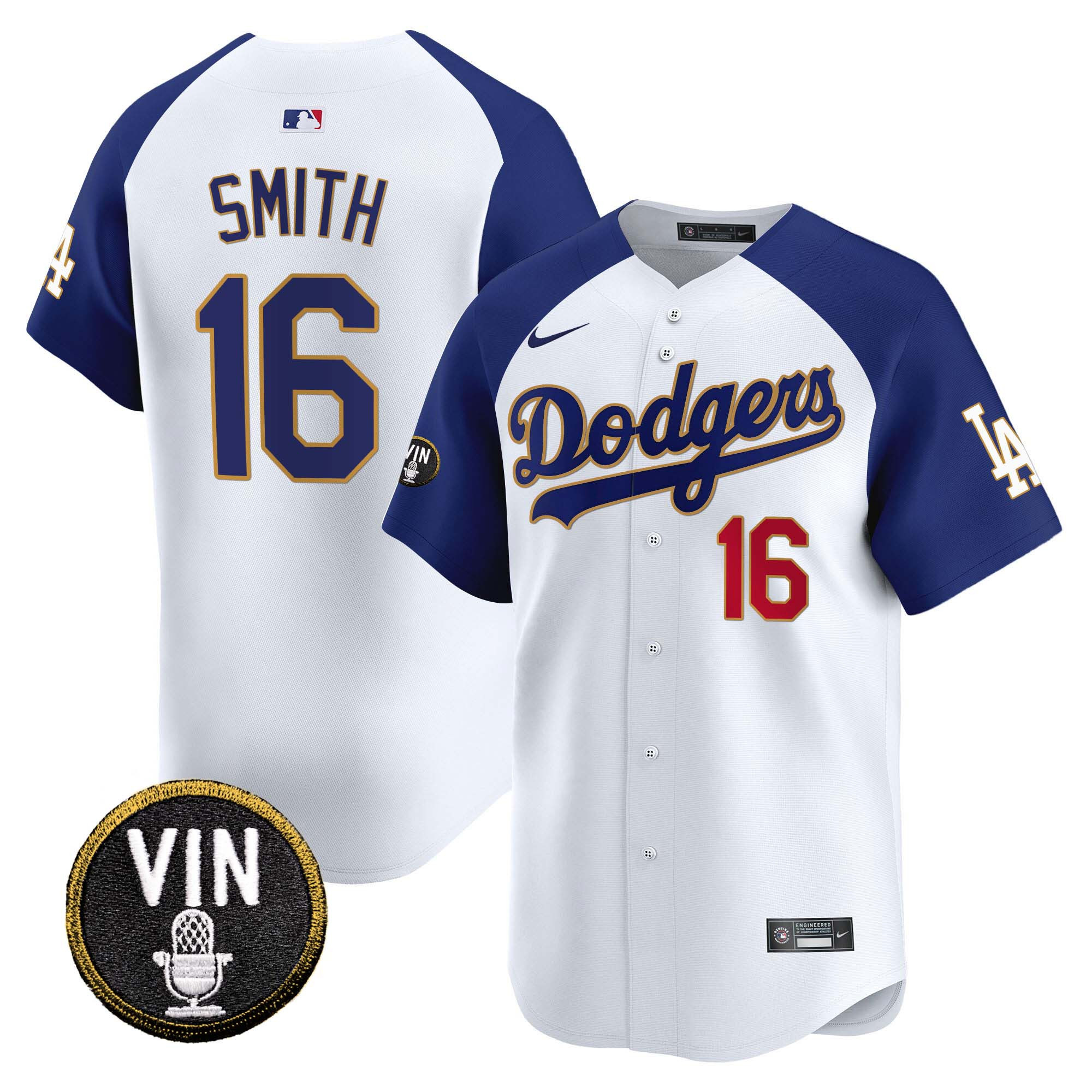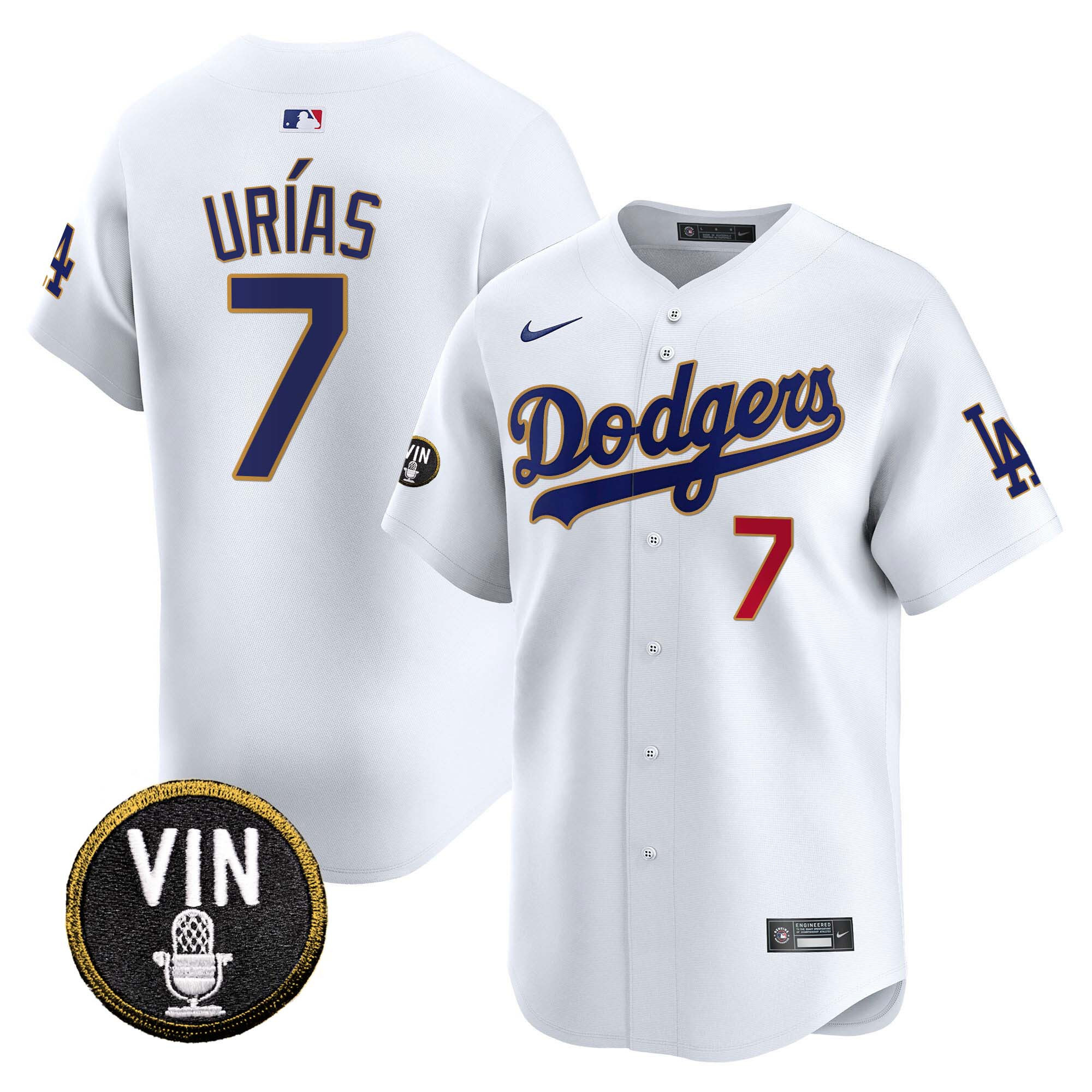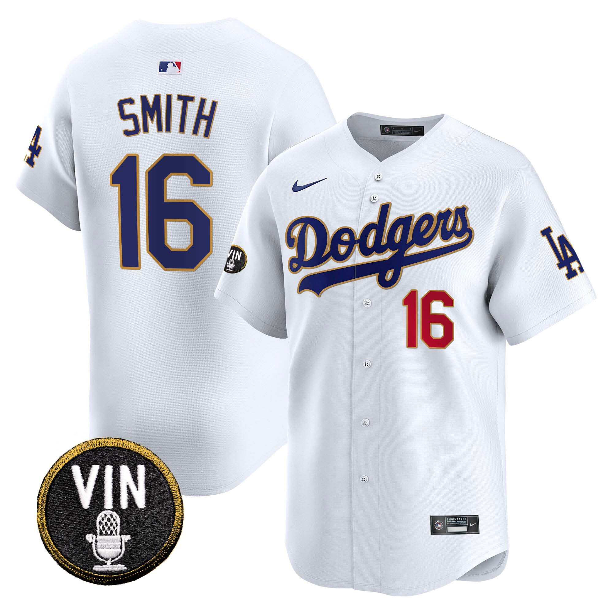 Men’s Dodgers Vin Scully Patch Gold Trim Vapor Premier Limited Jersey – All Stitched