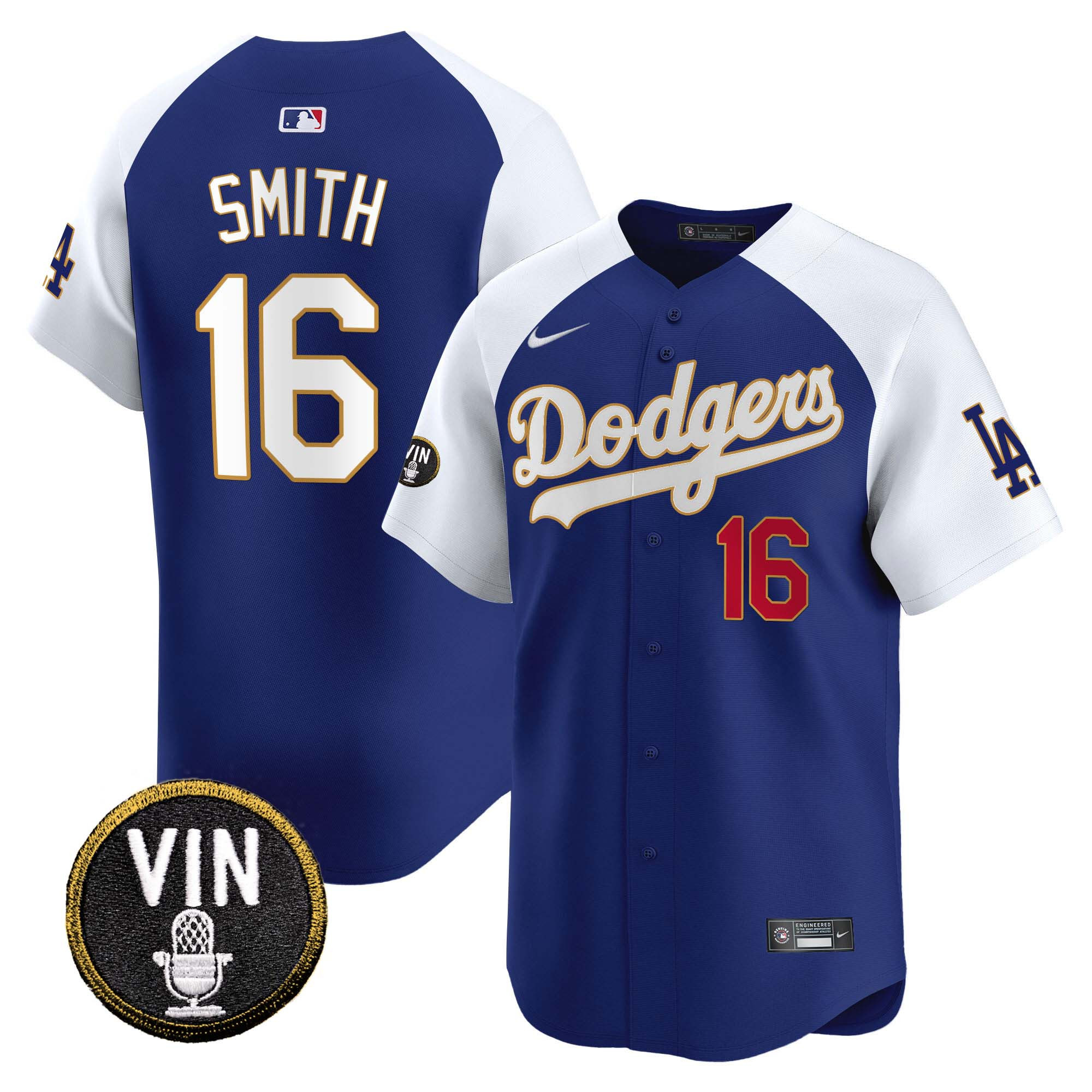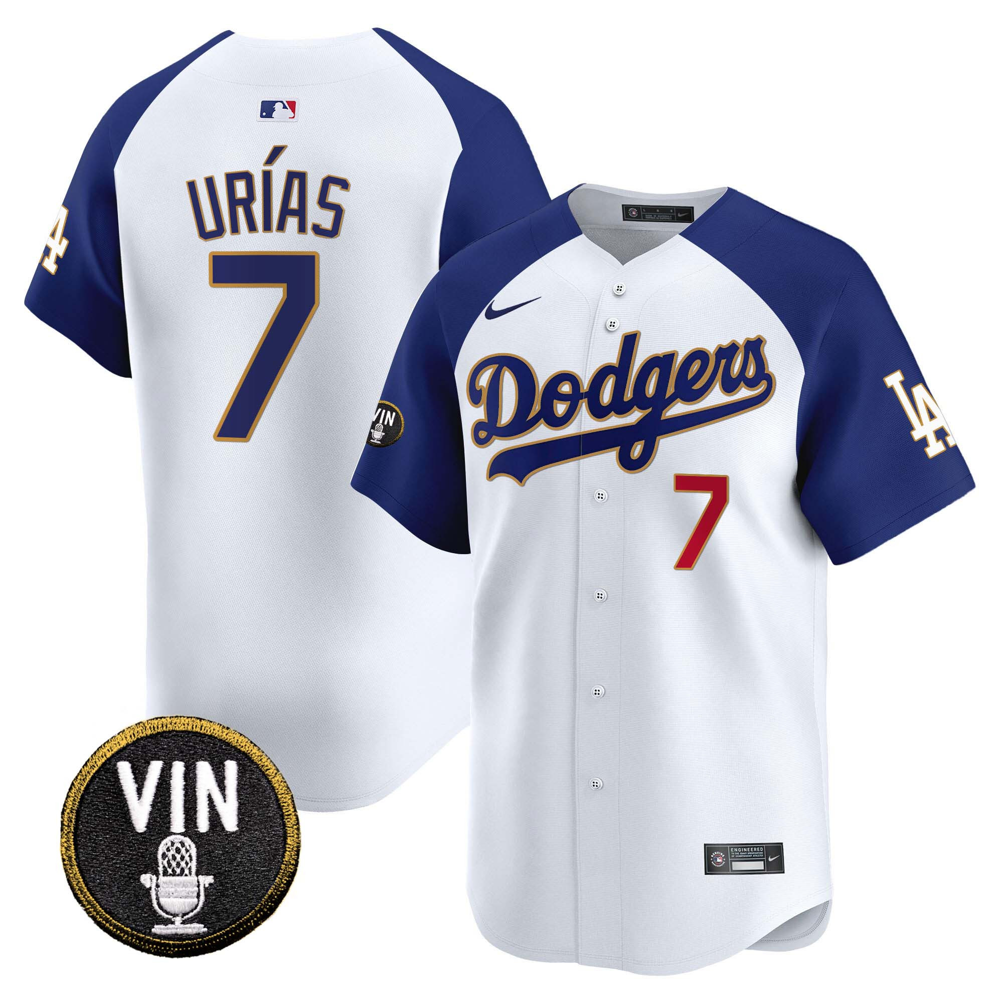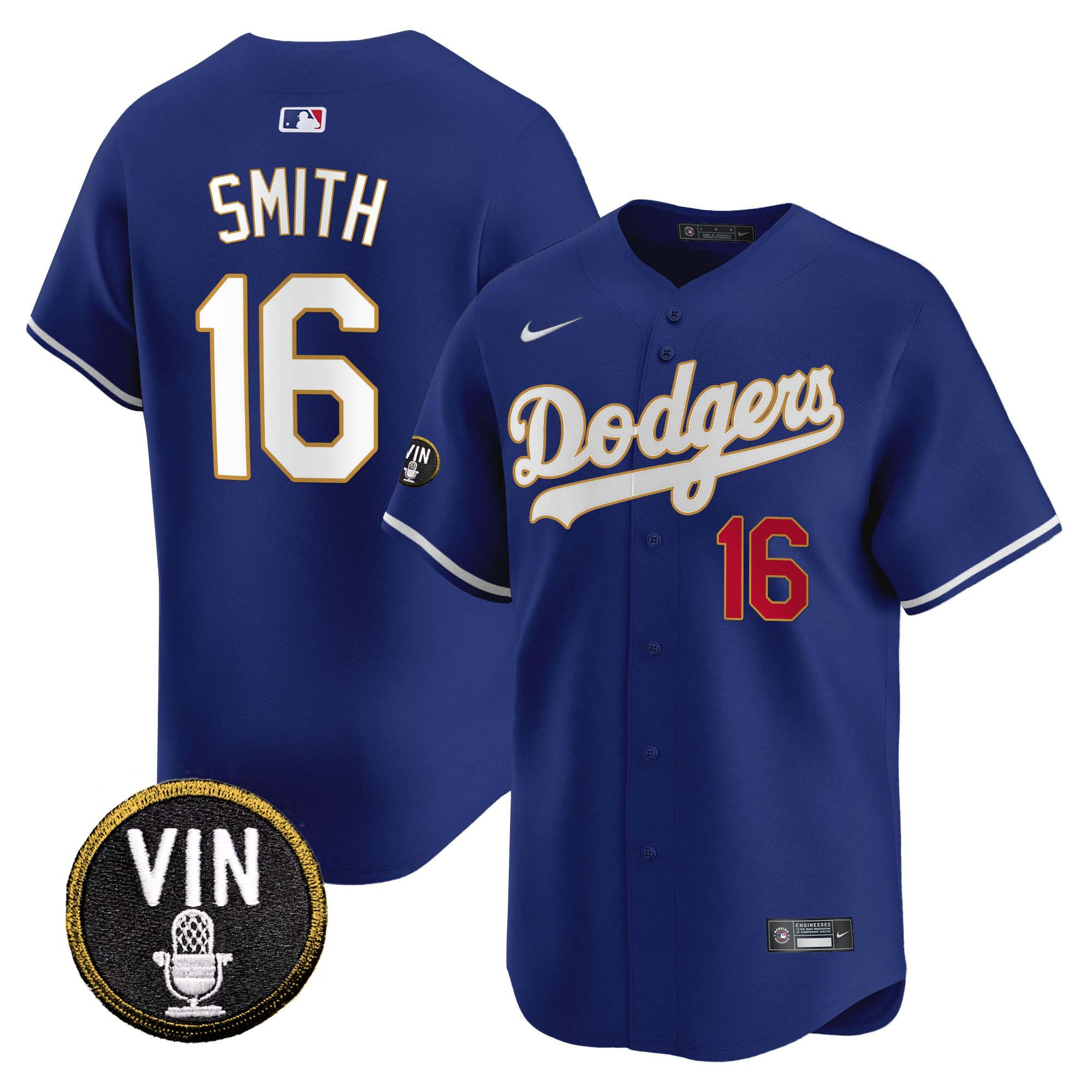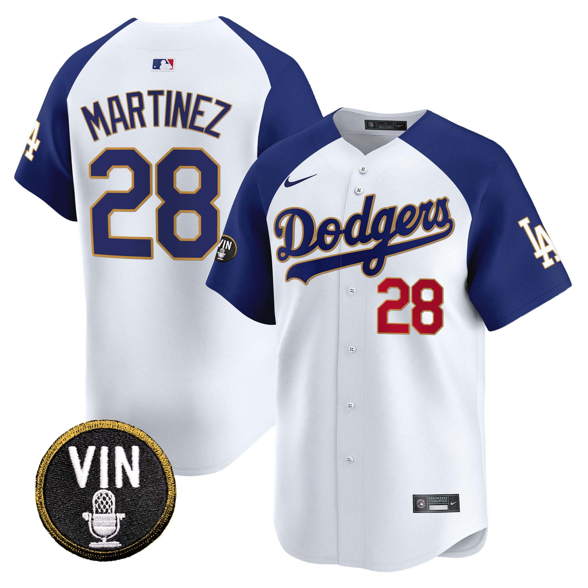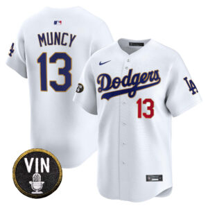 Men’s Dodgers Vin Scully Patch Gold Trim Vapor Premier Limited Jersey – All Stitched