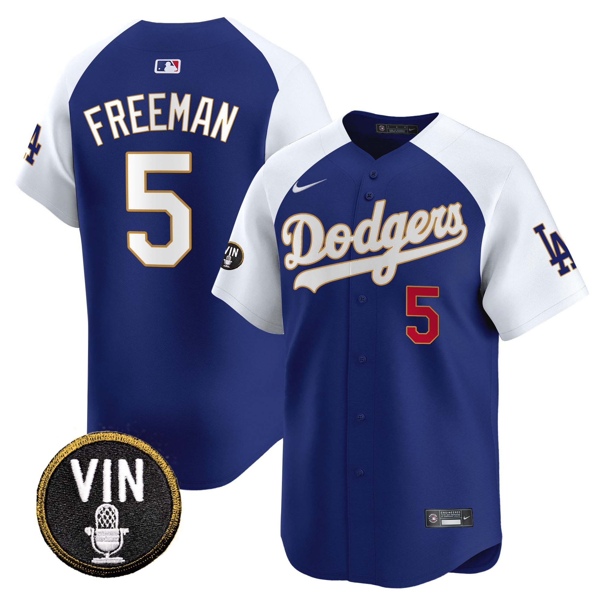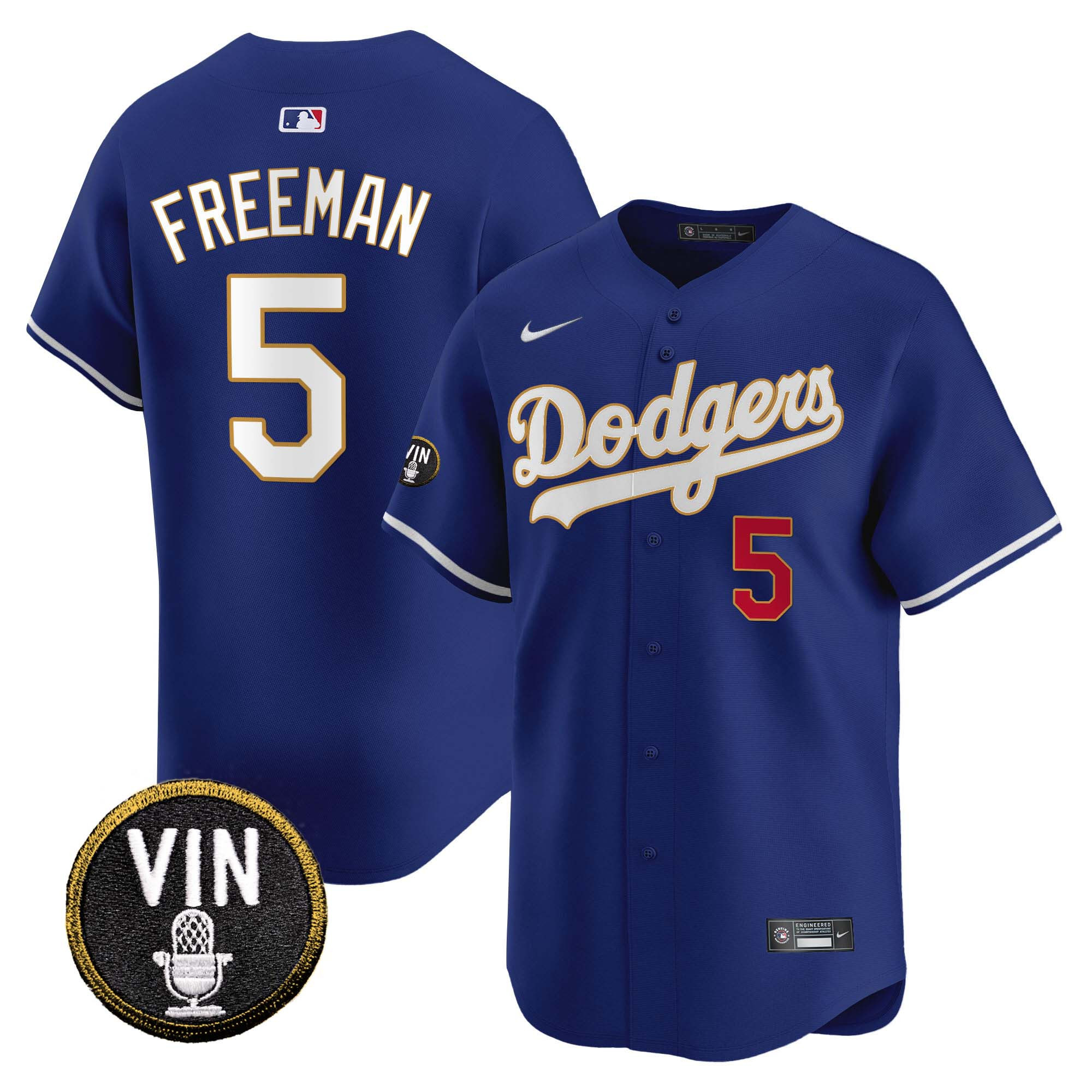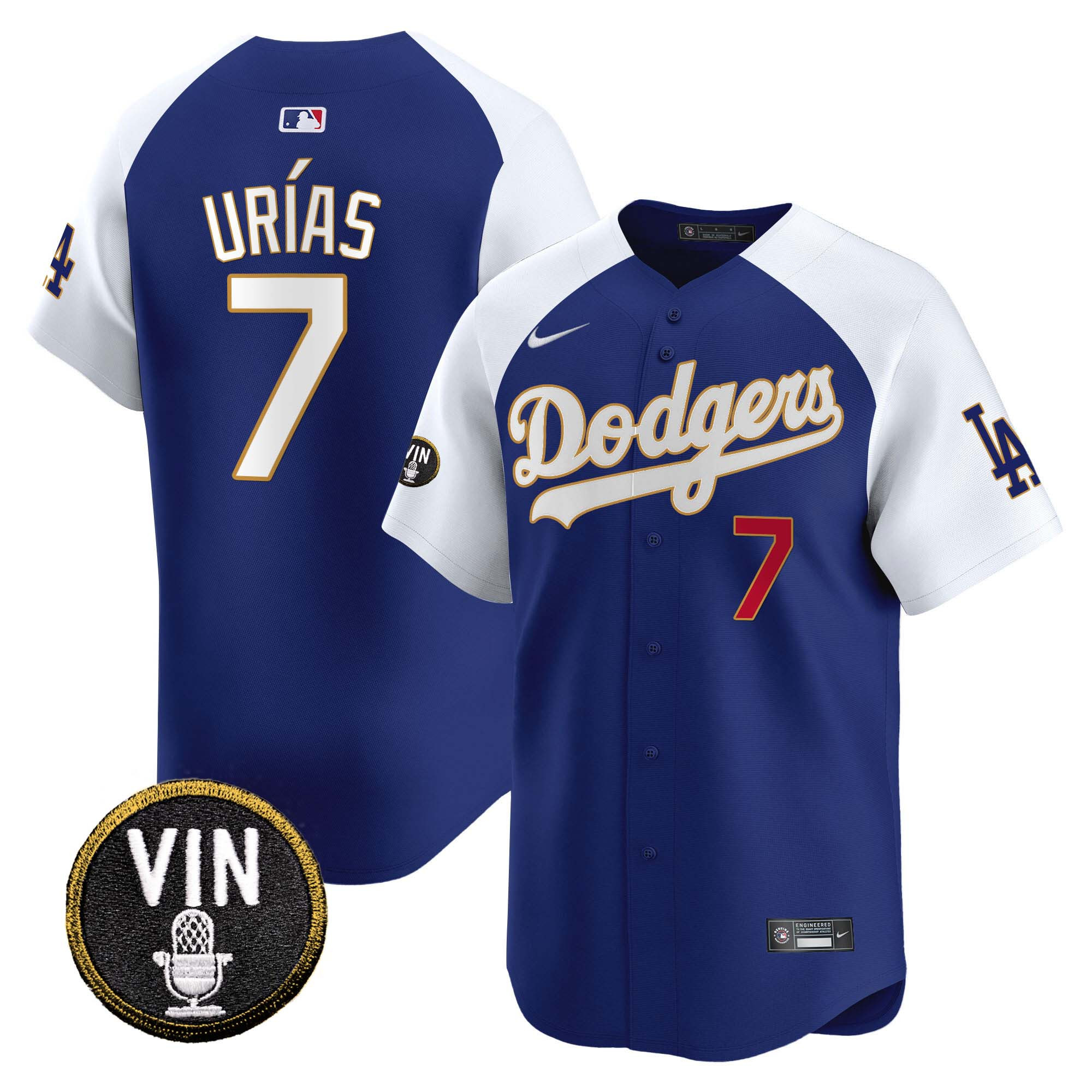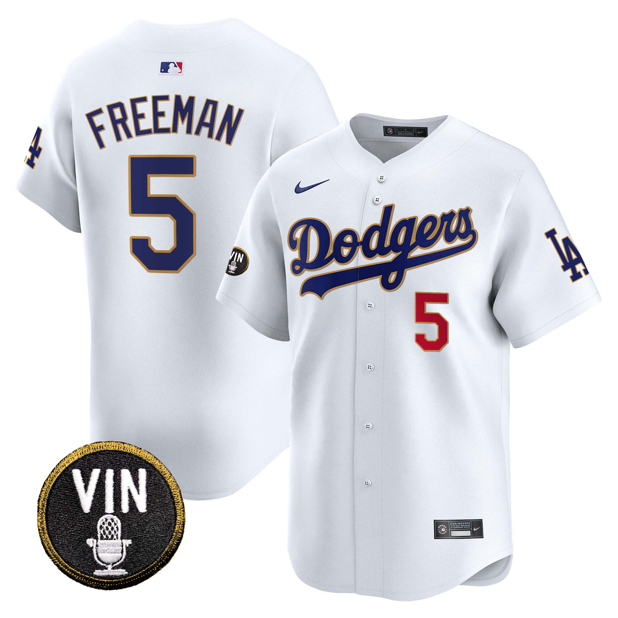 Men’s Dodgers Vin Scully Patch Gold Trim Vapor Premier Limited Jersey – All Stitched
