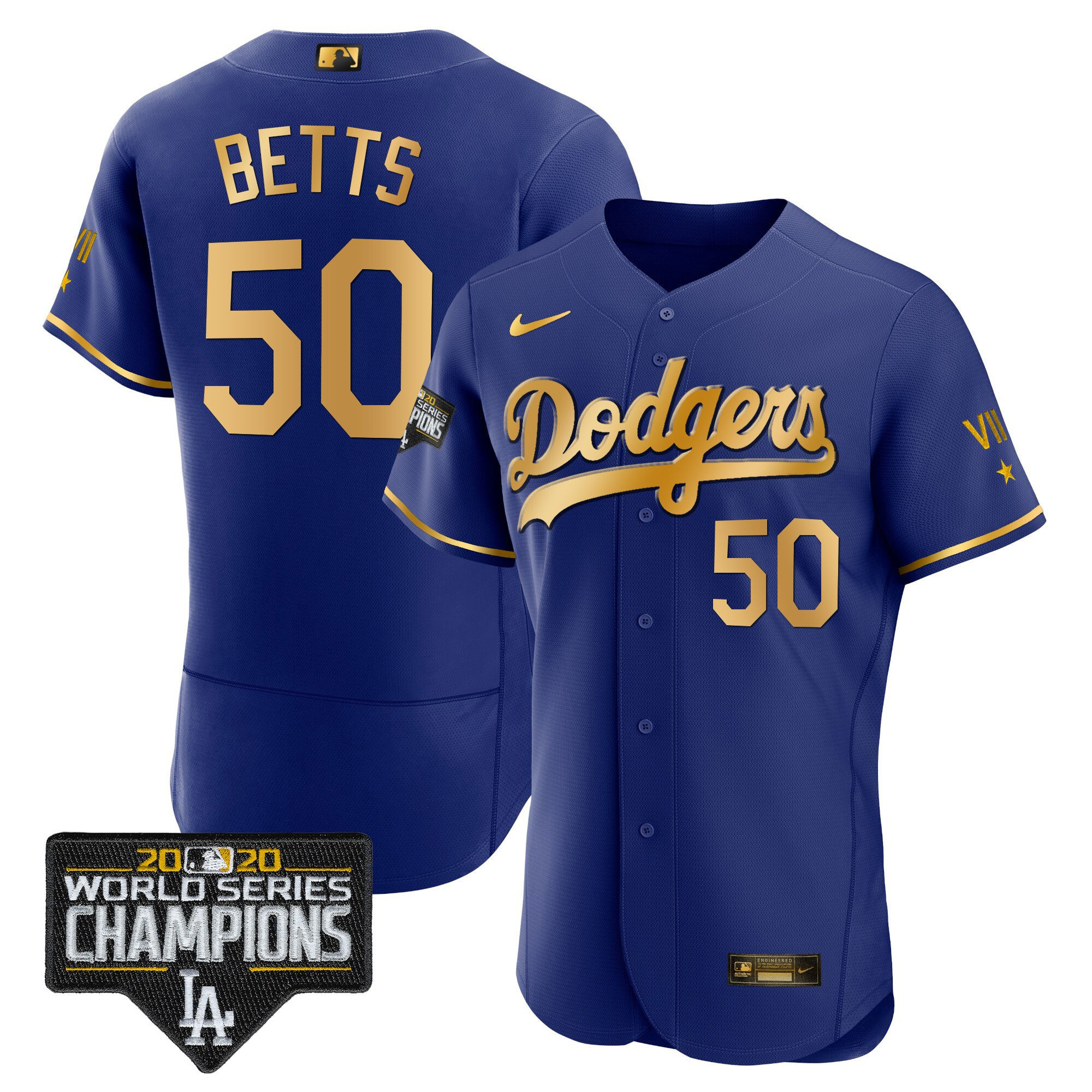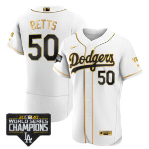 Men’s Dodgers World Series 2020 Gold Jersey – All Stitched