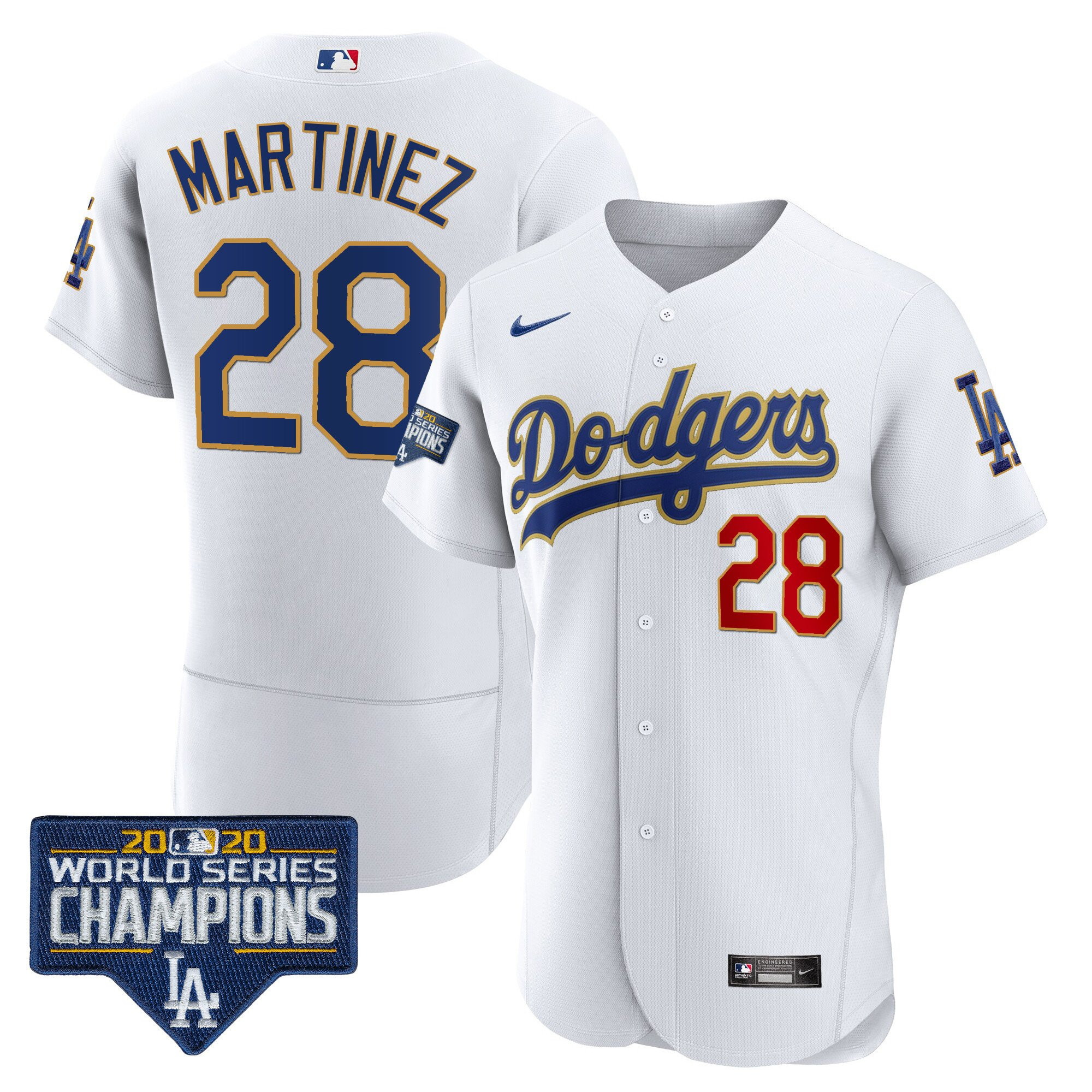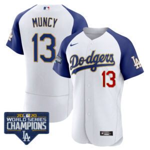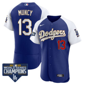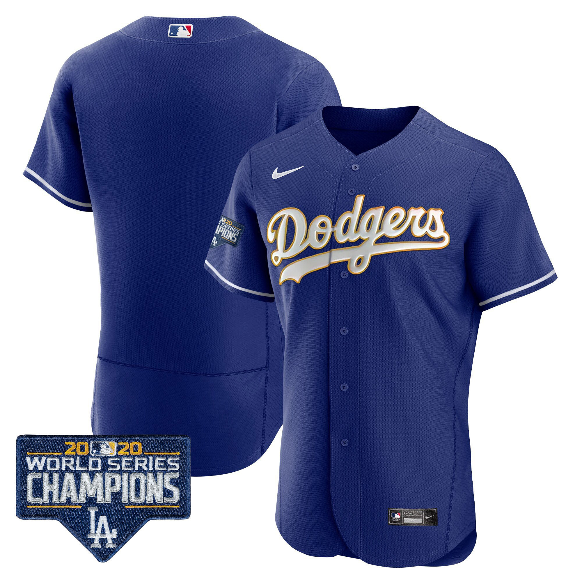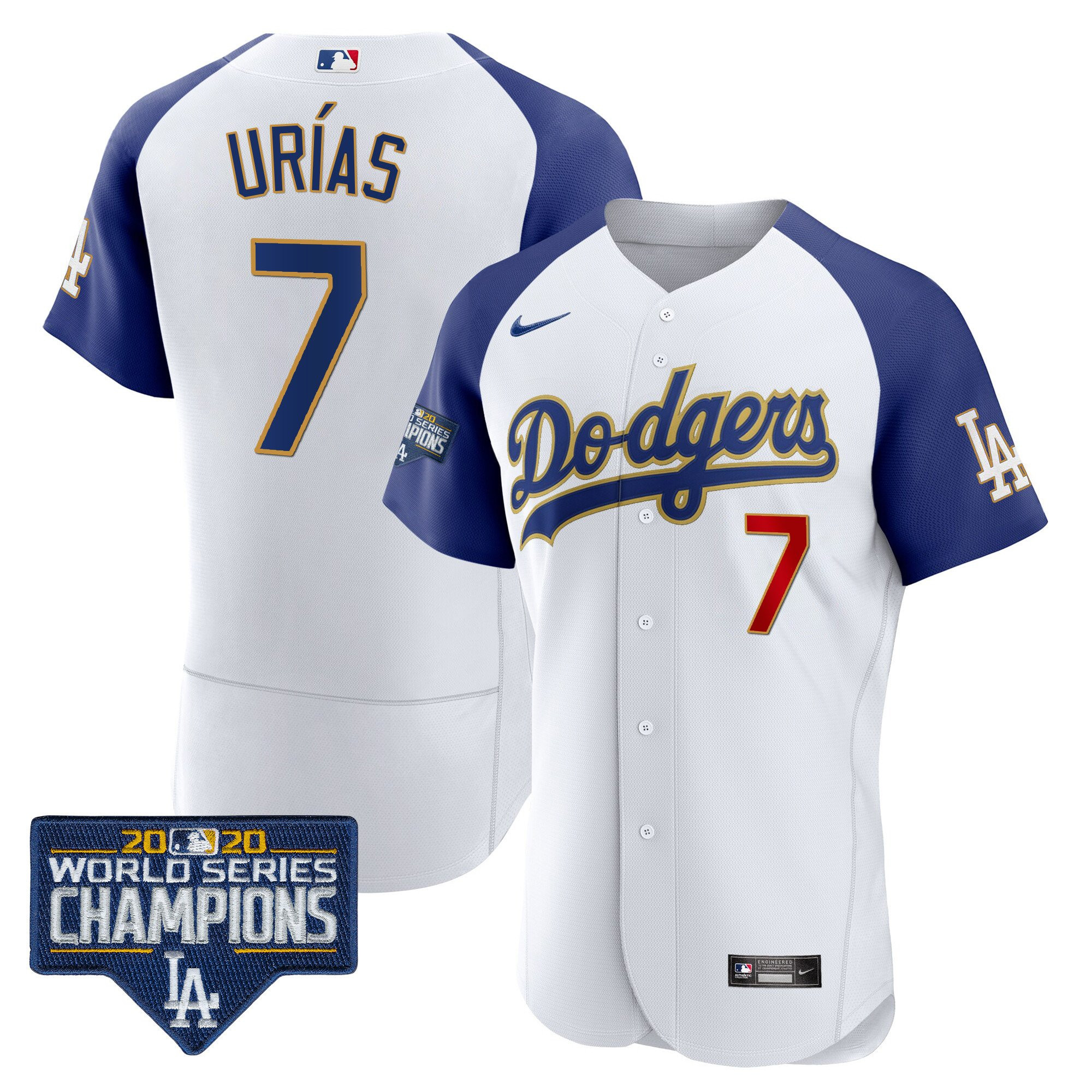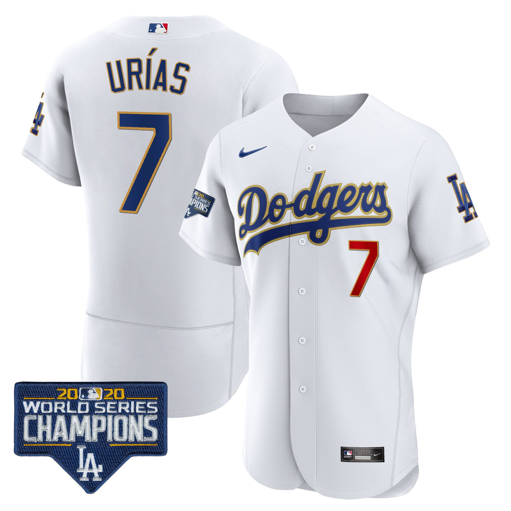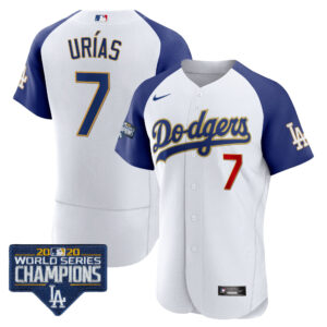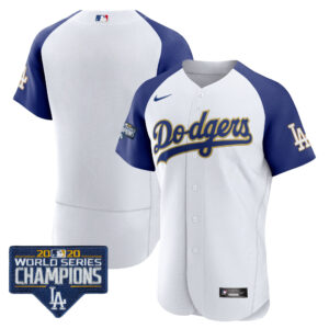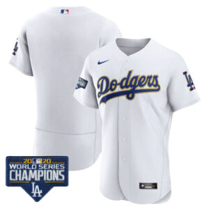 Men’s Dodgers World Series Champions Patch Flex Base Gold Trim Jersey – All Stitched