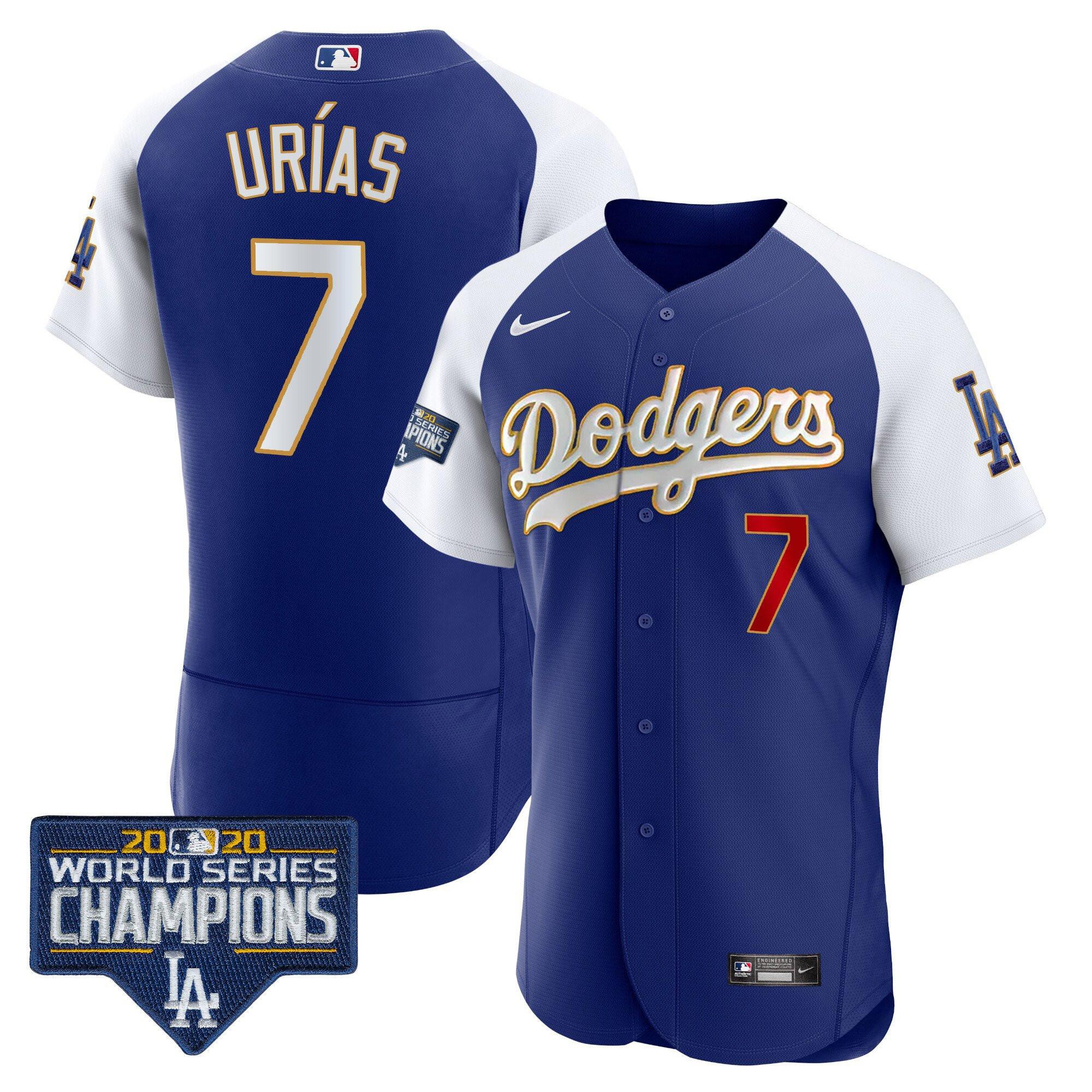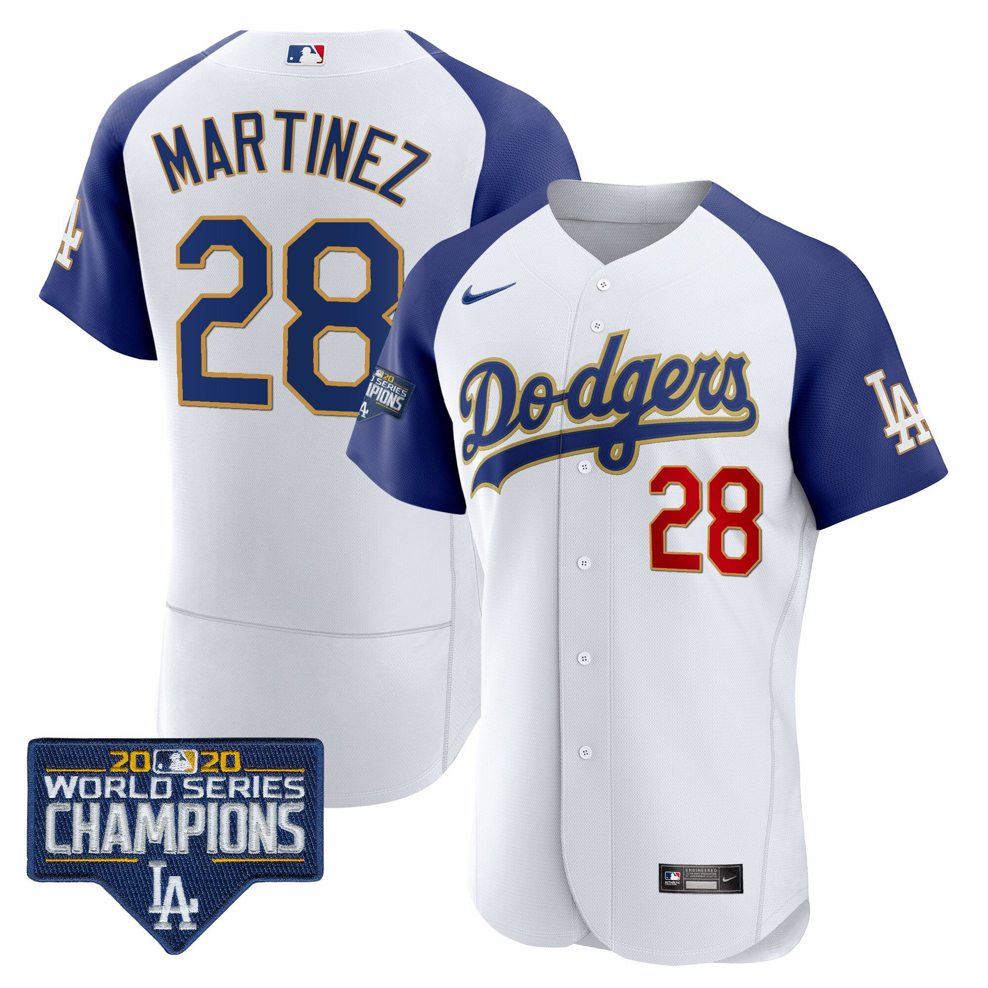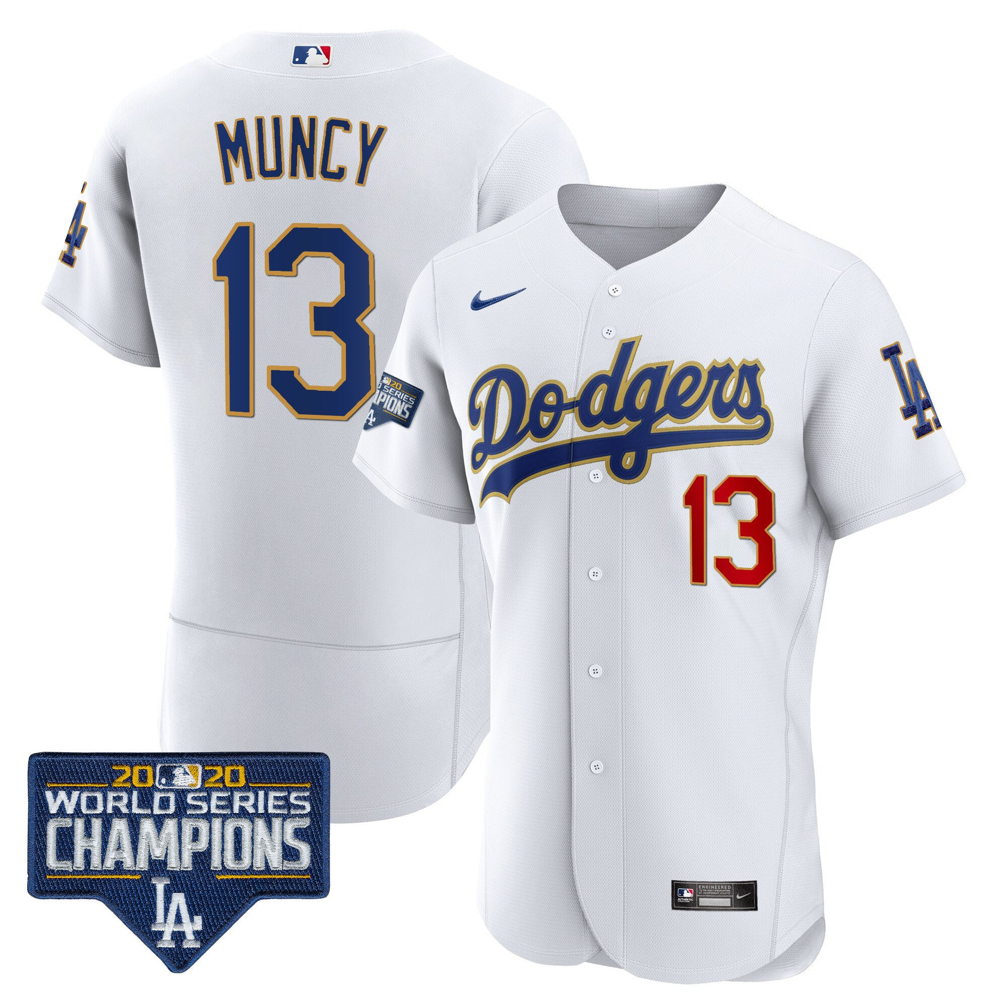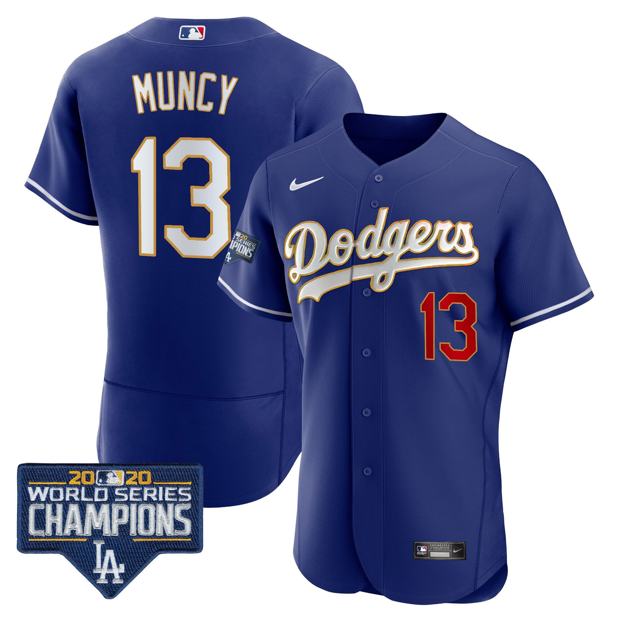 Men’s Dodgers World Series Champions Patch Flex Base Gold Trim Jersey – All Stitched