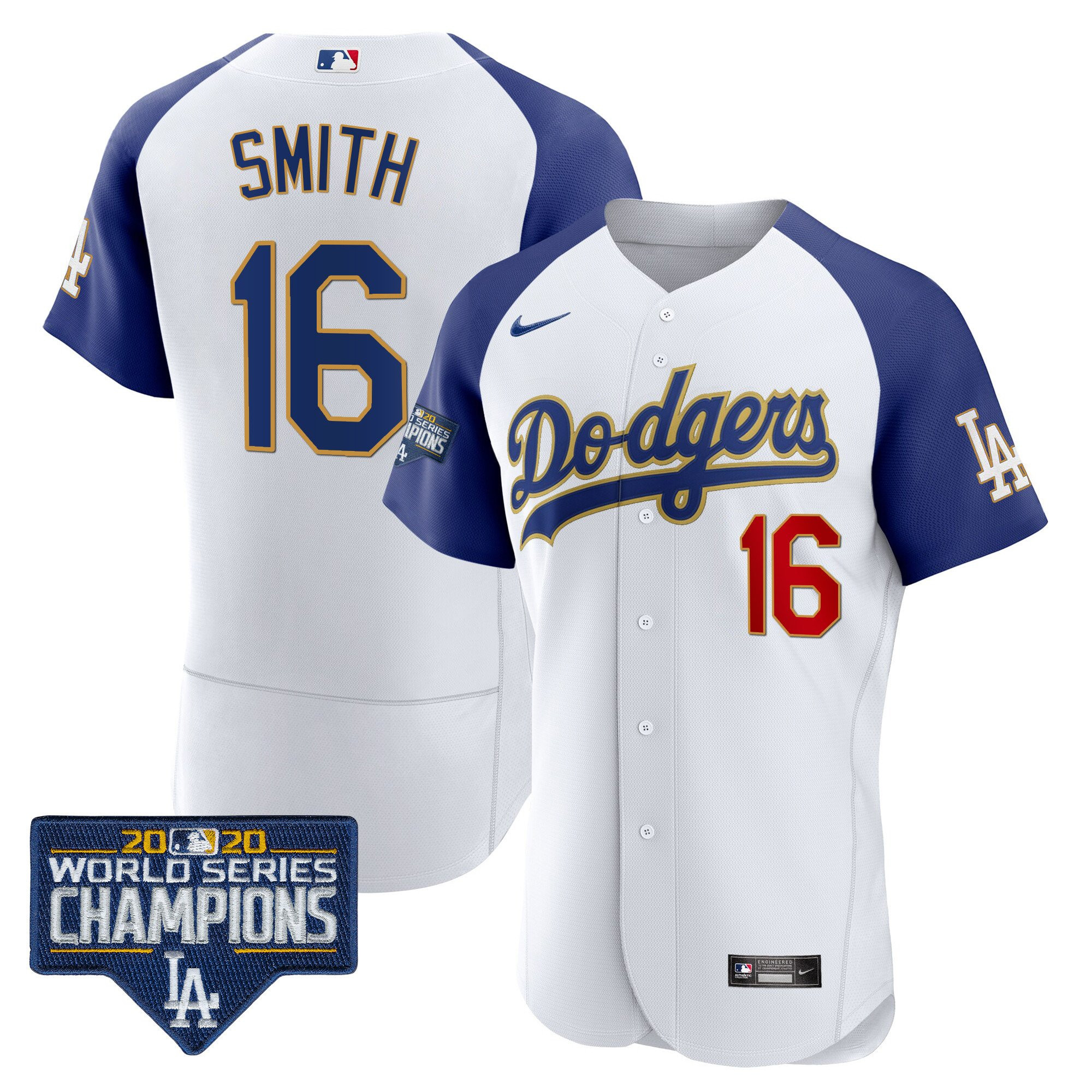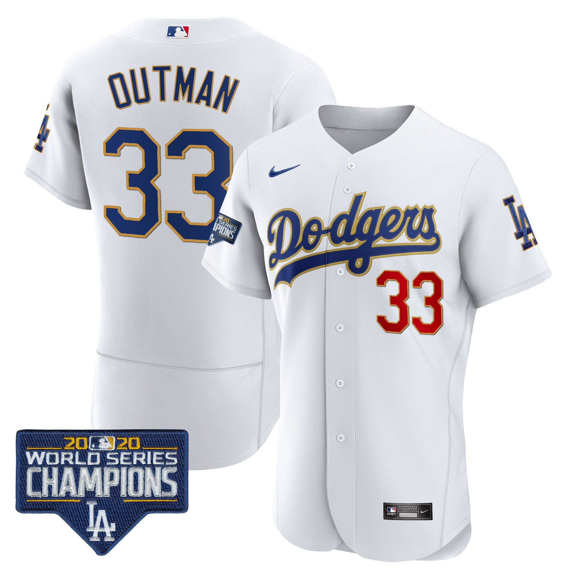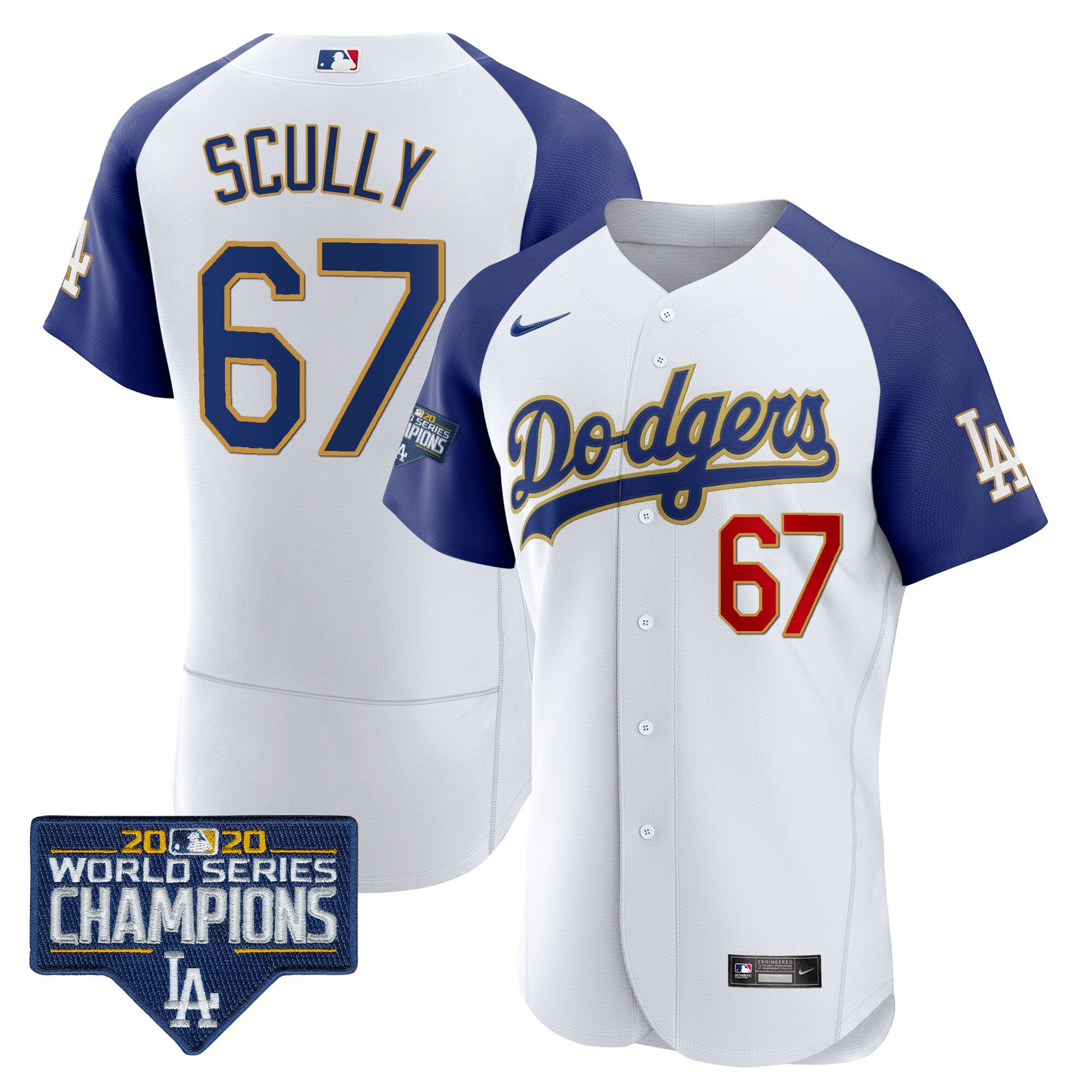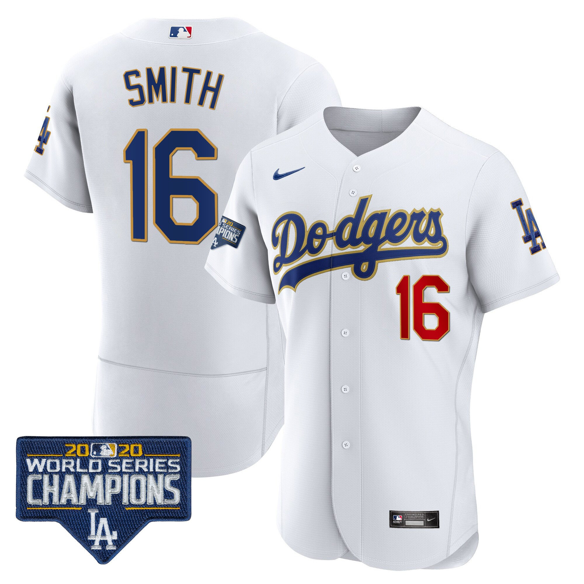 Men’s Dodgers World Series Champions Patch Flex Base Gold Trim Jersey – All Stitched