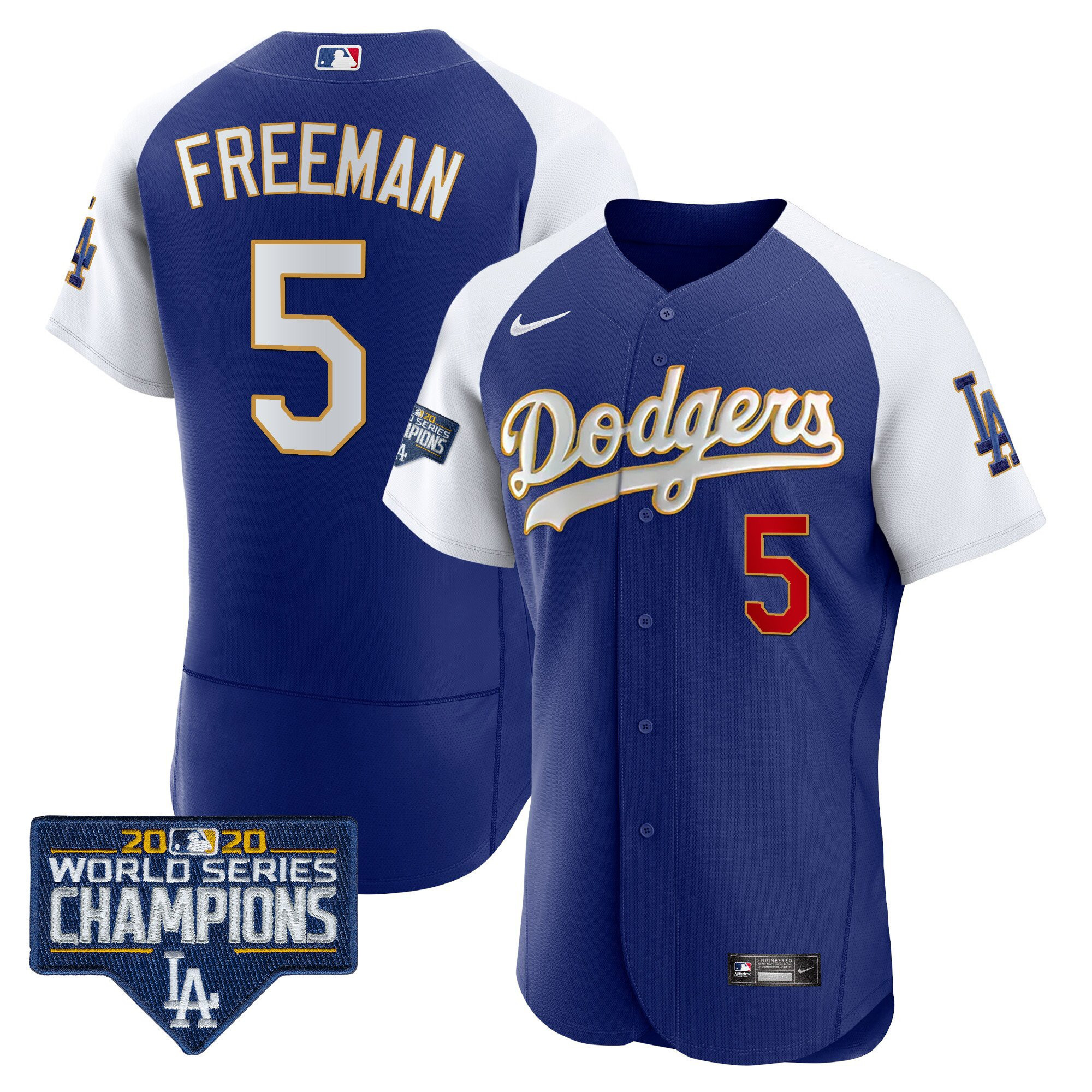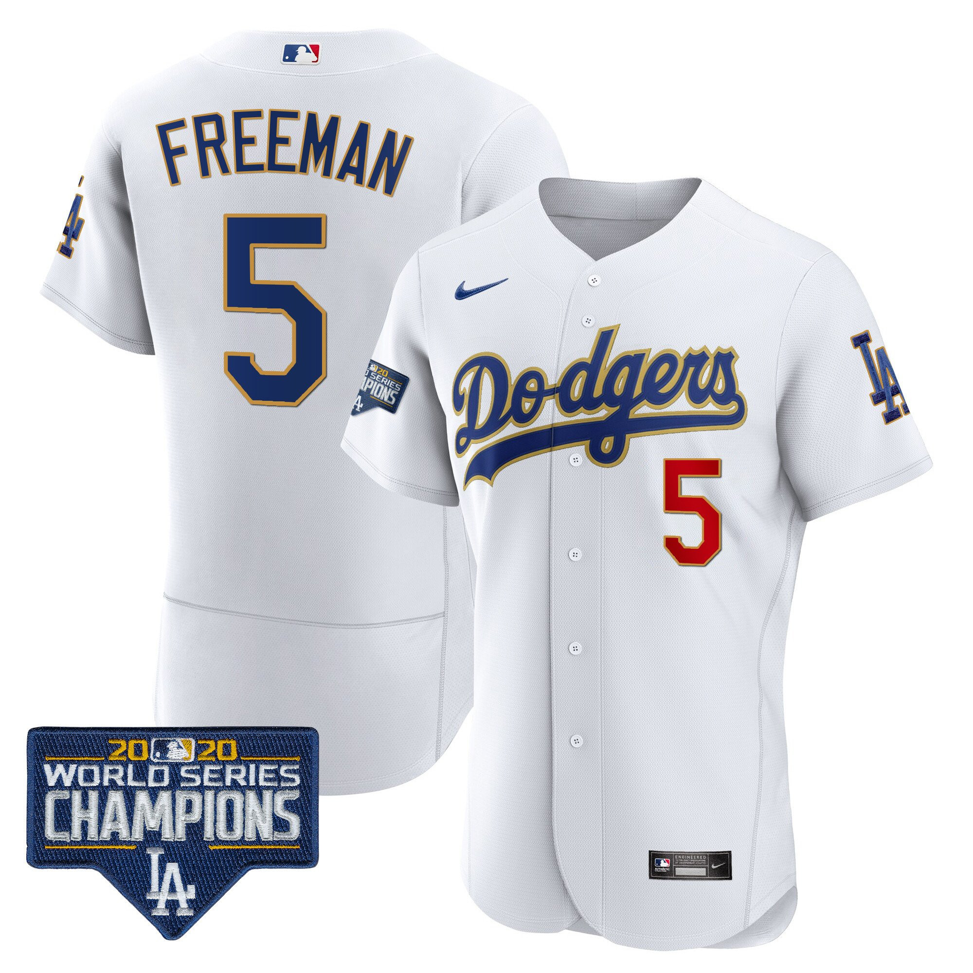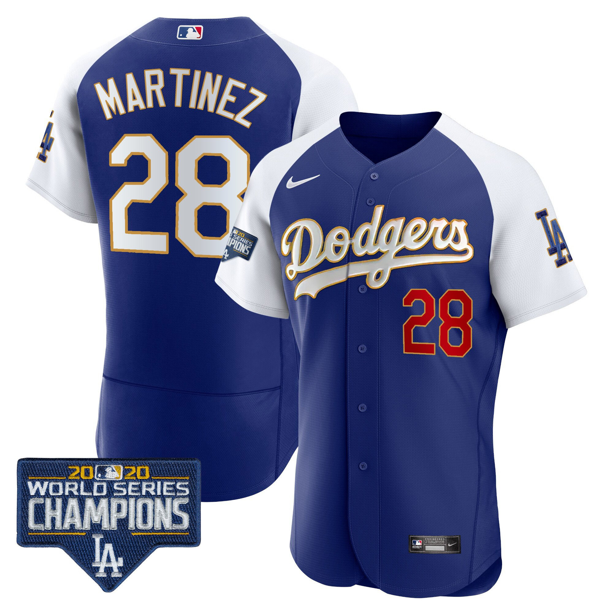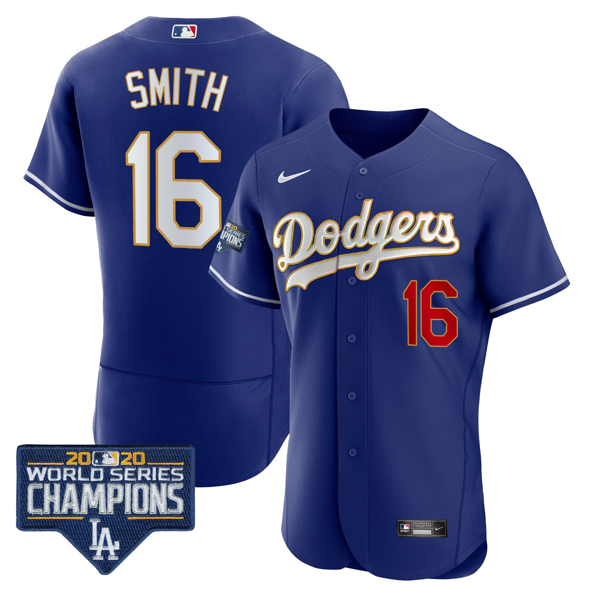 Men’s Dodgers World Series Champions Patch Flex Base Gold Trim Jersey – All Stitched