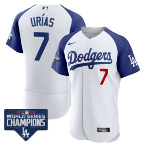 Men’s Dodgers World Series Champions Patch Flex Base Jersey – All Stitched