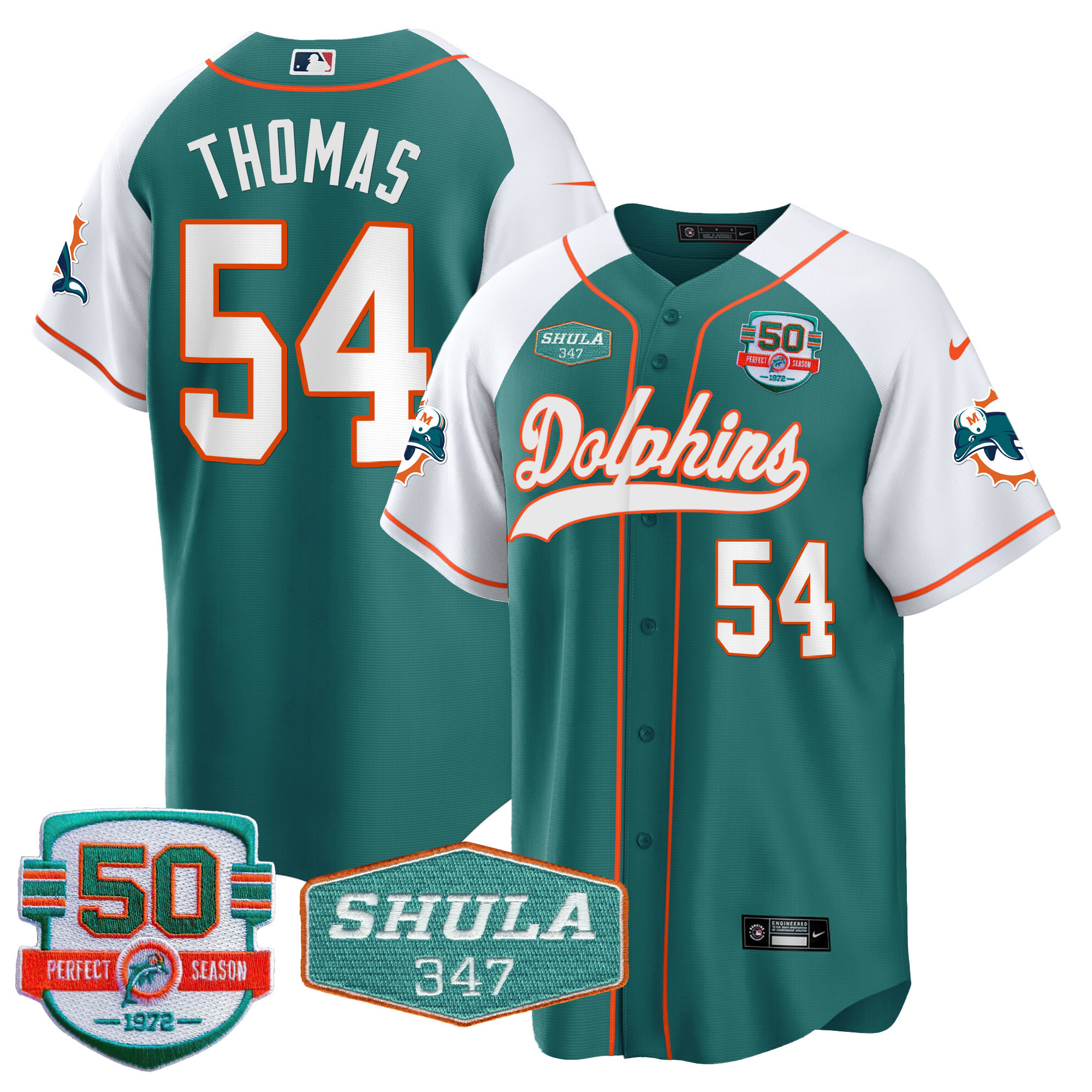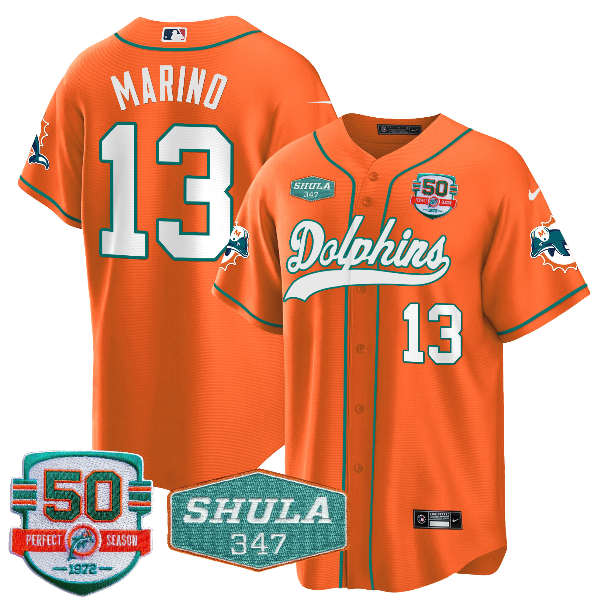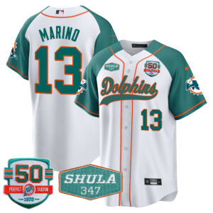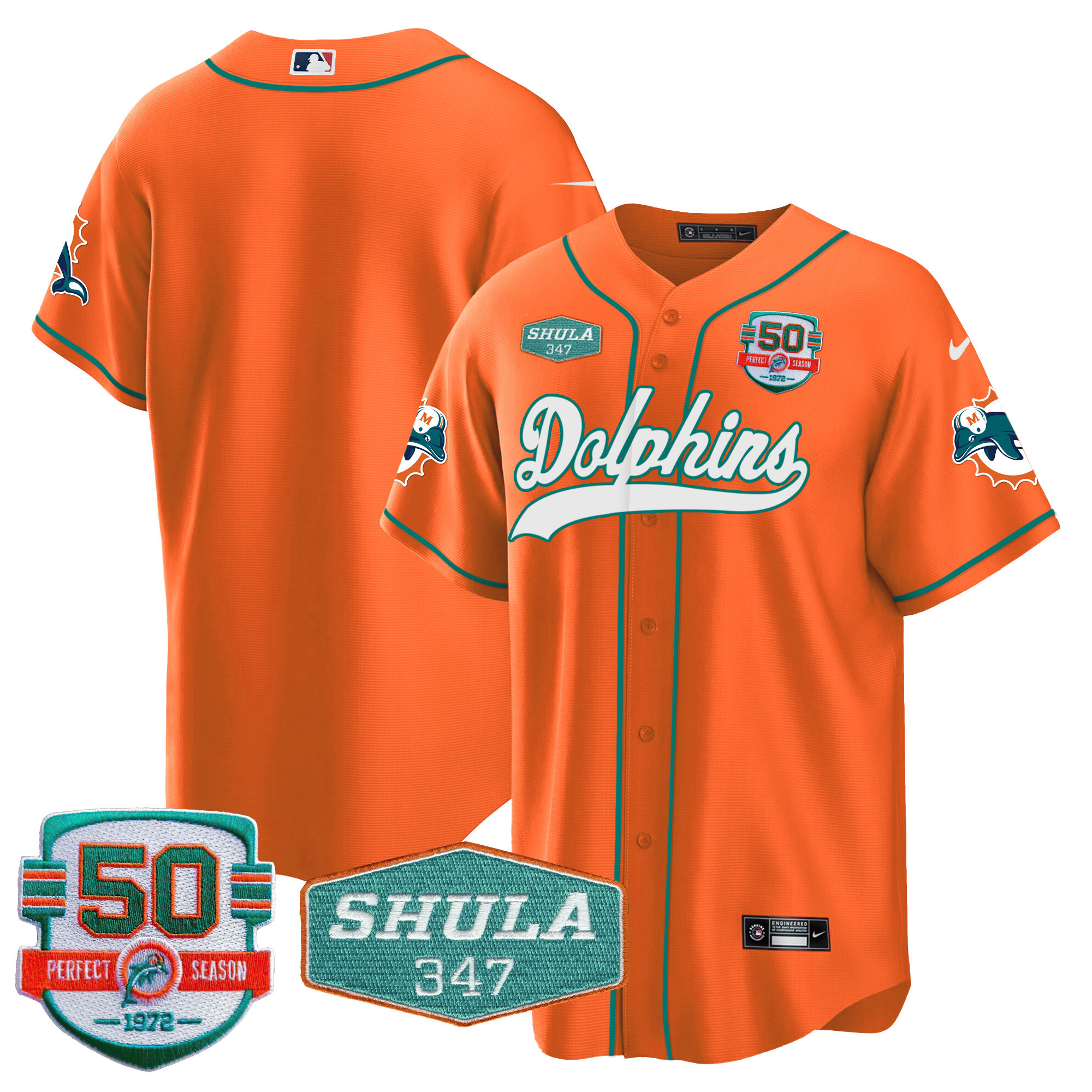Men’s Dolphins 50th & Don Shula 347 Memorial Patch Baseball Jersey – All Stitched