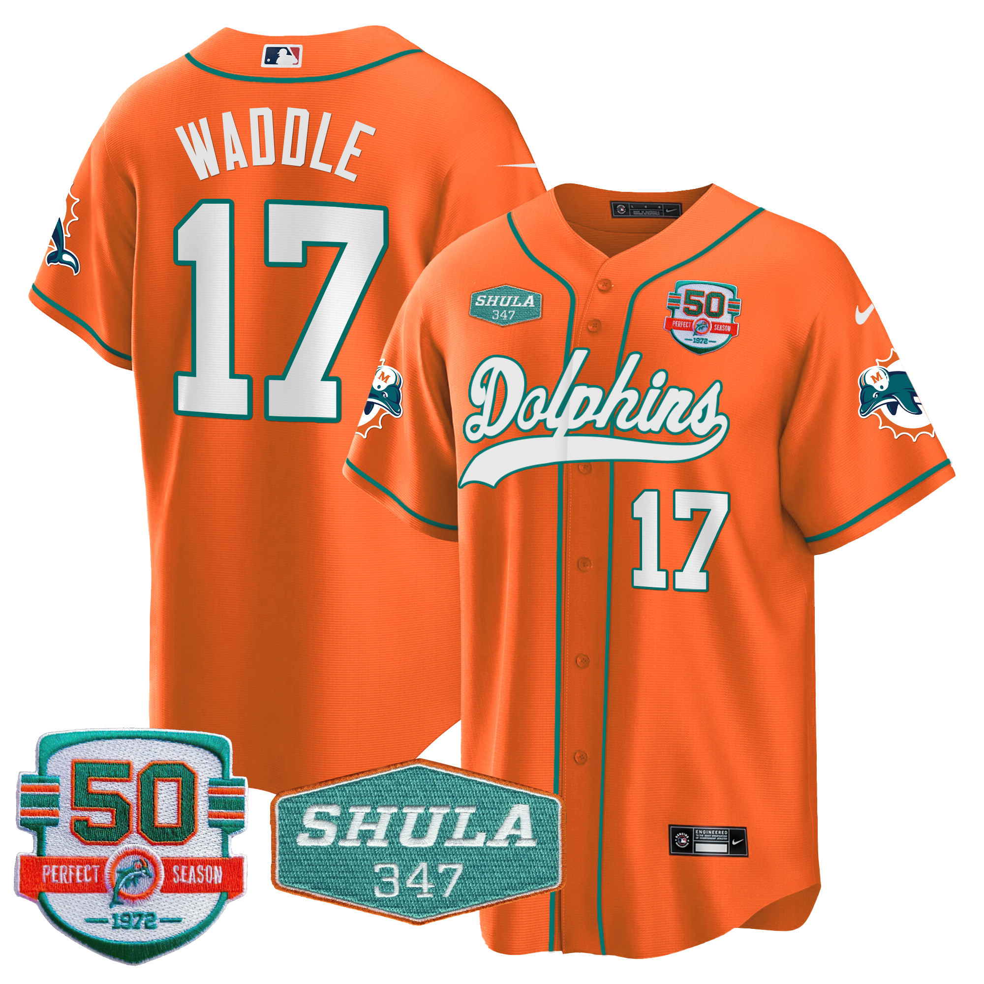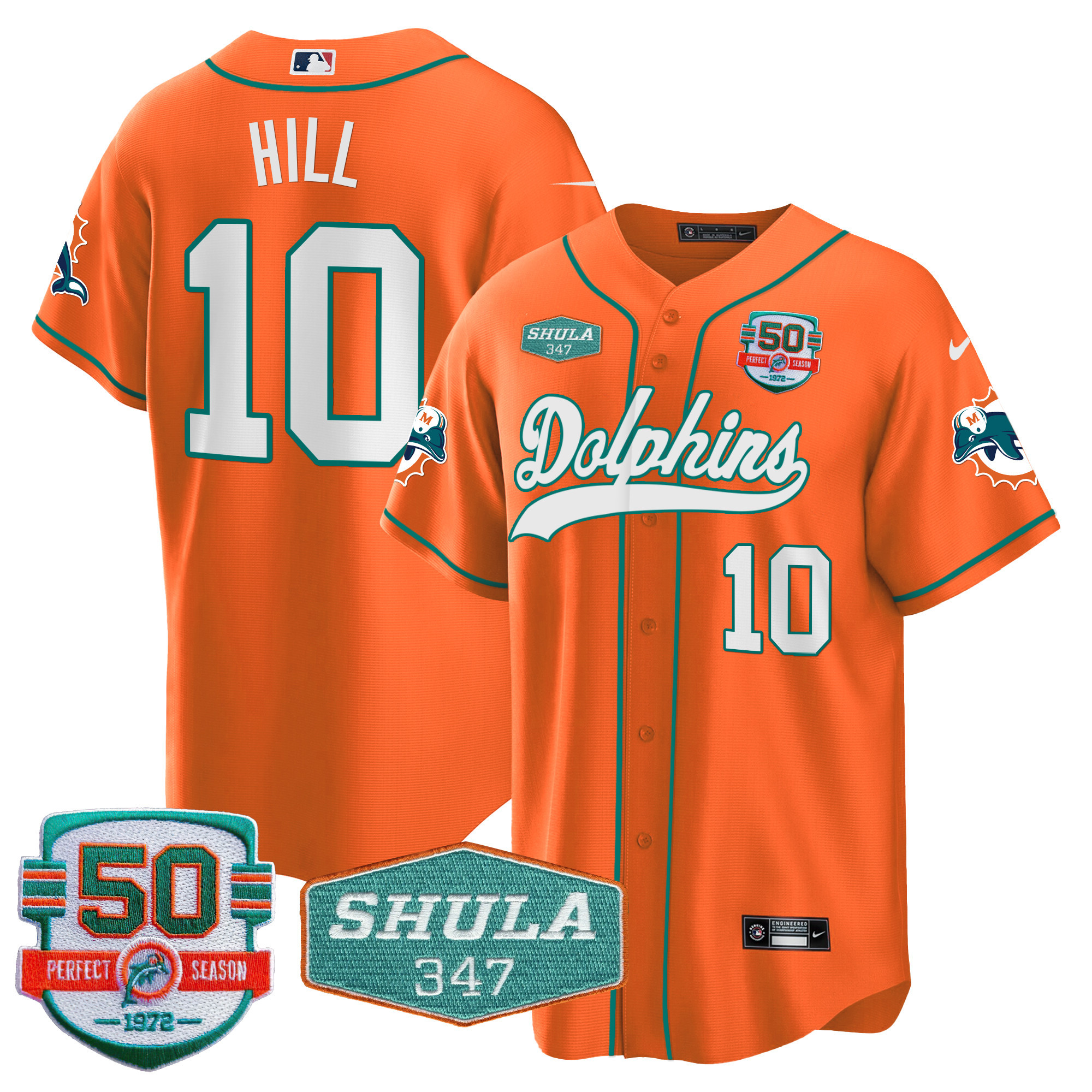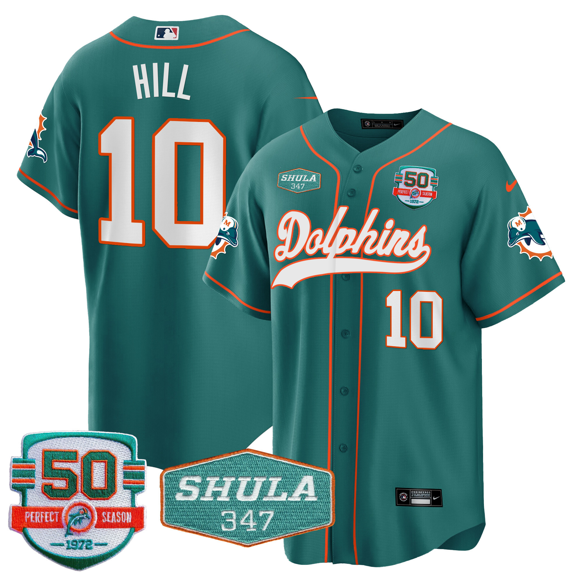 Men’s Dolphins 50th & Don Shula 347 Memorial Patch Baseball Jersey – All Stitched