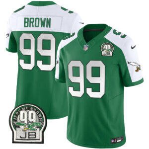 Men’s Eagles Jerome Brown Patch Kelly Green Alternate Jersey – All Stitched