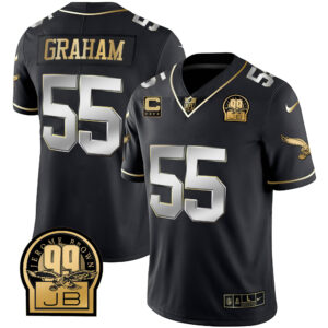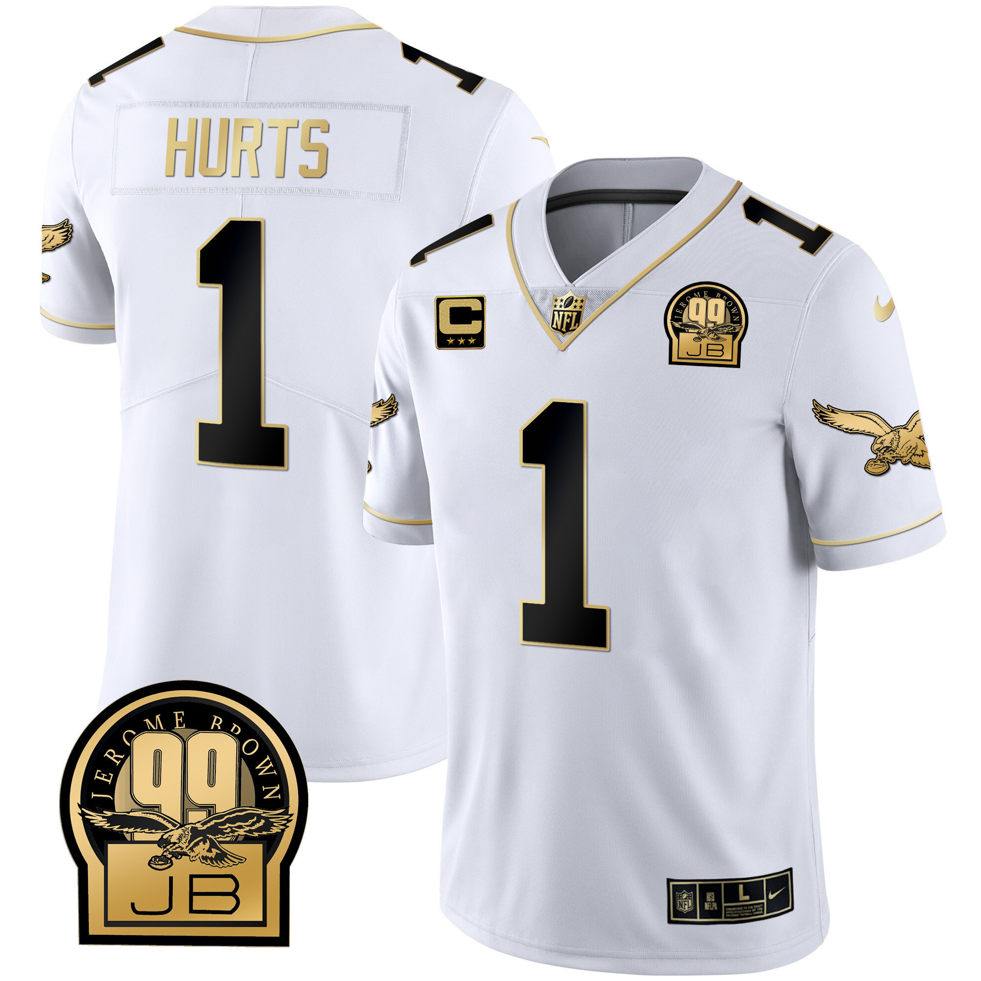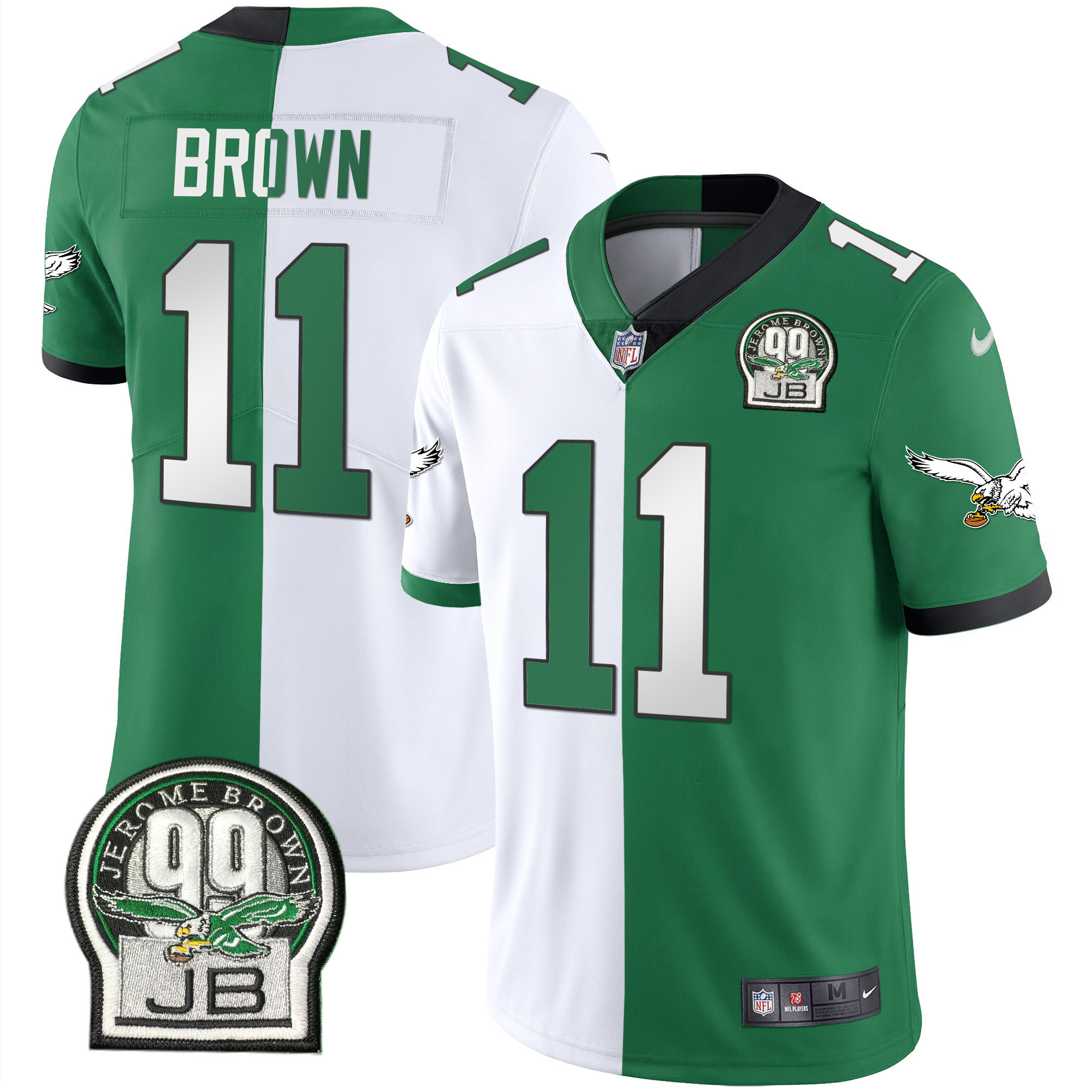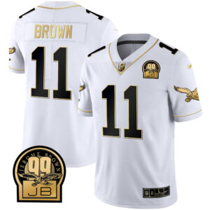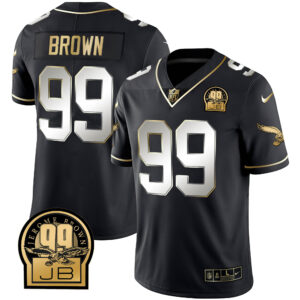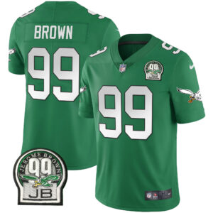 Men’s Eagles Jerome Brown Retired Patch Gold & Kelly Jersey – All Stitched
