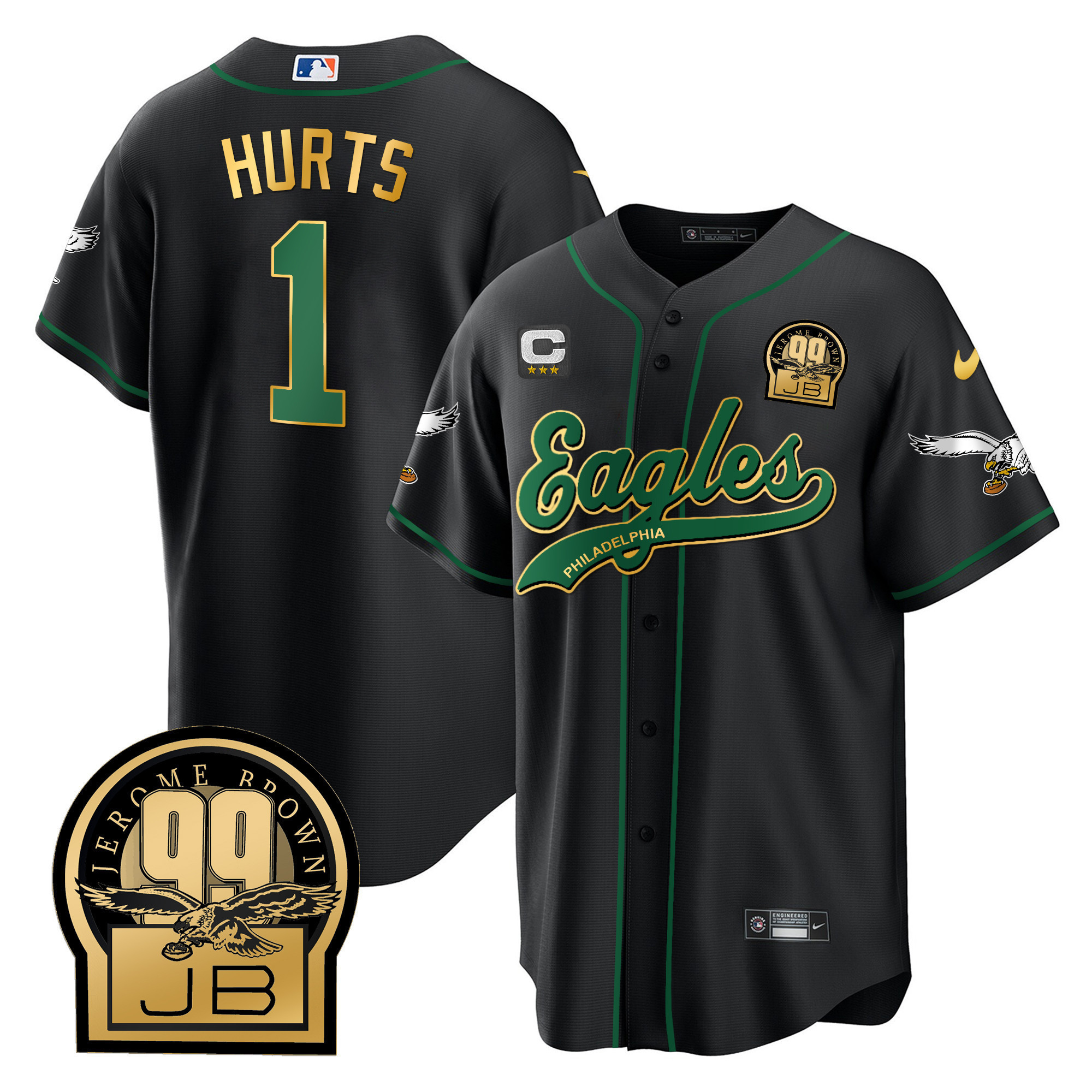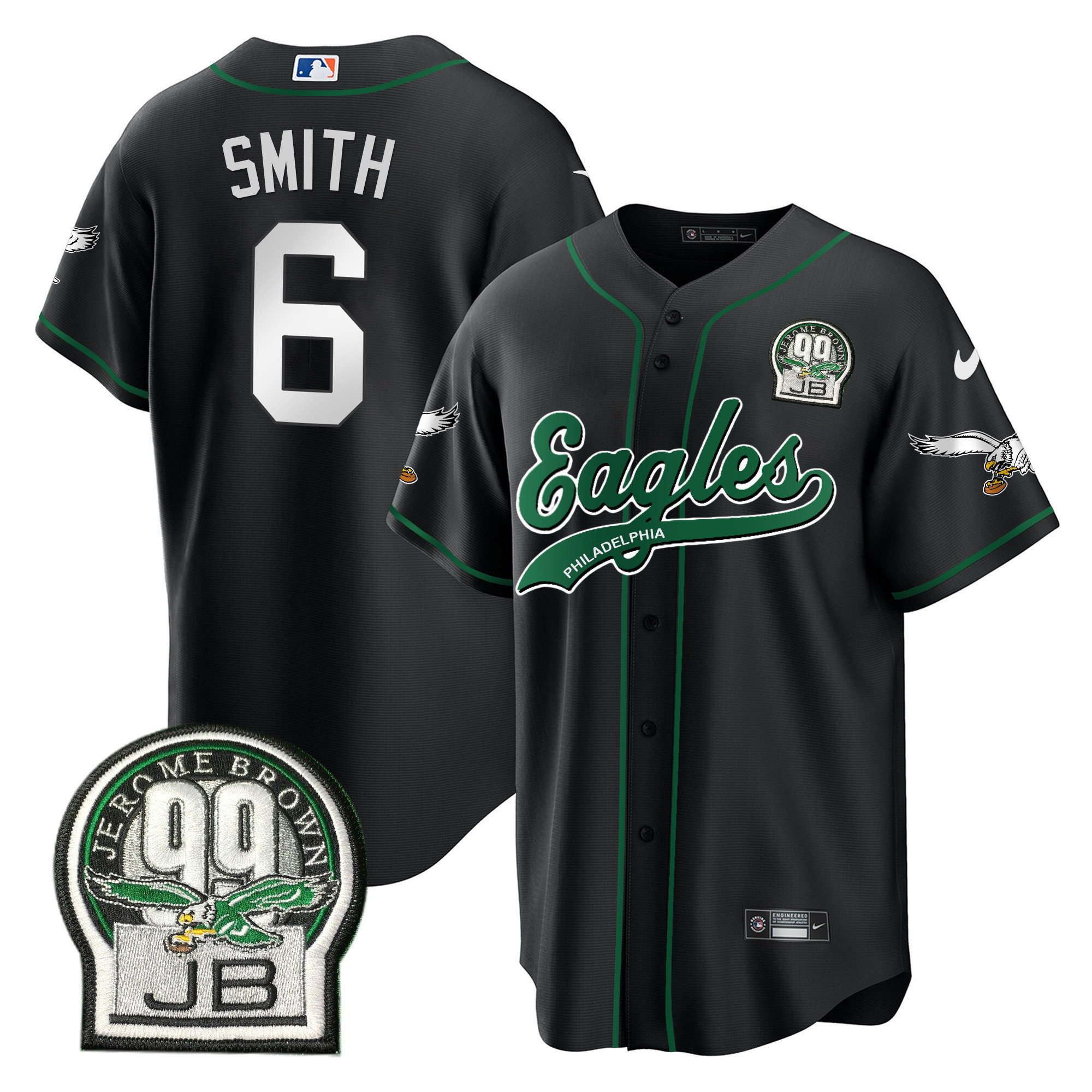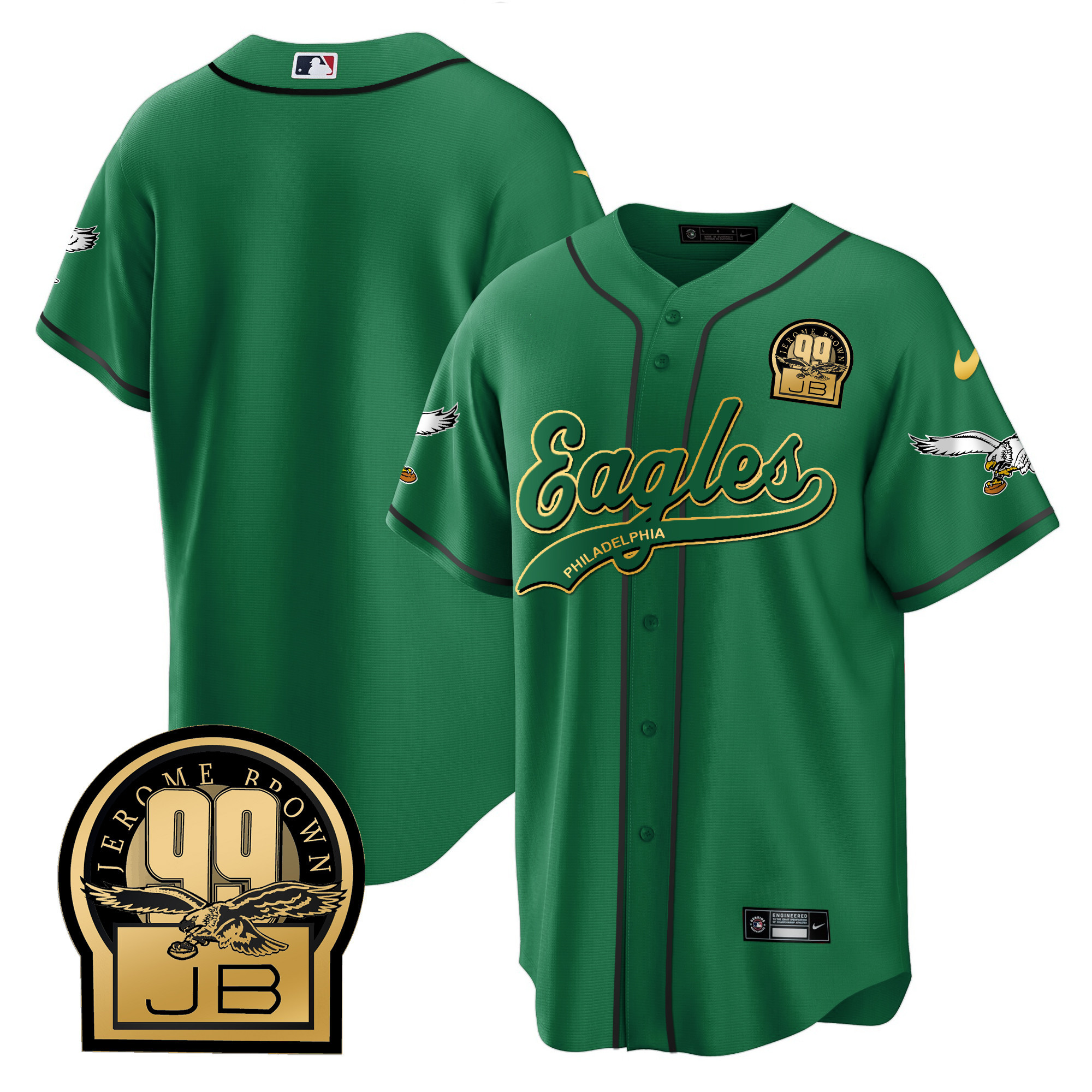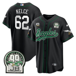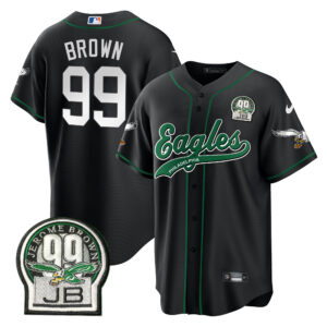 Men’s Eagles Jerome Brown Retired Patch Kelly Green Baseball Jersey – All Stitched