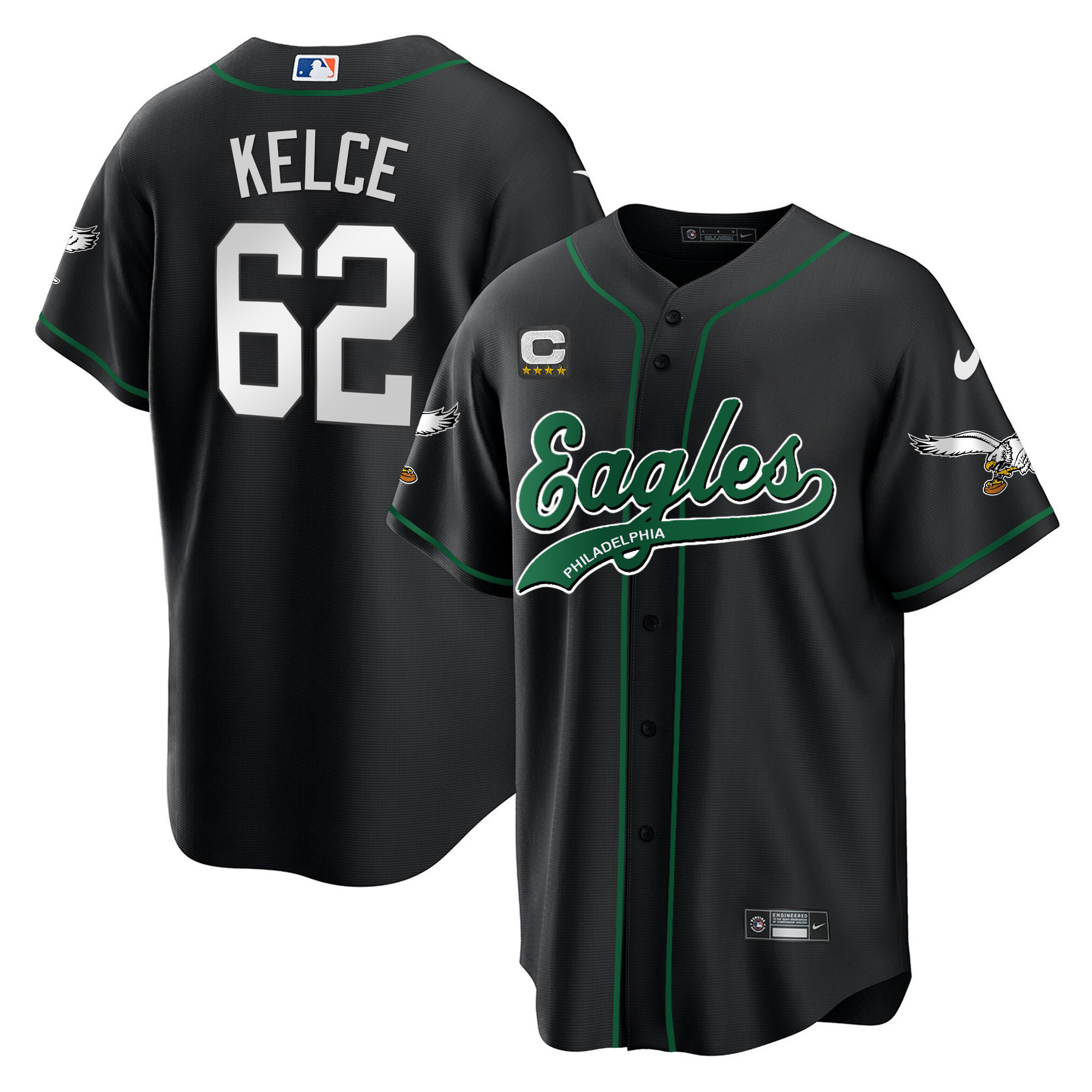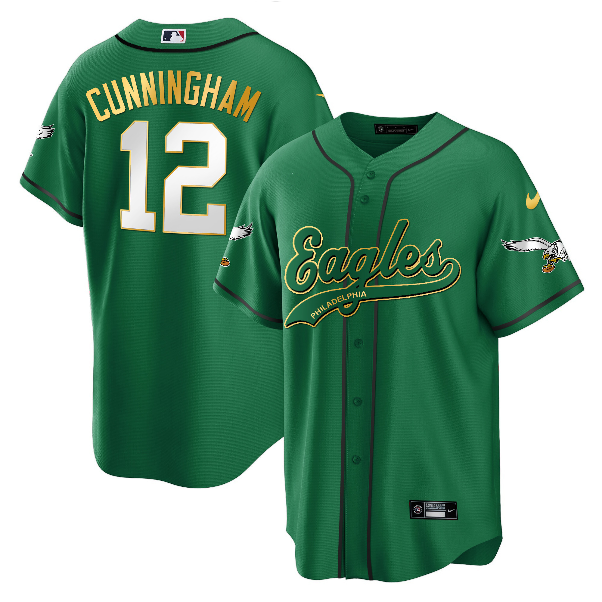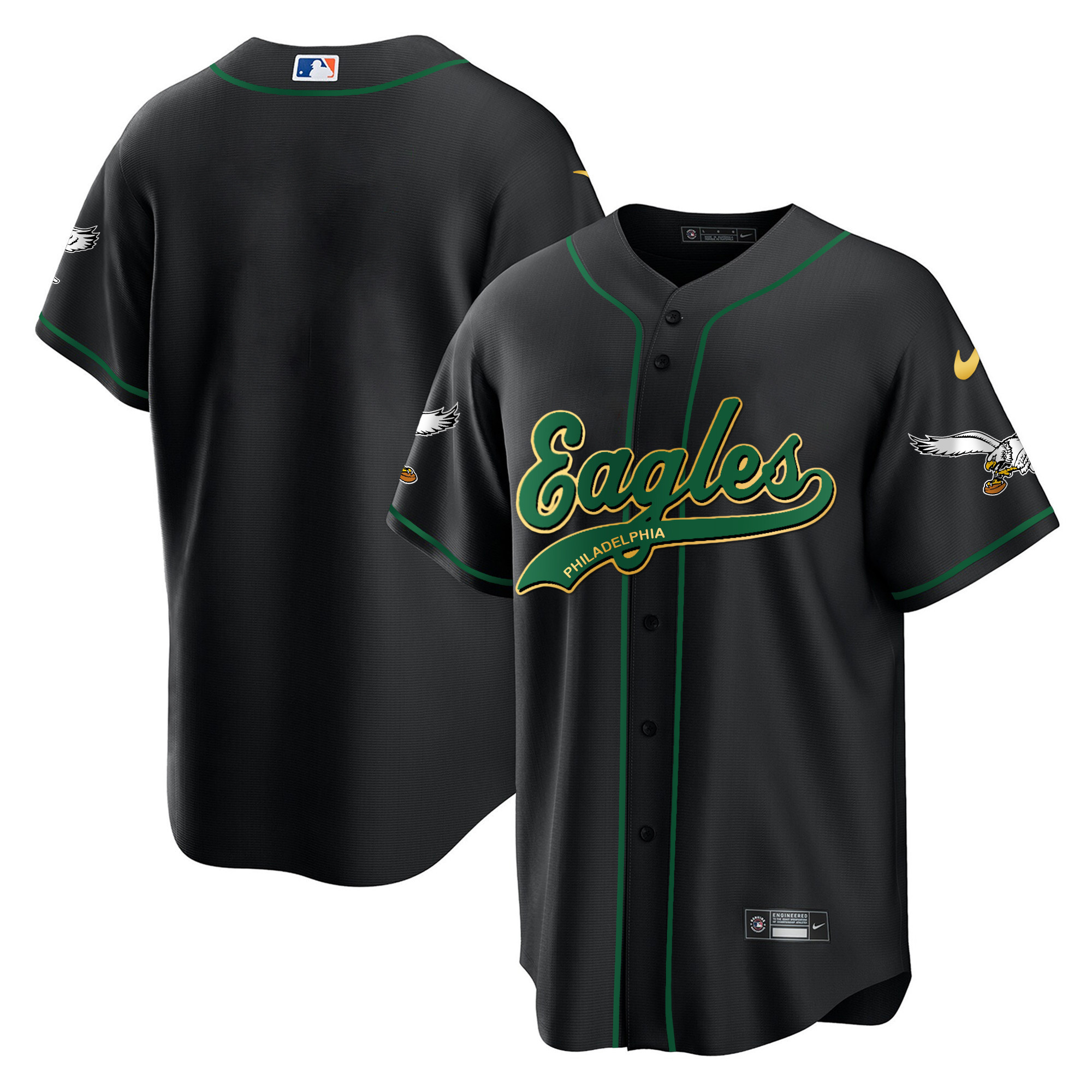 Men’s Eagles Kelly Green Baseball Jersey – All Stitched