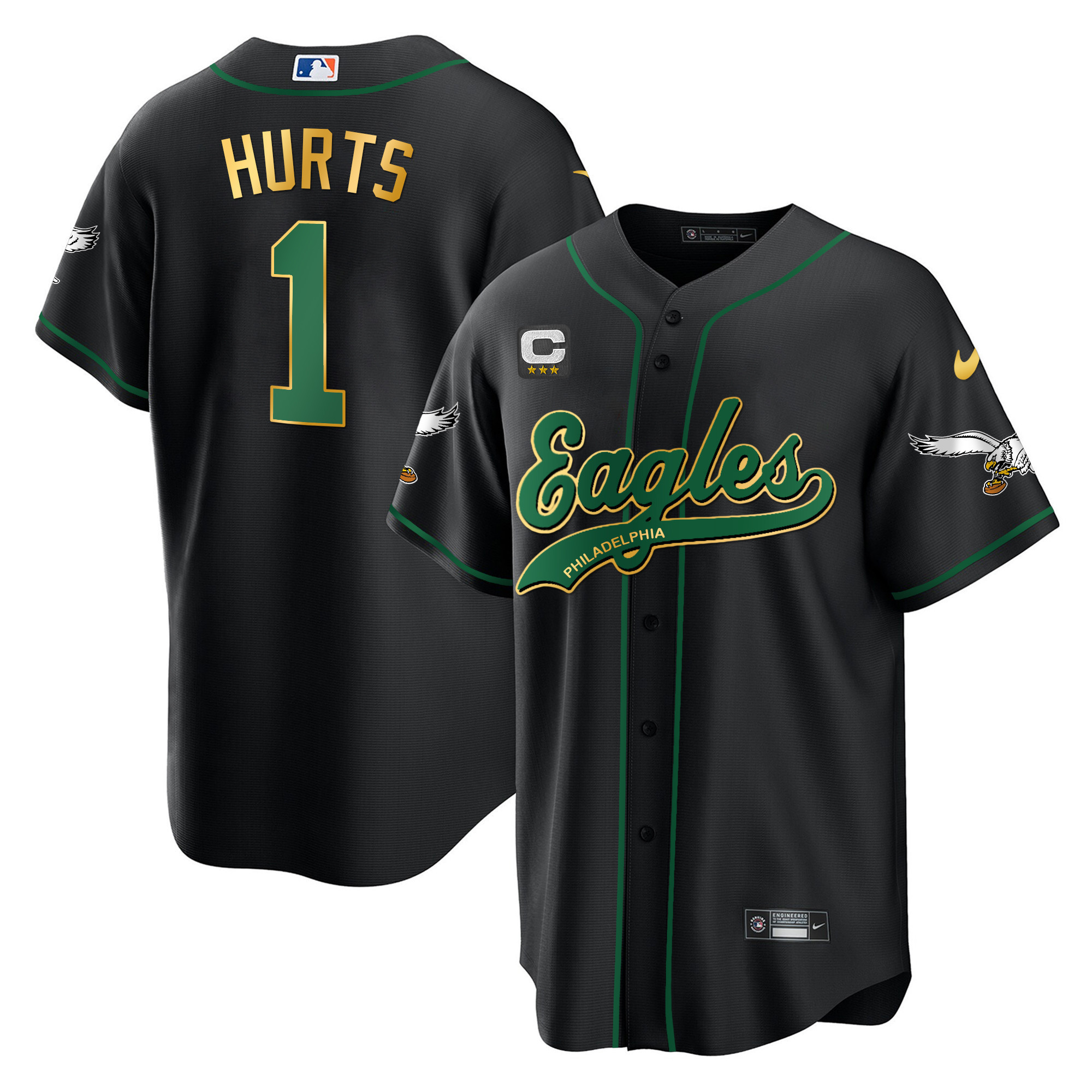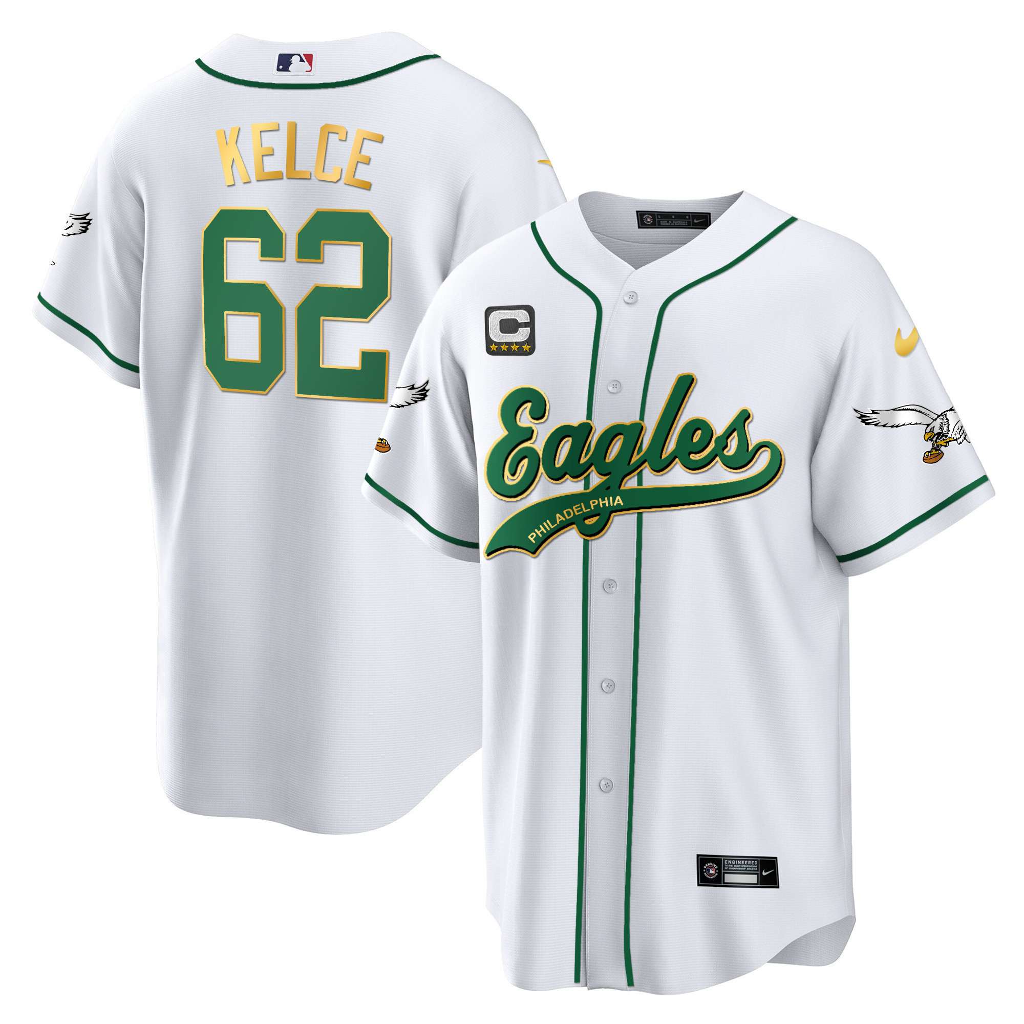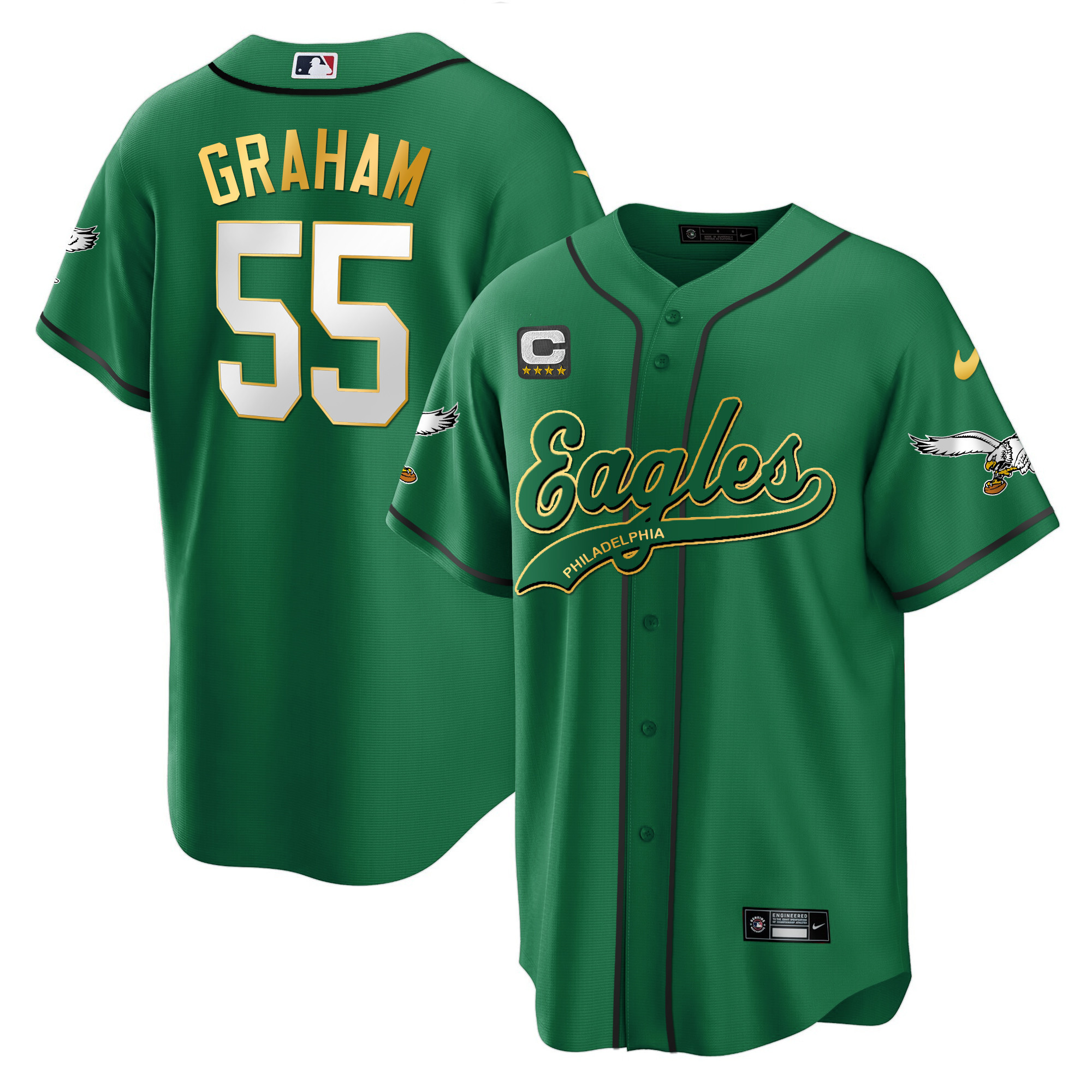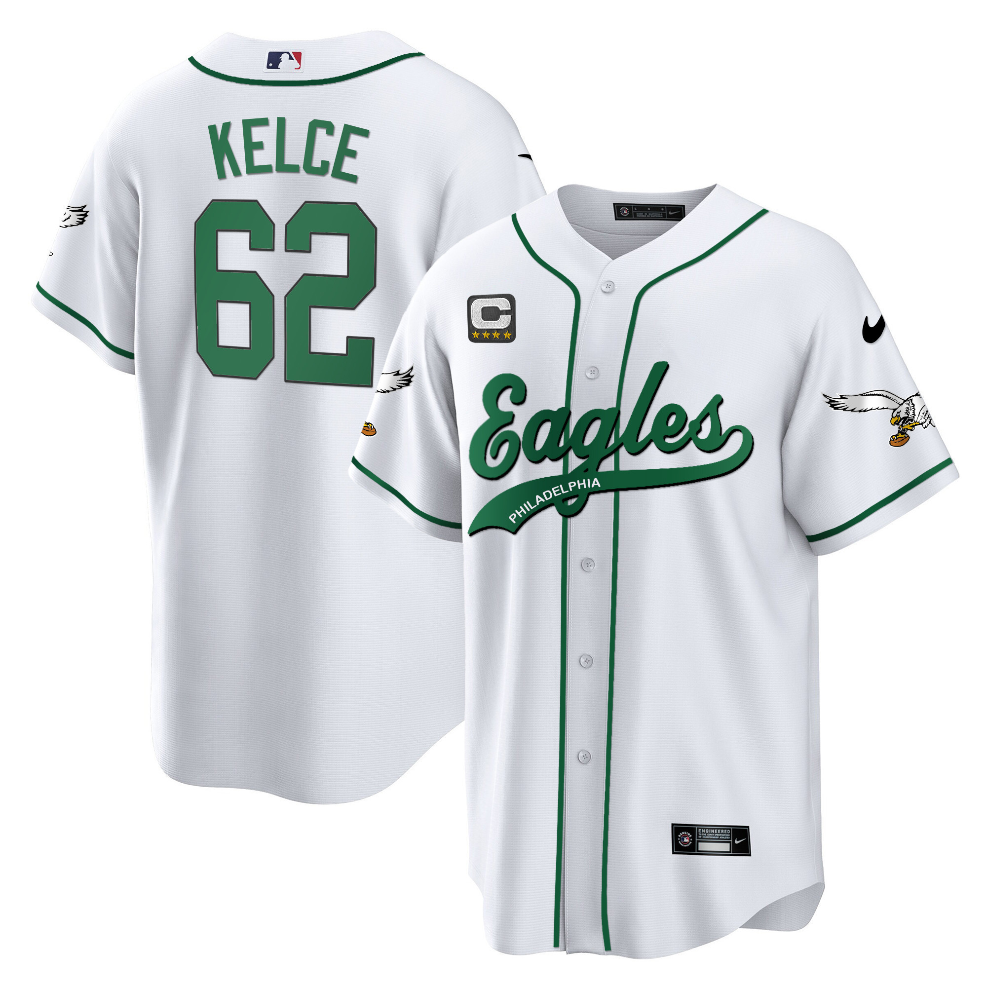 Men’s Eagles Kelly Green Baseball Jersey – All Stitched