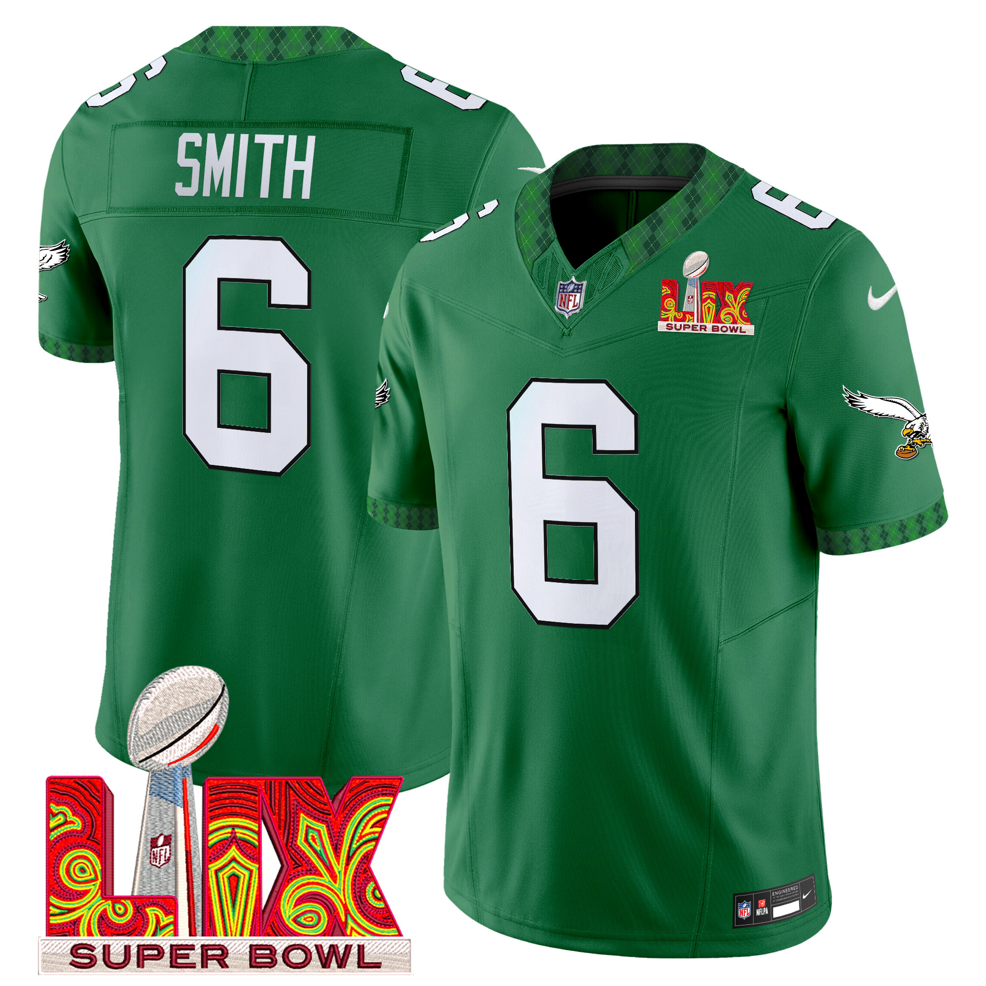 Men’s Eagles Kelly Green St. Patrick’s Day Super Bowl LIX Patch Vapor Limited Jersey – All Stitched